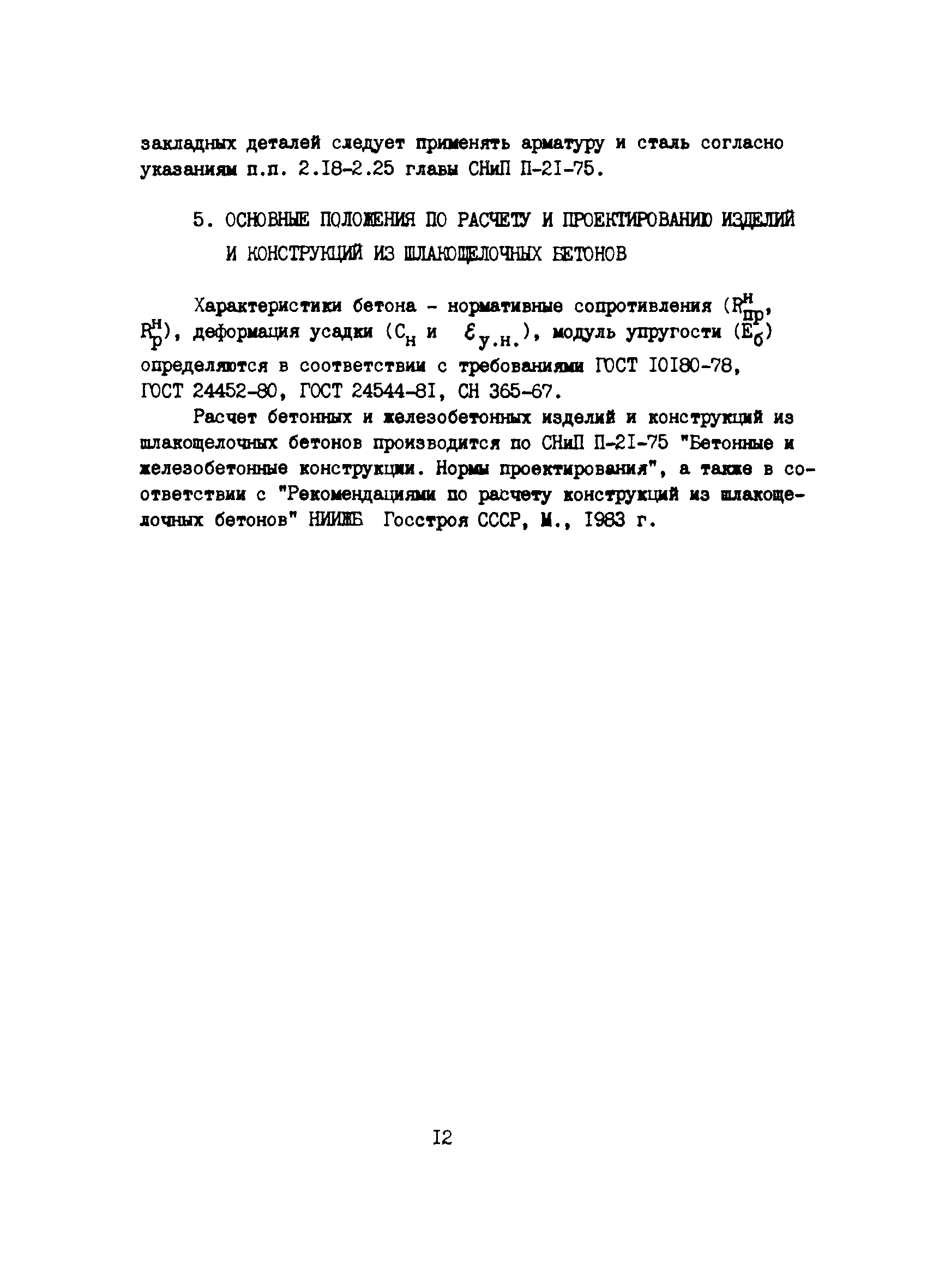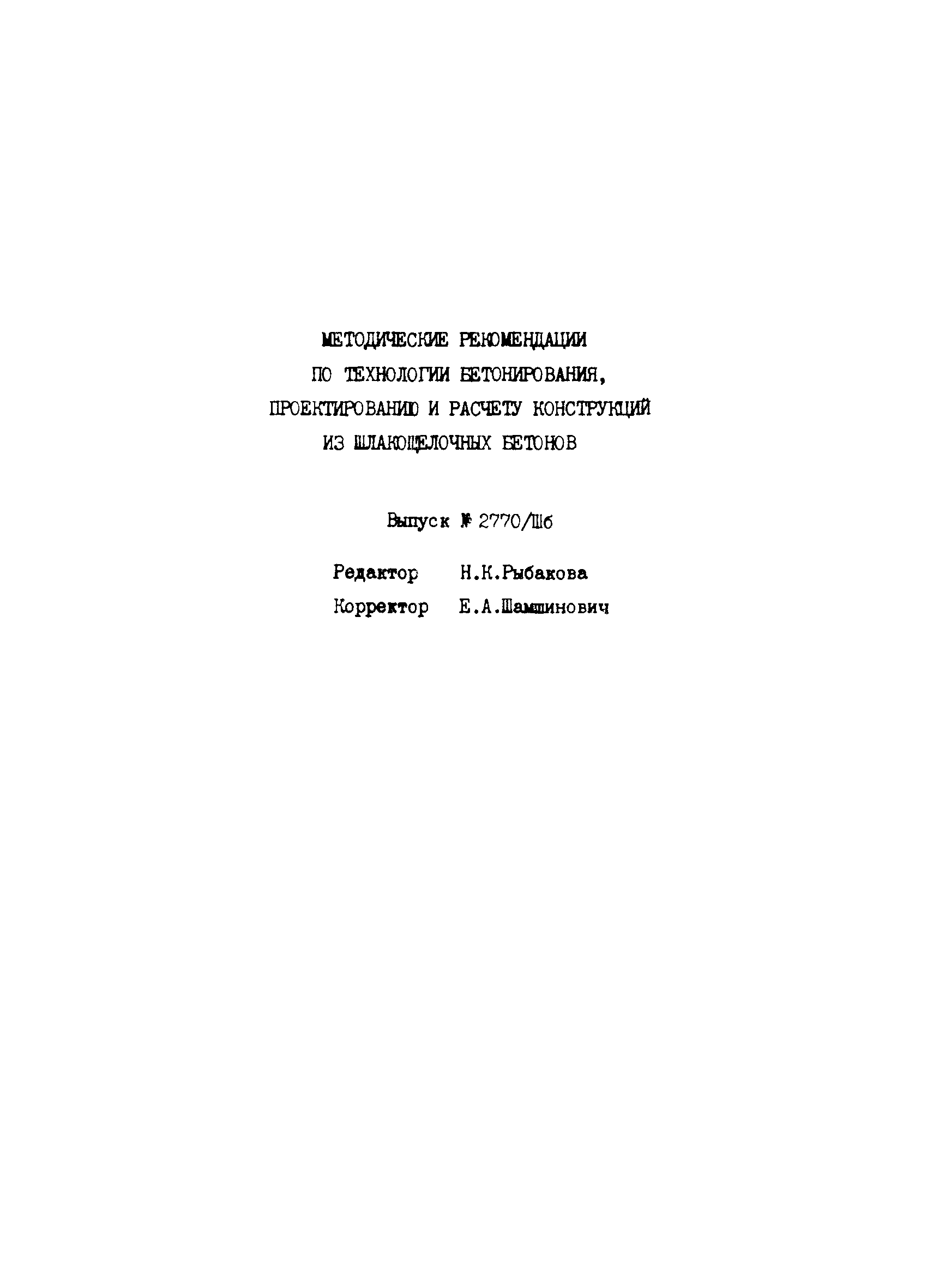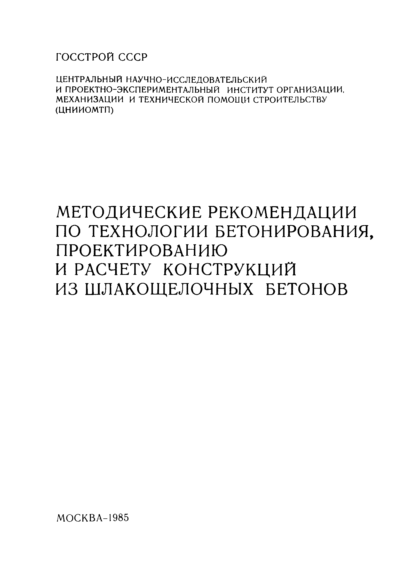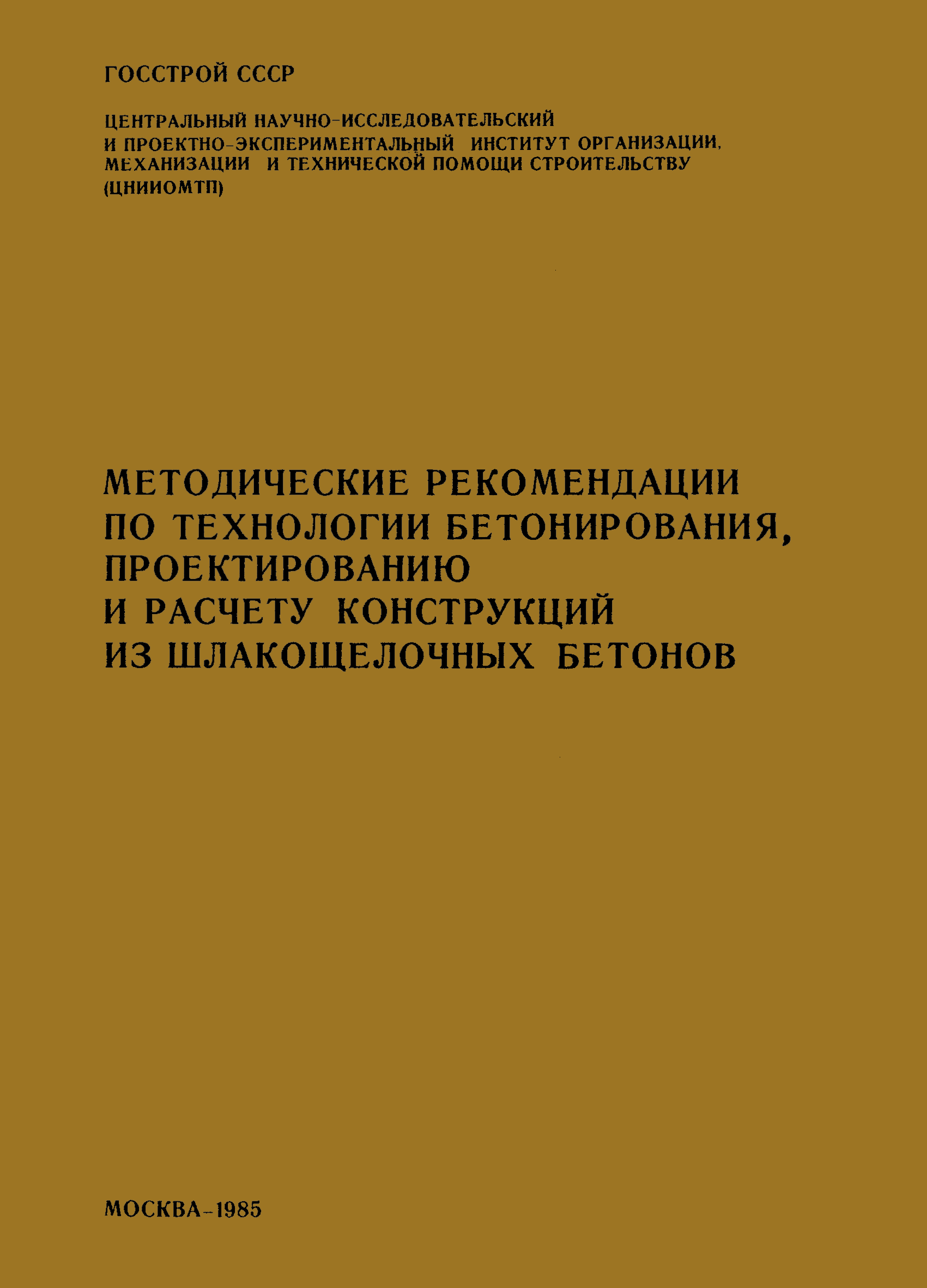 | Название рус.: | Методические рекомендации по технологии бетонирования, проектированию и расчету конструкций из шлакощелочных бетонов |