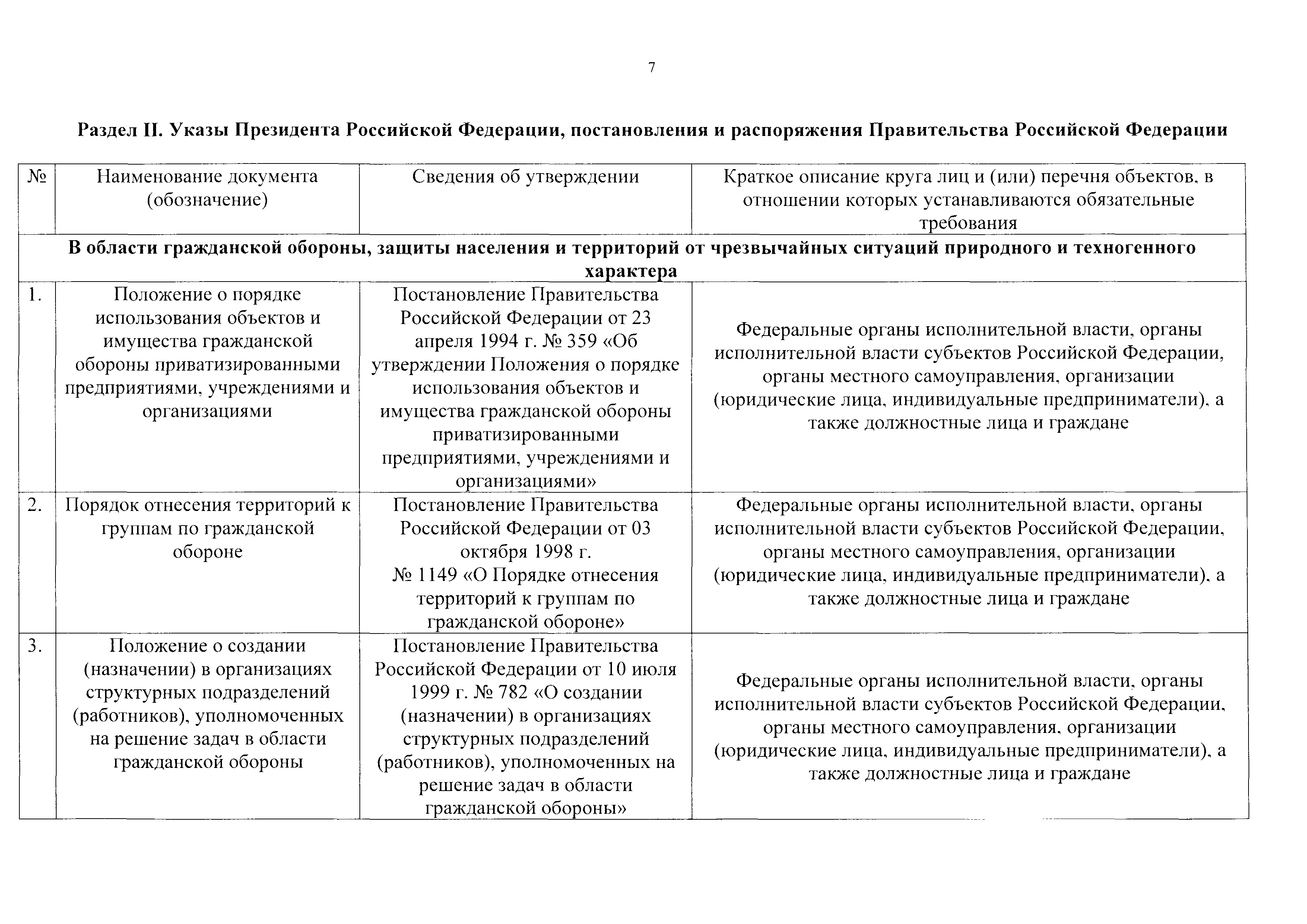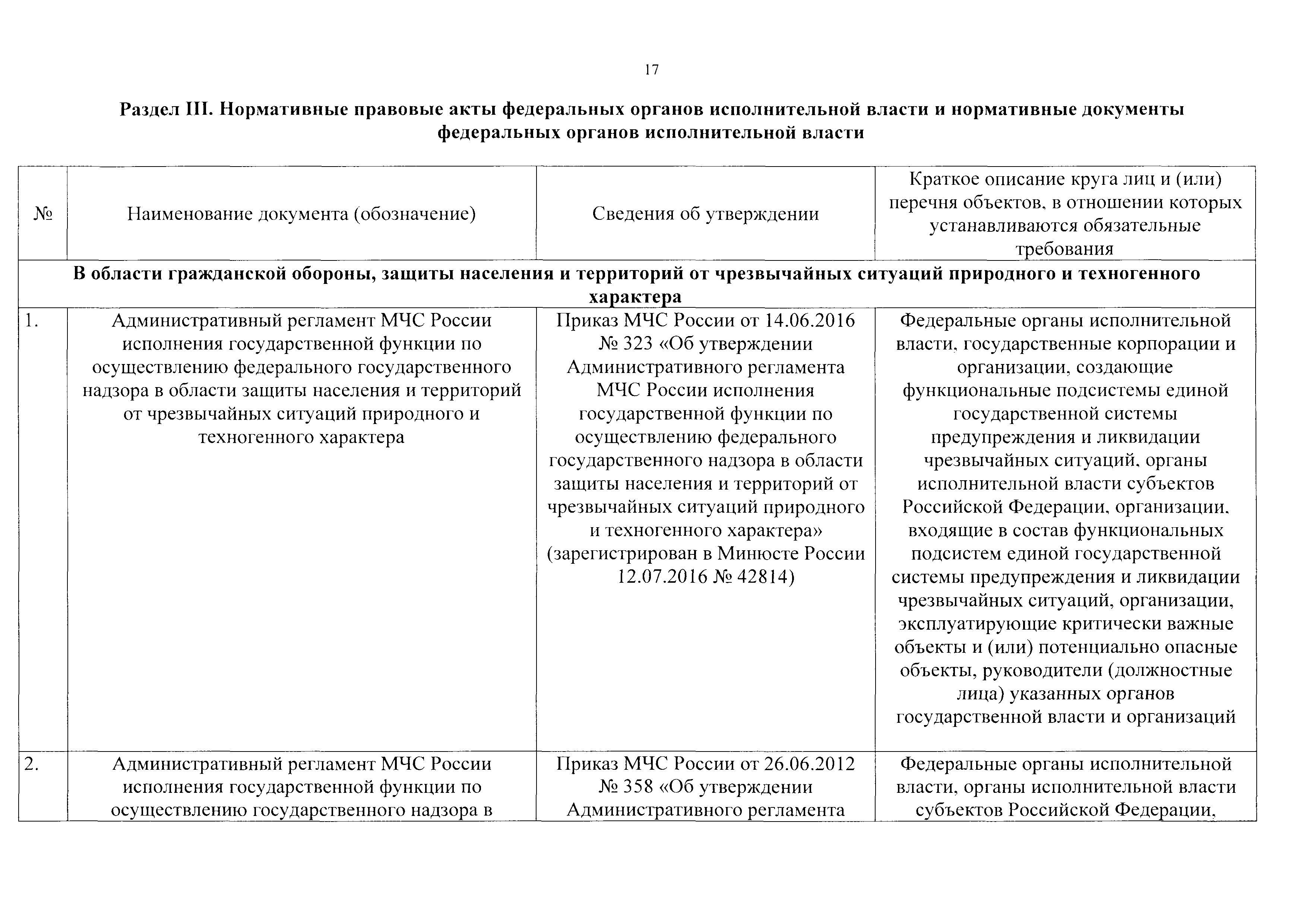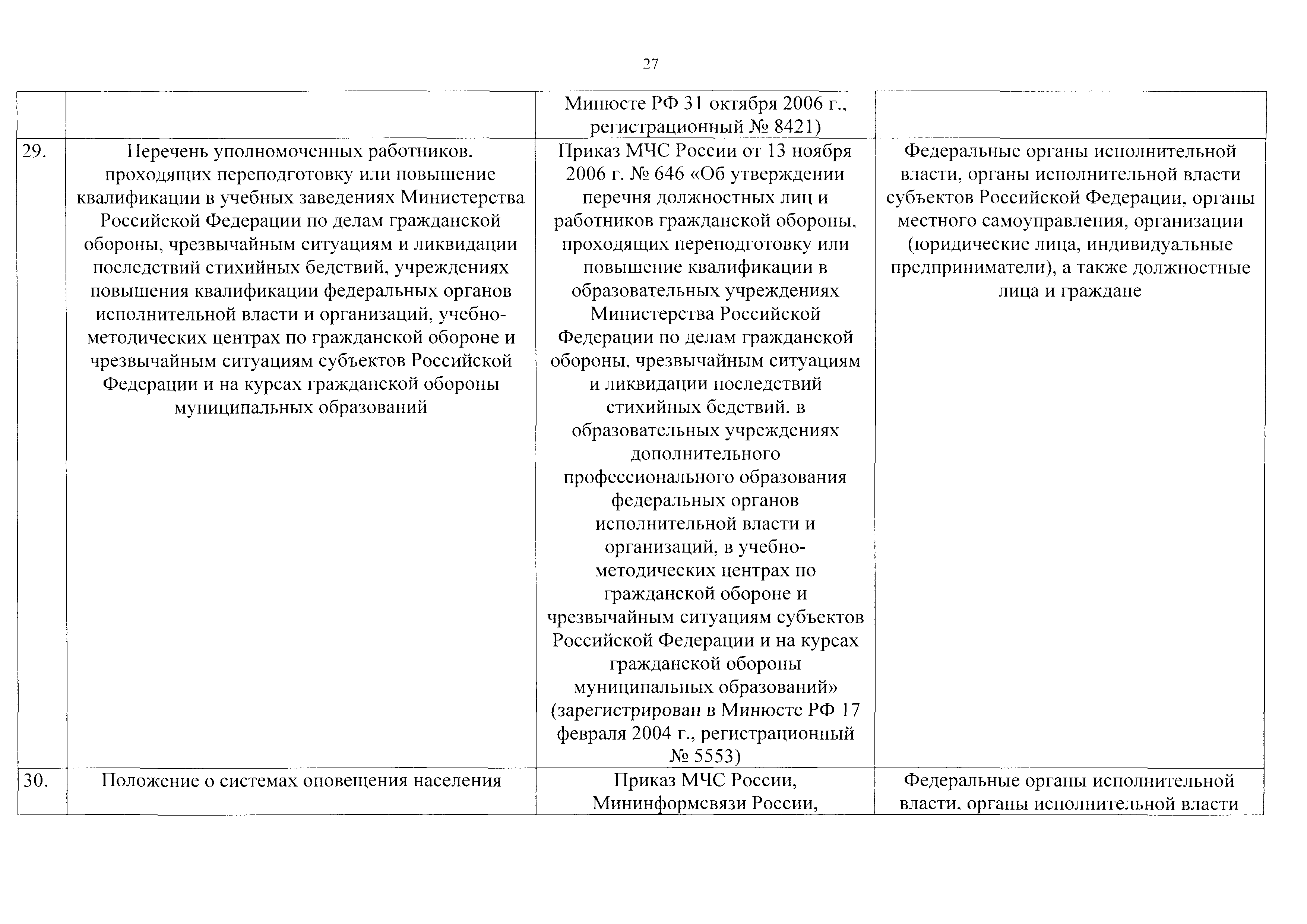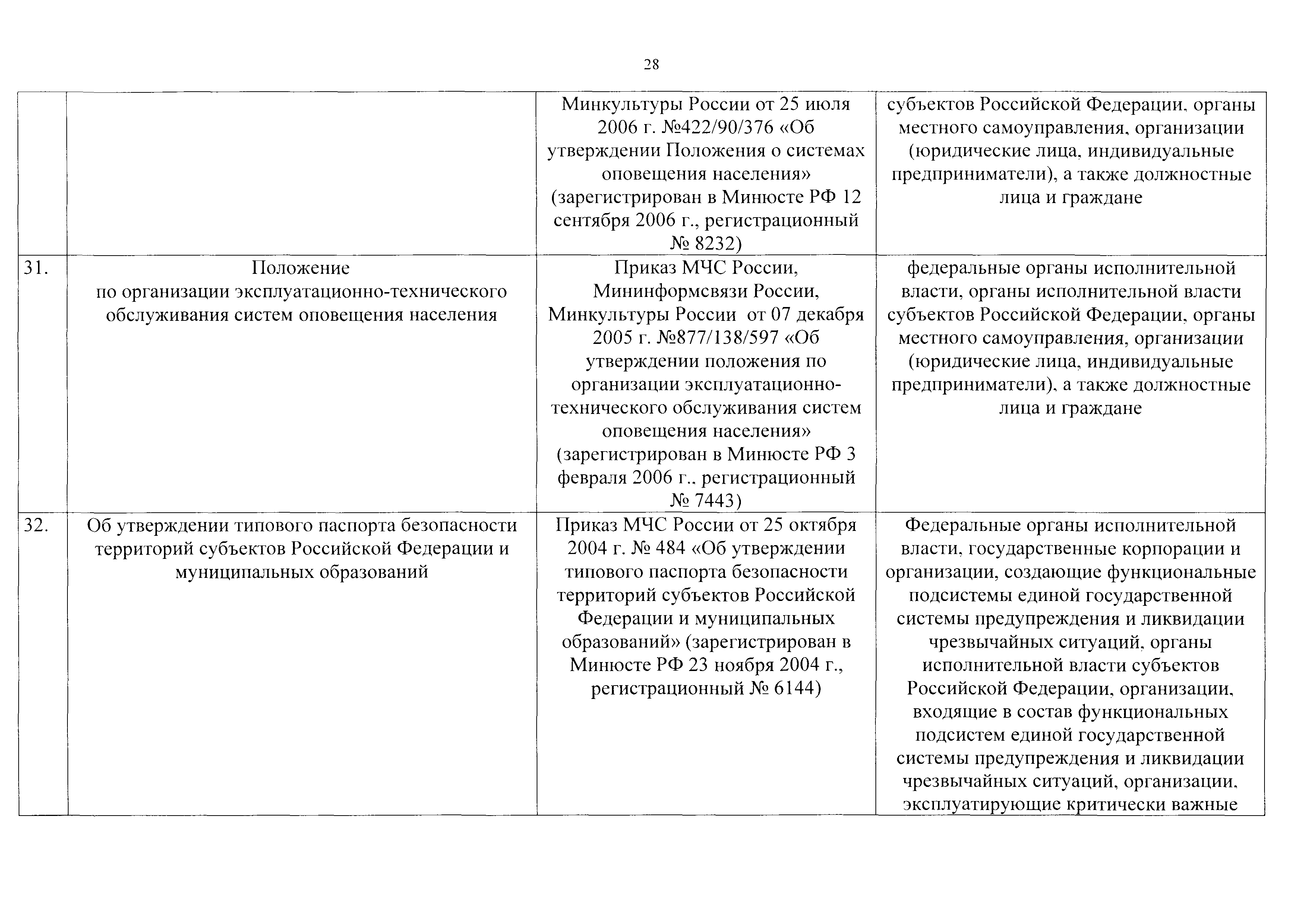 | Название рус.: | Перечень актов, содержащих обязательные требования, соблюдение которых оценивается при проведении мероприятий по контролю при осуществлении федерального государственного надзора в области пожарной безопасности, гражданской обороны, защиты населения и территорий от чрезвычайных ситуаций природного и техногенного характера |