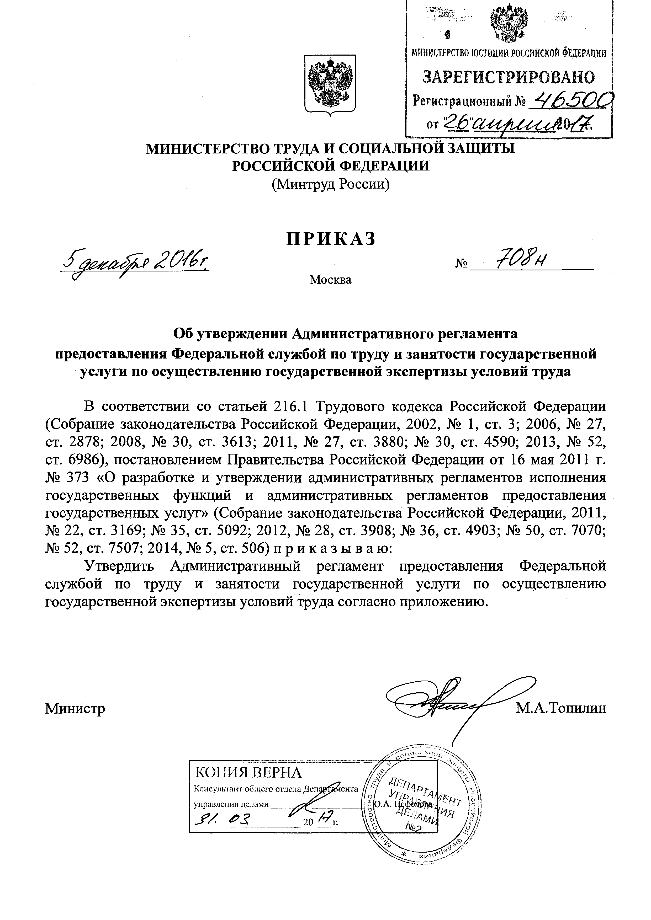 | Название рус.: | Административный регламент предоставления Федеральной службой по труду и занятости государственной услуги по осуществлению государственной экспертизы условий труда |