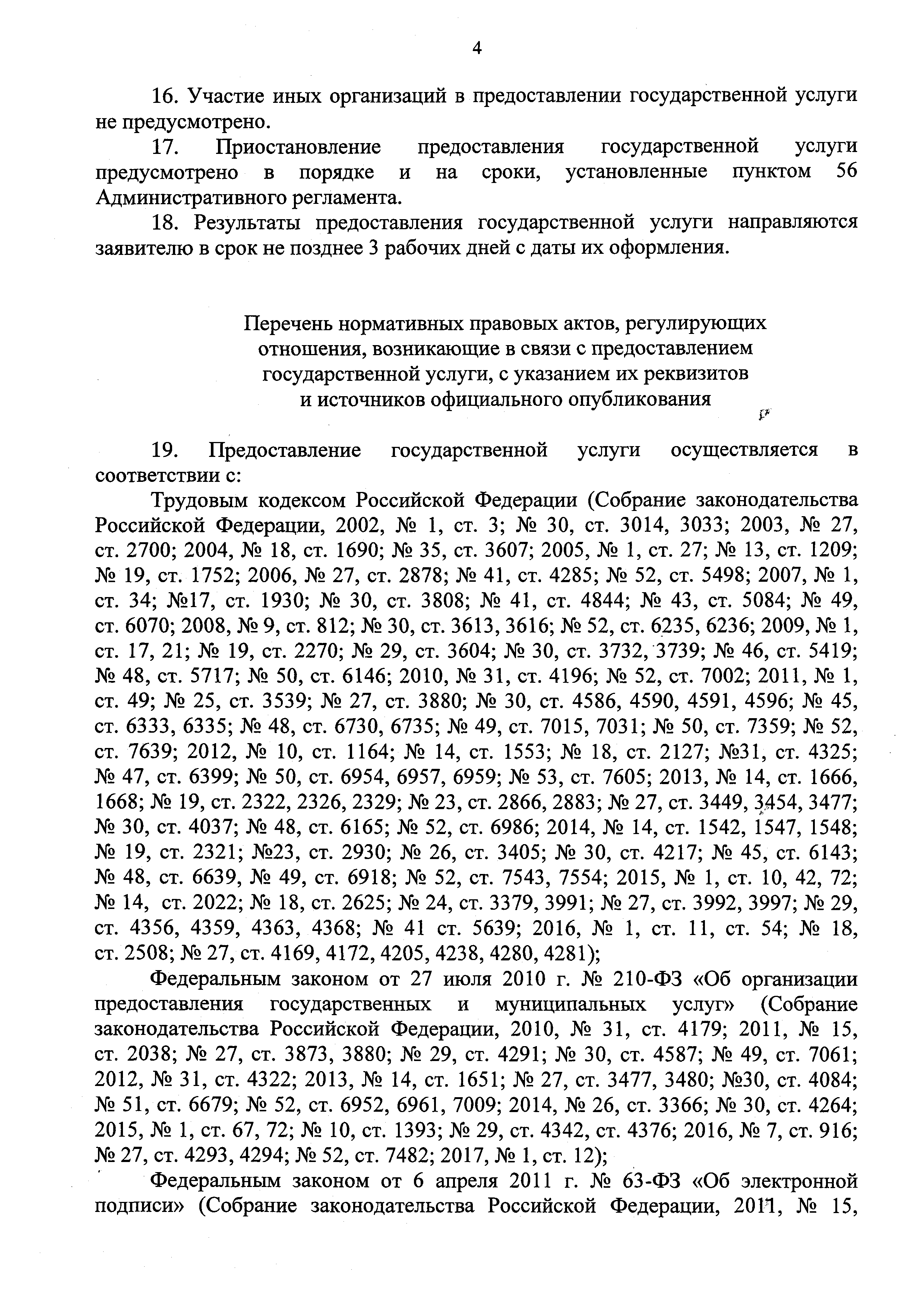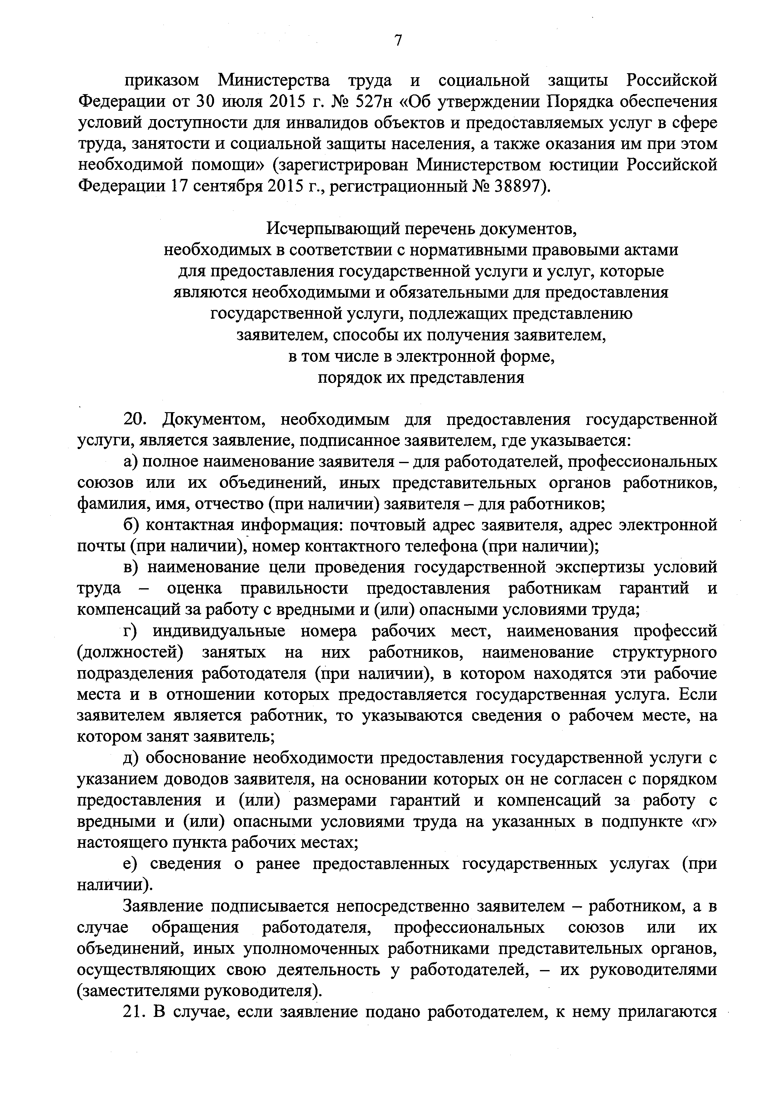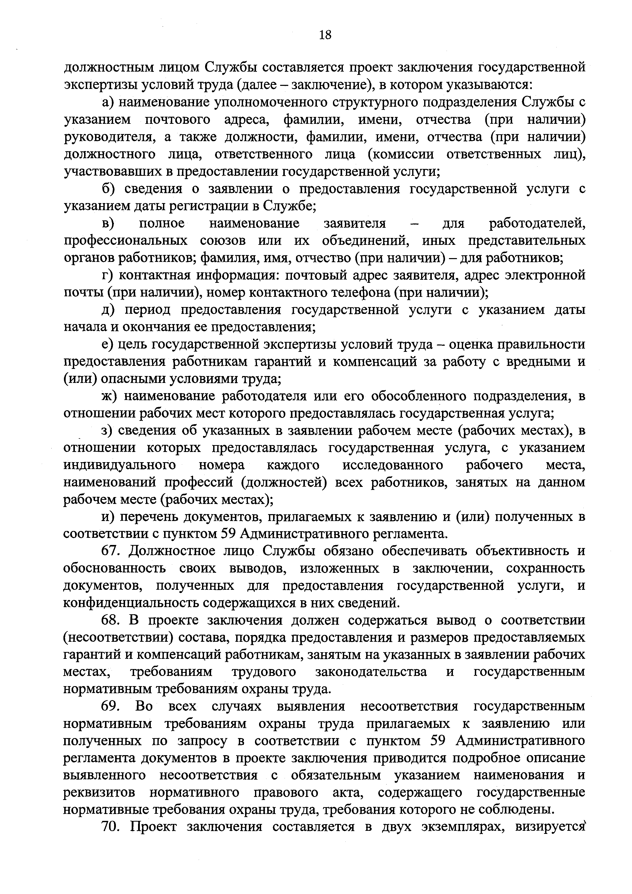 | Оглавление: | I. Общие положения II. Стандарт предоставления государственной услуги III. Состав, последовательность и сроки выполнения административных процедур, требования к порядку их выполнения, в том числе особенности выполнения административных процедур в электронной форме IV. Формы контроля за предоставлением государственной услуги V. Досудебный (внесудебный) порядок обжалования решений и действий (бездействия) Службы, а также ее должностных лиц Приложение. Блок-схема предоставления Федеральной службой по труду и занятости государственной услуги по осуществлению государственной экспертизы условий труда |