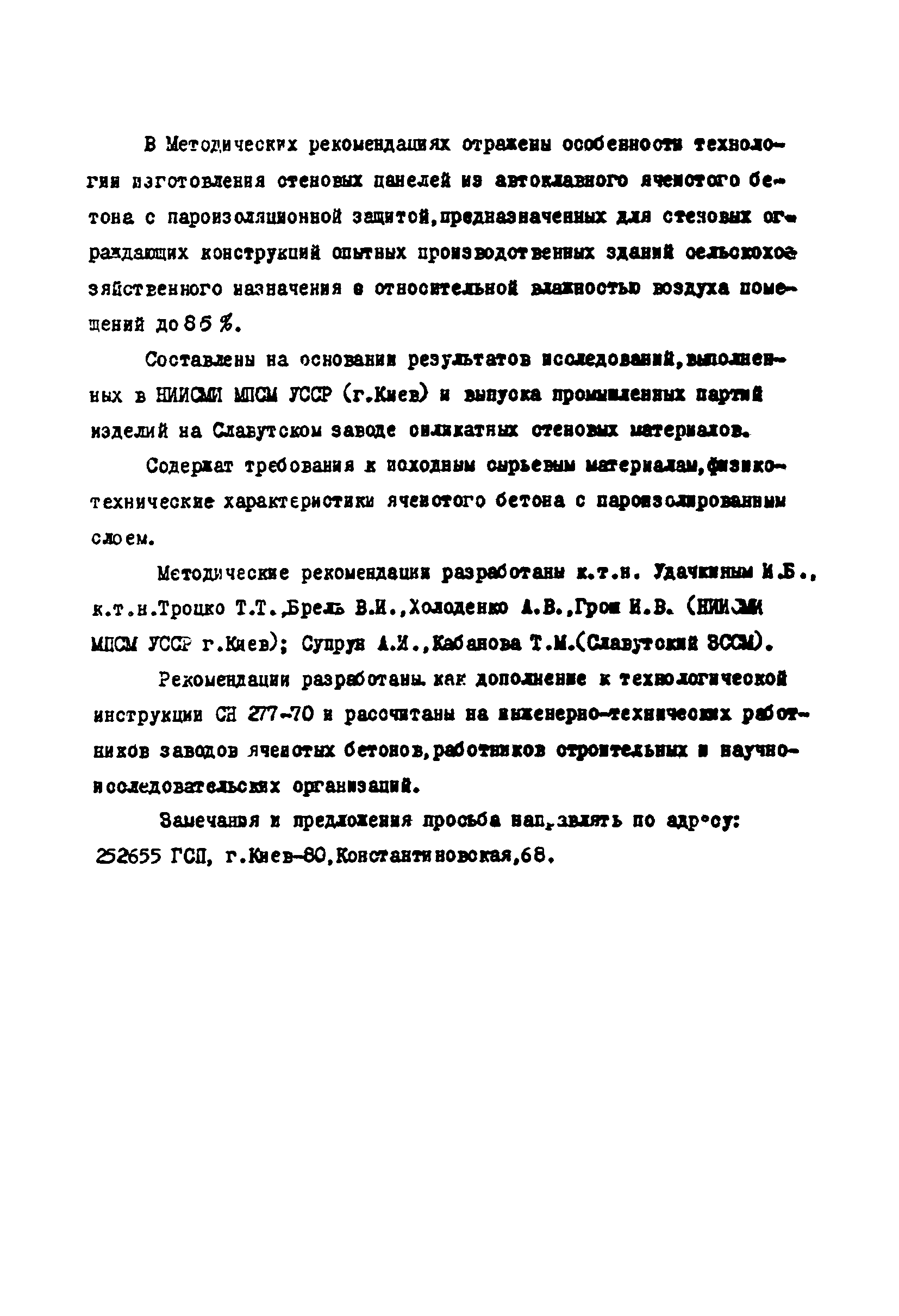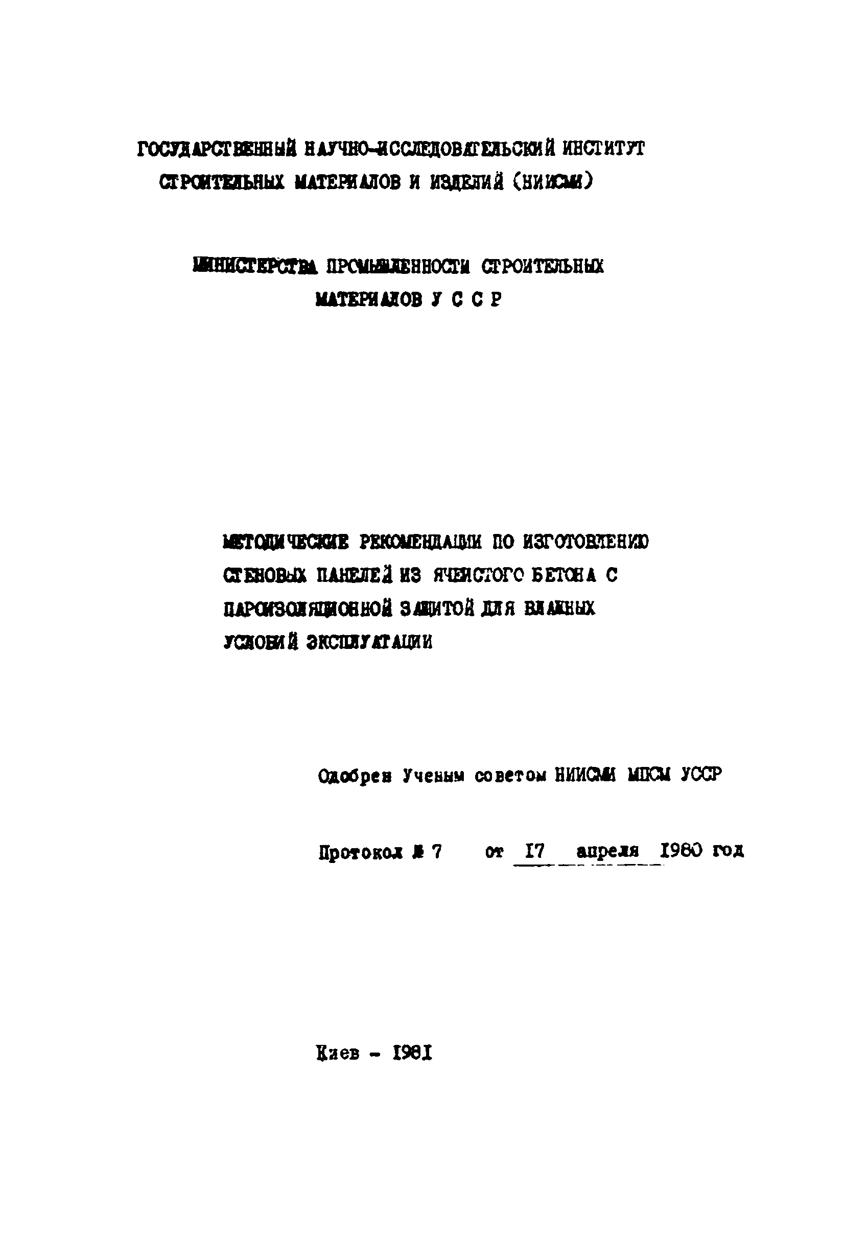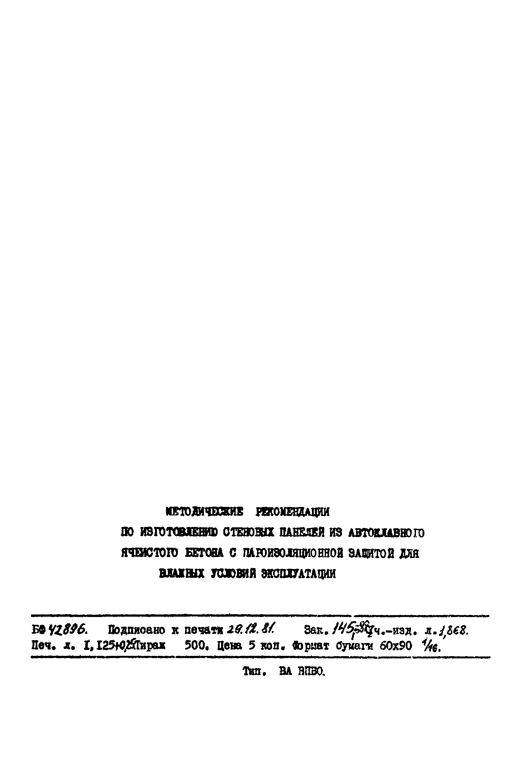 | Название рус.: | Методические рекомендации по изготовлению стеновых панелей из автоклавного ячеистого бетона с пароизоляционной защитой для влажных условий эксплуатации |