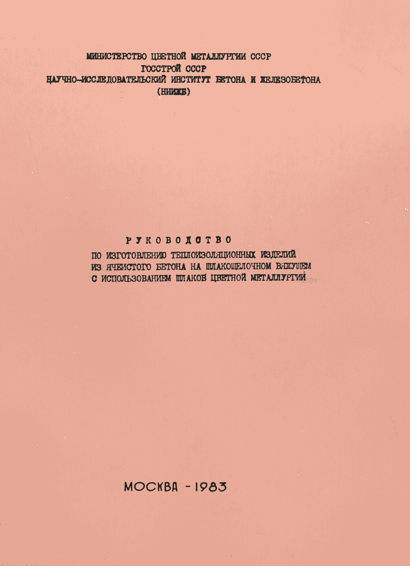 | Название рус.: | Руководство по изготовлению теплоизоляционных изделий из ячеистого бетона на шлакощелочном вяжущем с использованием шлаков цветной металлургии |