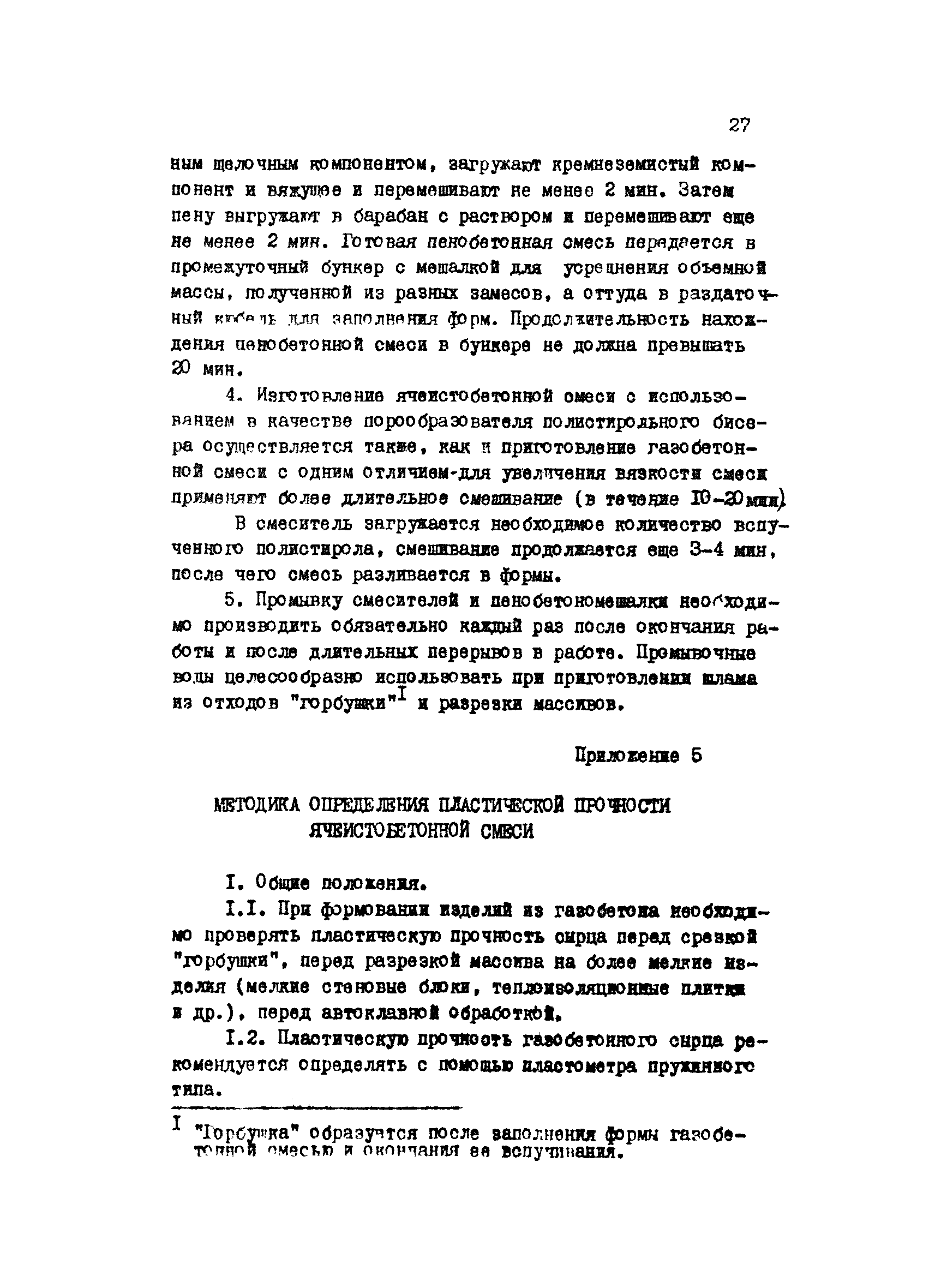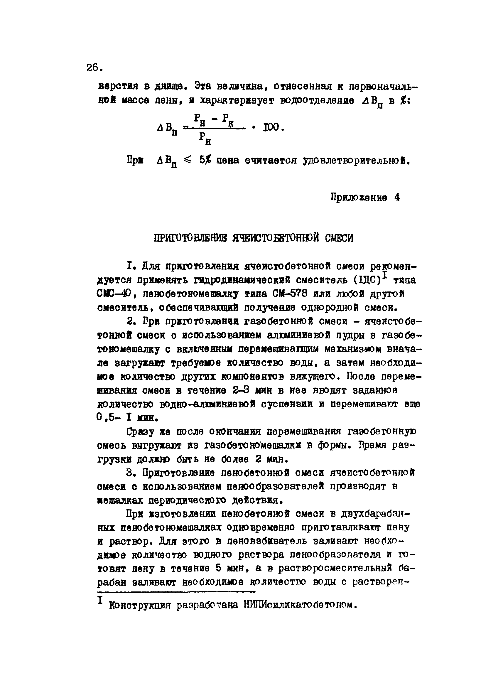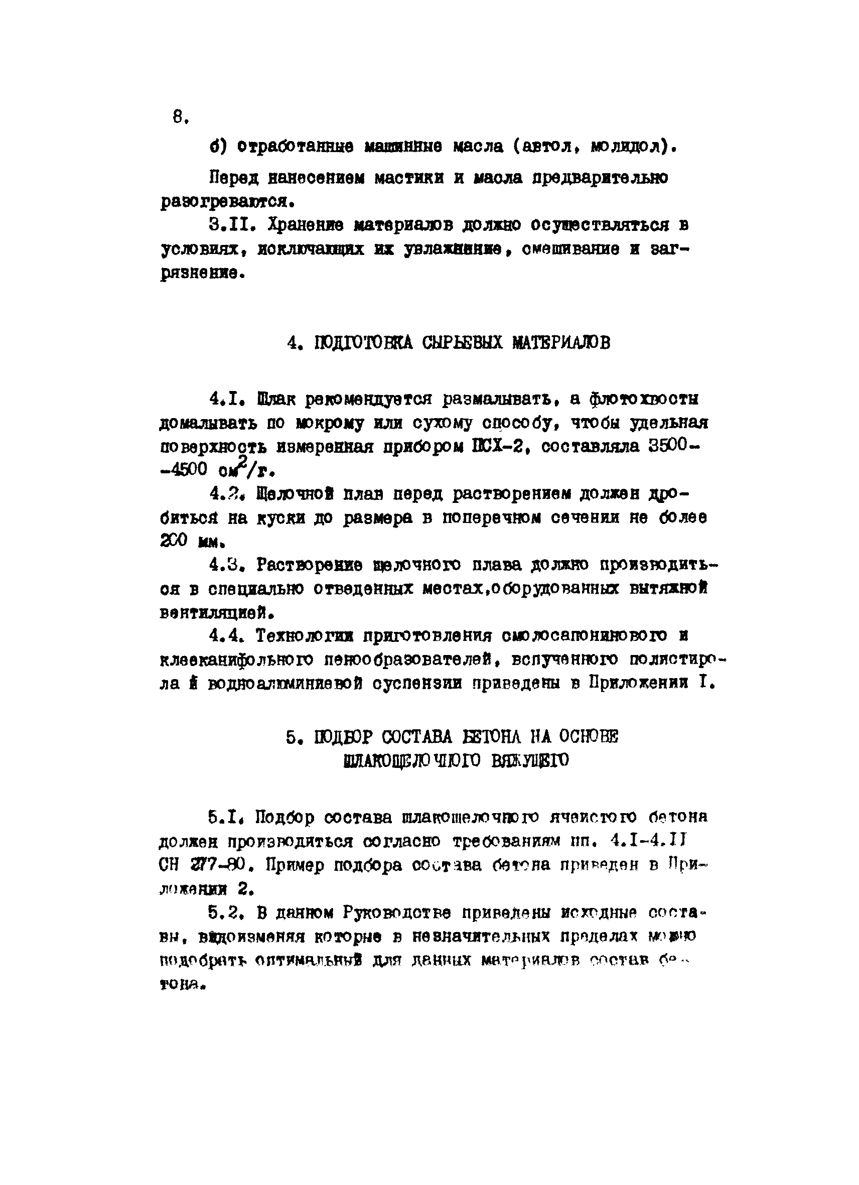 | Оглавление: | 1 Введение 2 Технические требования 3 Требования к материалам 4 Подготовка сырьевых материалов 5 Подбор состава бетона на основе шлакощелочного вяжущего 6 Приготовление бетонной смеси 7 Формирование и выдержка изделий из ячеистого бетона 8 Тепловлажностная обработка изделий 9 Послеавтоклавная обработка изделий. 10 Транспортирование теплоизоляционных изделий 11 Правила по технике безопасности и противопожарные мероприятия Приложение 1. Приготовление порообразователей Приложение 2. Пример подбора состава ячеистобетонной смеси на шлакощелочном вяжущем Приложение 3. Методика оценки качества технической пены Приложение 4. Приготовление ячеистобетонной смеси Приложение 5. Методика определения пластической прочности ячеистобетонной смеси |