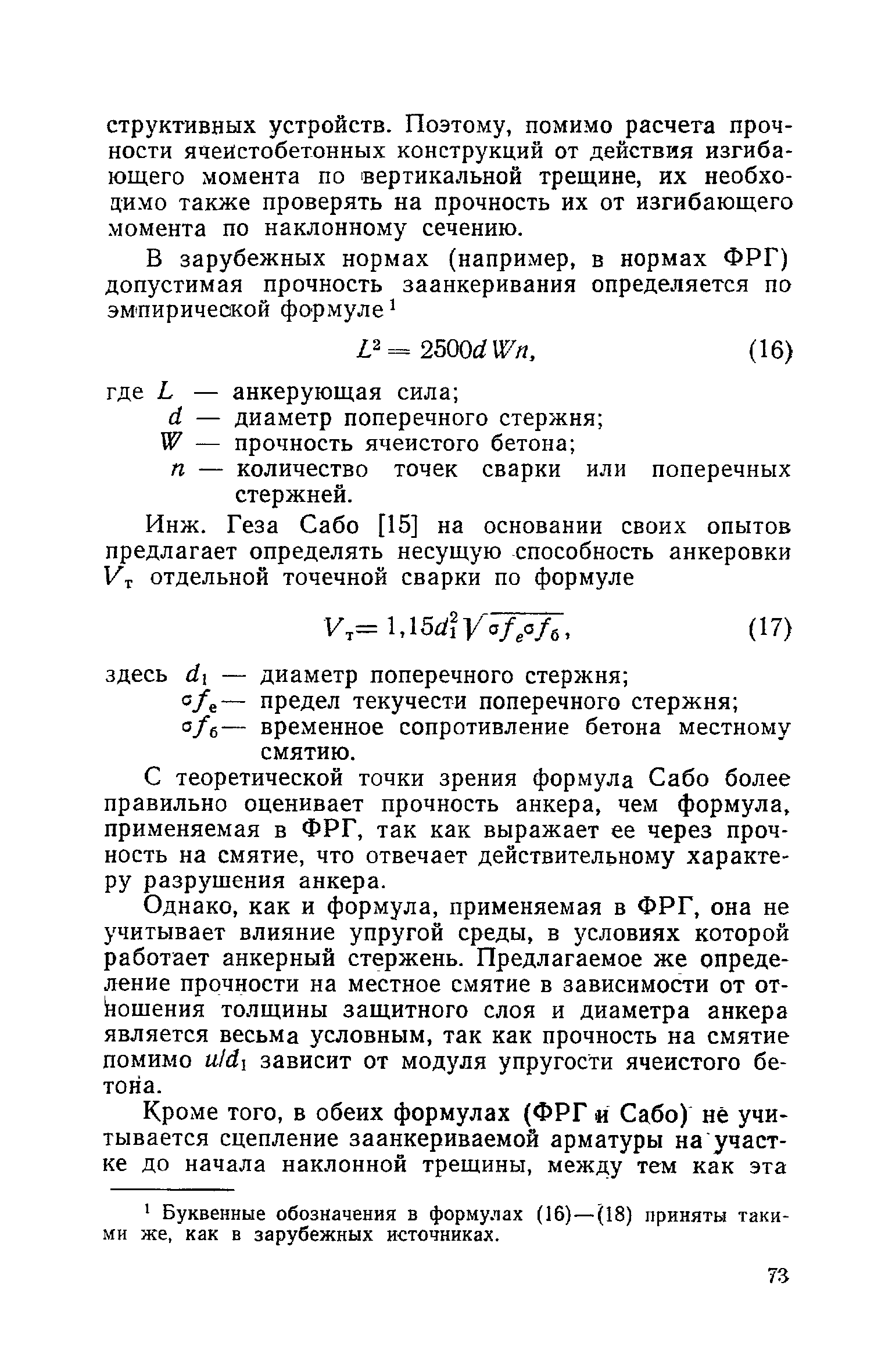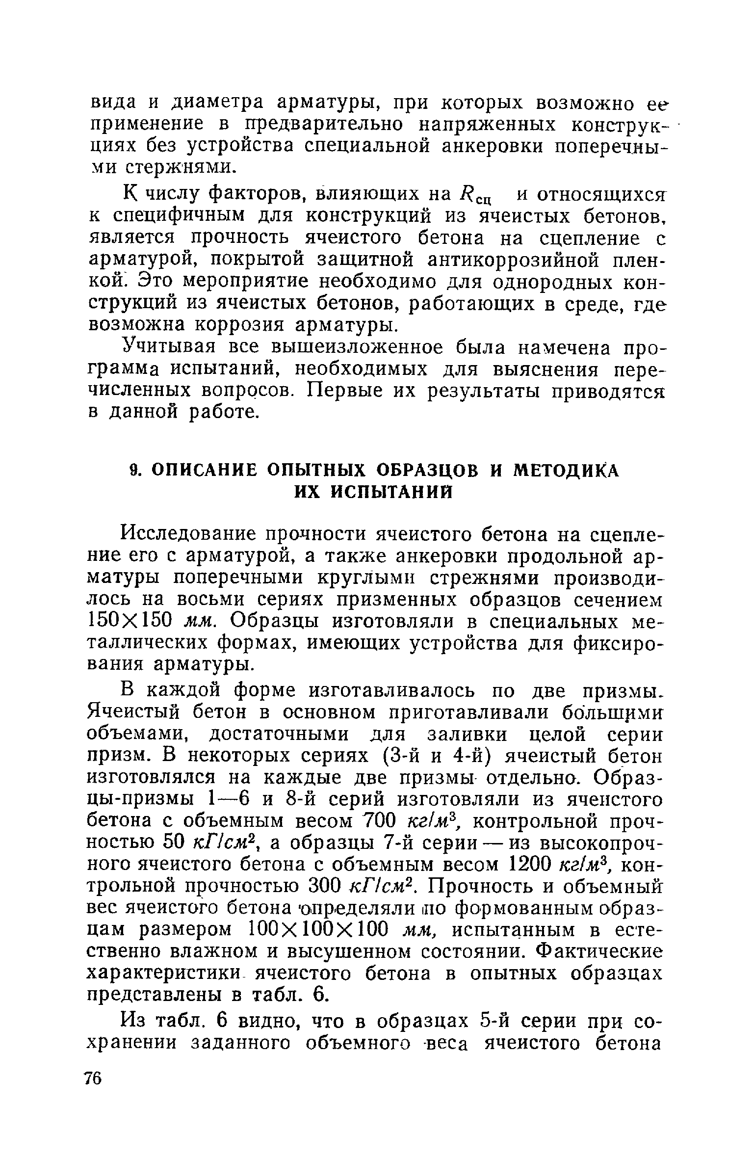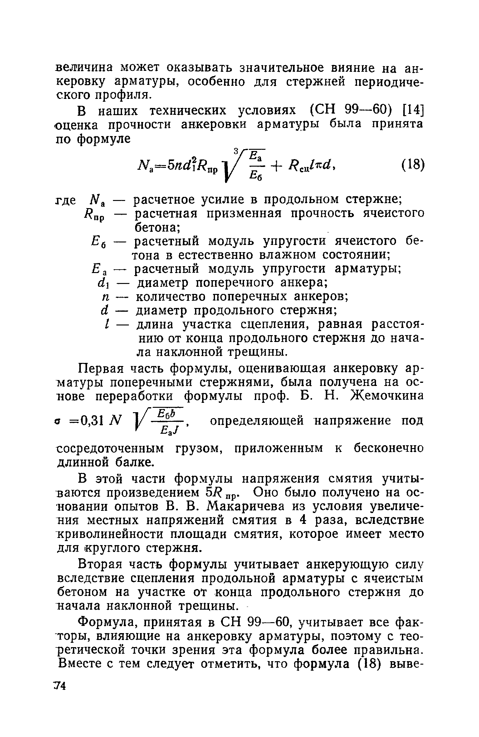 | Оглавление: | Предисловие I Физико-механические характеристики материалов в опытных конструкциях 1. Прочность ячеистого бетона в опытных конструкциях 2. Влажность ячеистого бетона в опытных конструкциях и ее влияние на прочность 3. Модуль упругости ячеистого бетона в опытных конструкциях II Исследование прочности и жесткости однородных изгибаемых элементов с обычным армированием 4. Методика испытаний 5. Описание опытных конструкций, цель и результаты их испытаний 6. Граница переармированных сечений и работа сжатой арматуры 7. Анализ деформаций III Исследование прочности сцепления ячеистого бетона с арматурой и анкеровки арматуры 8. Состояние вопроса 9. Описание опытных образцов и методика их испытаний 10. Прочность сцепления ячеистого бетона с арматурой 11. Анкеровка арматуры в ячеистом бетоне 12. Напряжение в арматуре при выдергивании IV Рекомендации по расчету и конструированию армированных конструкций из автоклавных ячеистых бетонов 13. Нормативные и расчетные сопротивления 14. Расчет на изгиб 15. Расчет наклонных сечений по изгибающему моменту 16. Расчет армированных изгибаемых конструкций из ячеистых бетонов по деформациям после появления в них трещин 17. Конструирование Литература |
