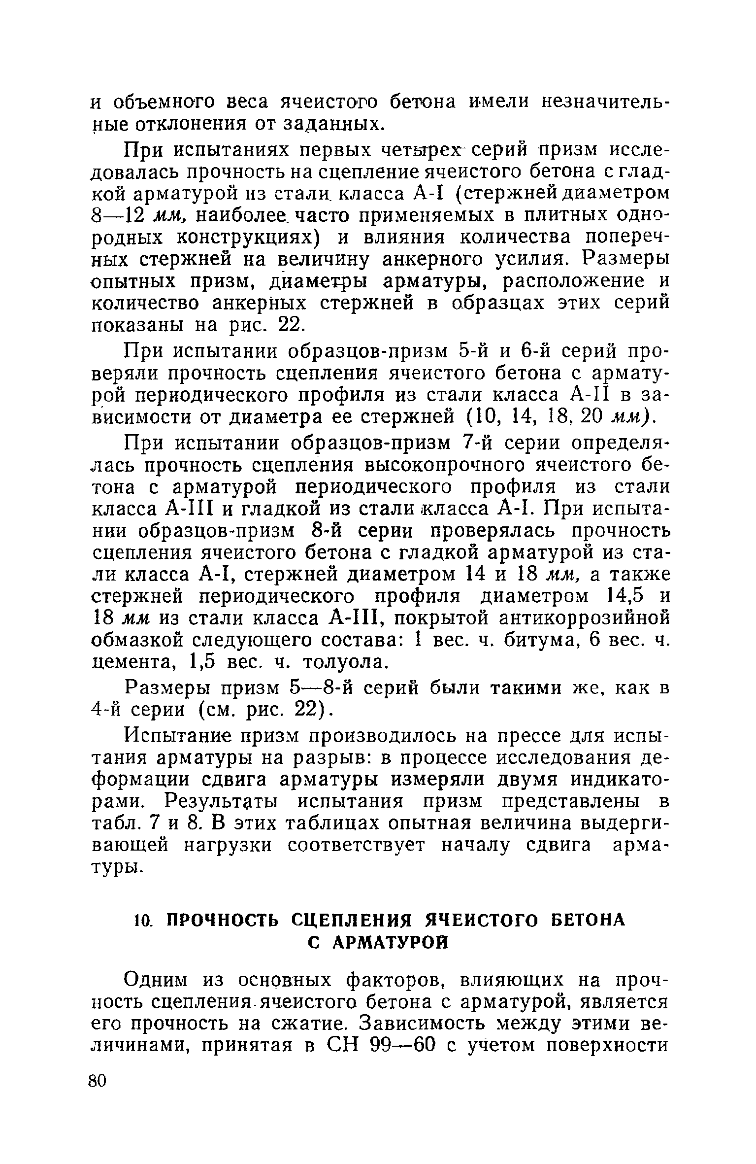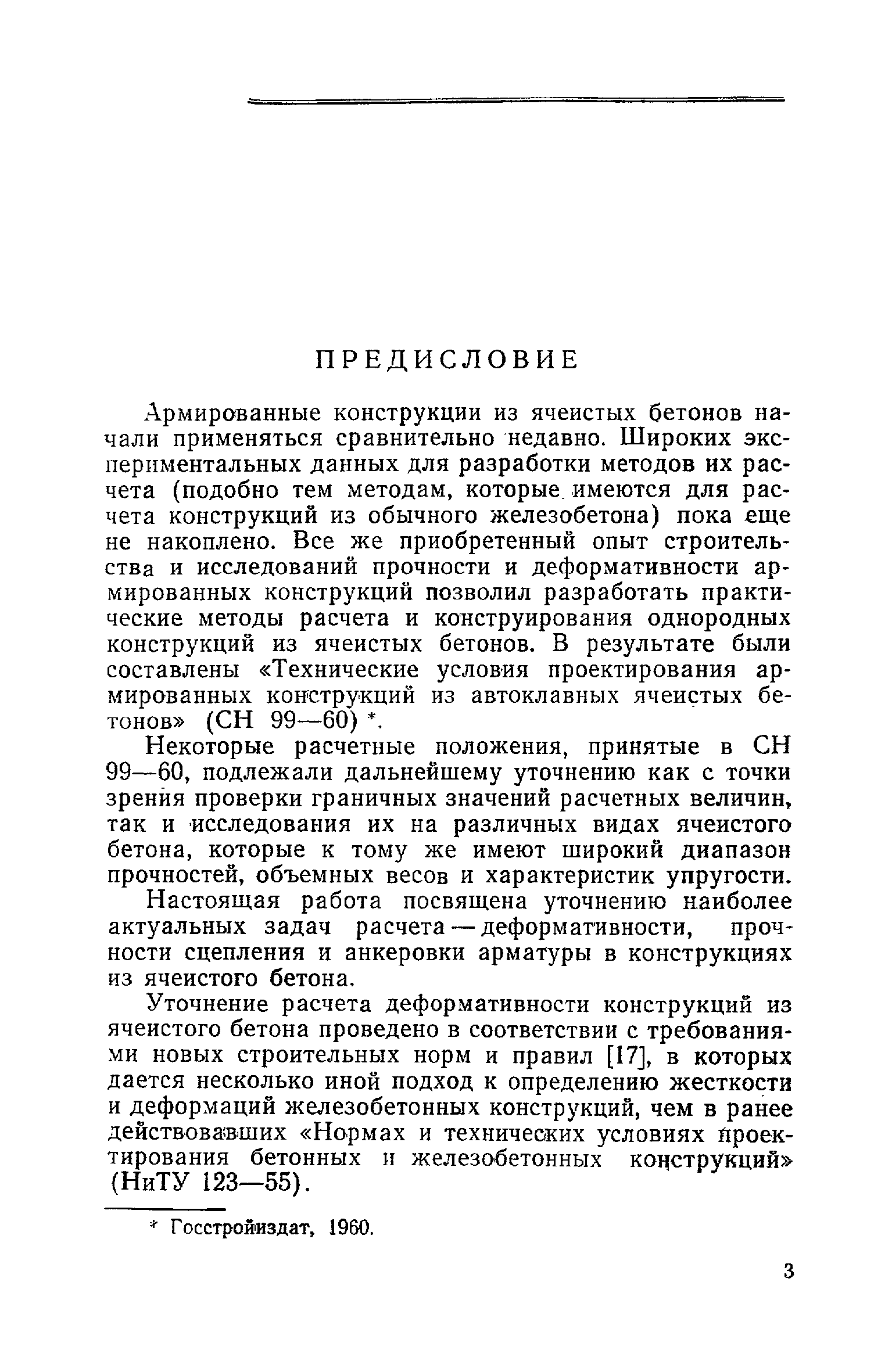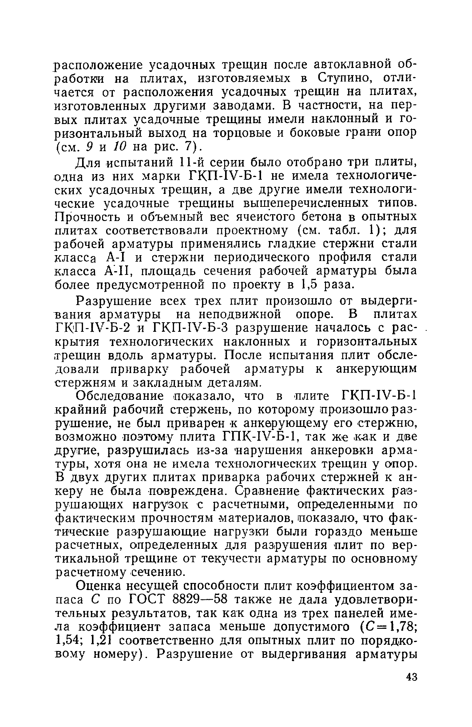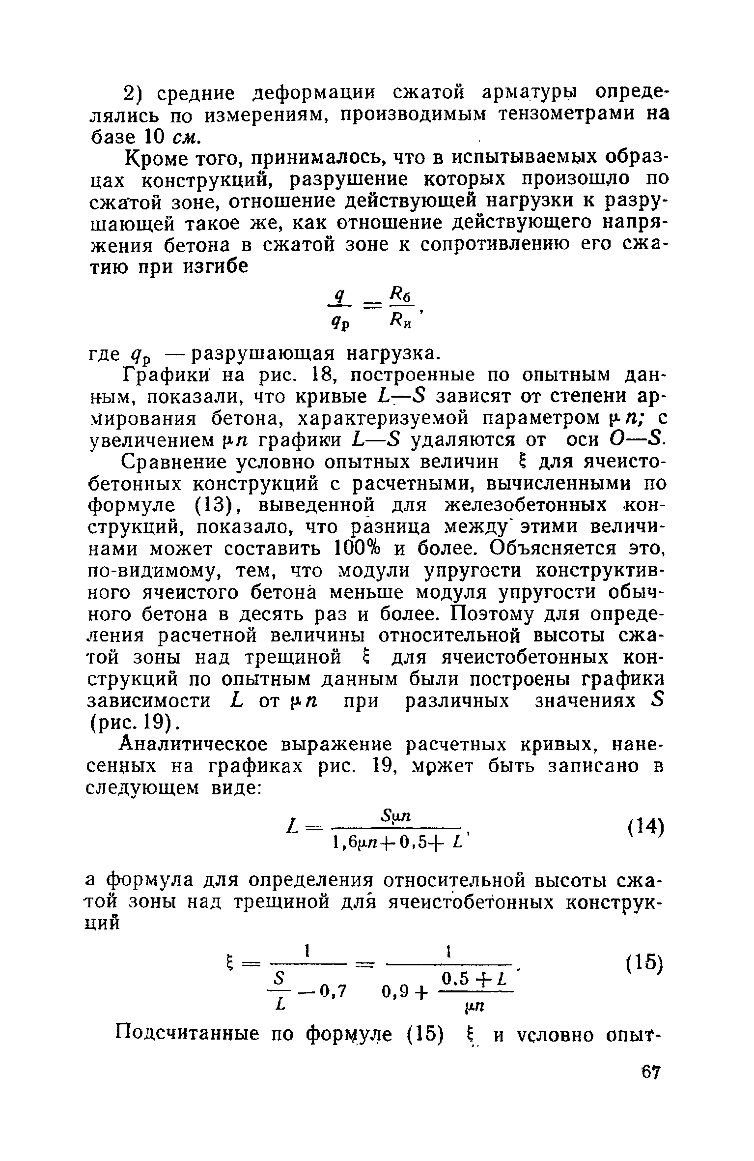 | Оглавление: | Предисловие I Физико-механические характеристики материалов в опытных конструкциях 1. Прочность ячеистого бетона в опытных конструкциях 2. Влажность ячеистого бетона в опытных конструкциях и ее влияние на прочность 3. Модуль упругости ячеистого бетона в опытных конструкциях II Исследование прочности и жесткости однородных изгибаемых элементов с обычным армированием 4. Методика испытаний 5. Описание опытных конструкций, цель и результаты их испытаний 6. Граница переармированных сечений и работа сжатой арматуры 7. Анализ деформаций III Исследование прочности сцепления ячеистого бетона с арматурой и анкеровки арматуры 8. Состояние вопроса 9. Описание опытных образцов и методика их испытаний 10. Прочность сцепления ячеистого бетона с арматурой 11. Анкеровка арматуры в ячеистом бетоне 12. Напряжение в арматуре при выдергивании IV Рекомендации по расчету и конструированию армированных конструкций из автоклавных ячеистых бетонов 13. Нормативные и расчетные сопротивления 14. Расчет на изгиб 15. Расчет наклонных сечений по изгибающему моменту 16. Расчет армированных изгибаемых конструкций из ячеистых бетонов по деформациям после появления в них трещин 17. Конструирование Литература |