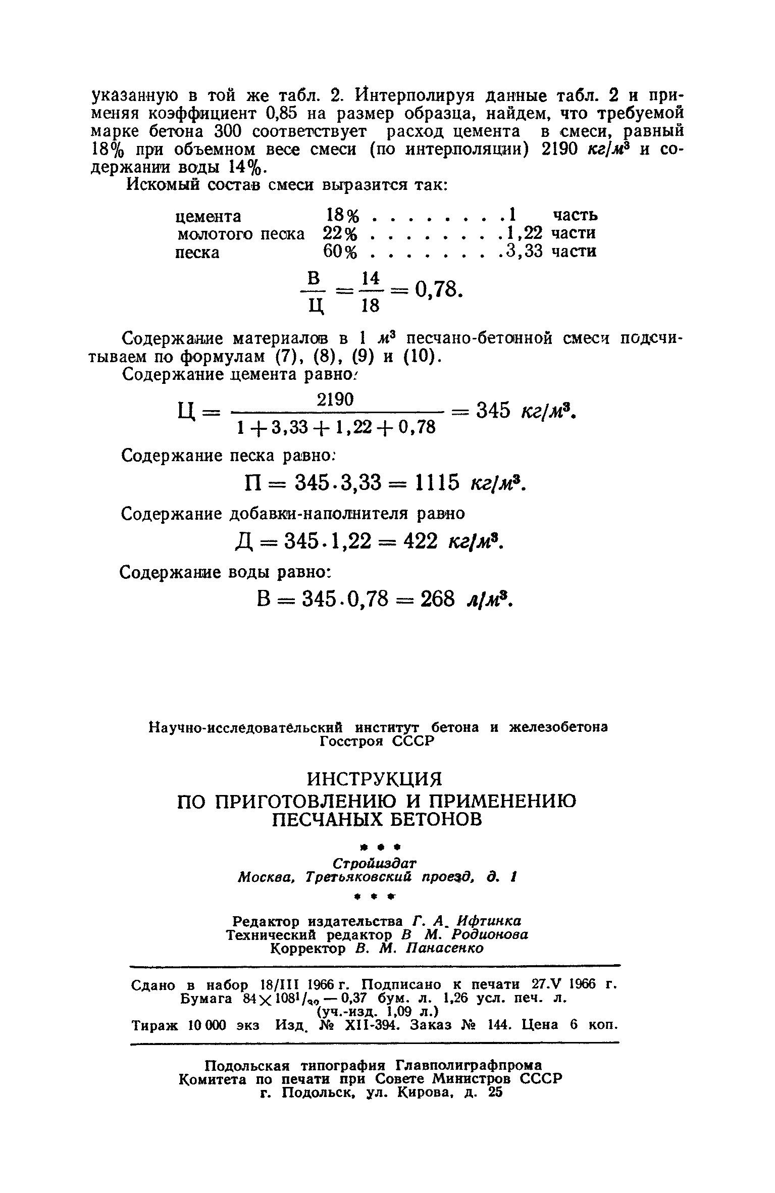 | Название рус.: | Инструкция по приготовлению и применению песчаных бетонов |