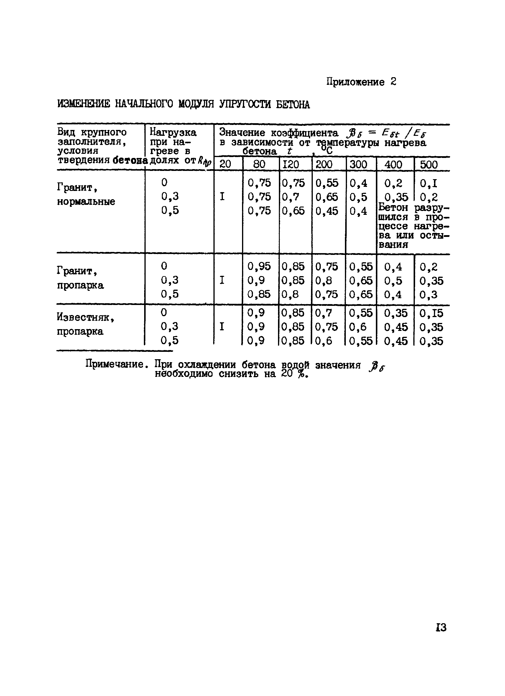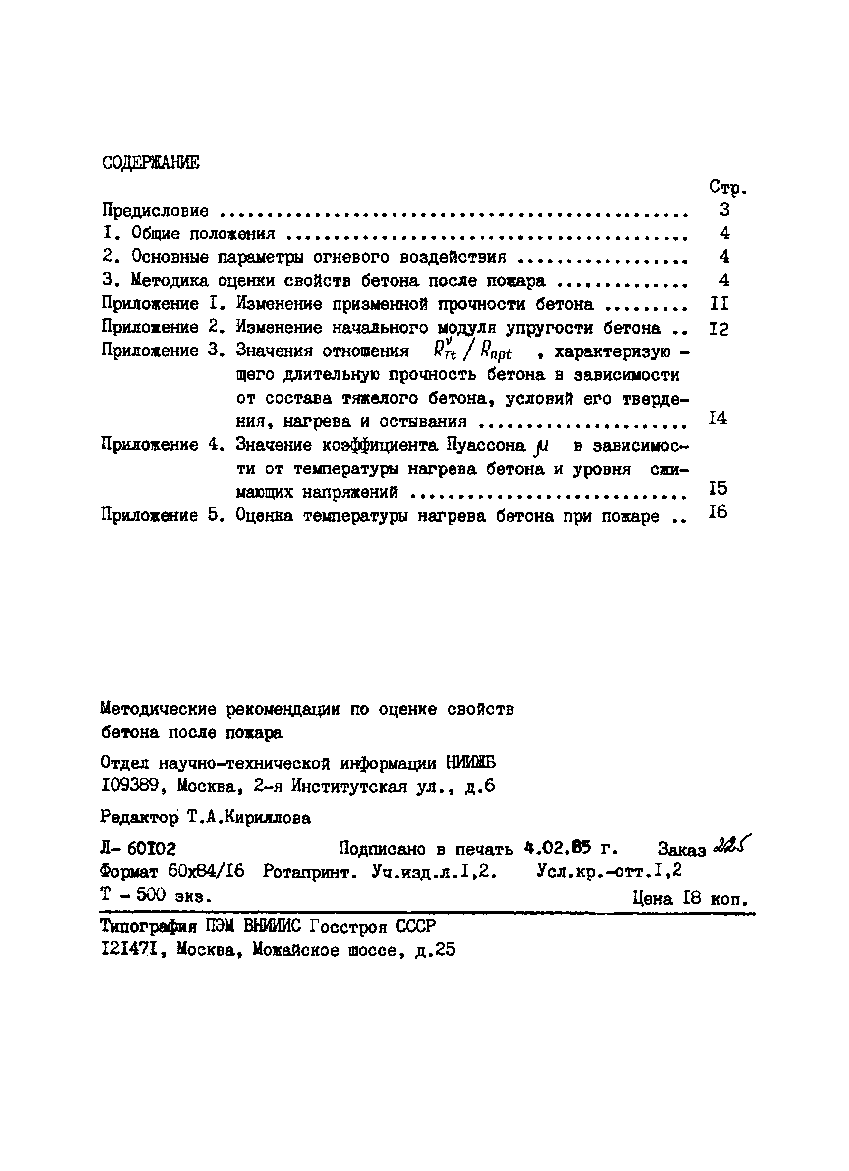 | Оглавление: | Предисловие 1 Общие положения 2 Основные параметры огневого воздействия 3 Методика оценки свойств бетона после пожара Приложение 1. Изменение призменной прочности бетона Приложение 2. Изменение начального модуля упругости бетона Приложение 3. Значения отношения, характеризующего длительную прочность бетона в зависимости от состава тяжелого бетона, условий его твердения, нагрева и остывания Приложение 4. Значение коэффициента Пуассона в зависимости от температуры нагрева бетона и уровни сжимающих напряжений Приложение 5. Оценка температуры нагрева бетона при пожаре |
