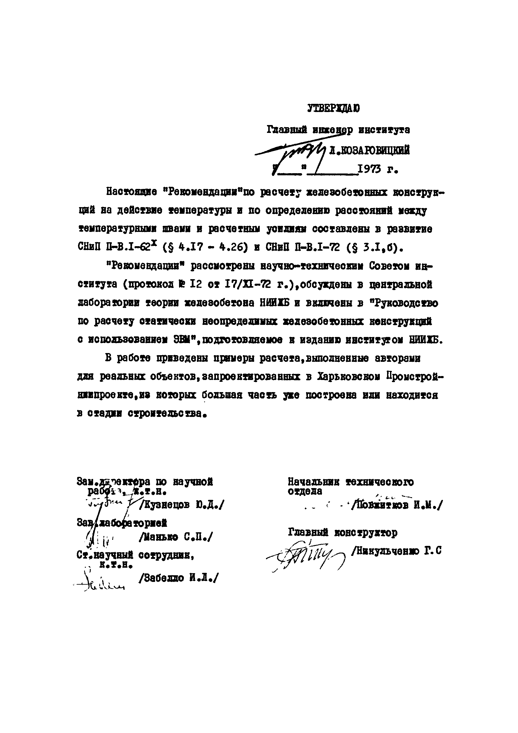 | Утверждён: | 17.11.1972 Харьковский Промстройниипроект Госстроя СССР (Kharkov Promstroyniiproject, USSR Gosstroy 12) |