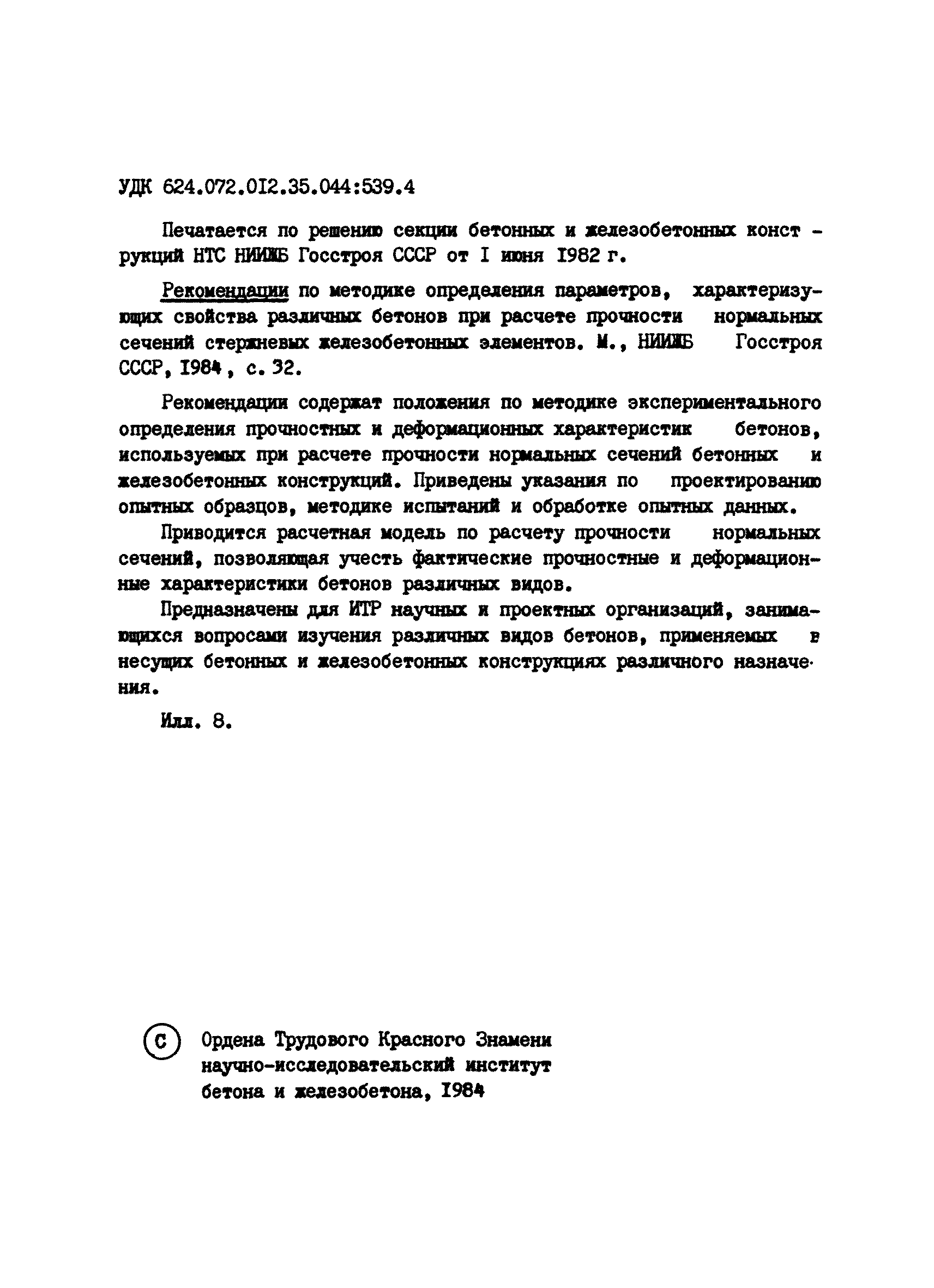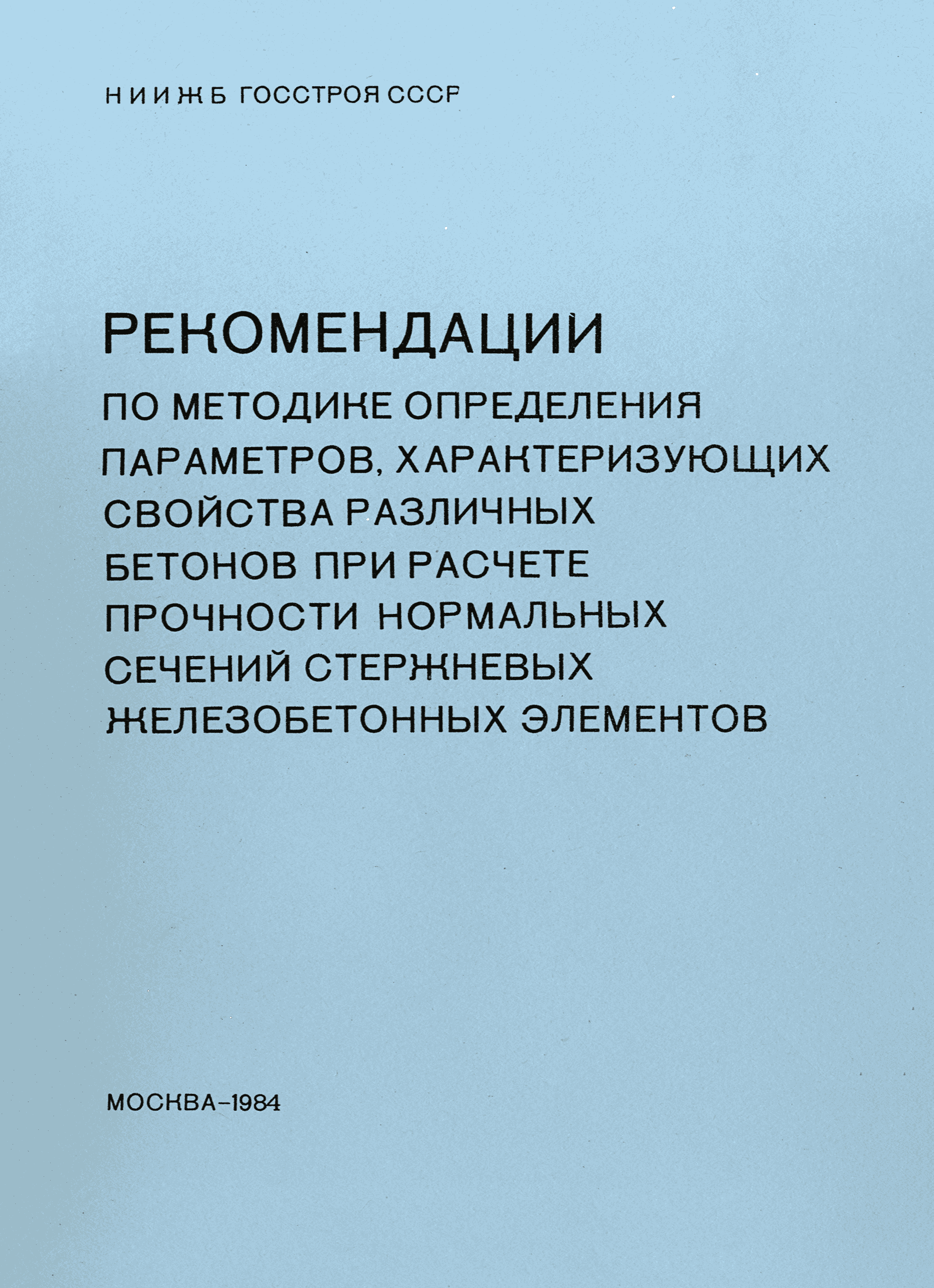 | Название рус.: | Рекомендации по методике определения параметров, характеризующих свойства различных бетонов при расчете прочности нормальных сечений стержневых железобетонных элементов |