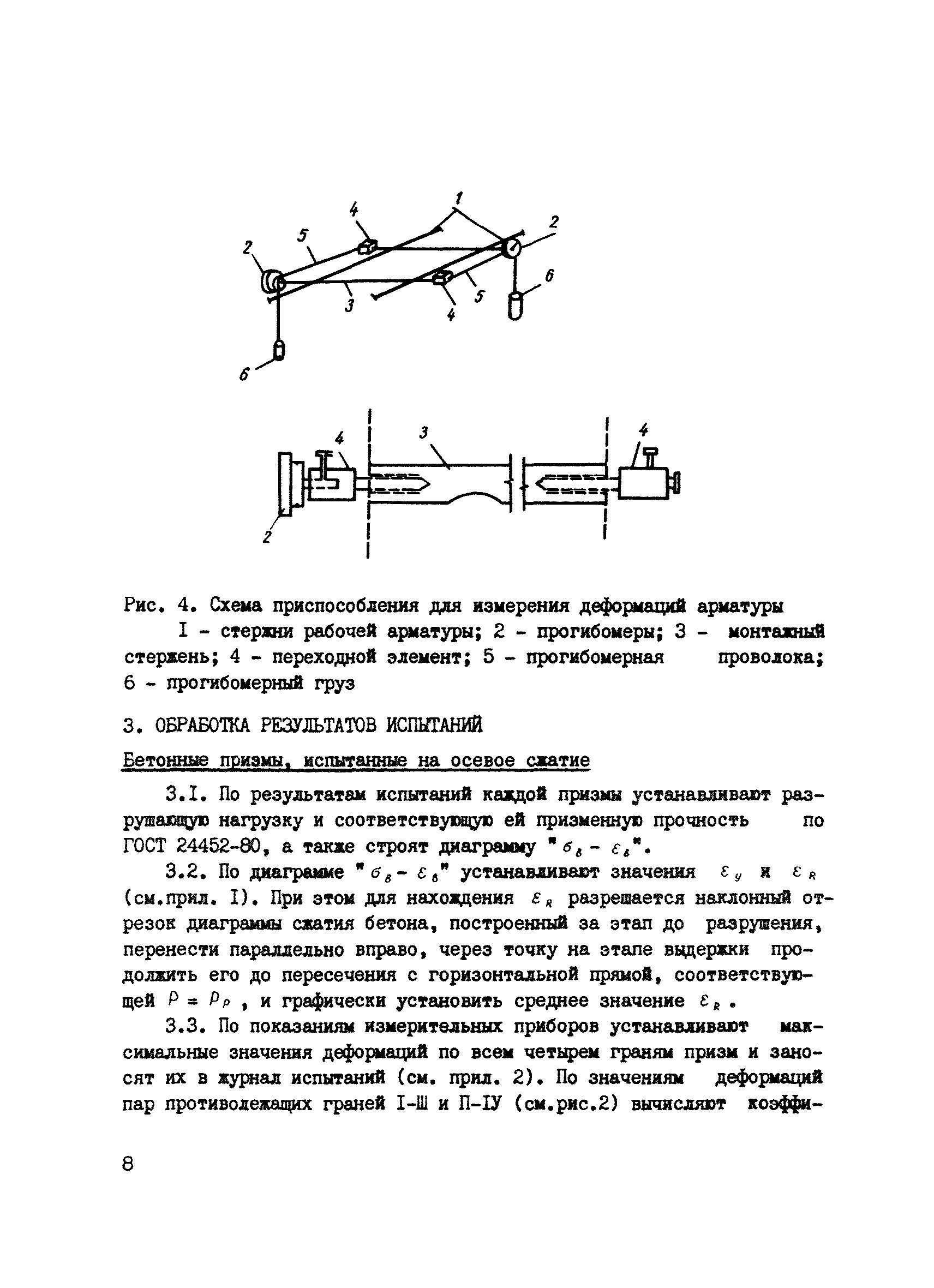 | Оглавление: | 1. Общие положения и область применения 2. Методика экспериментальных исследований 3. Обработка результатов испытаний 4. Метод расчета прочности нормальных сечений элементов из различных видов бетонов, учитывающий фактические прочностные и деформационные характеристики Приложение 1 Построение опытной диаграммы Приложение 2 Журнал испытаний бетонных призм на осевое сжатие Приложение 3 Журнал испытаний бетонных призм на внецентренное сжатие Приложение 4 Журнал испытаний железобетонных балок на изгиб Приложение 5 Примеры расчета по прочности железобетонного ригеля прямоугольного сечения со смешанным армированием Приложение 6 Основные буквенные обозначения |