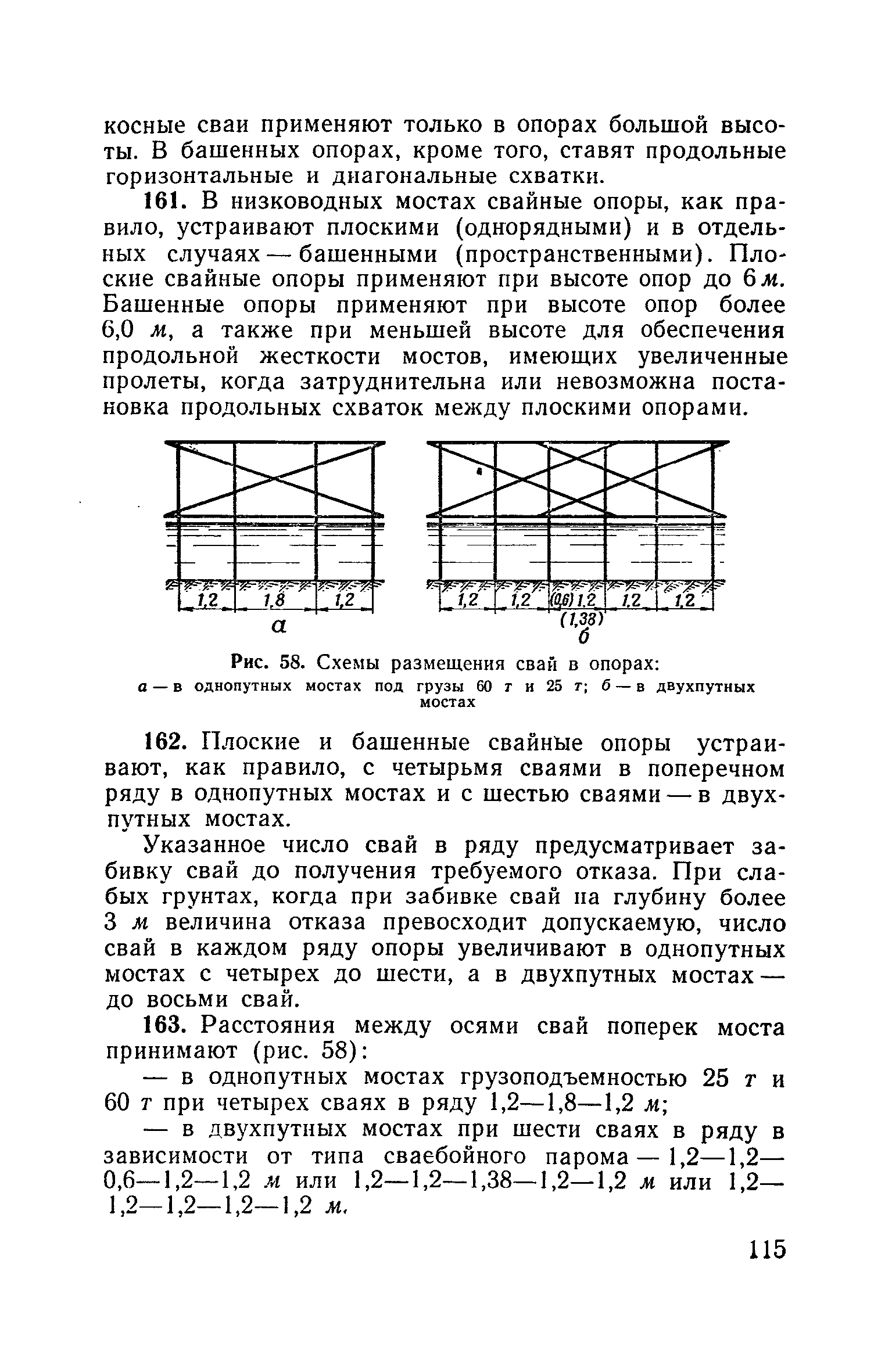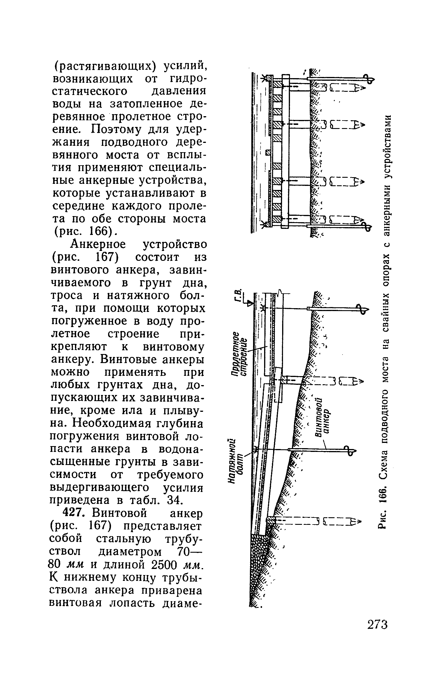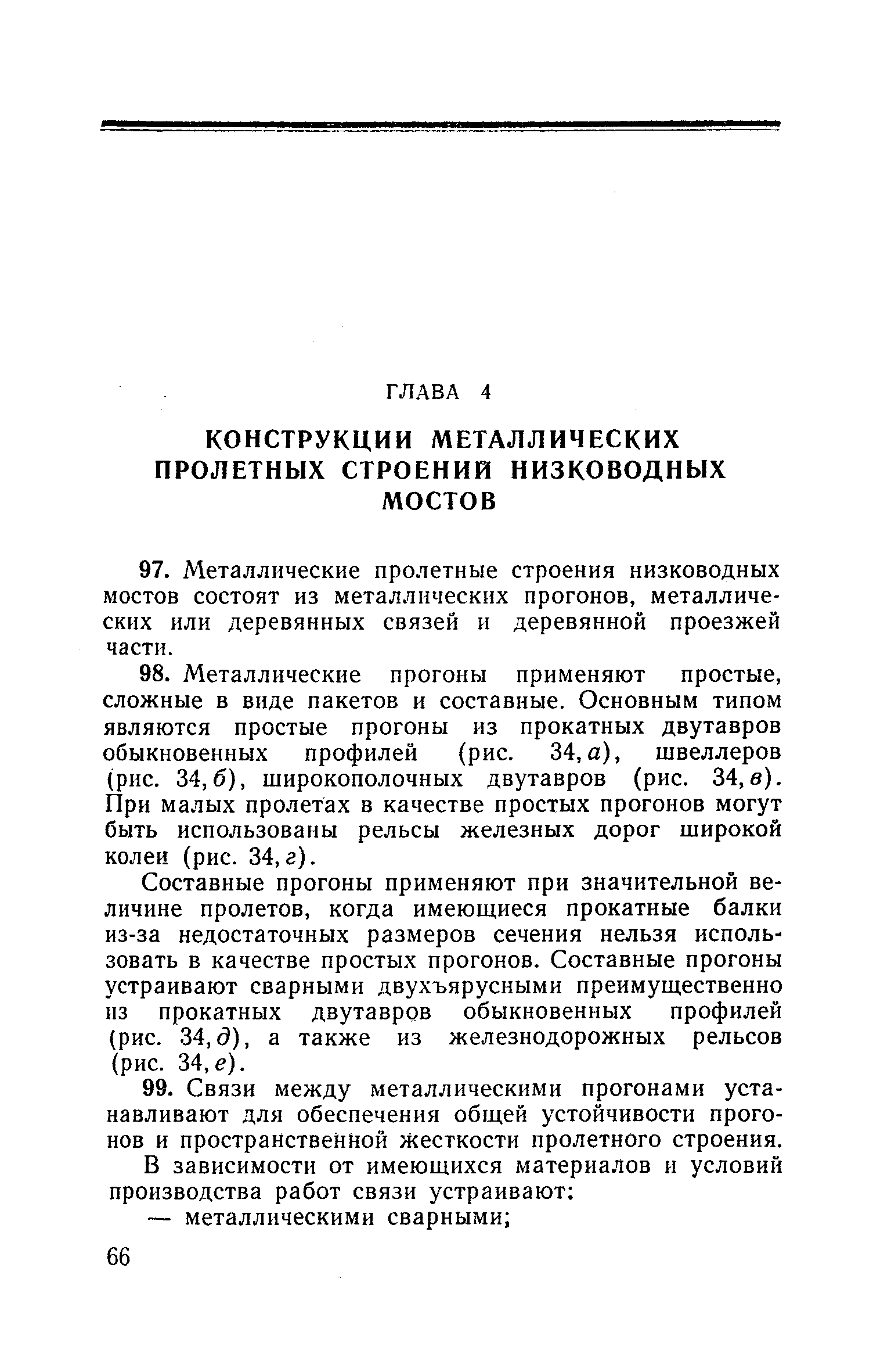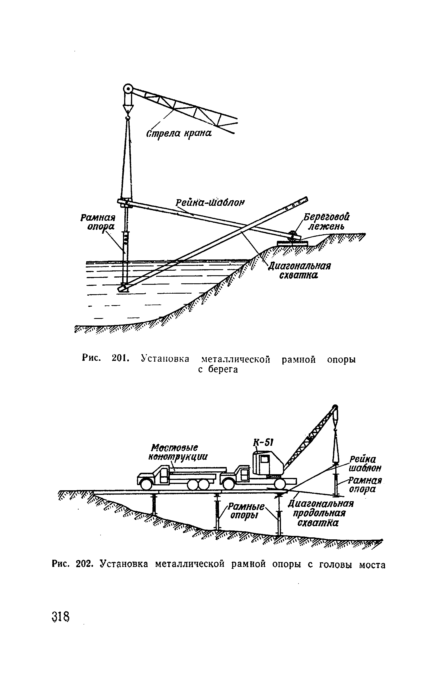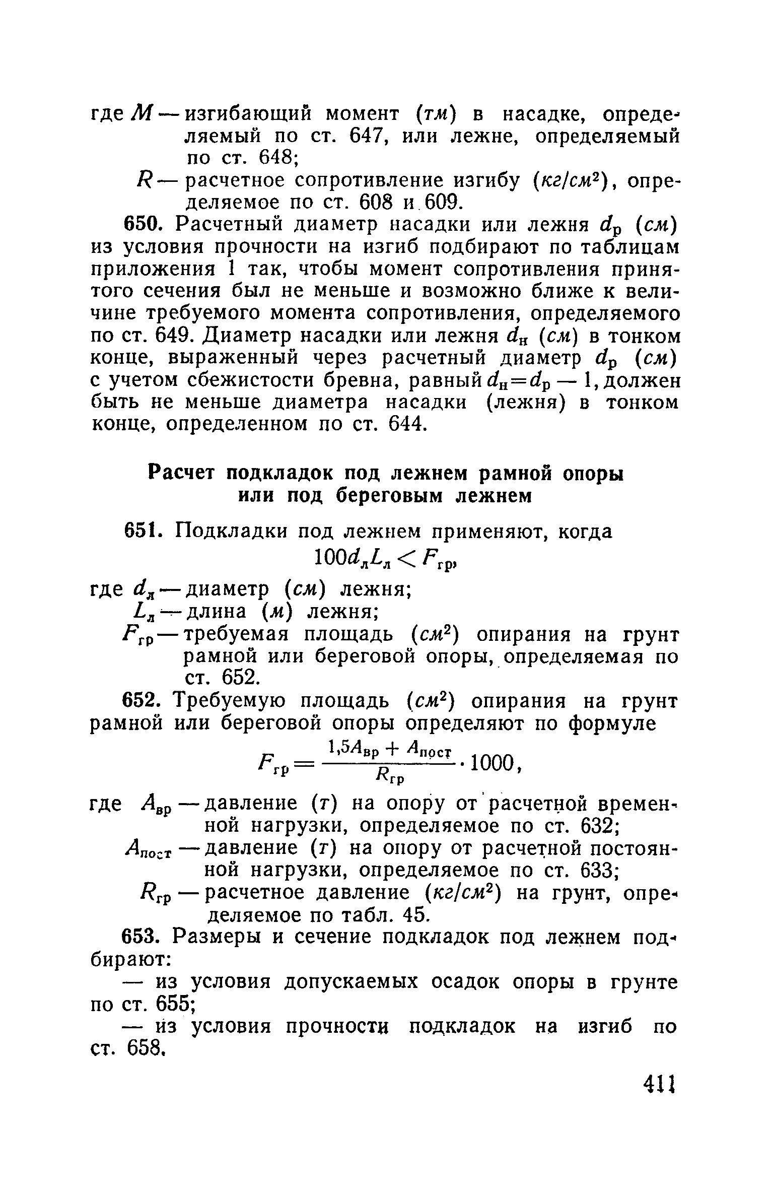 | Оглавление: | Глава 1. Общие положения Глава 2. Инженерная разведка района постройки моста Глава 3. Конструкции деревянных пролетных строений низководных мостов 1. Блочные пролетные строения Пролетные строения из колейных блоков Пролетные строения из блоков прогонов и щитов проезжей части а) Блоки простых прогонов б) Блоки сложных прогонов в) Блоки составных прогонов 2. Пролетные строения из отдельных элементов с простыми и сложными прогонами Проезжая часть Простые прогоны Сложные прогоны Глава 4. Конструкции металлических пролетных строений низководных мостов 1. Блочные пролетные строения Блоки из четырех прогонов Блоки из двух прогонов Проезжая часть 2. Пролетные строения из отдельных элементов Несущая конструкция с простыми прогонами и пакетами Несущая конструкция с составными прогонами Проезжая часть Глава 5. Промежуточные опоры низководных мостов 1. Свайные опоры 2. Рамные деревянные опоры 3. Клеточные опоры 4. Обеспечение продольной устойчивости моста Глава 6. Береговые опоры и сопряжение моста с берегами Глава 7. Изготовление и транспортировка мостовых конструкций 1. Общие положения 2. Изготовление конструкций низководных деревянных мостов Лесозаготовительные работы Лесопильные работы Работы по изготовлению деревянных мостовых конструкций Изготовление колейных блоков Сборка блоков прогонов Изготовление конструкций пролетного строения из блоков прогонов и щитов проезжей части Особенности сборки блоков сложных прогонов Изготовление составных прогонов на стальных цилиндрических нагелях и сборка блоков из двух прогонов Изготовление свай Изготовление насадок и лежней опор Изготовление элементов и сборка рамных опор Особенности изготовления элементов мостовых конструкций при постройке мостов из отдельных элементов 3. Изготовление конструкций металлических мостов Общие положения Изготовление металлических элементов Изготовление элементов проезжей части Изготовление блоков прогонов Изготовление пролетных строений из отдельных элементов 4. Транспортировка мостовых конструкций Глава 8. Постройка низководных мостов 1. Общие положения 2. Разбивка оси моста и осей опор 3. Средства механизации работ при постройке мостов 4. Глубина забивки свай в опорах 5. Организация в производство работ при постройке низководных мостов Общие положения Постройка мостов на свайных опорах при помощи комплекта мостостроительных средств КМС Постройка мостов на свайных опорах при помощи дизель-молотов ДМ-150 с одностреловыми копрами ОСК и дизель-молотов ДБ-45 с приспособлениями ПУС-1 для установки свай Постройка мостов на рамных опорах при помощи паромов с домкратами из комплекта КМС Устройство береговых опор и сопряжений моста с берегами Постройка мостов из отдельных элементов Особенности постройки двухпутных мостов на свайных опорах Особенности постройки мостов на свайных опорах с увеличенными пролетами Глава 9. Подводные мосты 1. Общие положения 2. Особенности конструкции промежуточных опор 3. Береговые опоры и сопряжение подводного моста с берегами 4. Особенности конструкции пролетных строений подводных мостов 5. Особенности постройки подводных мостов на свайных опорах 6. Особенности постройки подводных мостов на рамных опорах 7. Особенности постройки подводных мостов с металлическими прогонами Глава 10. Особенности к