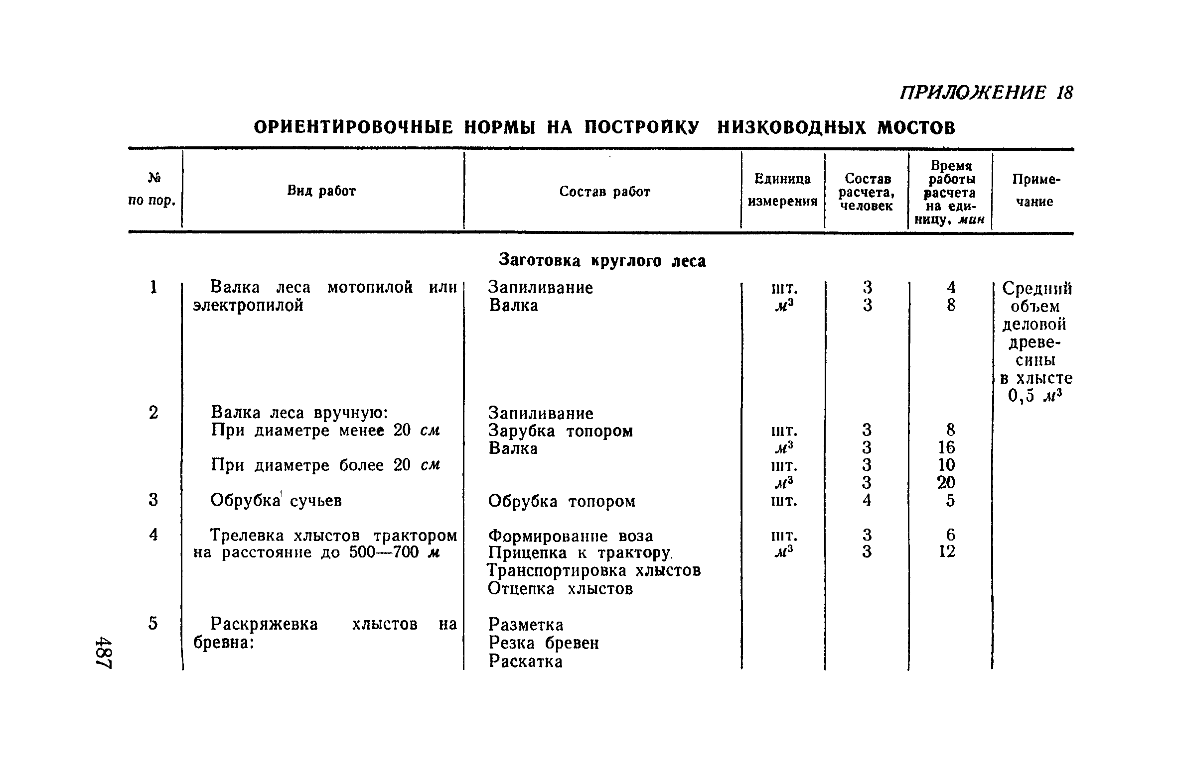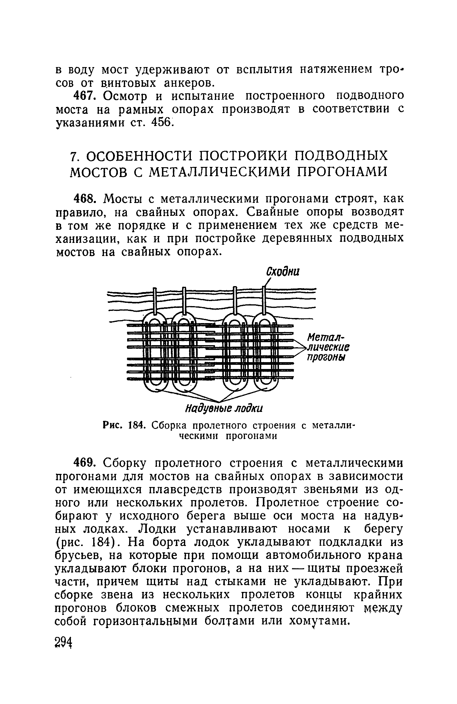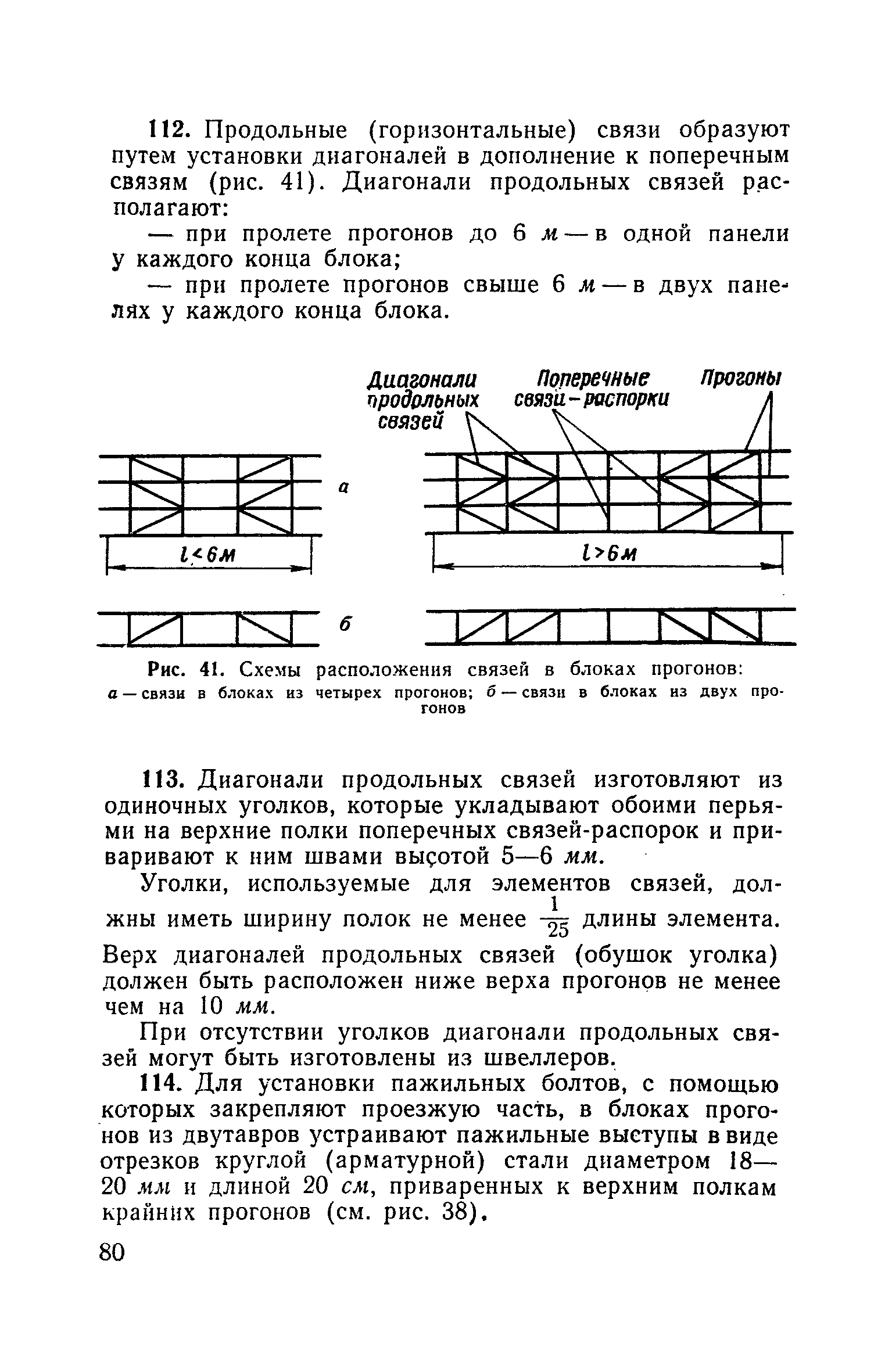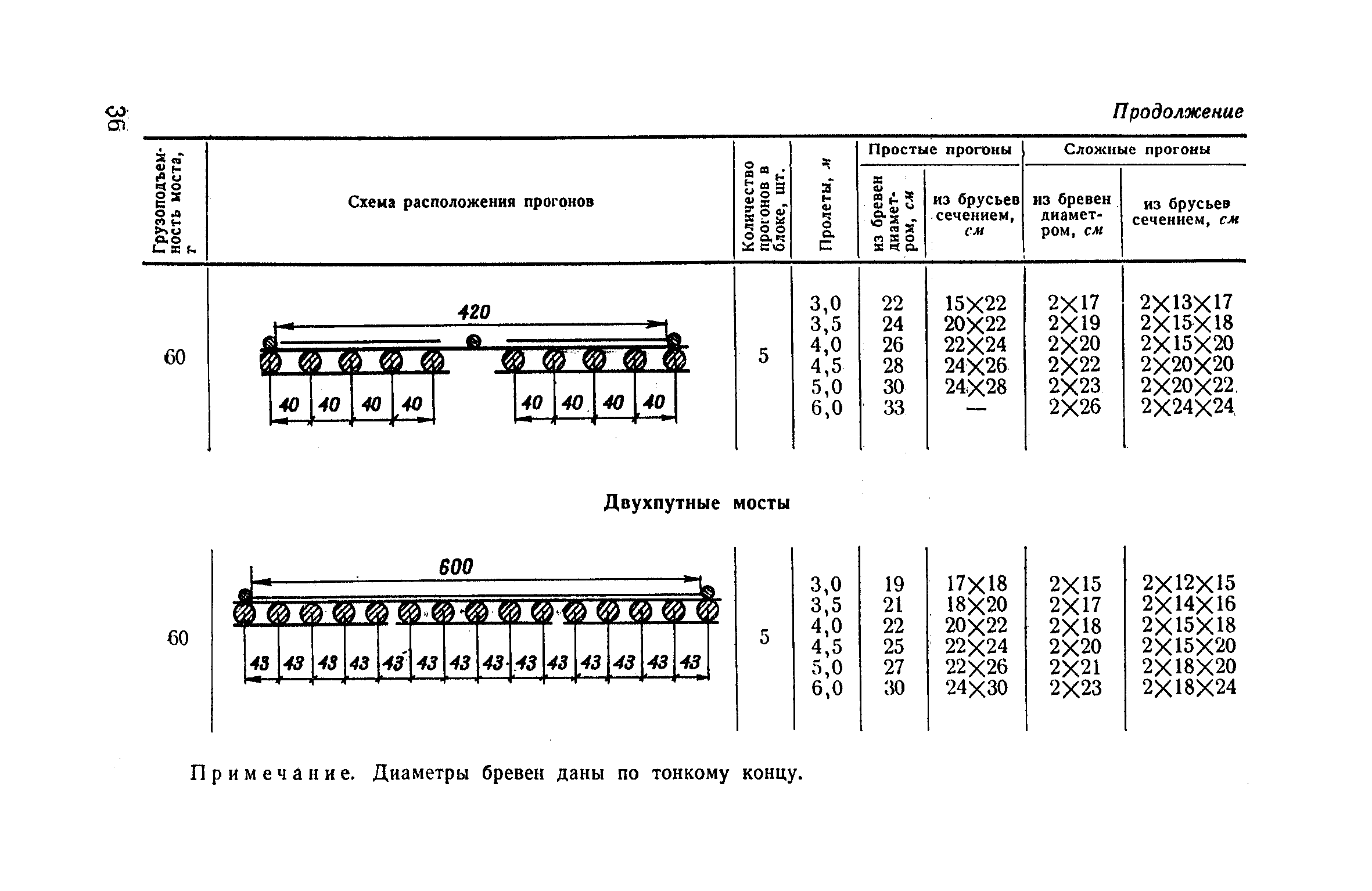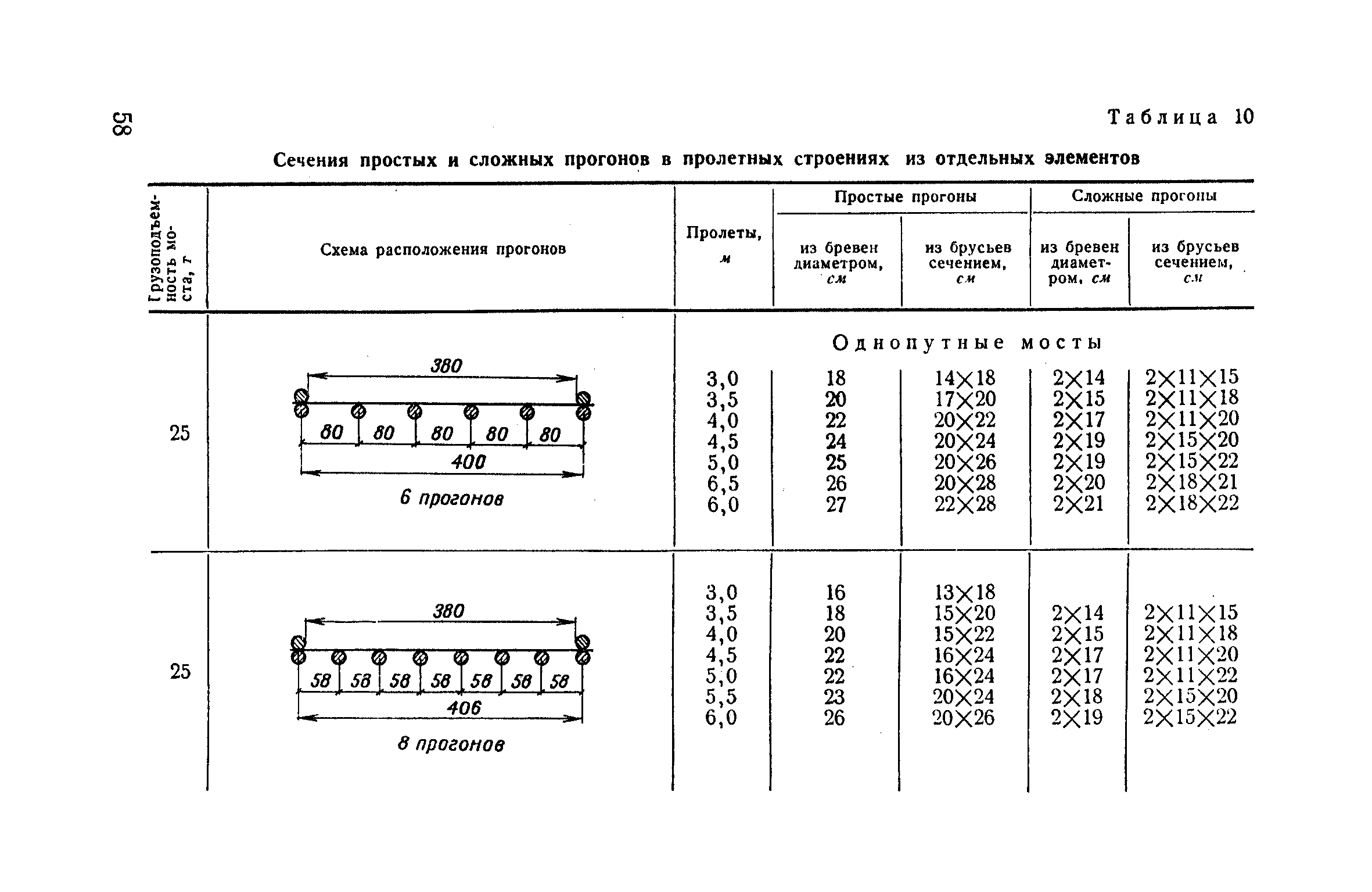 | Оглавление: | Глава 1. Общие положения Глава 2. Инженерная разведка района постройки моста Глава 3. Конструкции деревянных пролетных строений низководных мостов 1. Блочные пролетные строения Пролетные строения из колейных блоков Пролетные строения из блоков прогонов и щитов проезжей части а) Блоки простых прогонов б) Блоки сложных прогонов в) Блоки составных прогонов 2. Пролетные строения из отдельных элементов с простыми и сложными прогонами Проезжая часть Простые прогоны Сложные прогоны Глава 4. Конструкции металлических пролетных строений низководных мостов 1. Блочные пролетные строения Блоки из четырех прогонов Блоки из двух прогонов Проезжая часть 2. Пролетные строения из отдельных элементов Несущая конструкция с простыми прогонами и пакетами Несущая конструкция с составными прогонами Проезжая часть Глава 5. Промежуточные опоры низководных мостов 1. Свайные опоры 2. Рамные деревянные опоры 3. Клеточные опоры 4. Обеспечение продольной устойчивости моста Глава 6. Береговые опоры и сопряжение моста с берегами Глава 7. Изготовление и транспортировка мостовых конструкций 1. Общие положения 2. Изготовление конструкций низководных деревянных мостов Лесозаготовительные работы Лесопильные работы Работы по изготовлению деревянных мостовых конструкций Изготовление колейных блоков Сборка блоков прогонов Изготовление конструкций пролетного строения из блоков прогонов и щитов проезжей части Особенности сборки блоков сложных прогонов Изготовление составных прогонов на стальных цилиндрических нагелях и сборка блоков из двух прогонов Изготовление свай Изготовление насадок и лежней опор Изготовление элементов и сборка рамных опор Особенности изготовления элементов мостовых конструкций при постройке мостов из отдельных элементов 3. Изготовление конструкций металлических мостов Общие положения Изготовление металлических элементов Изготовление элементов проезжей части Изготовление блоков прогонов Изготовление пролетных строений из отдельных элементов 4. Транспортировка мостовых конструкций Глава 8. Постройка низководных мостов 1. Общие положения 2. Разбивка оси моста и осей опор 3. Средства механизации работ при постройке мостов 4. Глубина забивки свай в опорах 5. Организация в производство работ при постройке низководных мостов Общие положения Постройка мостов на свайных опорах при помощи комплекта мостостроительных средств КМС Постройка мостов на свайных опорах при помощи дизель-молотов ДМ-150 с одностреловыми копрами ОСК и дизель-молотов ДБ-45 с приспособлениями ПУС-1 для установки свай Постройка мостов на рамных опорах при помощи паромов с домкратами из комплекта КМС Устройство береговых опор и сопряжений моста с берегами Постройка мостов из отдельных элементов Особенности постройки двухпутных мостов на свайных опорах Особенности постройки мостов на свайных опорах с увеличенными пролетами Глава 9. Подводные мосты 1. Общие положения 2. Особенности конструкции промежуточных опор 3. Береговые опоры и сопряжение подводного моста с берегами 4. Особенности конструкции пролетных строений подводных мостов 5. Особенности постройки подводных мостов на свайных опорах 6. Особенности постройки подводных мостов на рамных опорах 7. Особенности постройки подводных мостов с металлическими прогонами Глава 10. Особенности к
