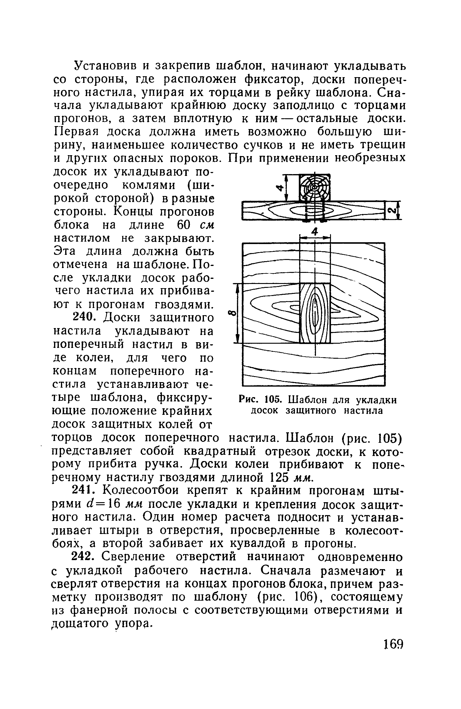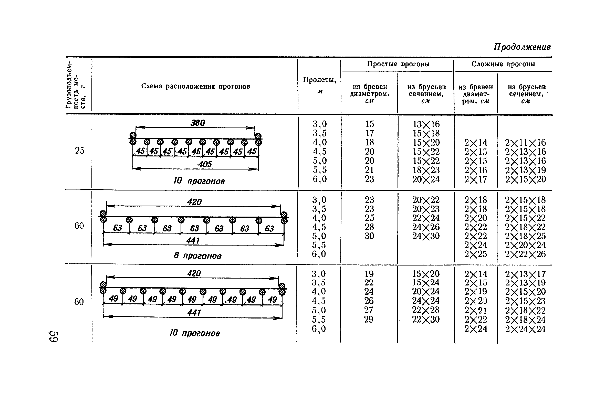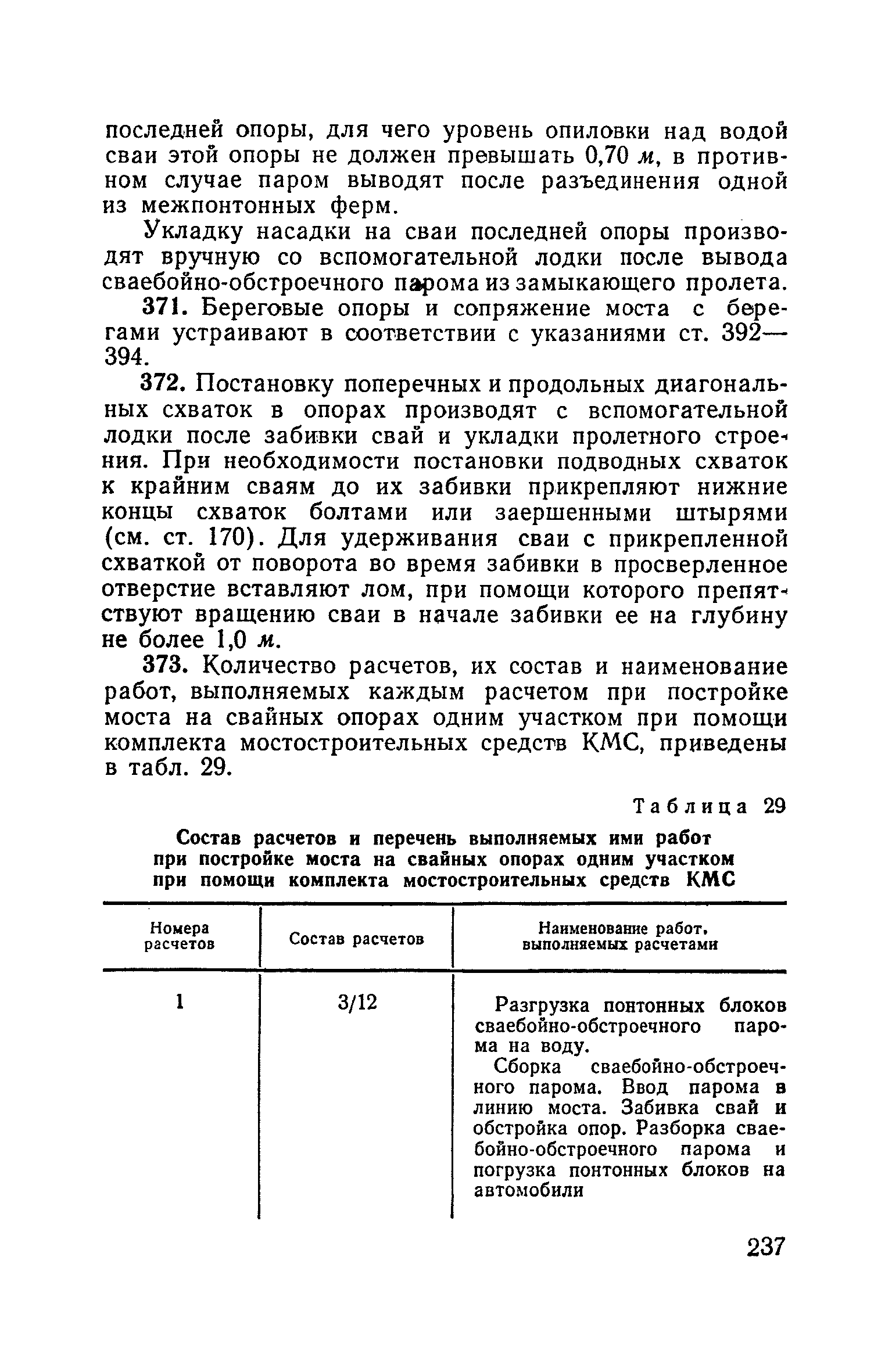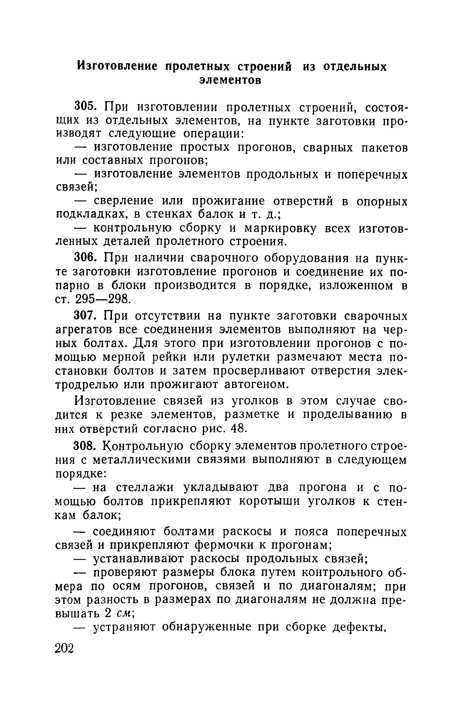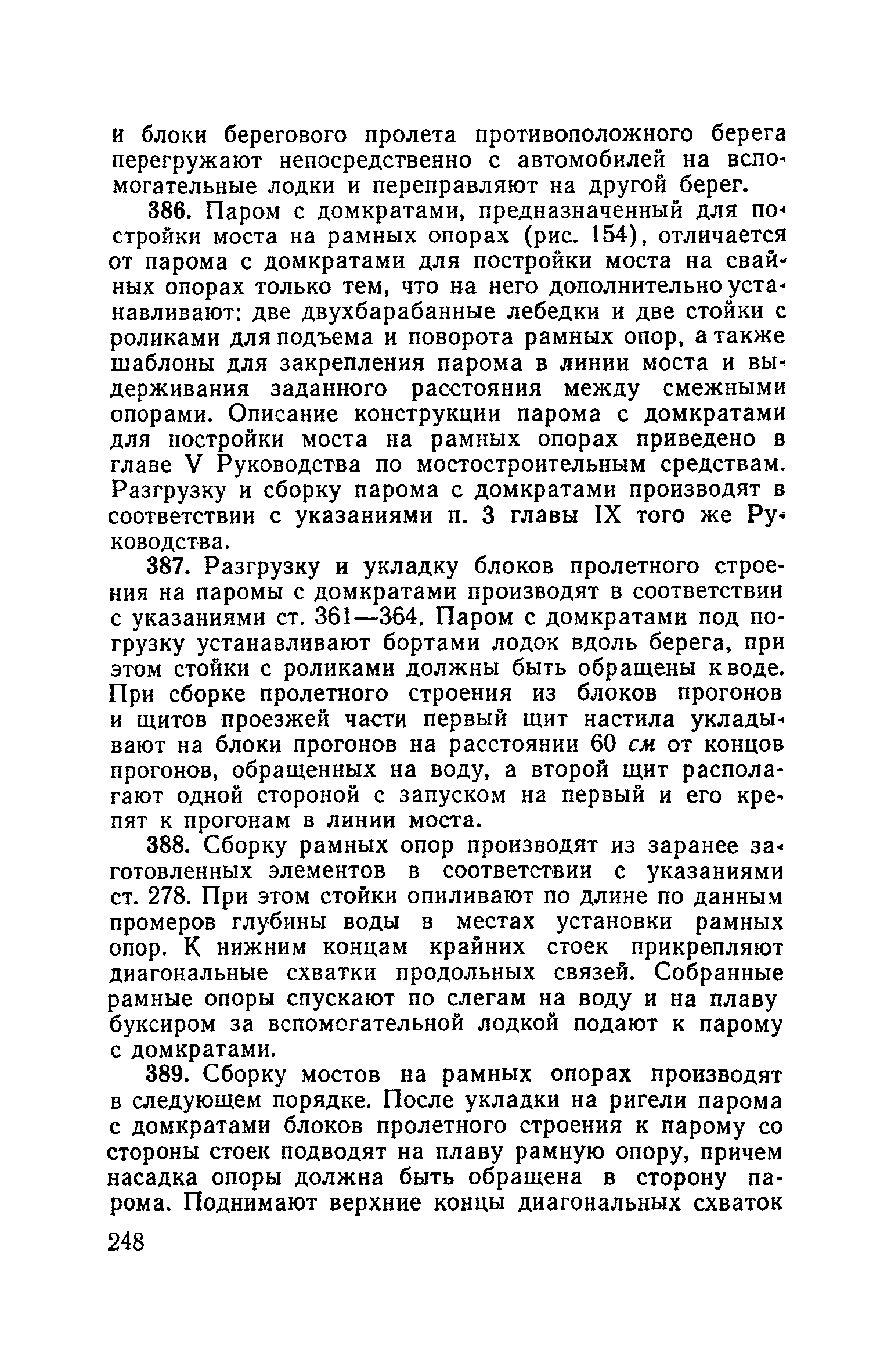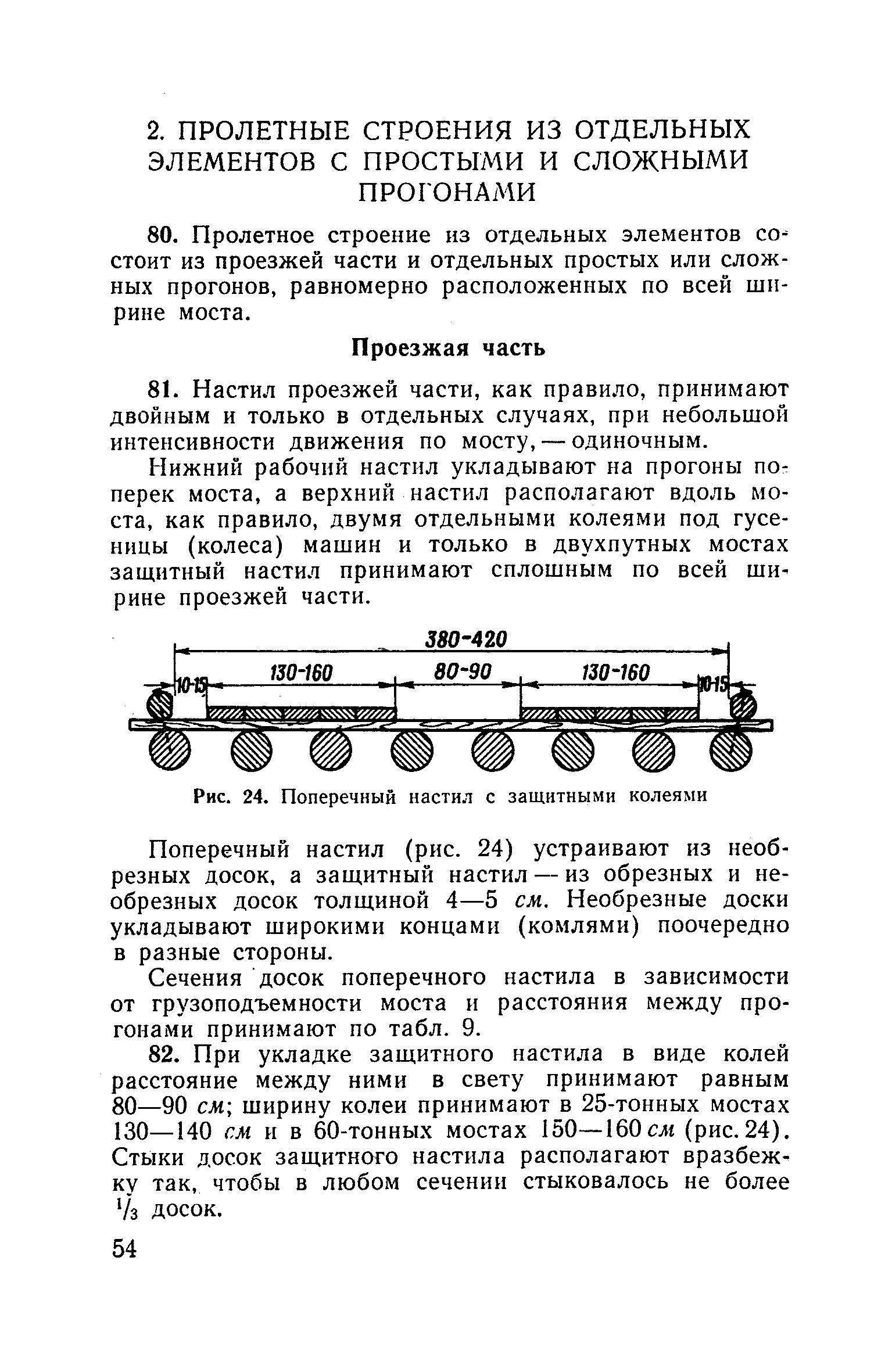 | Оглавление: | Глава 1. Общие положения Глава 2. Инженерная разведка района постройки моста Глава 3. Конструкции деревянных пролетных строений низководных мостов 1. Блочные пролетные строения Пролетные строения из колейных блоков Пролетные строения из блоков прогонов и щитов проезжей части а) Блоки простых прогонов б) Блоки сложных прогонов в) Блоки составных прогонов 2. Пролетные строения из отдельных элементов с простыми и сложными прогонами Проезжая часть Простые прогоны Сложные прогоны Глава 4. Конструкции металлических пролетных строений низководных мостов 1. Блочные пролетные строения Блоки из четырех прогонов Блоки из двух прогонов Проезжая часть 2. Пролетные строения из отдельных элементов Несущая конструкция с простыми прогонами и пакетами Несущая конструкция с составными прогонами Проезжая часть Глава 5. Промежуточные опоры низководных мостов 1. Свайные опоры 2. Рамные деревянные опоры 3. Клеточные опоры 4. Обеспечение продольной устойчивости моста Глава 6. Береговые опоры и сопряжение моста с берегами Глава 7. Изготовление и транспортировка мостовых конструкций 1. Общие положения 2. Изготовление конструкций низководных деревянных мостов Лесозаготовительные работы Лесопильные работы Работы по изготовлению деревянных мостовых конструкций Изготовление колейных блоков Сборка блоков прогонов Изготовление конструкций пролетного строения из блоков прогонов и щитов проезжей части Особенности сборки блоков сложных прогонов Изготовление составных прогонов на стальных цилиндрических нагелях и сборка блоков из двух прогонов Изготовление свай Изготовление насадок и лежней опор Изготовление элементов и сборка рамных опор Особенности изготовления элементов мостовых конструкций при постройке мостов из отдельных элементов 3. Изготовление конструкций металлических мостов Общие положения Изготовление металлических элементов Изготовление элементов проезжей части Изготовление блоков прогонов Изготовление пролетных строений из отдельных элементов 4. Транспортировка мостовых конструкций Глава 8. Постройка низководных мостов 1. Общие положения 2. Разбивка оси моста и осей опор 3. Средства механизации работ при постройке мостов 4. Глубина забивки свай в опорах 5. Организация в производство работ при постройке низководных мостов Общие положения Постройка мостов на свайных опорах при помощи комплекта мостостроительных средств КМС Постройка мостов на свайных опорах при помощи дизель-молотов ДМ-150 с одностреловыми копрами ОСК и дизель-молотов ДБ-45 с приспособлениями ПУС-1 для установки свай Постройка мостов на рамных опорах при помощи паромов с домкратами из комплекта КМС Устройство береговых опор и сопряжений моста с берегами Постройка мостов из отдельных элементов Особенности постройки двухпутных мостов на свайных опорах Особенности постройки мостов на свайных опорах с увеличенными пролетами Глава 9. Подводные мосты 1. Общие положения 2. Особенности конструкции промежуточных опор 3. Береговые опоры и сопряжение подводного моста с берегами 4. Особенности конструкции пролетных строений подводных мостов 5. Особенности постройки подводных мостов на свайных опорах 6. Особенности постройки подводных мостов на рамных опорах 7. Особенности постройки подводных мостов с металлическими прогонами Глава 10. Особенности к