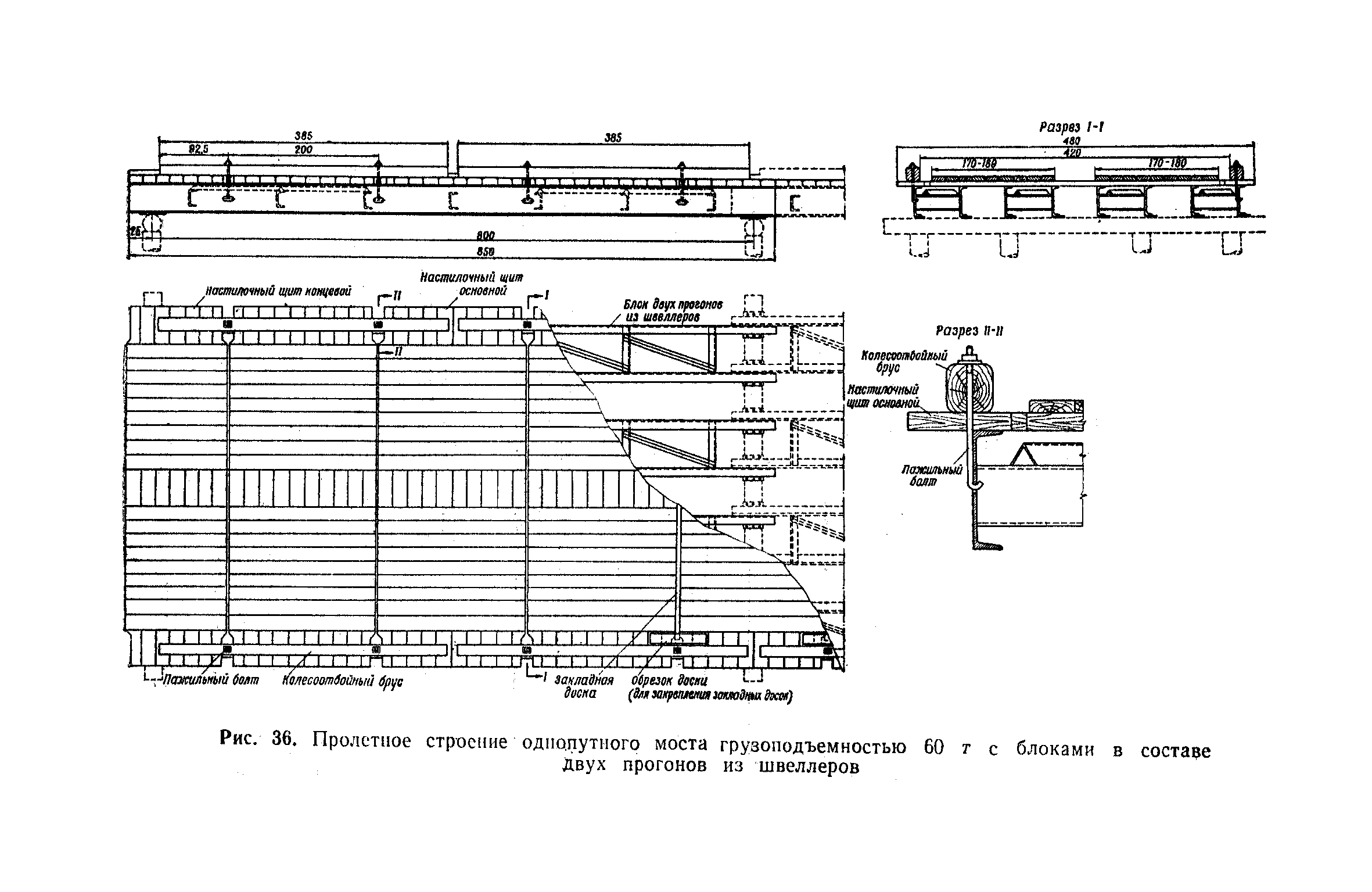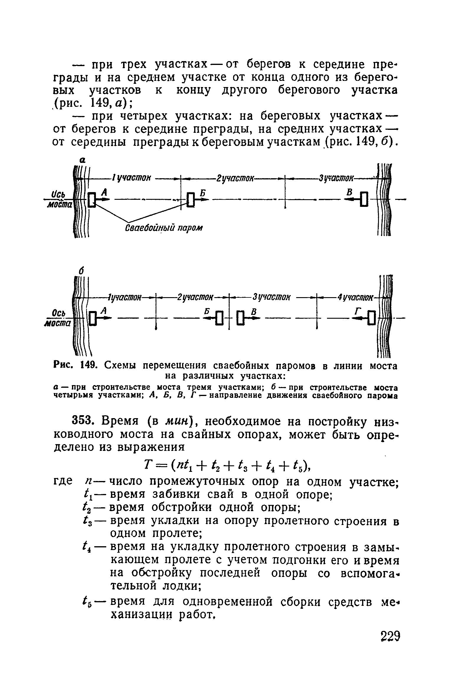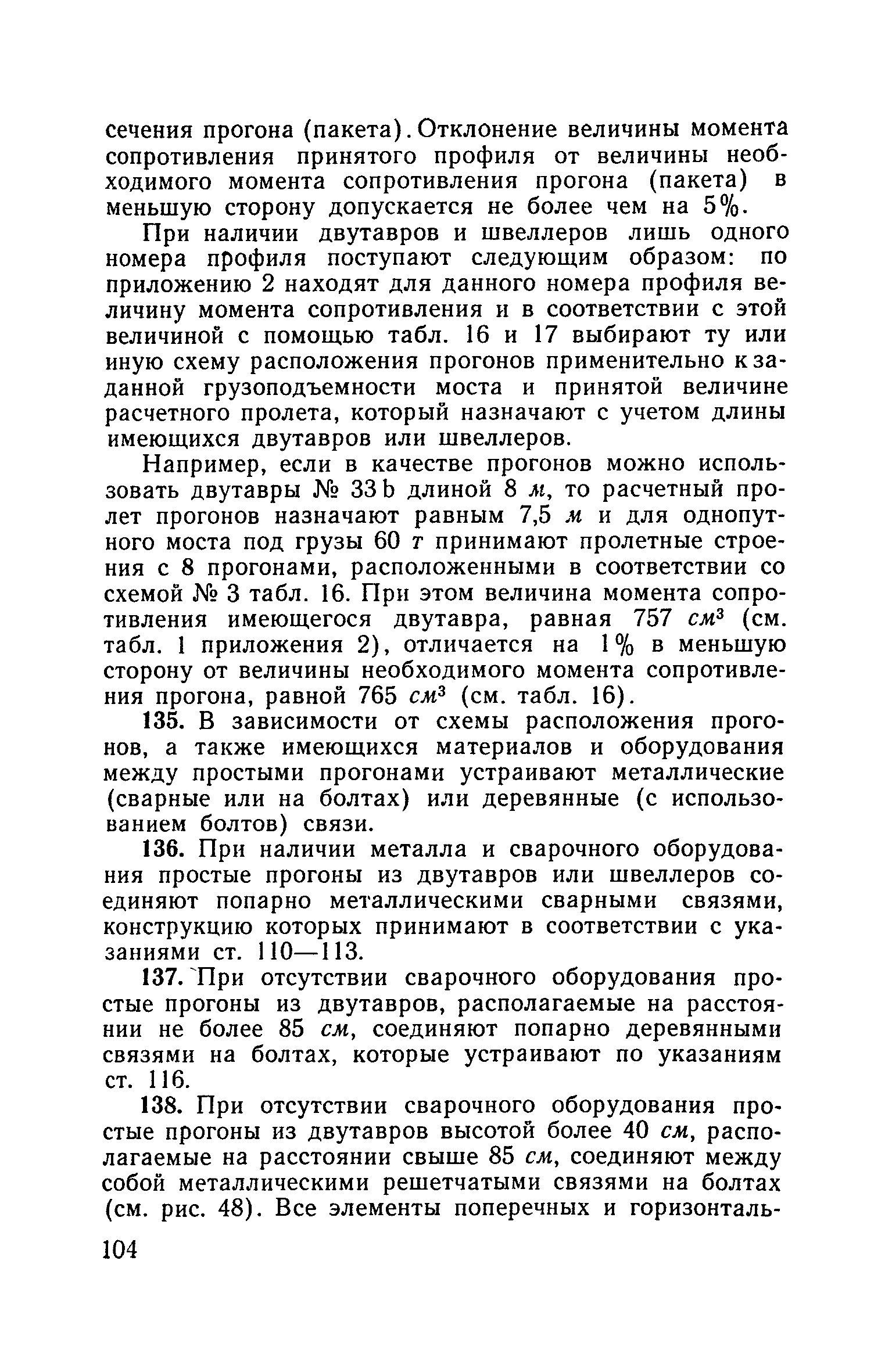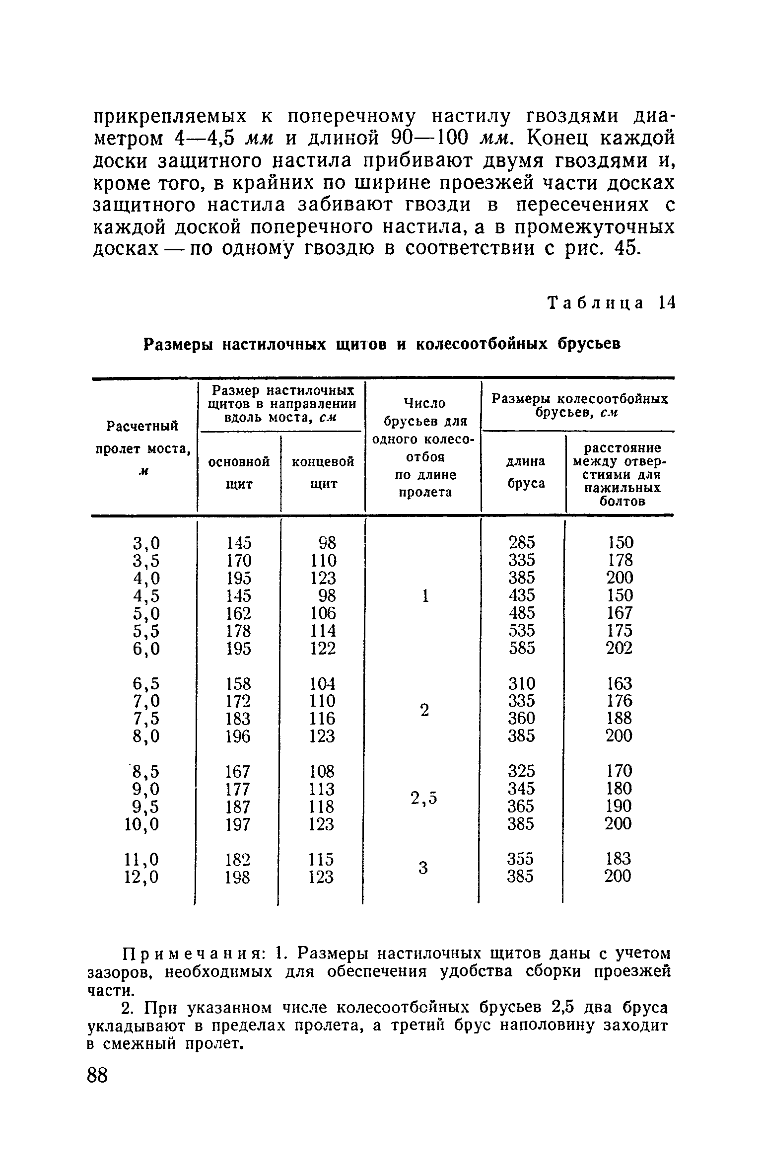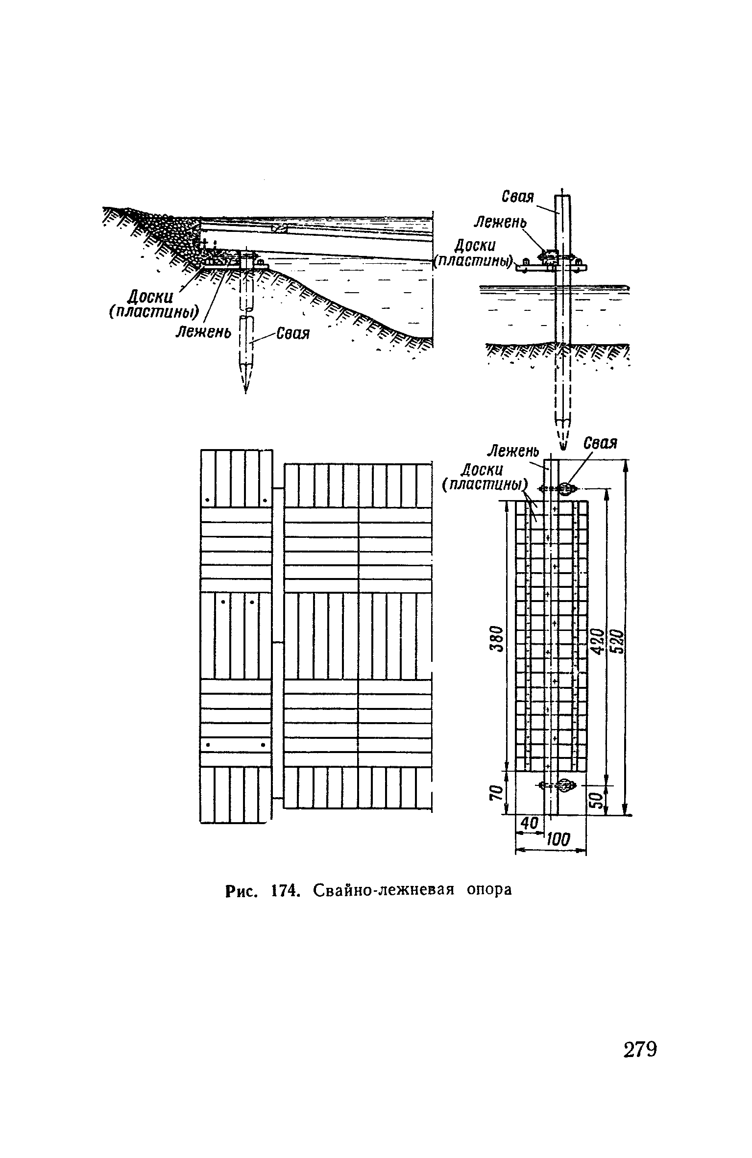 | Оглавление: | Глава 1. Общие положения Глава 2. Инженерная разведка района постройки моста Глава 3. Конструкции деревянных пролетных строений низководных мостов 1. Блочные пролетные строения Пролетные строения из колейных блоков Пролетные строения из блоков прогонов и щитов проезжей части а) Блоки простых прогонов б) Блоки сложных прогонов в) Блоки составных прогонов 2. Пролетные строения из отдельных элементов с простыми и сложными прогонами Проезжая часть Простые прогоны Сложные прогоны Глава 4. Конструкции металлических пролетных строений низководных мостов 1. Блочные пролетные строения Блоки из четырех прогонов Блоки из двух прогонов Проезжая часть 2. Пролетные строения из отдельных элементов Несущая конструкция с простыми прогонами и пакетами Несущая конструкция с составными прогонами Проезжая часть Глава 5. Промежуточные опоры низководных мостов 1. Свайные опоры 2. Рамные деревянные опоры 3. Клеточные опоры 4. Обеспечение продольной устойчивости моста Глава 6. Береговые опоры и сопряжение моста с берегами Глава 7. Изготовление и транспортировка мостовых конструкций 1. Общие положения 2. Изготовление конструкций низководных деревянных мостов Лесозаготовительные работы Лесопильные работы Работы по изготовлению деревянных мостовых конструкций Изготовление колейных блоков Сборка блоков прогонов Изготовление конструкций пролетного строения из блоков прогонов и щитов проезжей части Особенности сборки блоков сложных прогонов Изготовление составных прогонов на стальных цилиндрических нагелях и сборка блоков из двух прогонов Изготовление свай Изготовление насадок и лежней опор Изготовление элементов и сборка рамных опор Особенности изготовления элементов мостовых конструкций при постройке мостов из отдельных элементов 3. Изготовление конструкций металлических мостов Общие положения Изготовление металлических элементов Изготовление элементов проезжей части Изготовление блоков прогонов Изготовление пролетных строений из отдельных элементов 4. Транспортировка мостовых конструкций Глава 8. Постройка низководных мостов 1. Общие положения 2. Разбивка оси моста и осей опор 3. Средства механизации работ при постройке мостов 4. Глубина забивки свай в опорах 5. Организация в производство работ при постройке низководных мостов Общие положения Постройка мостов на свайных опорах при помощи комплекта мостостроительных средств КМС Постройка мостов на свайных опорах при помощи дизель-молотов ДМ-150 с одностреловыми копрами ОСК и дизель-молотов ДБ-45 с приспособлениями ПУС-1 для установки свай Постройка мостов на рамных опорах при помощи паромов с домкратами из комплекта КМС Устройство береговых опор и сопряжений моста с берегами Постройка мостов из отдельных элементов Особенности постройки двухпутных мостов на свайных опорах Особенности постройки мостов на свайных опорах с увеличенными пролетами Глава 9. Подводные мосты 1. Общие положения 2. Особенности конструкции промежуточных опор 3. Береговые опоры и сопряжение подводного моста с берегами 4. Особенности конструкции пролетных строений подводных мостов 5. Особенности постройки подводных мостов на свайных опорах 6. Особенности постройки подводных мостов на рамных опорах 7. Особенности постройки подводных мостов с металлическими прогонами Глава 10. Особенности к