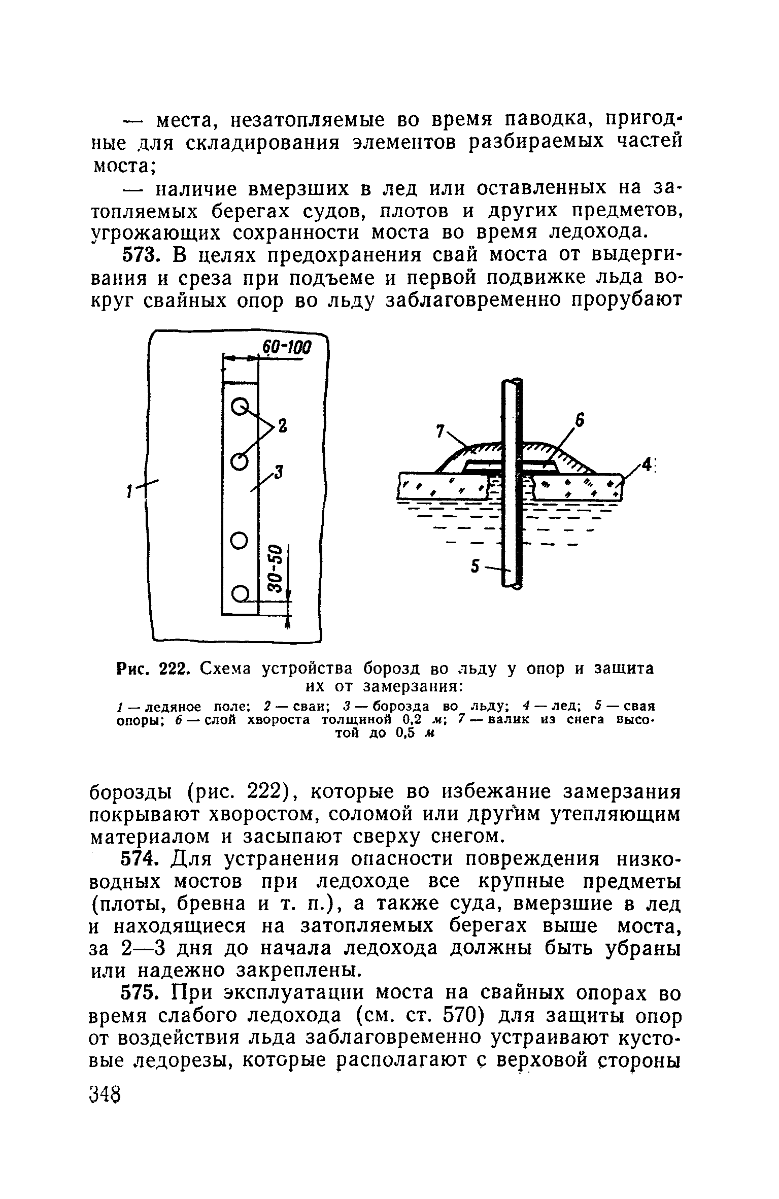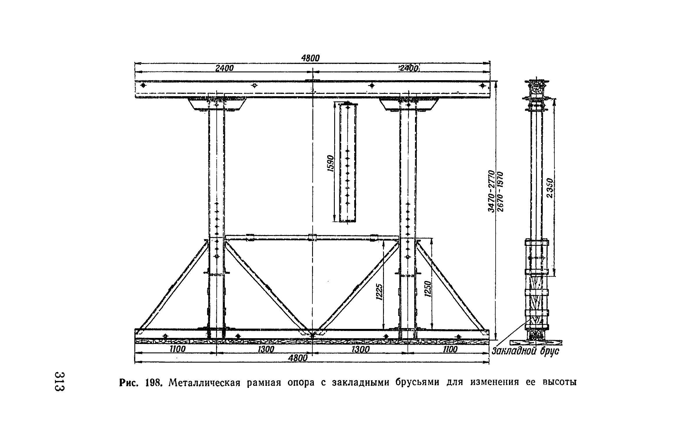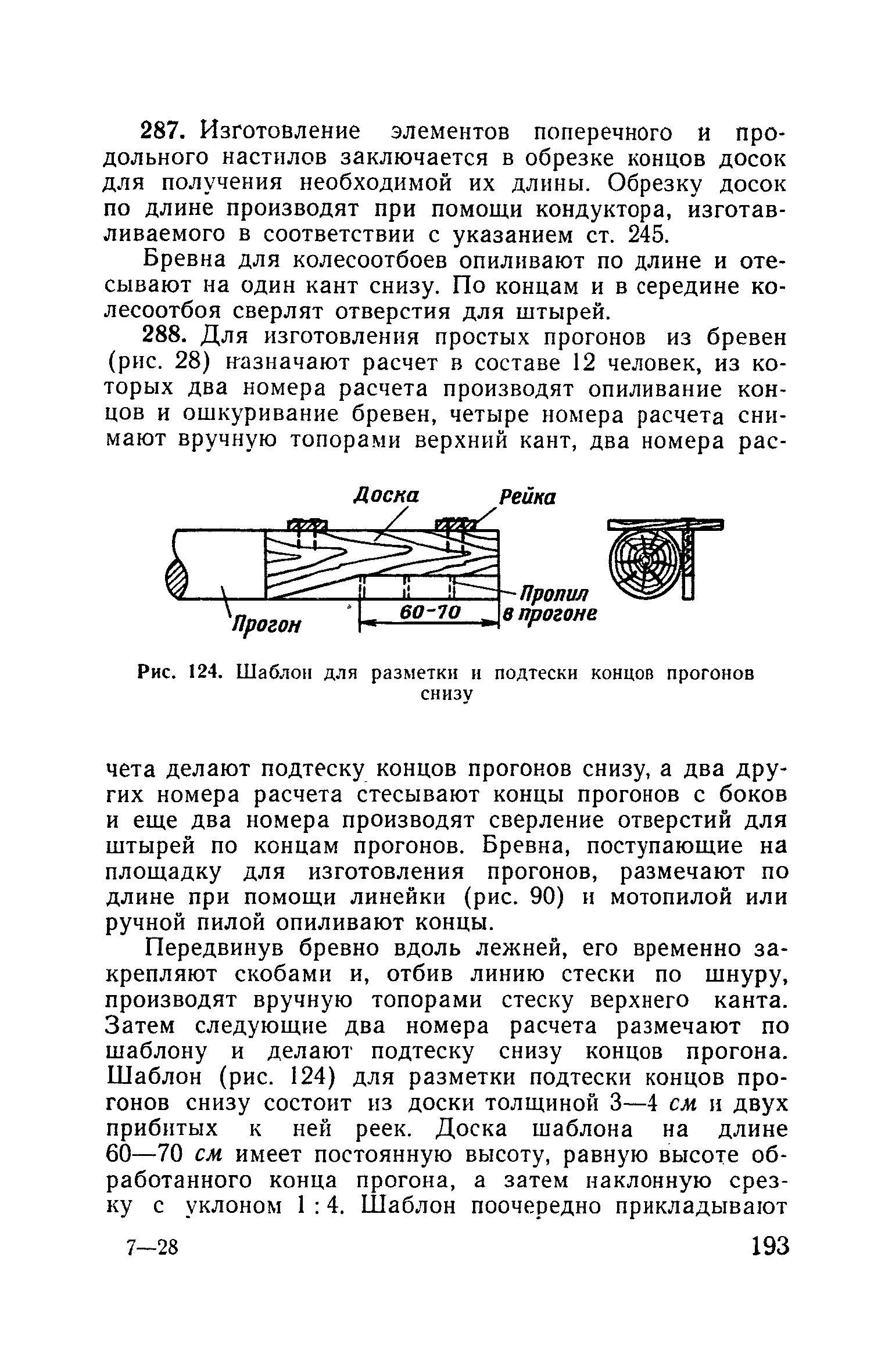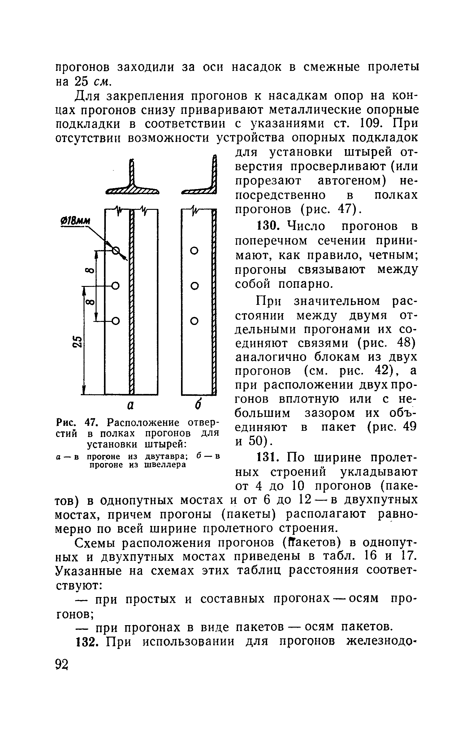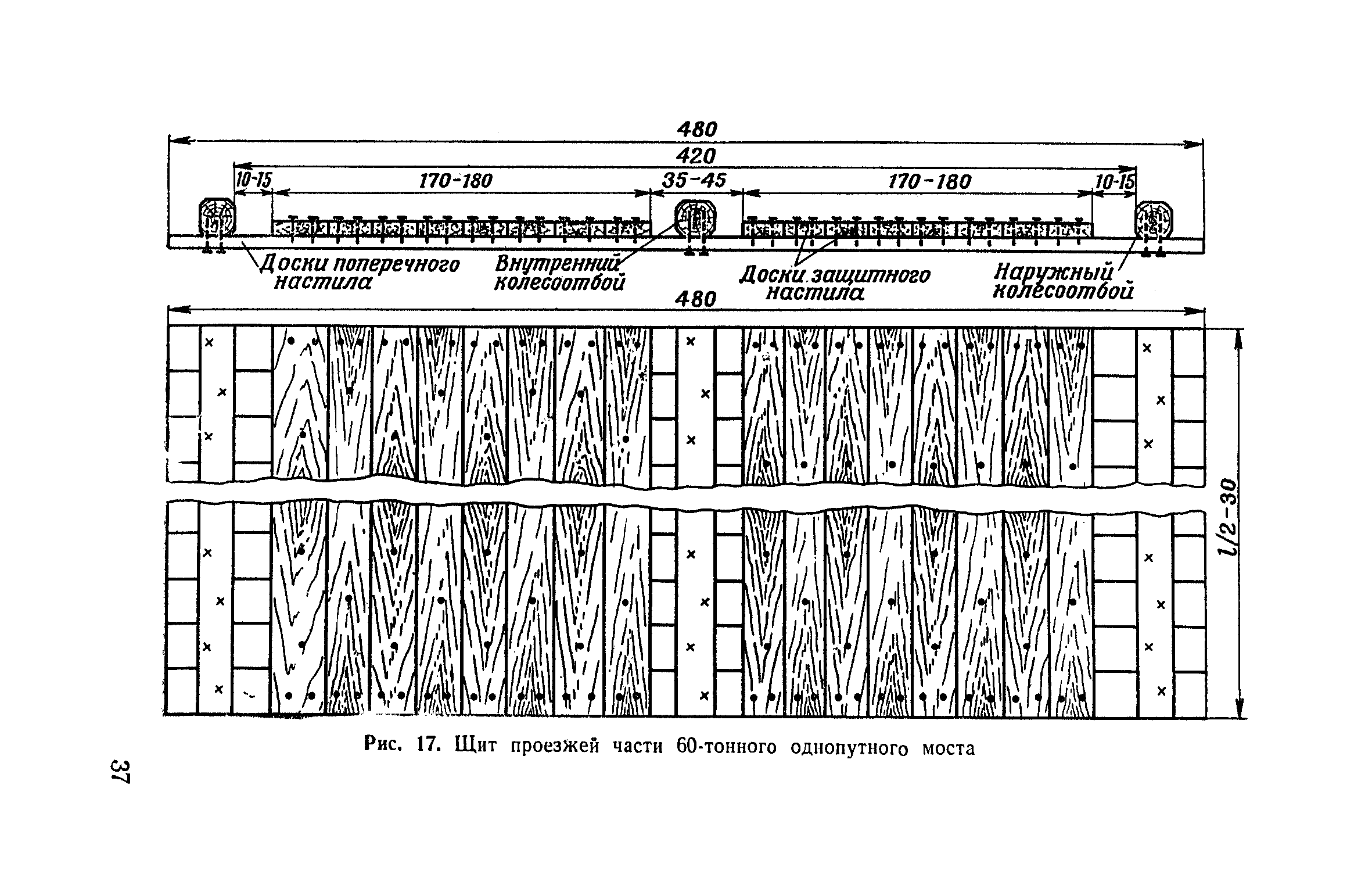 | Оглавление: | Глава 1. Общие положения Глава 2. Инженерная разведка района постройки моста Глава 3. Конструкции деревянных пролетных строений низководных мостов 1. Блочные пролетные строения Пролетные строения из колейных блоков Пролетные строения из блоков прогонов и щитов проезжей части а) Блоки простых прогонов б) Блоки сложных прогонов в) Блоки составных прогонов 2. Пролетные строения из отдельных элементов с простыми и сложными прогонами Проезжая часть Простые прогоны Сложные прогоны Глава 4. Конструкции металлических пролетных строений низководных мостов 1. Блочные пролетные строения Блоки из четырех прогонов Блоки из двух прогонов Проезжая часть 2. Пролетные строения из отдельных элементов Несущая конструкция с простыми прогонами и пакетами Несущая конструкция с составными прогонами Проезжая часть Глава 5. Промежуточные опоры низководных мостов 1. Свайные опоры 2. Рамные деревянные опоры 3. Клеточные опоры 4. Обеспечение продольной устойчивости моста Глава 6. Береговые опоры и сопряжение моста с берегами Глава 7. Изготовление и транспортировка мостовых конструкций 1. Общие положения 2. Изготовление конструкций низководных деревянных мостов Лесозаготовительные работы Лесопильные работы Работы по изготовлению деревянных мостовых конструкций Изготовление колейных блоков Сборка блоков прогонов Изготовление конструкций пролетного строения из блоков прогонов и щитов проезжей части Особенности сборки блоков сложных прогонов Изготовление составных прогонов на стальных цилиндрических нагелях и сборка блоков из двух прогонов Изготовление свай Изготовление насадок и лежней опор Изготовление элементов и сборка рамных опор Особенности изготовления элементов мостовых конструкций при постройке мостов из отдельных элементов 3. Изготовление конструкций металлических мостов Общие положения Изготовление металлических элементов Изготовление элементов проезжей части Изготовление блоков прогонов Изготовление пролетных строений из отдельных элементов 4. Транспортировка мостовых конструкций Глава 8. Постройка низководных мостов 1. Общие положения 2. Разбивка оси моста и осей опор 3. Средства механизации работ при постройке мостов 4. Глубина забивки свай в опорах 5. Организация в производство работ при постройке низководных мостов Общие положения Постройка мостов на свайных опорах при помощи комплекта мостостроительных средств КМС Постройка мостов на свайных опорах при помощи дизель-молотов ДМ-150 с одностреловыми копрами ОСК и дизель-молотов ДБ-45 с приспособлениями ПУС-1 для установки свай Постройка мостов на рамных опорах при помощи паромов с домкратами из комплекта КМС Устройство береговых опор и сопряжений моста с берегами Постройка мостов из отдельных элементов Особенности постройки двухпутных мостов на свайных опорах Особенности постройки мостов на свайных опорах с увеличенными пролетами Глава 9. Подводные мосты 1. Общие положения 2. Особенности конструкции промежуточных опор 3. Береговые опоры и сопряжение подводного моста с берегами 4. Особенности конструкции пролетных строений подводных мостов 5. Особенности постройки подводных мостов на свайных опорах 6. Особенности постройки подводных мостов на рамных опорах 7. Особенности постройки подводных мостов с металлическими прогонами Глава 10. Особенности к