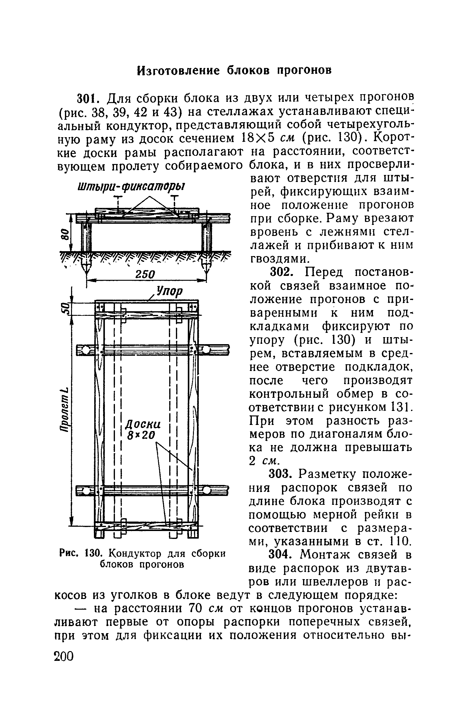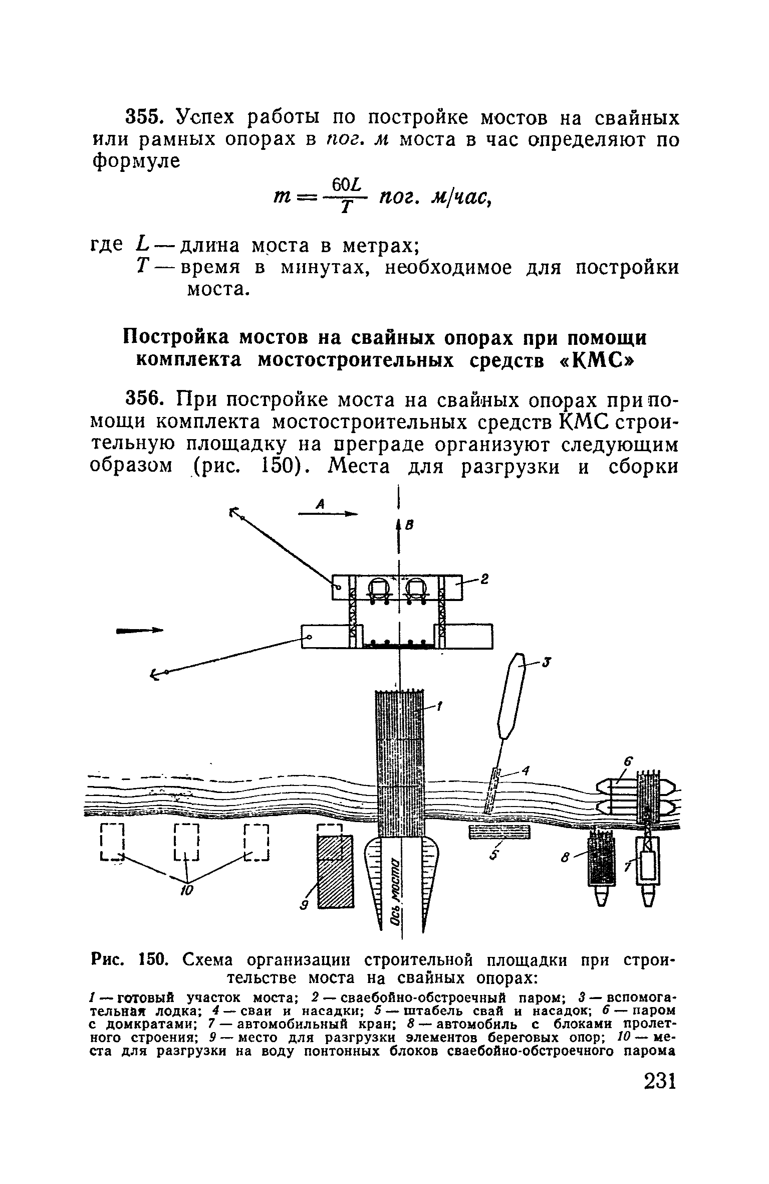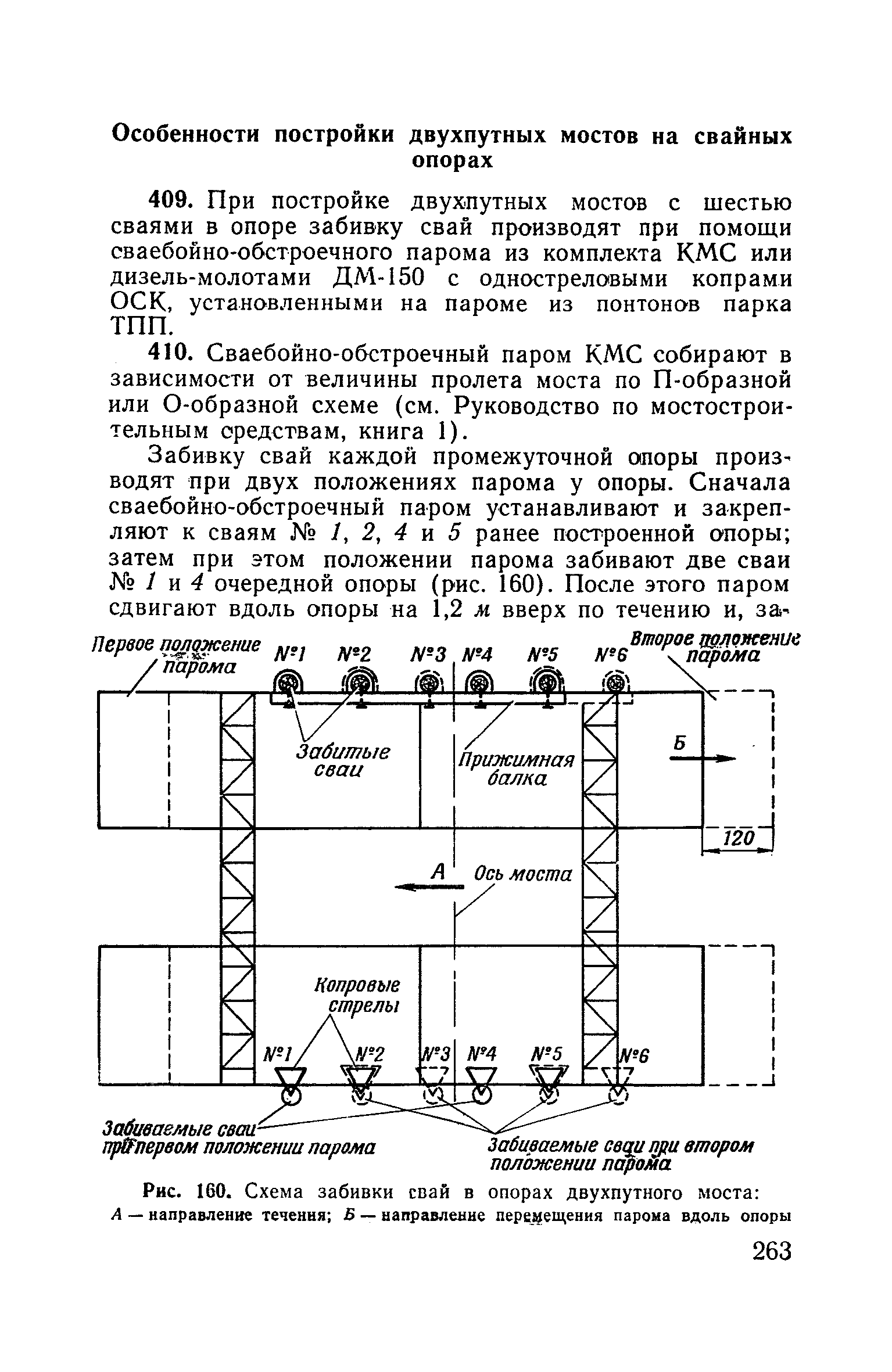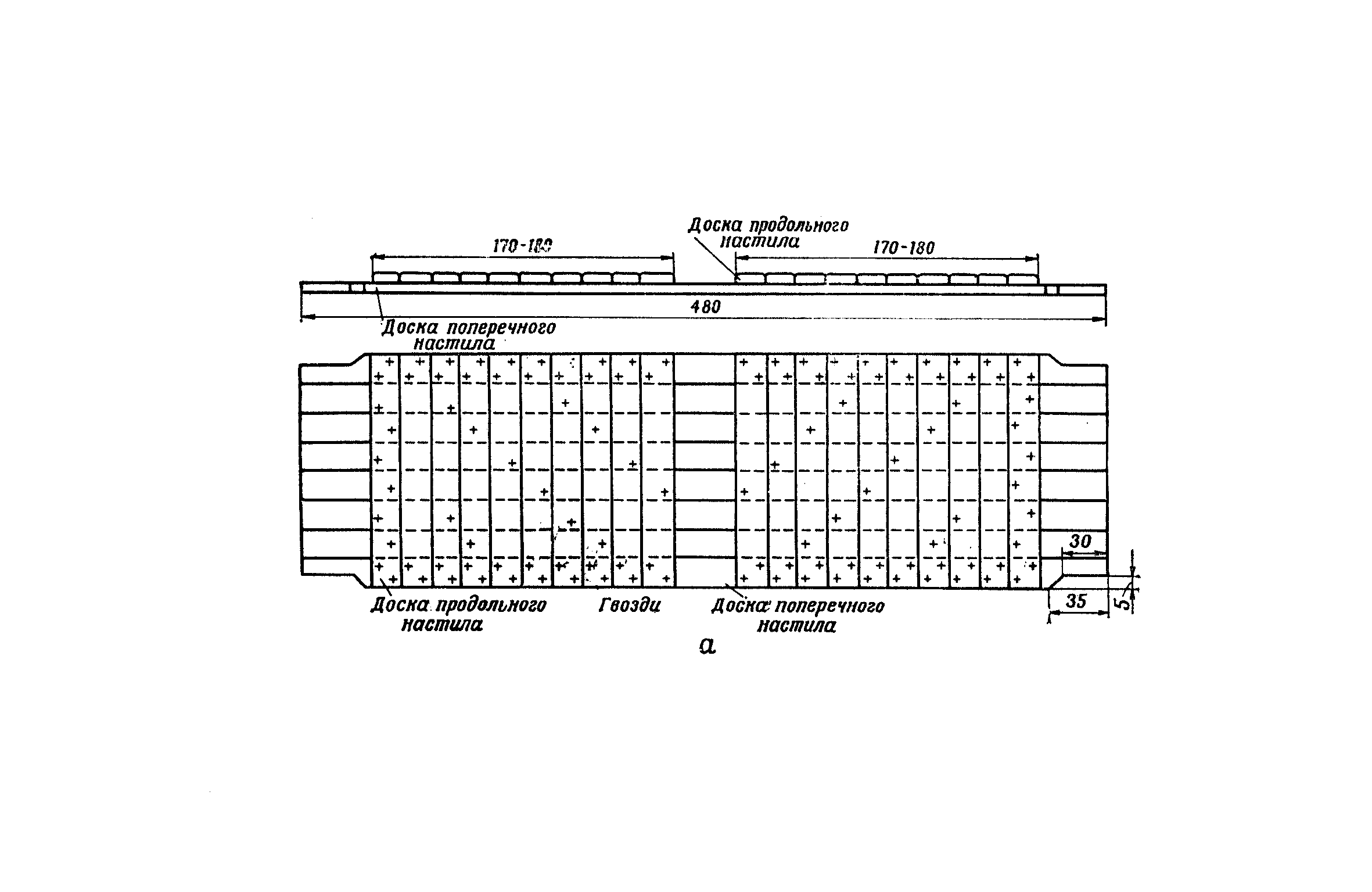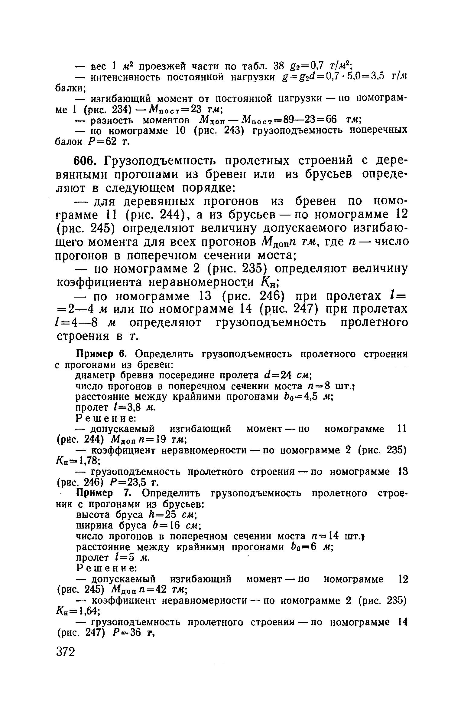 | Оглавление: | Глава 1. Общие положения Глава 2. Инженерная разведка района постройки моста Глава 3. Конструкции деревянных пролетных строений низководных мостов 1. Блочные пролетные строения Пролетные строения из колейных блоков Пролетные строения из блоков прогонов и щитов проезжей части а) Блоки простых прогонов б) Блоки сложных прогонов в) Блоки составных прогонов 2. Пролетные строения из отдельных элементов с простыми и сложными прогонами Проезжая часть Простые прогоны Сложные прогоны Глава 4. Конструкции металлических пролетных строений низководных мостов 1. Блочные пролетные строения Блоки из четырех прогонов Блоки из двух прогонов Проезжая часть 2. Пролетные строения из отдельных элементов Несущая конструкция с простыми прогонами и пакетами Несущая конструкция с составными прогонами Проезжая часть Глава 5. Промежуточные опоры низководных мостов 1. Свайные опоры 2. Рамные деревянные опоры 3. Клеточные опоры 4. Обеспечение продольной устойчивости моста Глава 6. Береговые опоры и сопряжение моста с берегами Глава 7. Изготовление и транспортировка мостовых конструкций 1. Общие положения 2. Изготовление конструкций низководных деревянных мостов Лесозаготовительные работы Лесопильные работы Работы по изготовлению деревянных мостовых конструкций Изготовление колейных блоков Сборка блоков прогонов Изготовление конструкций пролетного строения из блоков прогонов и щитов проезжей части Особенности сборки блоков сложных прогонов Изготовление составных прогонов на стальных цилиндрических нагелях и сборка блоков из двух прогонов Изготовление свай Изготовление насадок и лежней опор Изготовление элементов и сборка рамных опор Особенности изготовления элементов мостовых конструкций при постройке мостов из отдельных элементов 3. Изготовление конструкций металлических мостов Общие положения Изготовление металлических элементов Изготовление элементов проезжей части Изготовление блоков прогонов Изготовление пролетных строений из отдельных элементов 4. Транспортировка мостовых конструкций Глава 8. Постройка низководных мостов 1. Общие положения 2. Разбивка оси моста и осей опор 3. Средства механизации работ при постройке мостов 4. Глубина забивки свай в опорах 5. Организация в производство работ при постройке низководных мостов Общие положения Постройка мостов на свайных опорах при помощи комплекта мостостроительных средств КМС Постройка мостов на свайных опорах при помощи дизель-молотов ДМ-150 с одностреловыми копрами ОСК и дизель-молотов ДБ-45 с приспособлениями ПУС-1 для установки свай Постройка мостов на рамных опорах при помощи паромов с домкратами из комплекта КМС Устройство береговых опор и сопряжений моста с берегами Постройка мостов из отдельных элементов Особенности постройки двухпутных мостов на свайных опорах Особенности постройки мостов на свайных опорах с увеличенными пролетами Глава 9. Подводные мосты 1. Общие положения 2. Особенности конструкции промежуточных опор 3. Береговые опоры и сопряжение подводного моста с берегами 4. Особенности конструкции пролетных строений подводных мостов 5. Особенности постройки подводных мостов на свайных опорах 6. Особенности постройки подводных мостов на рамных опорах 7. Особенности постройки подводных мостов с металлическими прогонами Глава 10. Особенности к
