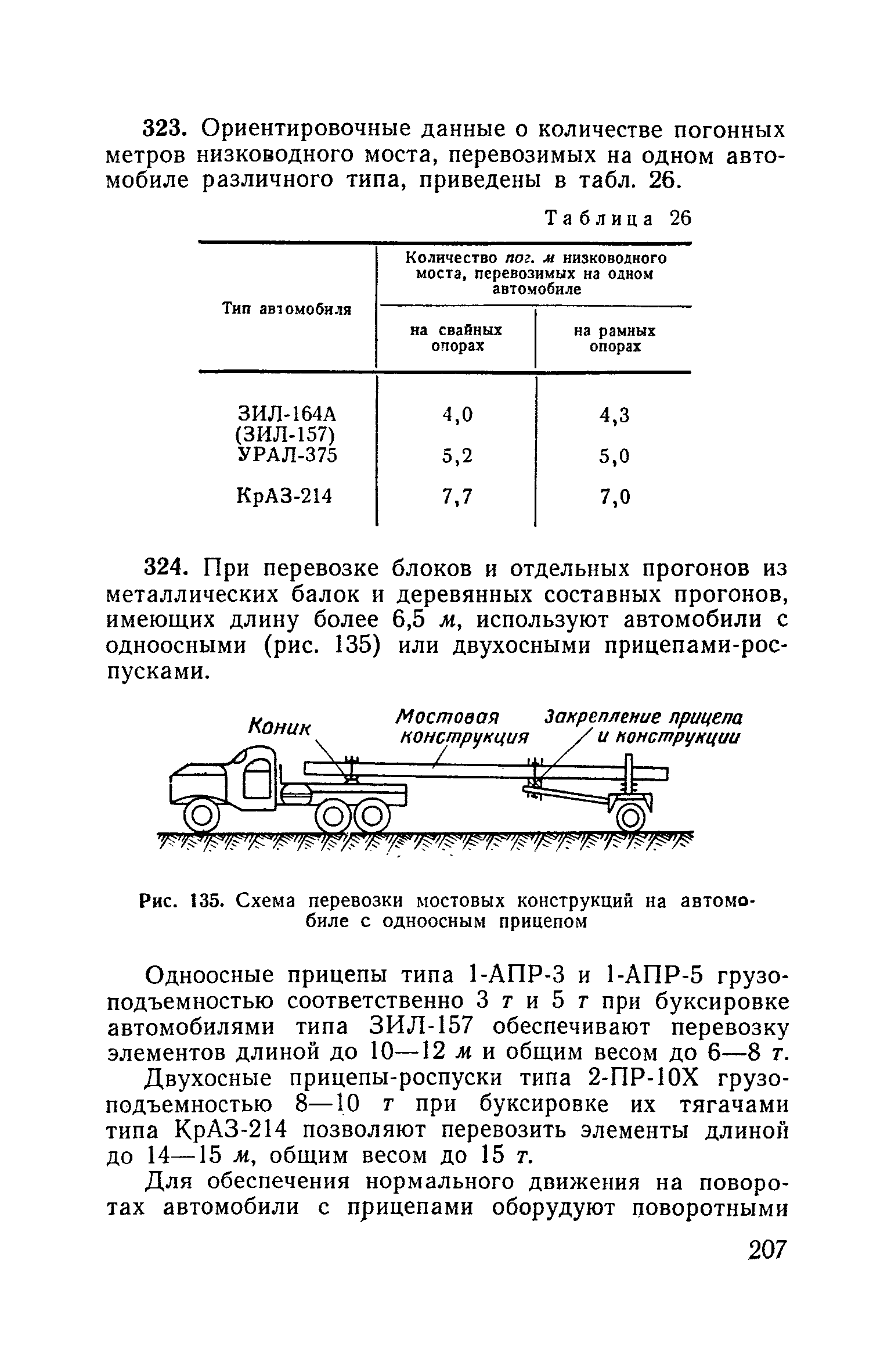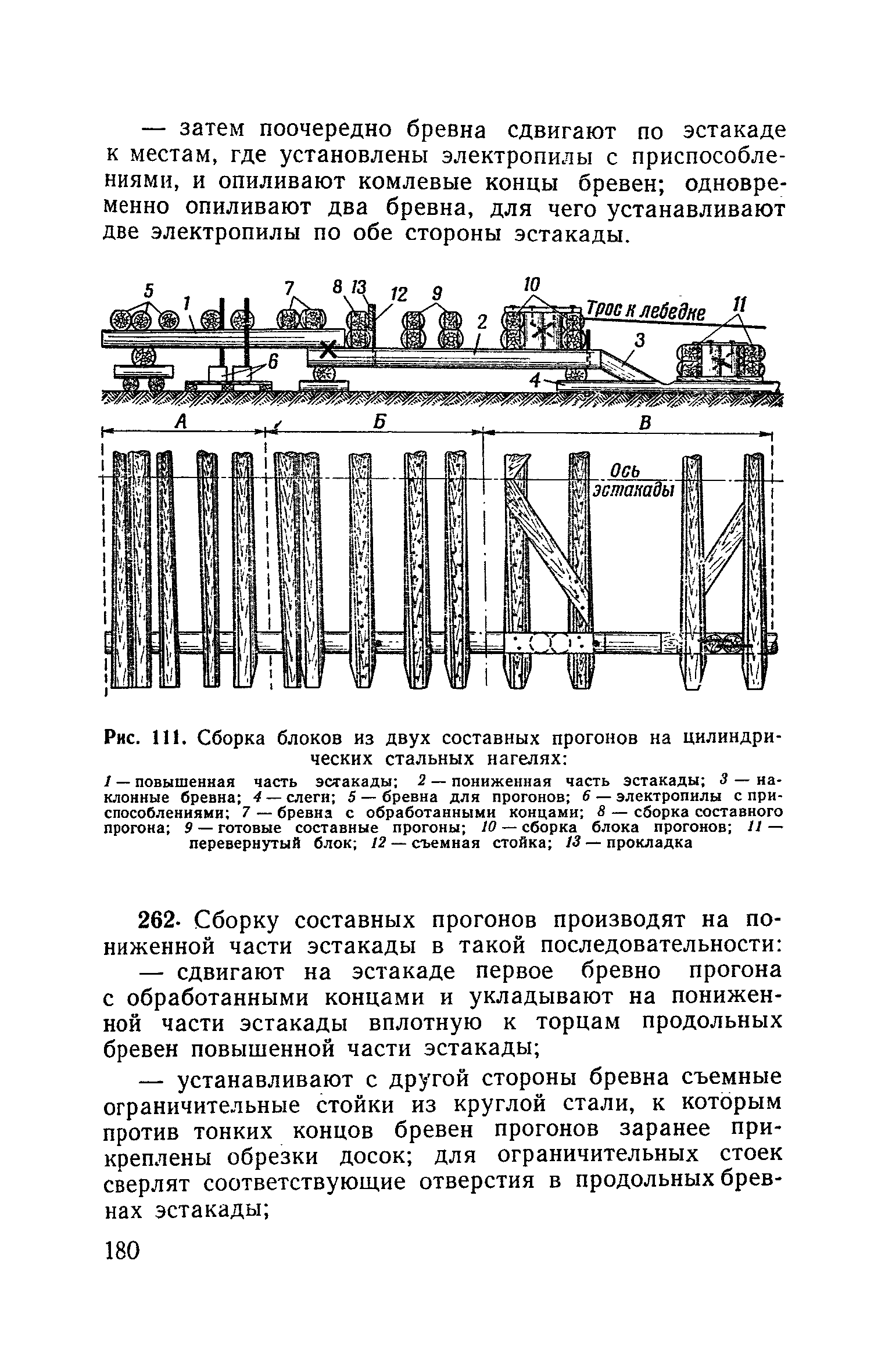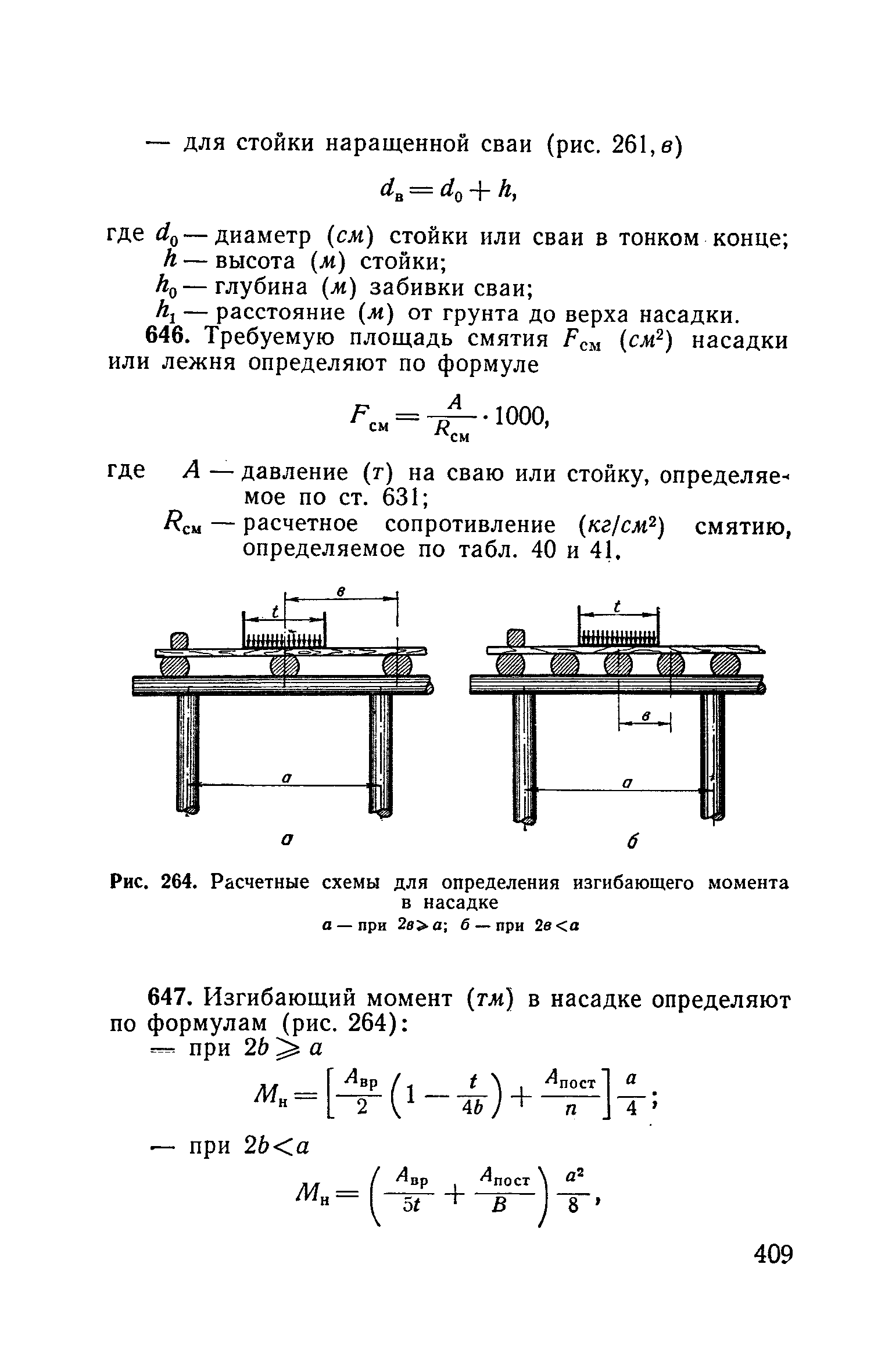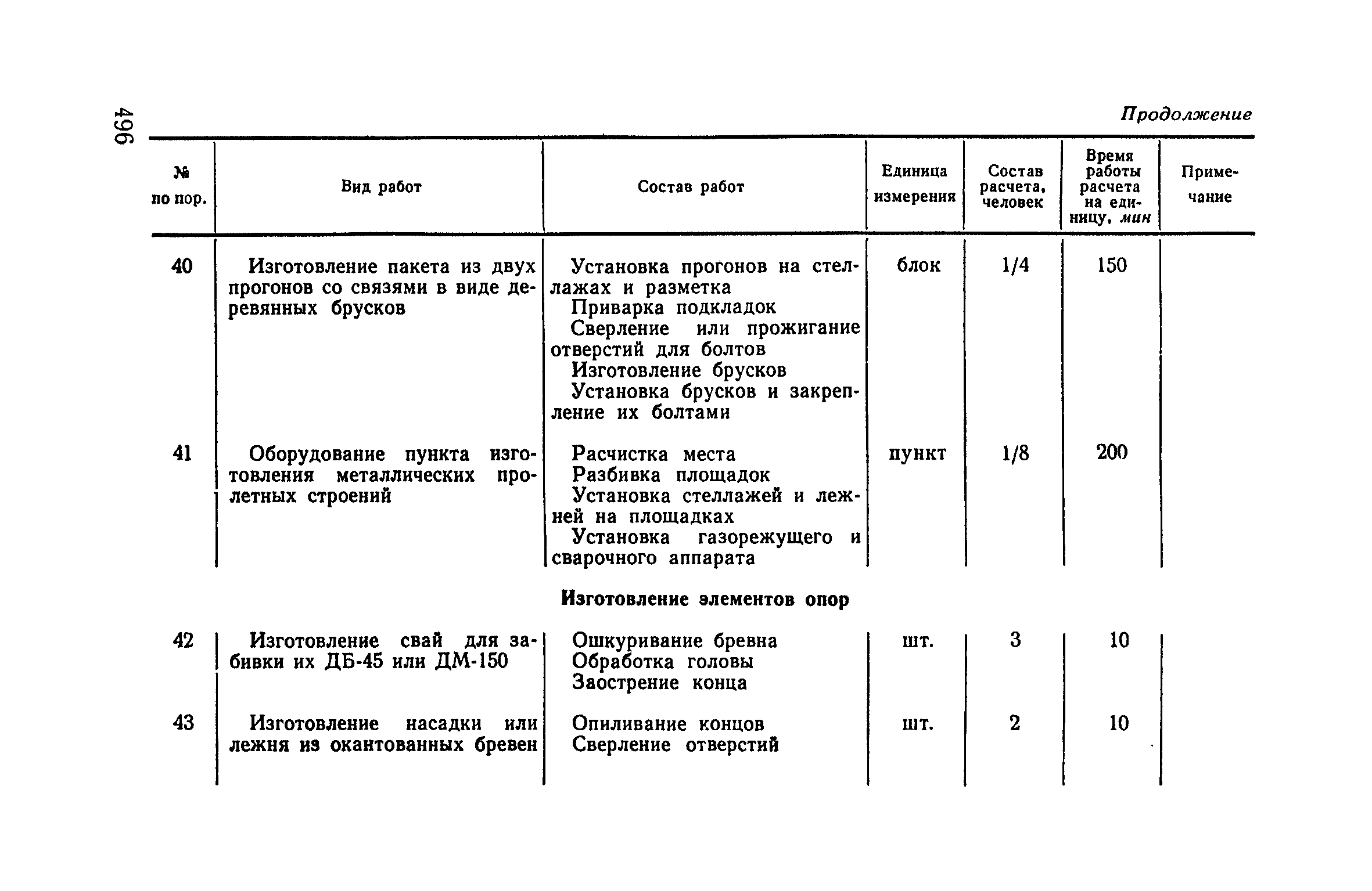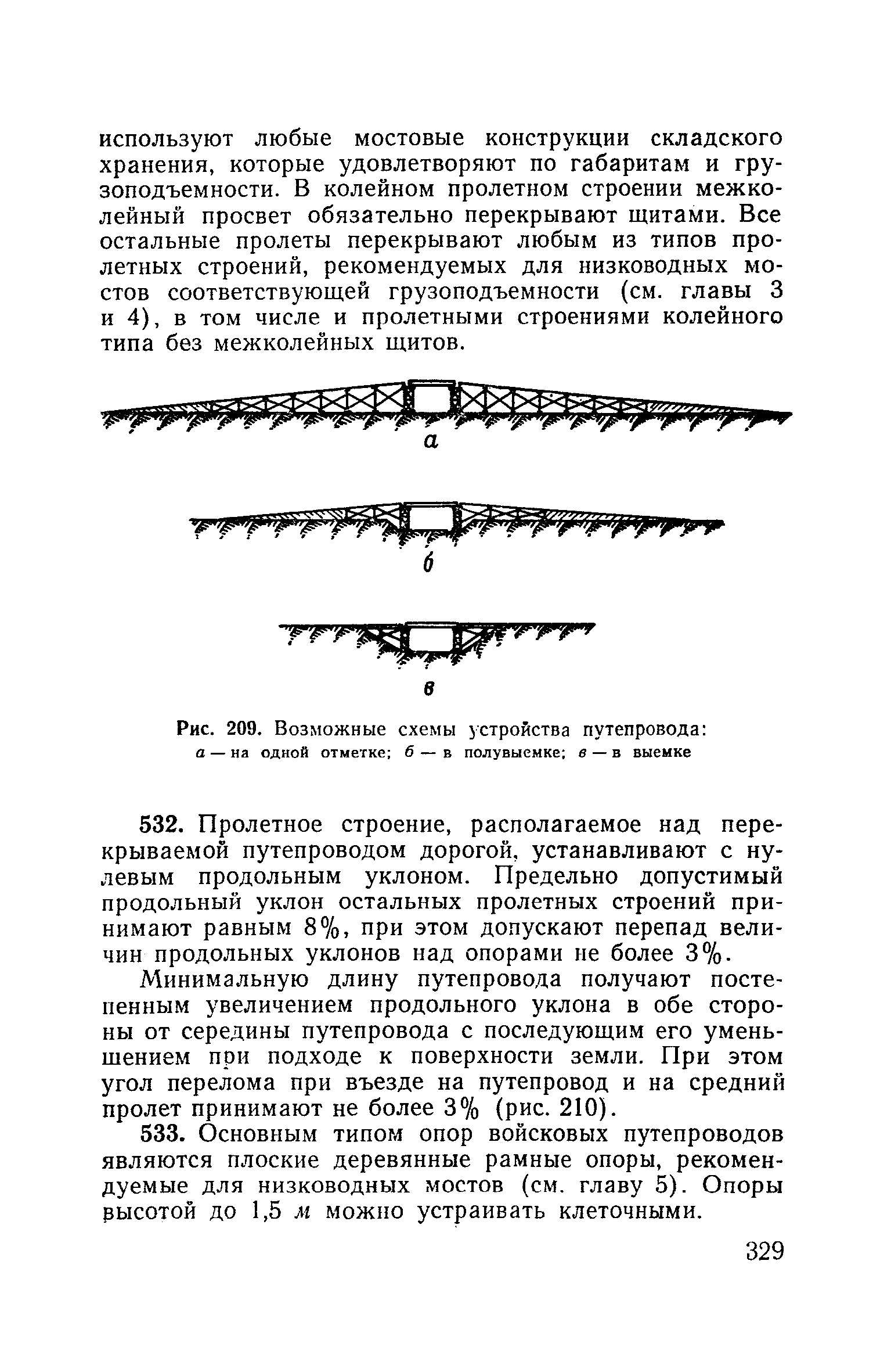 | Оглавление: | Глава 1. Общие положения Глава 2. Инженерная разведка района постройки моста Глава 3. Конструкции деревянных пролетных строений низководных мостов 1. Блочные пролетные строения Пролетные строения из колейных блоков Пролетные строения из блоков прогонов и щитов проезжей части а) Блоки простых прогонов б) Блоки сложных прогонов в) Блоки составных прогонов 2. Пролетные строения из отдельных элементов с простыми и сложными прогонами Проезжая часть Простые прогоны Сложные прогоны Глава 4. Конструкции металлических пролетных строений низководных мостов 1. Блочные пролетные строения Блоки из четырех прогонов Блоки из двух прогонов Проезжая часть 2. Пролетные строения из отдельных элементов Несущая конструкция с простыми прогонами и пакетами Несущая конструкция с составными прогонами Проезжая часть Глава 5. Промежуточные опоры низководных мостов 1. Свайные опоры 2. Рамные деревянные опоры 3. Клеточные опоры 4. Обеспечение продольной устойчивости моста Глава 6. Береговые опоры и сопряжение моста с берегами Глава 7. Изготовление и транспортировка мостовых конструкций 1. Общие положения 2. Изготовление конструкций низководных деревянных мостов Лесозаготовительные работы Лесопильные работы Работы по изготовлению деревянных мостовых конструкций Изготовление колейных блоков Сборка блоков прогонов Изготовление конструкций пролетного строения из блоков прогонов и щитов проезжей части Особенности сборки блоков сложных прогонов Изготовление составных прогонов на стальных цилиндрических нагелях и сборка блоков из двух прогонов Изготовление свай Изготовление насадок и лежней опор Изготовление элементов и сборка рамных опор Особенности изготовления элементов мостовых конструкций при постройке мостов из отдельных элементов 3. Изготовление конструкций металлических мостов Общие положения Изготовление металлических элементов Изготовление элементов проезжей части Изготовление блоков прогонов Изготовление пролетных строений из отдельных элементов 4. Транспортировка мостовых конструкций Глава 8. Постройка низководных мостов 1. Общие положения 2. Разбивка оси моста и осей опор 3. Средства механизации работ при постройке мостов 4. Глубина забивки свай в опорах 5. Организация в производство работ при постройке низководных мостов Общие положения Постройка мостов на свайных опорах при помощи комплекта мостостроительных средств КМС Постройка мостов на свайных опорах при помощи дизель-молотов ДМ-150 с одностреловыми копрами ОСК и дизель-молотов ДБ-45 с приспособлениями ПУС-1 для установки свай Постройка мостов на рамных опорах при помощи паромов с домкратами из комплекта КМС Устройство береговых опор и сопряжений моста с берегами Постройка мостов из отдельных элементов Особенности постройки двухпутных мостов на свайных опорах Особенности постройки мостов на свайных опорах с увеличенными пролетами Глава 9. Подводные мосты 1. Общие положения 2. Особенности конструкции промежуточных опор 3. Береговые опоры и сопряжение подводного моста с берегами 4. Особенности конструкции пролетных строений подводных мостов 5. Особенности постройки подводных мостов на свайных опорах 6. Особенности постройки подводных мостов на рамных опорах 7. Особенности постройки подводных мостов с металлическими прогонами Глава 10. Особенности к