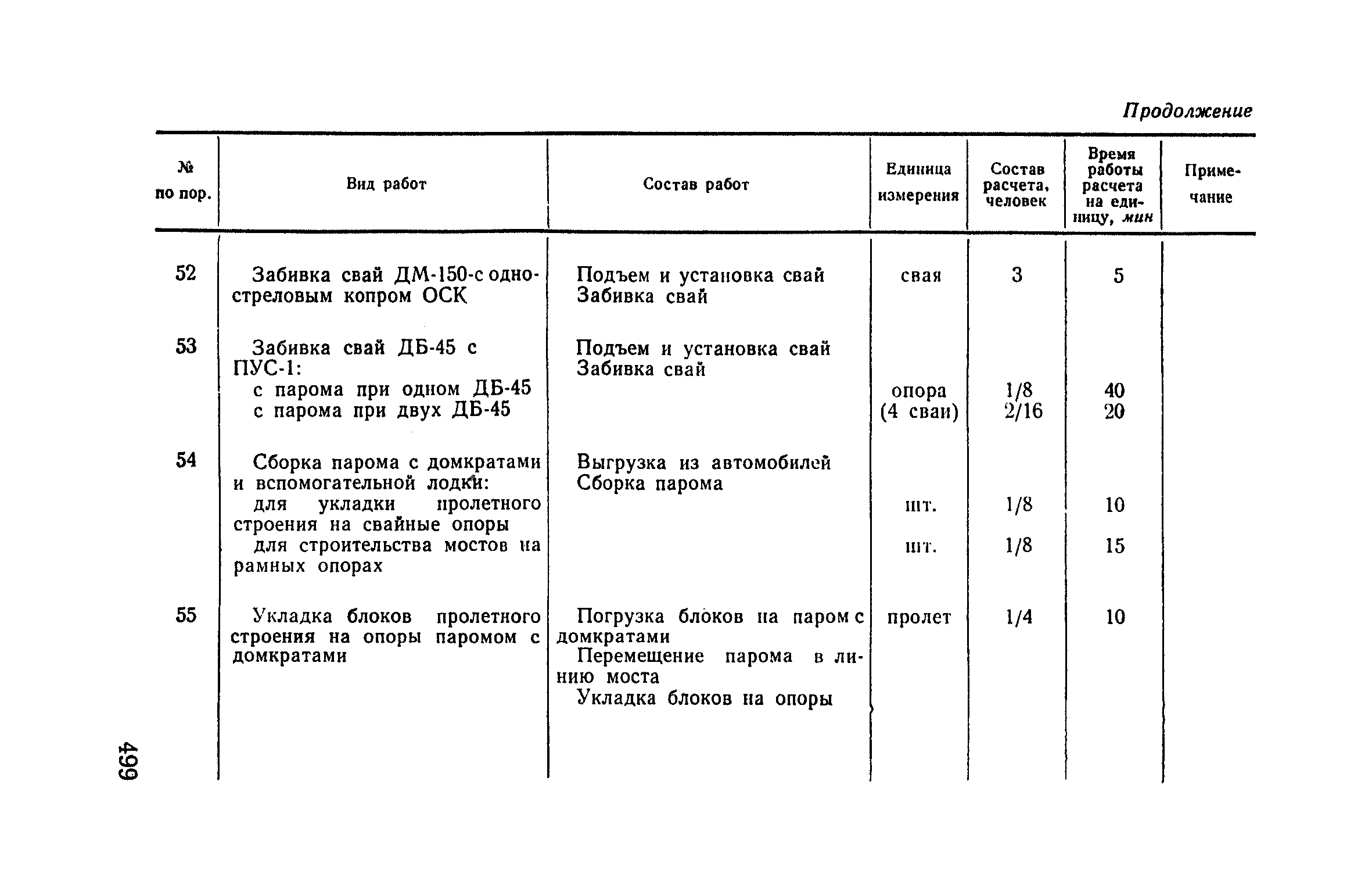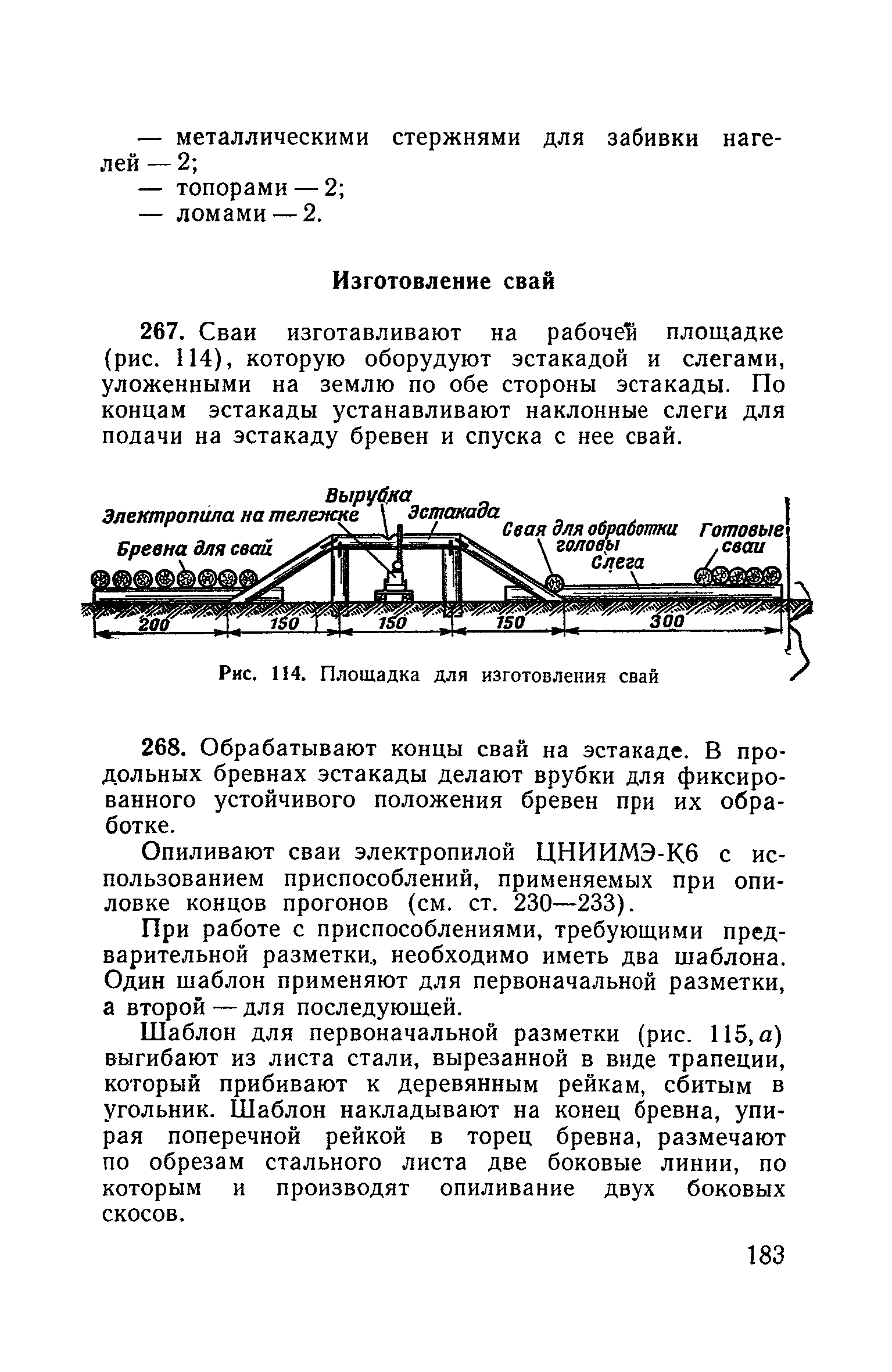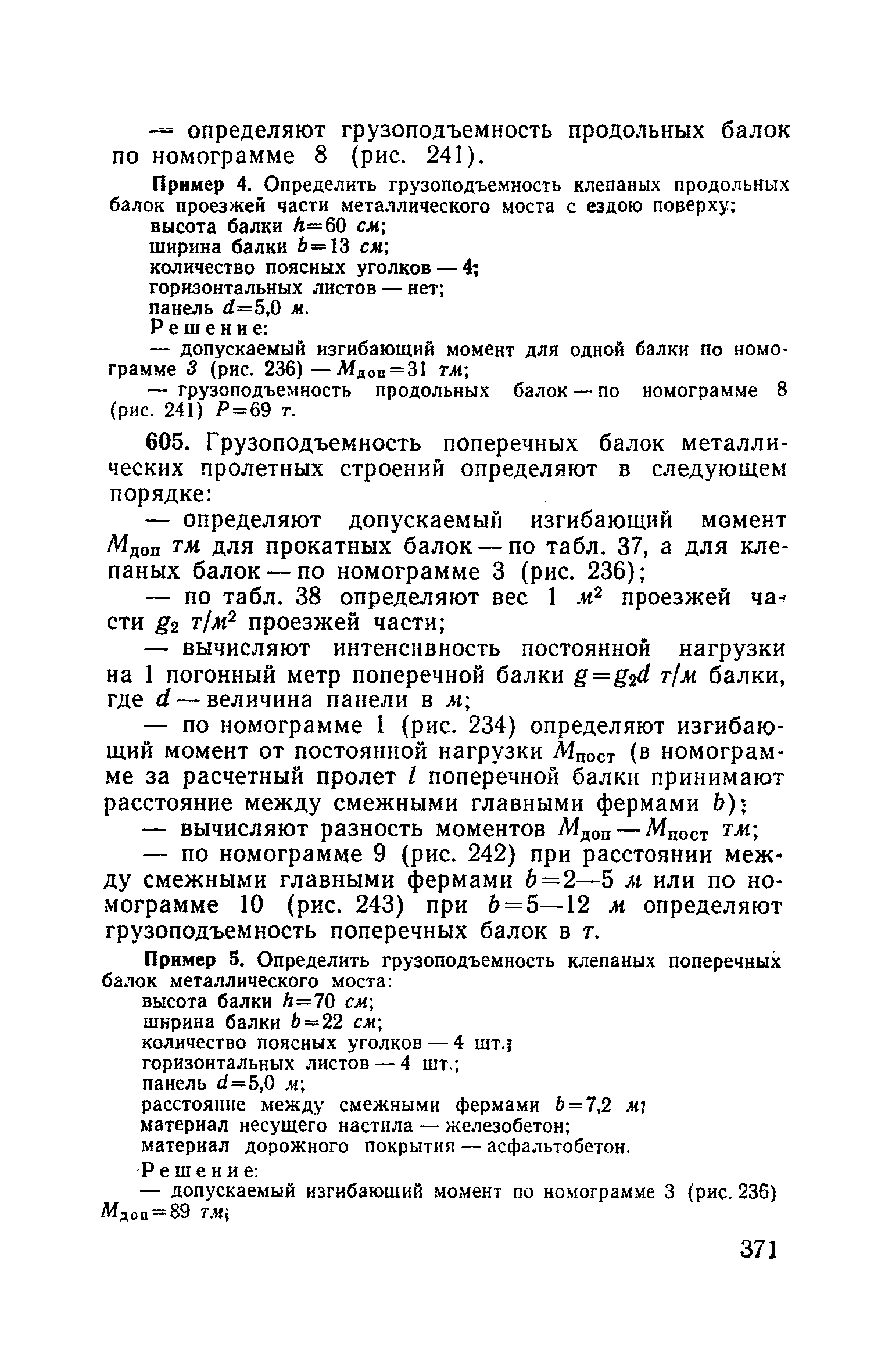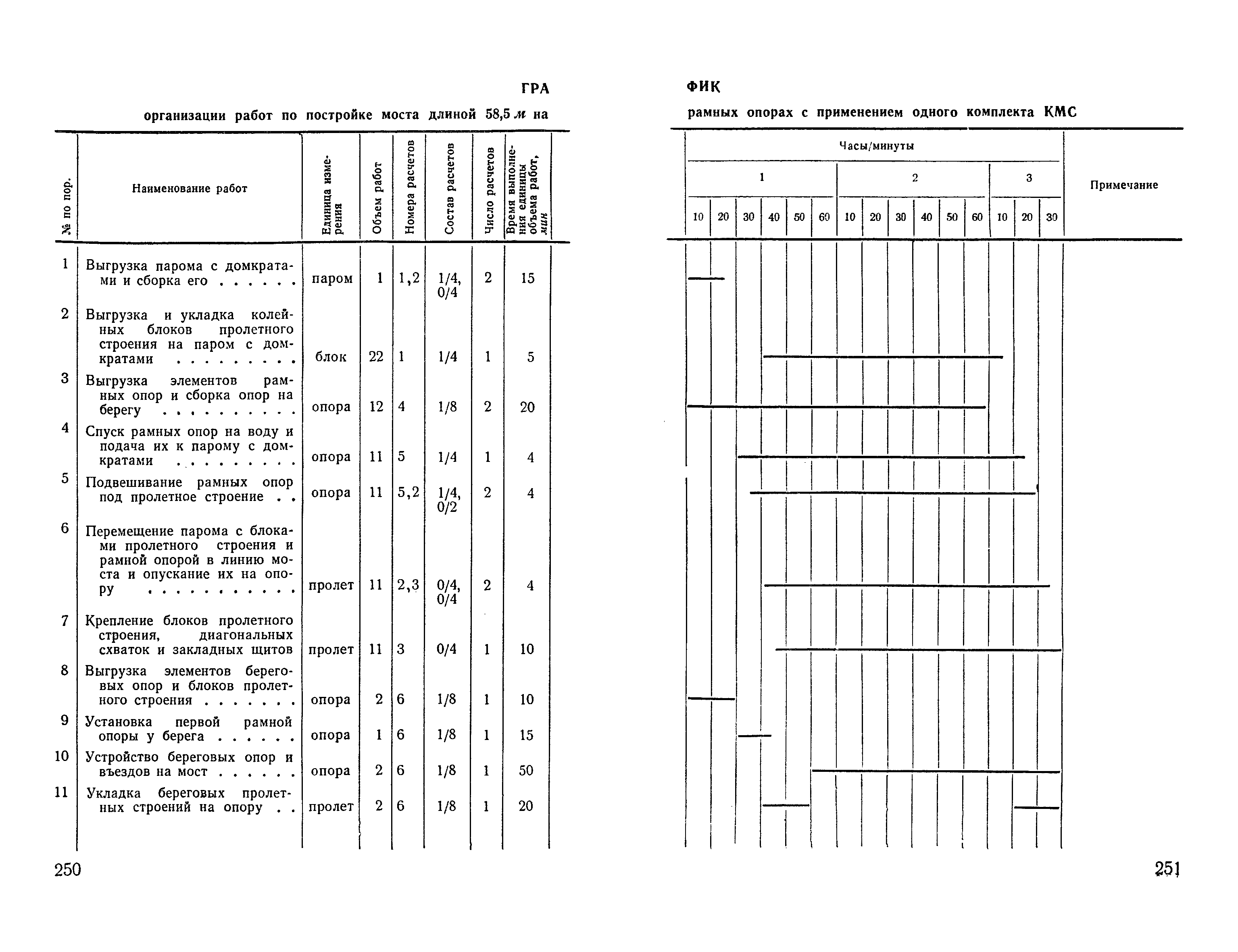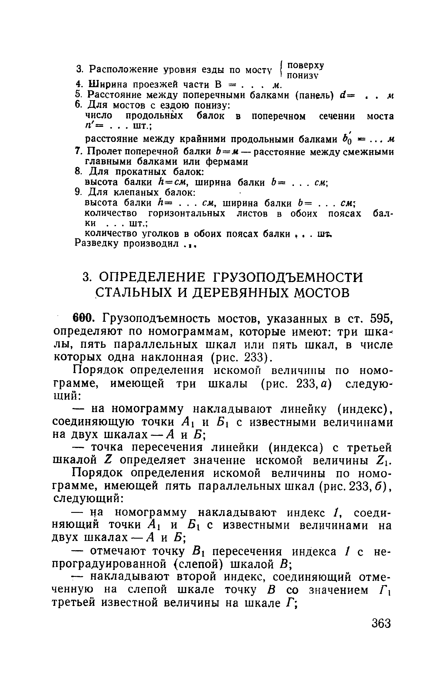 | Оглавление: | Глава 1. Общие положения Глава 2. Инженерная разведка района постройки моста Глава 3. Конструкции деревянных пролетных строений низководных мостов 1. Блочные пролетные строения Пролетные строения из колейных блоков Пролетные строения из блоков прогонов и щитов проезжей части а) Блоки простых прогонов б) Блоки сложных прогонов в) Блоки составных прогонов 2. Пролетные строения из отдельных элементов с простыми и сложными прогонами Проезжая часть Простые прогоны Сложные прогоны Глава 4. Конструкции металлических пролетных строений низководных мостов 1. Блочные пролетные строения Блоки из четырех прогонов Блоки из двух прогонов Проезжая часть 2. Пролетные строения из отдельных элементов Несущая конструкция с простыми прогонами и пакетами Несущая конструкция с составными прогонами Проезжая часть Глава 5. Промежуточные опоры низководных мостов 1. Свайные опоры 2. Рамные деревянные опоры 3. Клеточные опоры 4. Обеспечение продольной устойчивости моста Глава 6. Береговые опоры и сопряжение моста с берегами Глава 7. Изготовление и транспортировка мостовых конструкций 1. Общие положения 2. Изготовление конструкций низководных деревянных мостов Лесозаготовительные работы Лесопильные работы Работы по изготовлению деревянных мостовых конструкций Изготовление колейных блоков Сборка блоков прогонов Изготовление конструкций пролетного строения из блоков прогонов и щитов проезжей части Особенности сборки блоков сложных прогонов Изготовление составных прогонов на стальных цилиндрических нагелях и сборка блоков из двух прогонов Изготовление свай Изготовление насадок и лежней опор Изготовление элементов и сборка рамных опор Особенности изготовления элементов мостовых конструкций при постройке мостов из отдельных элементов 3. Изготовление конструкций металлических мостов Общие положения Изготовление металлических элементов Изготовление элементов проезжей части Изготовление блоков прогонов Изготовление пролетных строений из отдельных элементов 4. Транспортировка мостовых конструкций Глава 8. Постройка низководных мостов 1. Общие положения 2. Разбивка оси моста и осей опор 3. Средства механизации работ при постройке мостов 4. Глубина забивки свай в опорах 5. Организация в производство работ при постройке низководных мостов Общие положения Постройка мостов на свайных опорах при помощи комплекта мостостроительных средств КМС Постройка мостов на свайных опорах при помощи дизель-молотов ДМ-150 с одностреловыми копрами ОСК и дизель-молотов ДБ-45 с приспособлениями ПУС-1 для установки свай Постройка мостов на рамных опорах при помощи паромов с домкратами из комплекта КМС Устройство береговых опор и сопряжений моста с берегами Постройка мостов из отдельных элементов Особенности постройки двухпутных мостов на свайных опорах Особенности постройки мостов на свайных опорах с увеличенными пролетами Глава 9. Подводные мосты 1. Общие положения 2. Особенности конструкции промежуточных опор 3. Береговые опоры и сопряжение подводного моста с берегами 4. Особенности конструкции пролетных строений подводных мостов 5. Особенности постройки подводных мостов на свайных опорах 6. Особенности постройки подводных мостов на рамных опорах 7. Особенности постройки подводных мостов с металлическими прогонами Глава 10. Особенности к