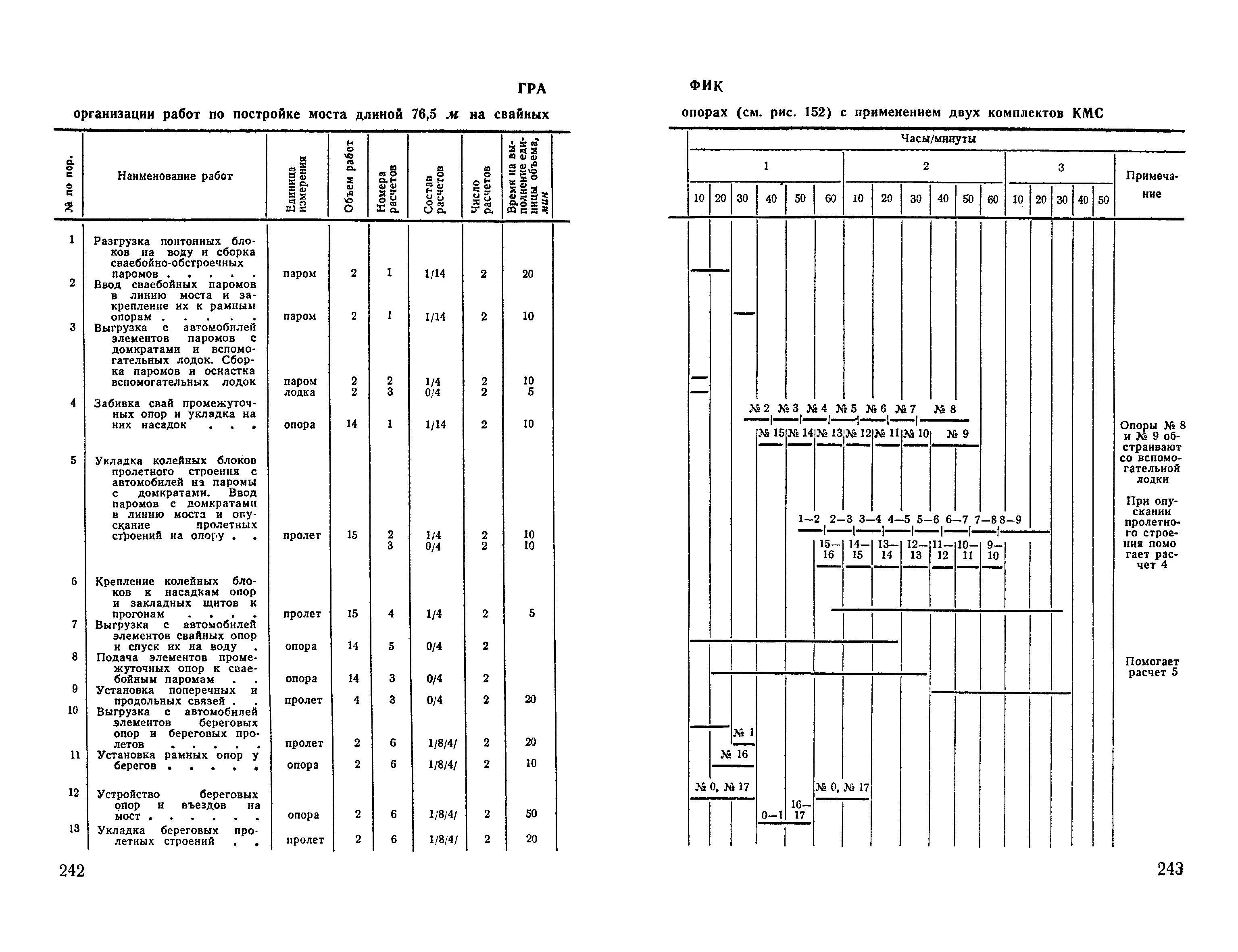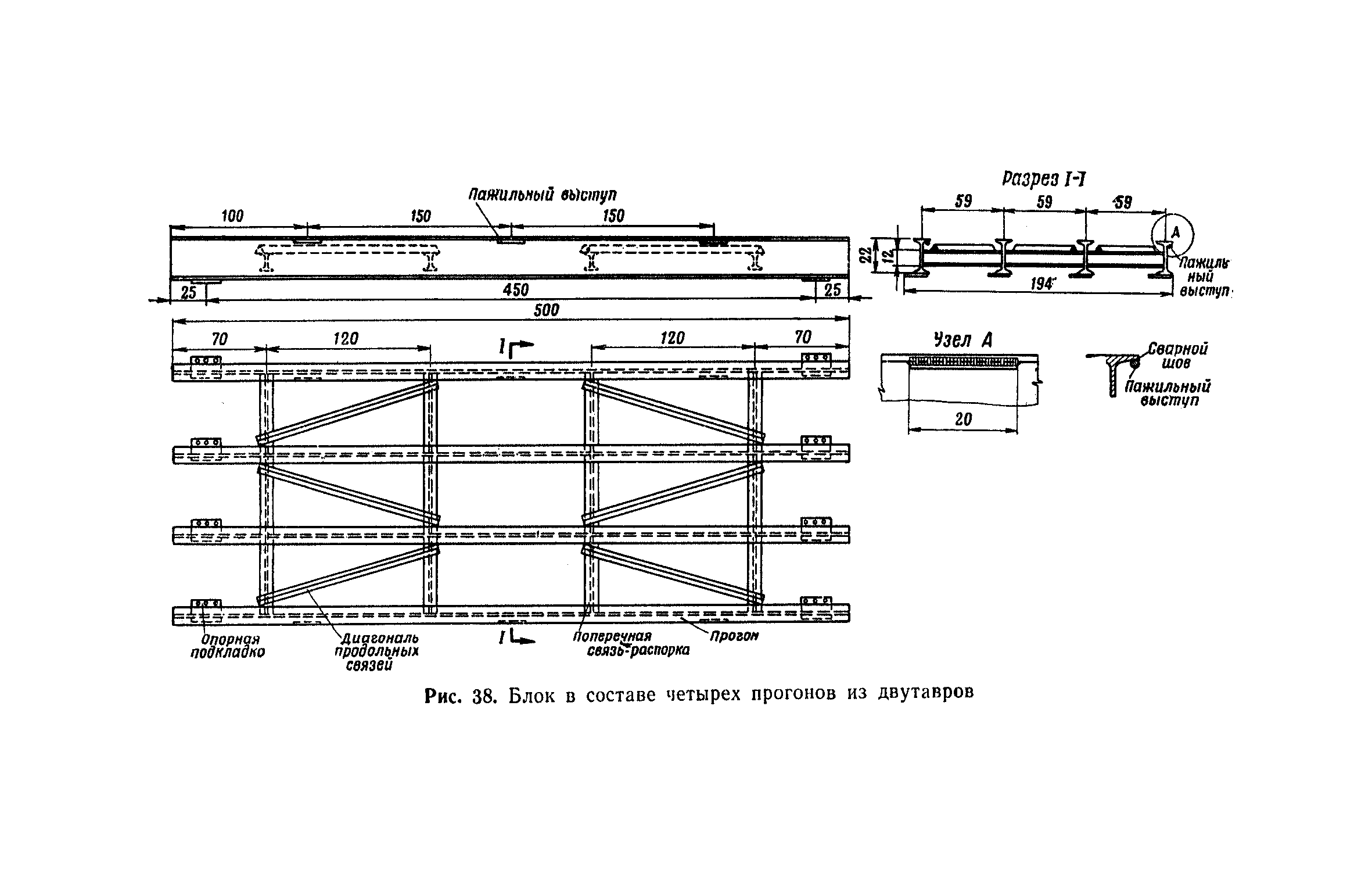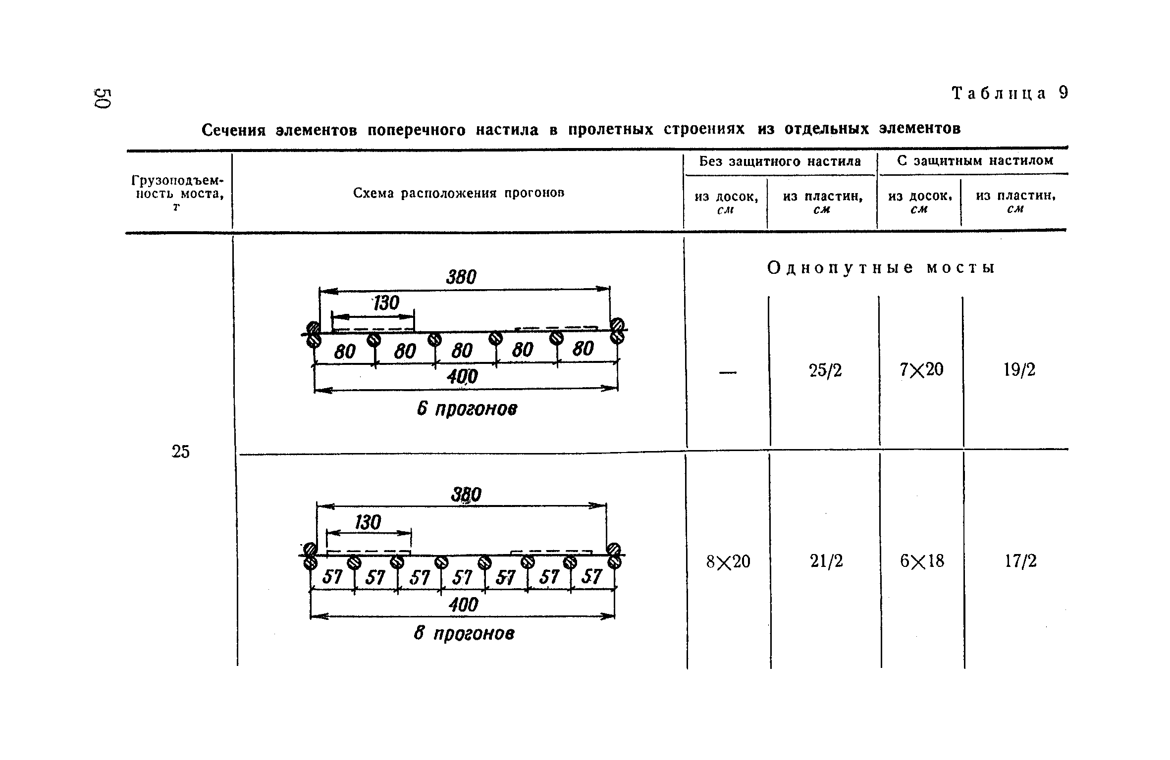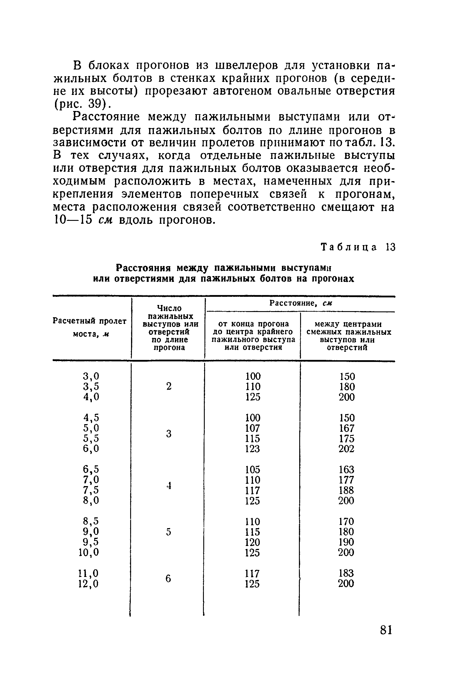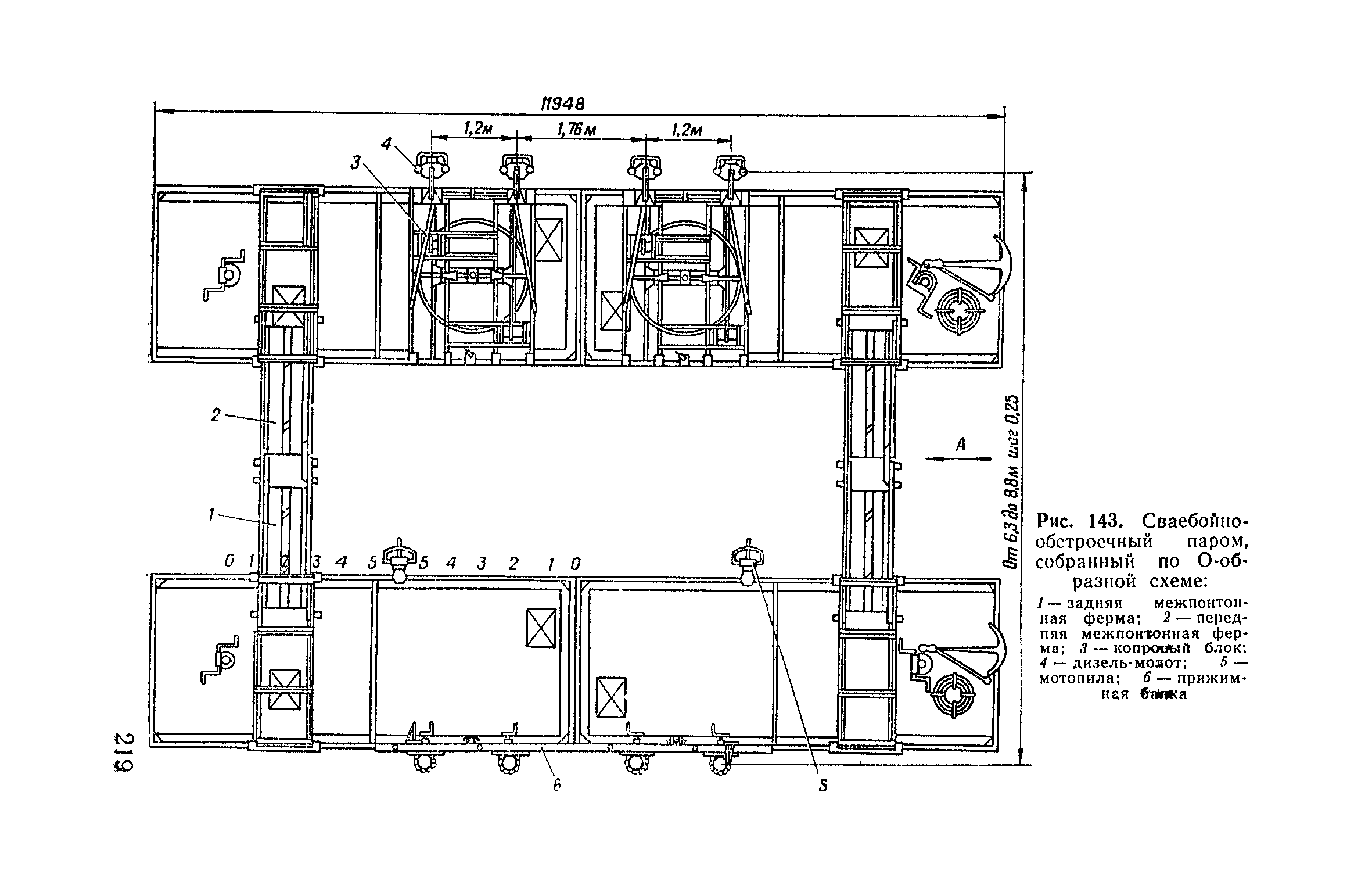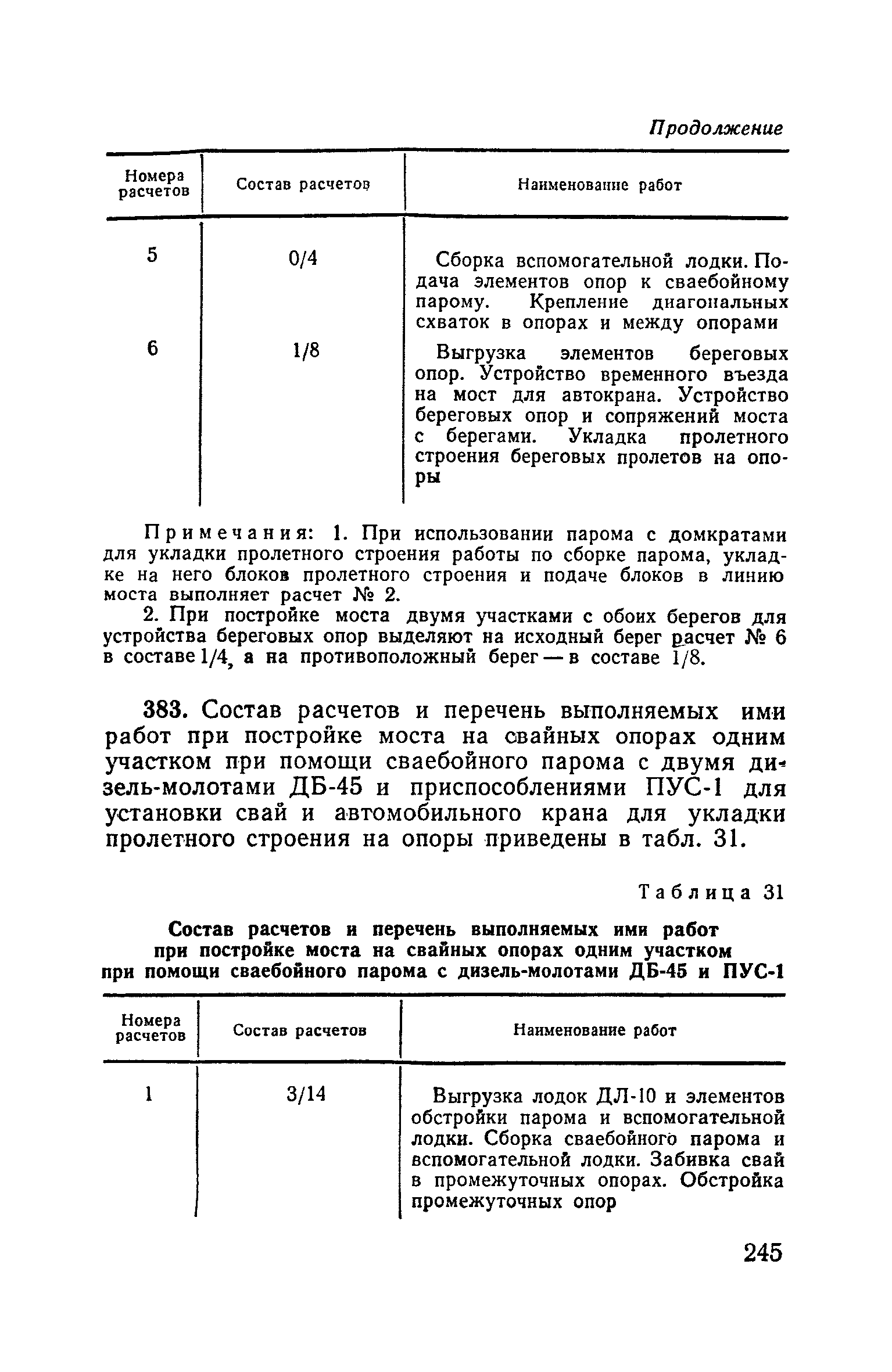 | Оглавление: | Глава 1. Общие положения Глава 2. Инженерная разведка района постройки моста Глава 3. Конструкции деревянных пролетных строений низководных мостов 1. Блочные пролетные строения Пролетные строения из колейных блоков Пролетные строения из блоков прогонов и щитов проезжей части а) Блоки простых прогонов б) Блоки сложных прогонов в) Блоки составных прогонов 2. Пролетные строения из отдельных элементов с простыми и сложными прогонами Проезжая часть Простые прогоны Сложные прогоны Глава 4. Конструкции металлических пролетных строений низководных мостов 1. Блочные пролетные строения Блоки из четырех прогонов Блоки из двух прогонов Проезжая часть 2. Пролетные строения из отдельных элементов Несущая конструкция с простыми прогонами и пакетами Несущая конструкция с составными прогонами Проезжая часть Глава 5. Промежуточные опоры низководных мостов 1. Свайные опоры 2. Рамные деревянные опоры 3. Клеточные опоры 4. Обеспечение продольной устойчивости моста Глава 6. Береговые опоры и сопряжение моста с берегами Глава 7. Изготовление и транспортировка мостовых конструкций 1. Общие положения 2. Изготовление конструкций низководных деревянных мостов Лесозаготовительные работы Лесопильные работы Работы по изготовлению деревянных мостовых конструкций Изготовление колейных блоков Сборка блоков прогонов Изготовление конструкций пролетного строения из блоков прогонов и щитов проезжей части Особенности сборки блоков сложных прогонов Изготовление составных прогонов на стальных цилиндрических нагелях и сборка блоков из двух прогонов Изготовление свай Изготовление насадок и лежней опор Изготовление элементов и сборка рамных опор Особенности изготовления элементов мостовых конструкций при постройке мостов из отдельных элементов 3. Изготовление конструкций металлических мостов Общие положения Изготовление металлических элементов Изготовление элементов проезжей части Изготовление блоков прогонов Изготовление пролетных строений из отдельных элементов 4. Транспортировка мостовых конструкций Глава 8. Постройка низководных мостов 1. Общие положения 2. Разбивка оси моста и осей опор 3. Средства механизации работ при постройке мостов 4. Глубина забивки свай в опорах 5. Организация в производство работ при постройке низководных мостов Общие положения Постройка мостов на свайных опорах при помощи комплекта мостостроительных средств КМС Постройка мостов на свайных опорах при помощи дизель-молотов ДМ-150 с одностреловыми копрами ОСК и дизель-молотов ДБ-45 с приспособлениями ПУС-1 для установки свай Постройка мостов на рамных опорах при помощи паромов с домкратами из комплекта КМС Устройство береговых опор и сопряжений моста с берегами Постройка мостов из отдельных элементов Особенности постройки двухпутных мостов на свайных опорах Особенности постройки мостов на свайных опорах с увеличенными пролетами Глава 9. Подводные мосты 1. Общие положения 2. Особенности конструкции промежуточных опор 3. Береговые опоры и сопряжение подводного моста с берегами 4. Особенности конструкции пролетных строений подводных мостов 5. Особенности постройки подводных мостов на свайных опорах 6. Особенности постройки подводных мостов на рамных опорах 7. Особенности постройки подводных мостов с металлическими прогонами Глава 10. Особенности к