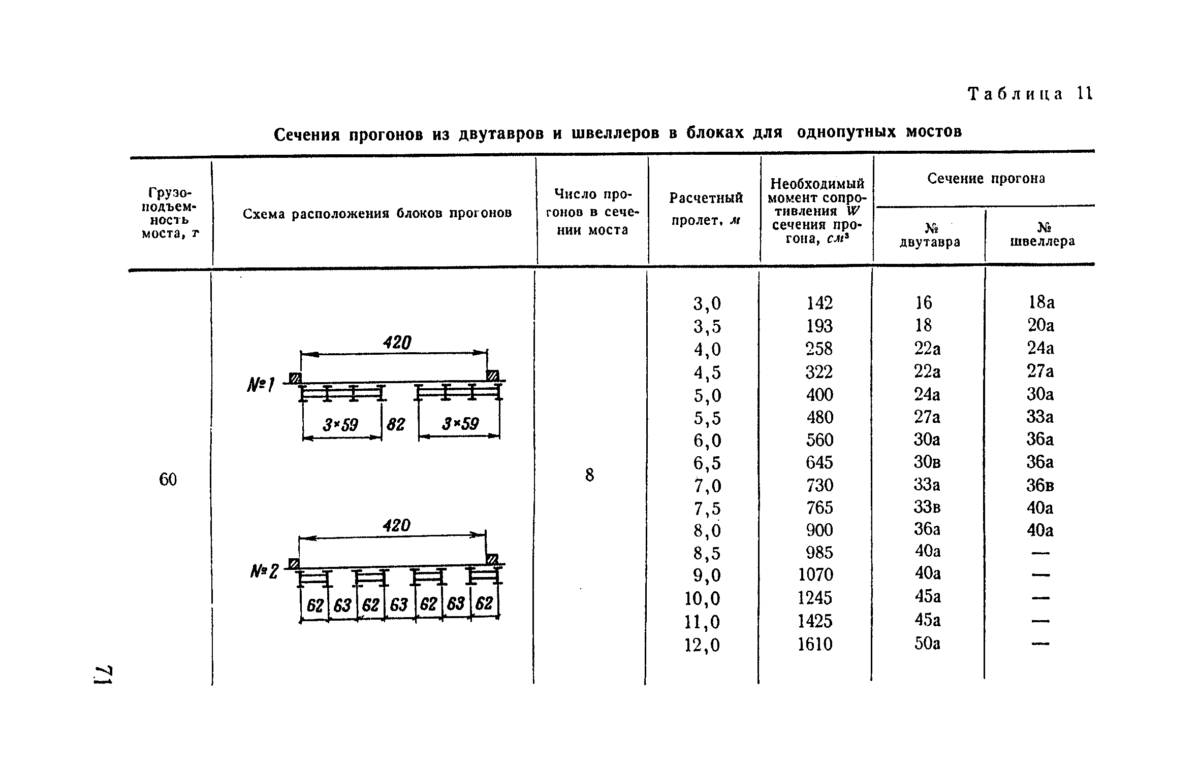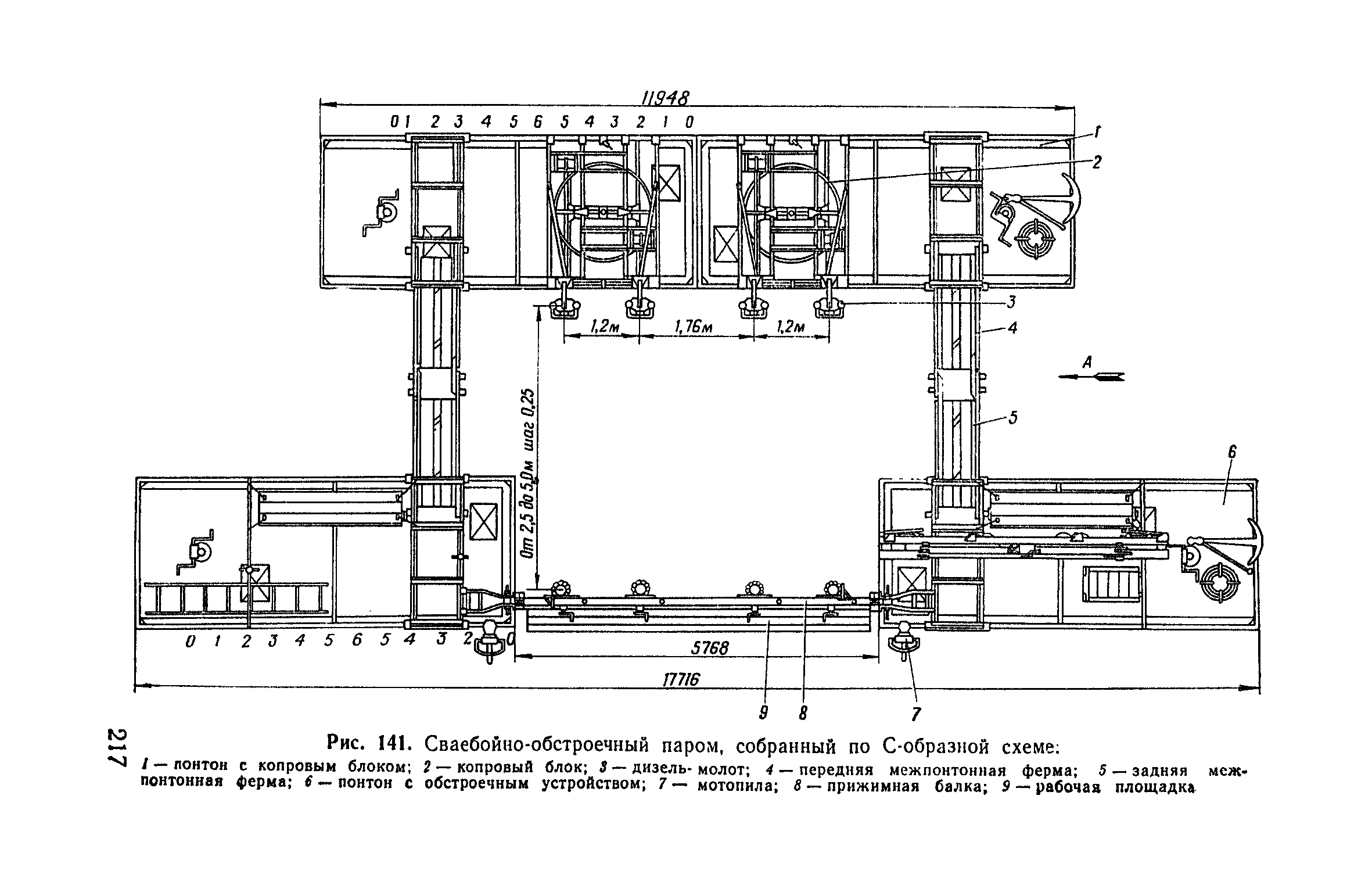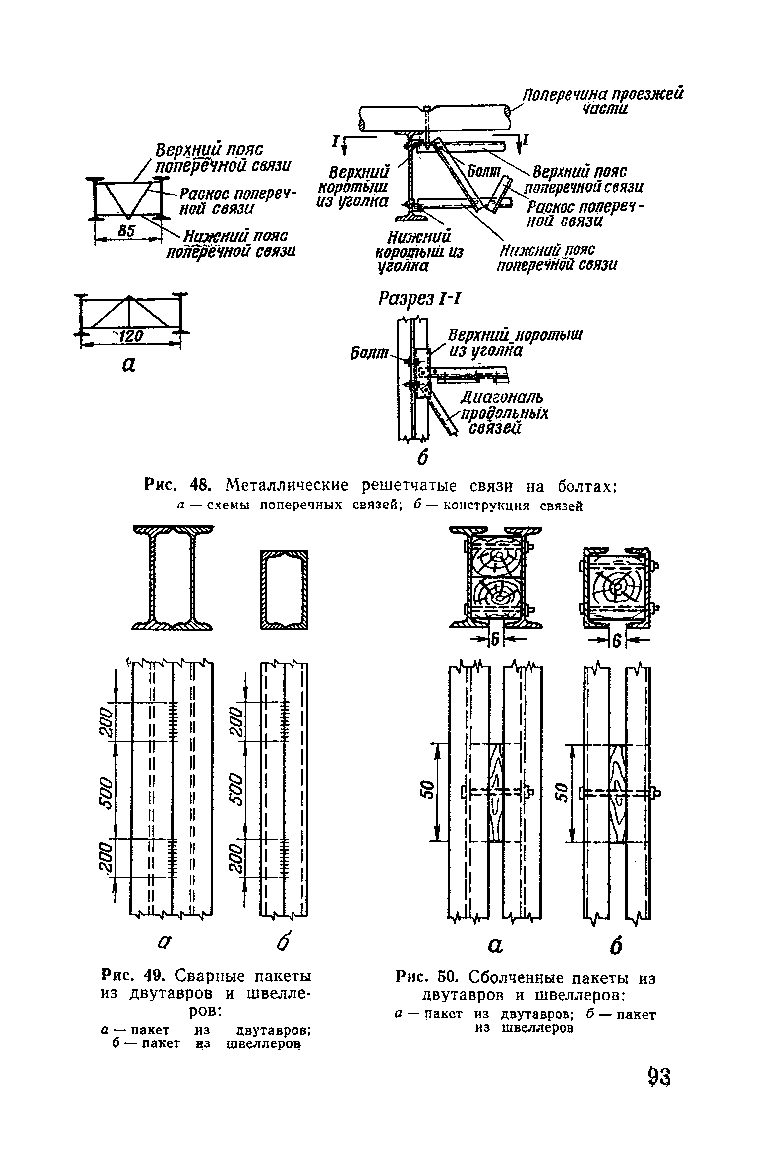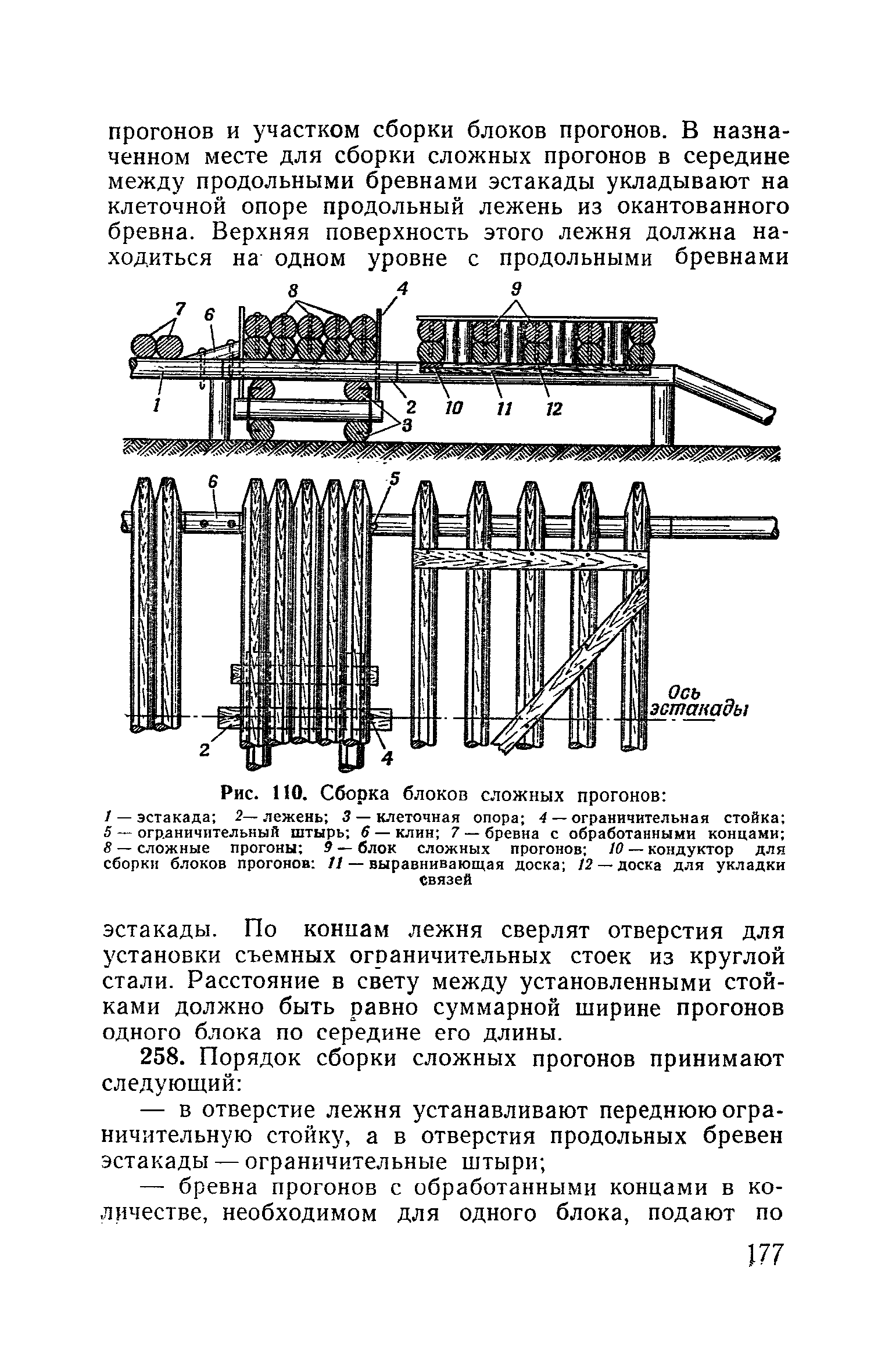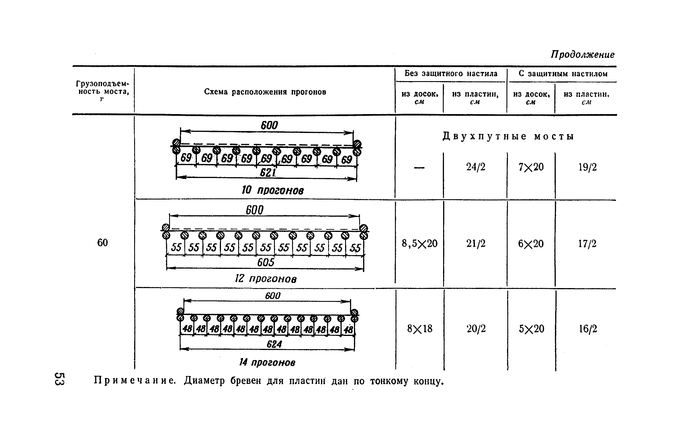 | Оглавление: | Глава 1. Общие положения Глава 2. Инженерная разведка района постройки моста Глава 3. Конструкции деревянных пролетных строений низководных мостов 1. Блочные пролетные строения Пролетные строения из колейных блоков Пролетные строения из блоков прогонов и щитов проезжей части а) Блоки простых прогонов б) Блоки сложных прогонов в) Блоки составных прогонов 2. Пролетные строения из отдельных элементов с простыми и сложными прогонами Проезжая часть Простые прогоны Сложные прогоны Глава 4. Конструкции металлических пролетных строений низководных мостов 1. Блочные пролетные строения Блоки из четырех прогонов Блоки из двух прогонов Проезжая часть 2. Пролетные строения из отдельных элементов Несущая конструкция с простыми прогонами и пакетами Несущая конструкция с составными прогонами Проезжая часть Глава 5. Промежуточные опоры низководных мостов 1. Свайные опоры 2. Рамные деревянные опоры 3. Клеточные опоры 4. Обеспечение продольной устойчивости моста Глава 6. Береговые опоры и сопряжение моста с берегами Глава 7. Изготовление и транспортировка мостовых конструкций 1. Общие положения 2. Изготовление конструкций низководных деревянных мостов Лесозаготовительные работы Лесопильные работы Работы по изготовлению деревянных мостовых конструкций Изготовление колейных блоков Сборка блоков прогонов Изготовление конструкций пролетного строения из блоков прогонов и щитов проезжей части Особенности сборки блоков сложных прогонов Изготовление составных прогонов на стальных цилиндрических нагелях и сборка блоков из двух прогонов Изготовление свай Изготовление насадок и лежней опор Изготовление элементов и сборка рамных опор Особенности изготовления элементов мостовых конструкций при постройке мостов из отдельных элементов 3. Изготовление конструкций металлических мостов Общие положения Изготовление металлических элементов Изготовление элементов проезжей части Изготовление блоков прогонов Изготовление пролетных строений из отдельных элементов 4. Транспортировка мостовых конструкций Глава 8. Постройка низководных мостов 1. Общие положения 2. Разбивка оси моста и осей опор 3. Средства механизации работ при постройке мостов 4. Глубина забивки свай в опорах 5. Организация в производство работ при постройке низководных мостов Общие положения Постройка мостов на свайных опорах при помощи комплекта мостостроительных средств КМС Постройка мостов на свайных опорах при помощи дизель-молотов ДМ-150 с одностреловыми копрами ОСК и дизель-молотов ДБ-45 с приспособлениями ПУС-1 для установки свай Постройка мостов на рамных опорах при помощи паромов с домкратами из комплекта КМС Устройство береговых опор и сопряжений моста с берегами Постройка мостов из отдельных элементов Особенности постройки двухпутных мостов на свайных опорах Особенности постройки мостов на свайных опорах с увеличенными пролетами Глава 9. Подводные мосты 1. Общие положения 2. Особенности конструкции промежуточных опор 3. Береговые опоры и сопряжение подводного моста с берегами 4. Особенности конструкции пролетных строений подводных мостов 5. Особенности постройки подводных мостов на свайных опорах 6. Особенности постройки подводных мостов на рамных опорах 7. Особенности постройки подводных мостов с металлическими прогонами Глава 10. Особенности к