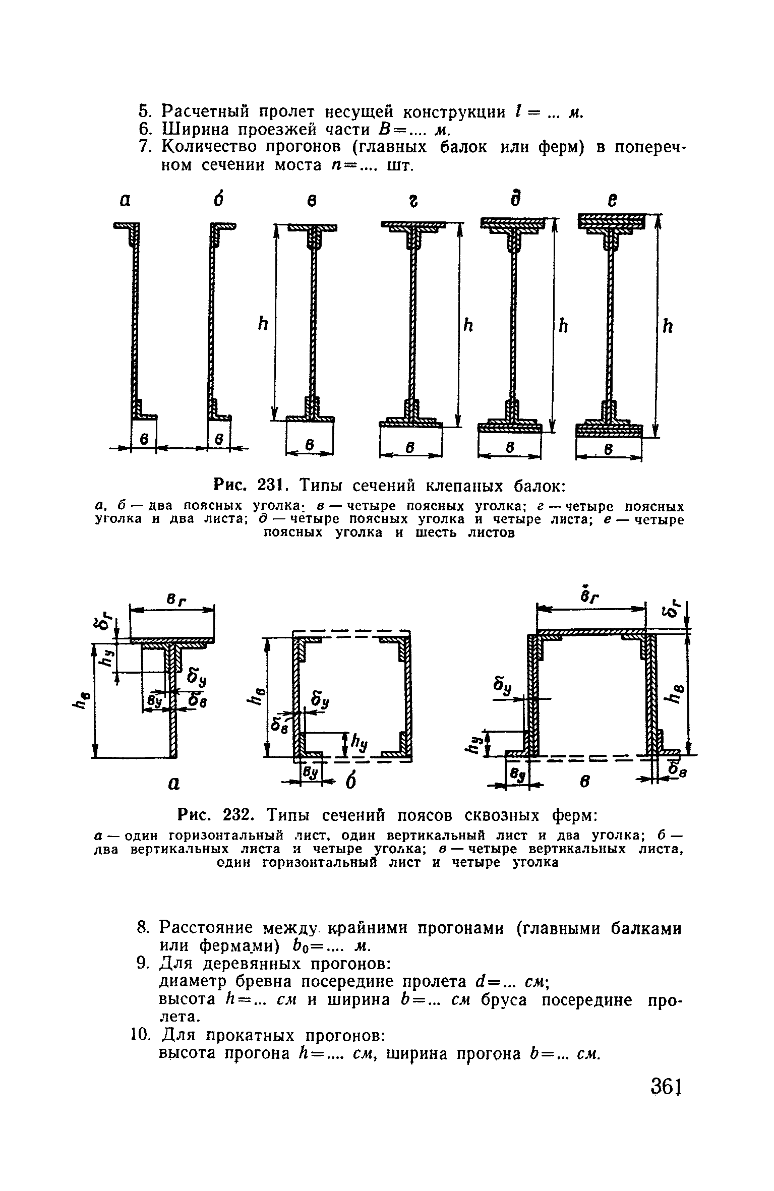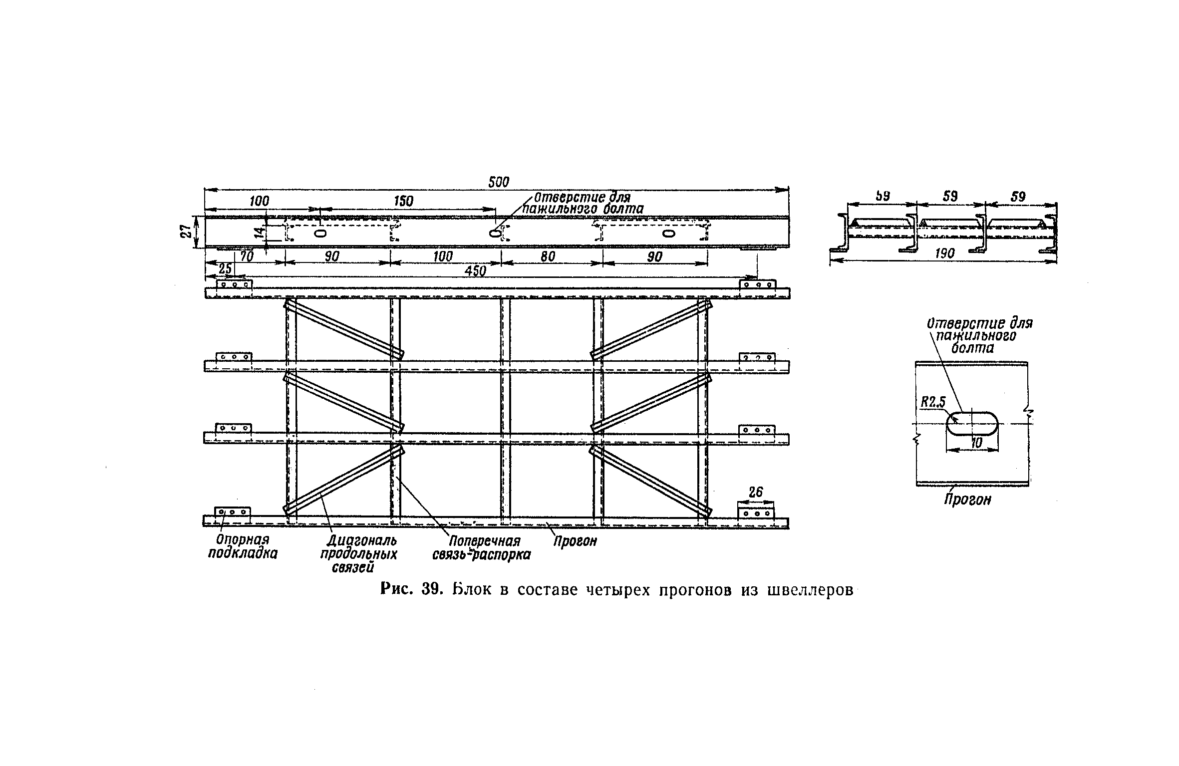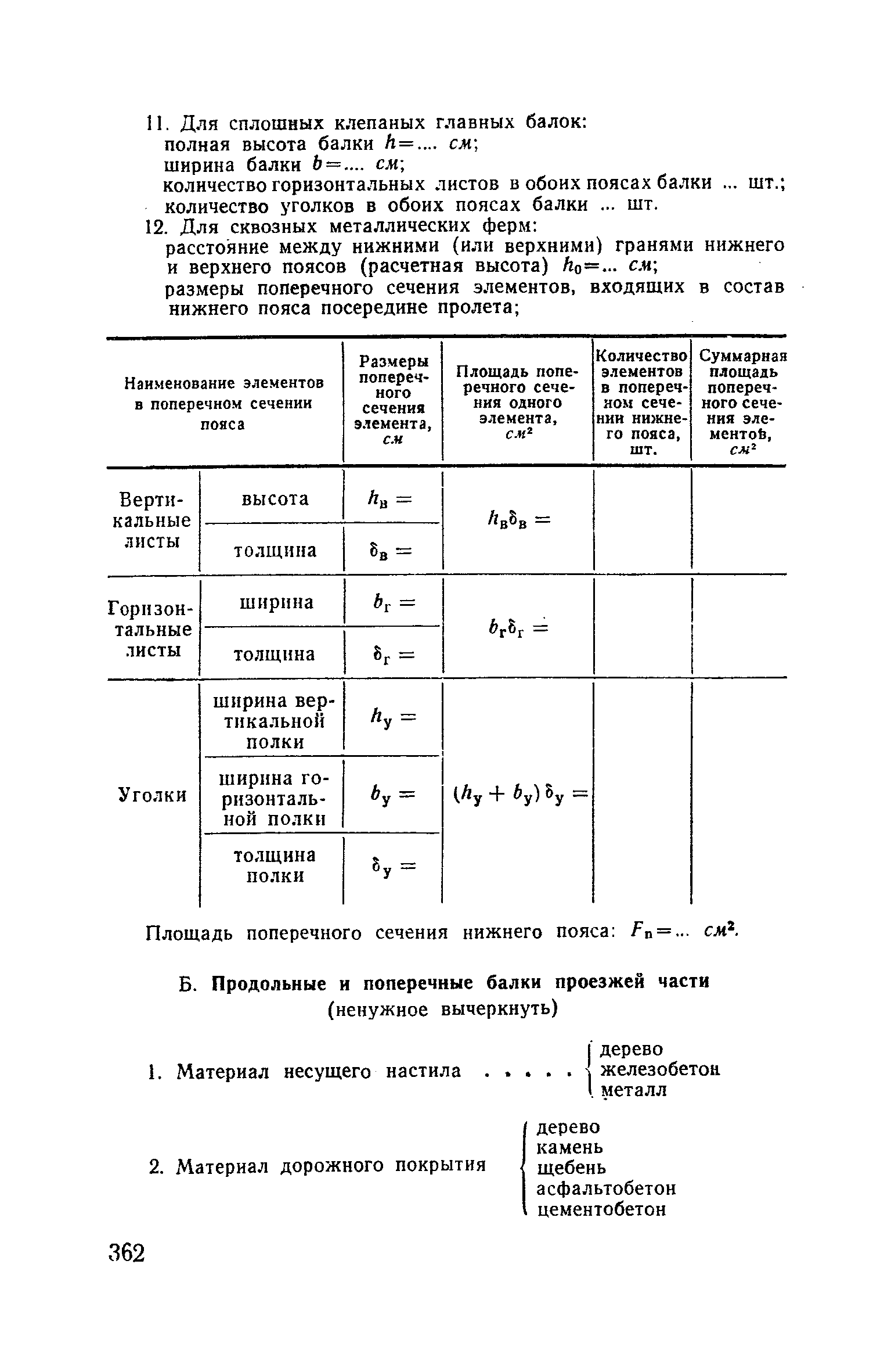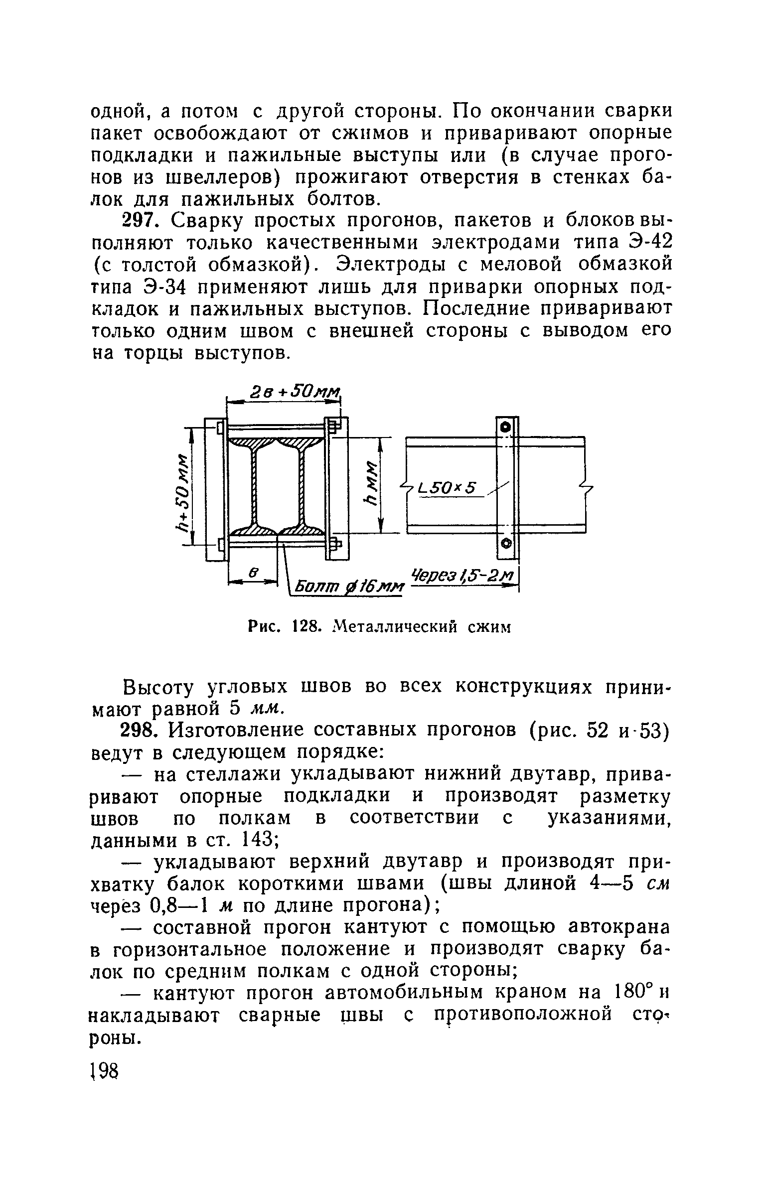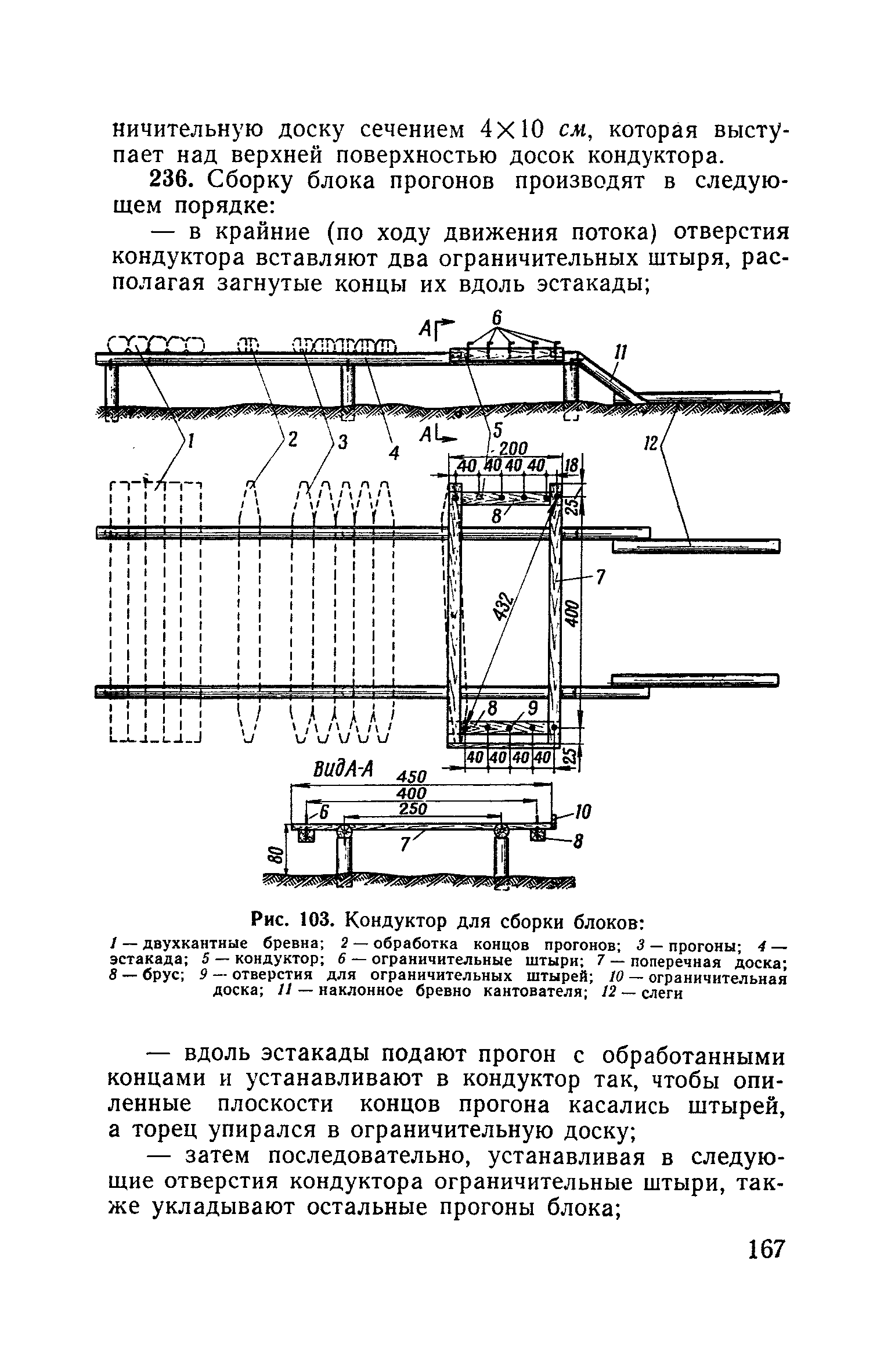 | Оглавление: | Глава 1. Общие положения Глава 2. Инженерная разведка района постройки моста Глава 3. Конструкции деревянных пролетных строений низководных мостов 1. Блочные пролетные строения Пролетные строения из колейных блоков Пролетные строения из блоков прогонов и щитов проезжей части а) Блоки простых прогонов б) Блоки сложных прогонов в) Блоки составных прогонов 2. Пролетные строения из отдельных элементов с простыми и сложными прогонами Проезжая часть Простые прогоны Сложные прогоны Глава 4. Конструкции металлических пролетных строений низководных мостов 1. Блочные пролетные строения Блоки из четырех прогонов Блоки из двух прогонов Проезжая часть 2. Пролетные строения из отдельных элементов Несущая конструкция с простыми прогонами и пакетами Несущая конструкция с составными прогонами Проезжая часть Глава 5. Промежуточные опоры низководных мостов 1. Свайные опоры 2. Рамные деревянные опоры 3. Клеточные опоры 4. Обеспечение продольной устойчивости моста Глава 6. Береговые опоры и сопряжение моста с берегами Глава 7. Изготовление и транспортировка мостовых конструкций 1. Общие положения 2. Изготовление конструкций низководных деревянных мостов Лесозаготовительные работы Лесопильные работы Работы по изготовлению деревянных мостовых конструкций Изготовление колейных блоков Сборка блоков прогонов Изготовление конструкций пролетного строения из блоков прогонов и щитов проезжей части Особенности сборки блоков сложных прогонов Изготовление составных прогонов на стальных цилиндрических нагелях и сборка блоков из двух прогонов Изготовление свай Изготовление насадок и лежней опор Изготовление элементов и сборка рамных опор Особенности изготовления элементов мостовых конструкций при постройке мостов из отдельных элементов 3. Изготовление конструкций металлических мостов Общие положения Изготовление металлических элементов Изготовление элементов проезжей части Изготовление блоков прогонов Изготовление пролетных строений из отдельных элементов 4. Транспортировка мостовых конструкций Глава 8. Постройка низководных мостов 1. Общие положения 2. Разбивка оси моста и осей опор 3. Средства механизации работ при постройке мостов 4. Глубина забивки свай в опорах 5. Организация в производство работ при постройке низководных мостов Общие положения Постройка мостов на свайных опорах при помощи комплекта мостостроительных средств КМС Постройка мостов на свайных опорах при помощи дизель-молотов ДМ-150 с одностреловыми копрами ОСК и дизель-молотов ДБ-45 с приспособлениями ПУС-1 для установки свай Постройка мостов на рамных опорах при помощи паромов с домкратами из комплекта КМС Устройство береговых опор и сопряжений моста с берегами Постройка мостов из отдельных элементов Особенности постройки двухпутных мостов на свайных опорах Особенности постройки мостов на свайных опорах с увеличенными пролетами Глава 9. Подводные мосты 1. Общие положения 2. Особенности конструкции промежуточных опор 3. Береговые опоры и сопряжение подводного моста с берегами 4. Особенности конструкции пролетных строений подводных мостов 5. Особенности постройки подводных мостов на свайных опорах 6. Особенности постройки подводных мостов на рамных опорах 7. Особенности постройки подводных мостов с металлическими прогонами Глава 10. Особенности к