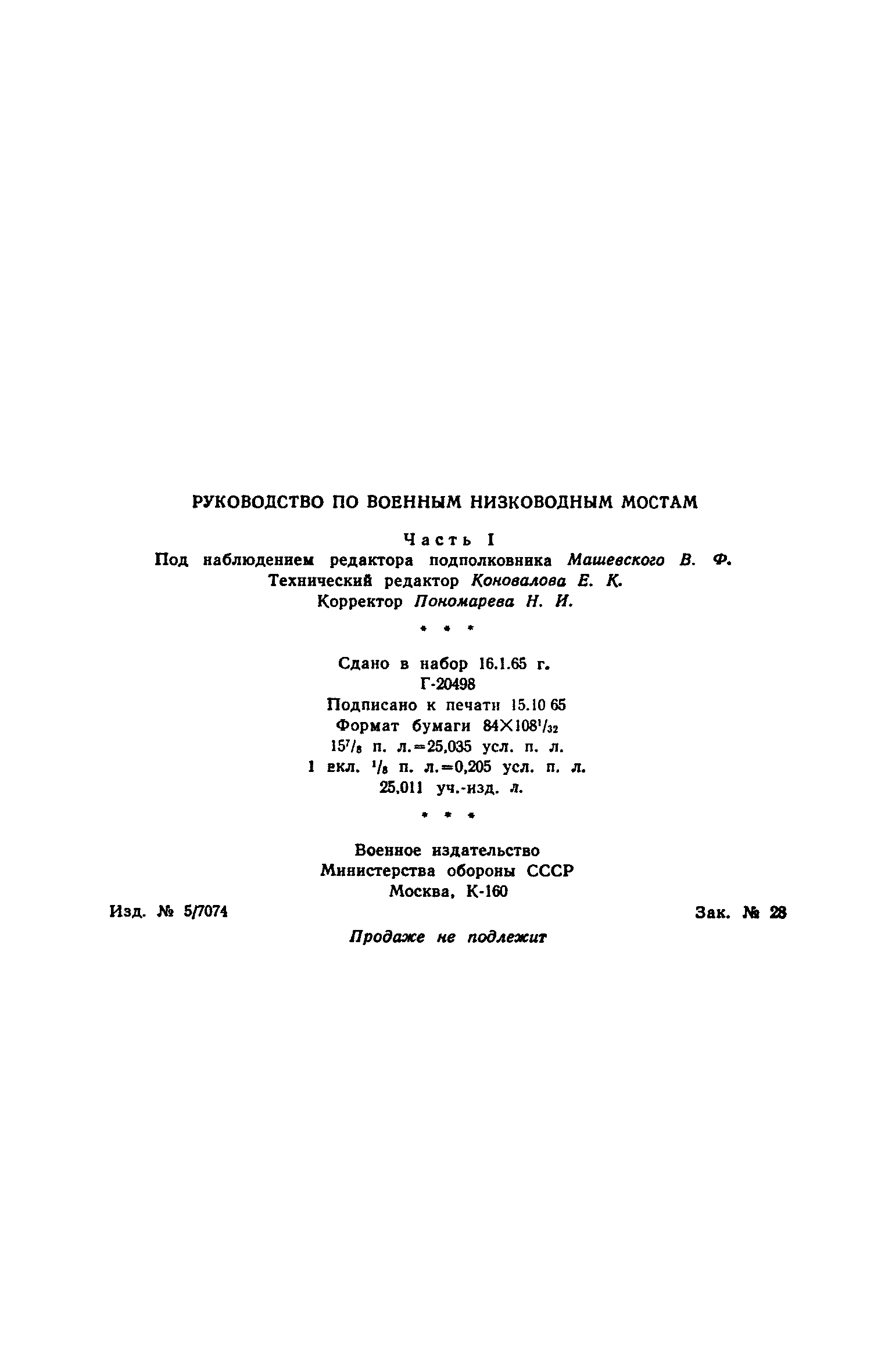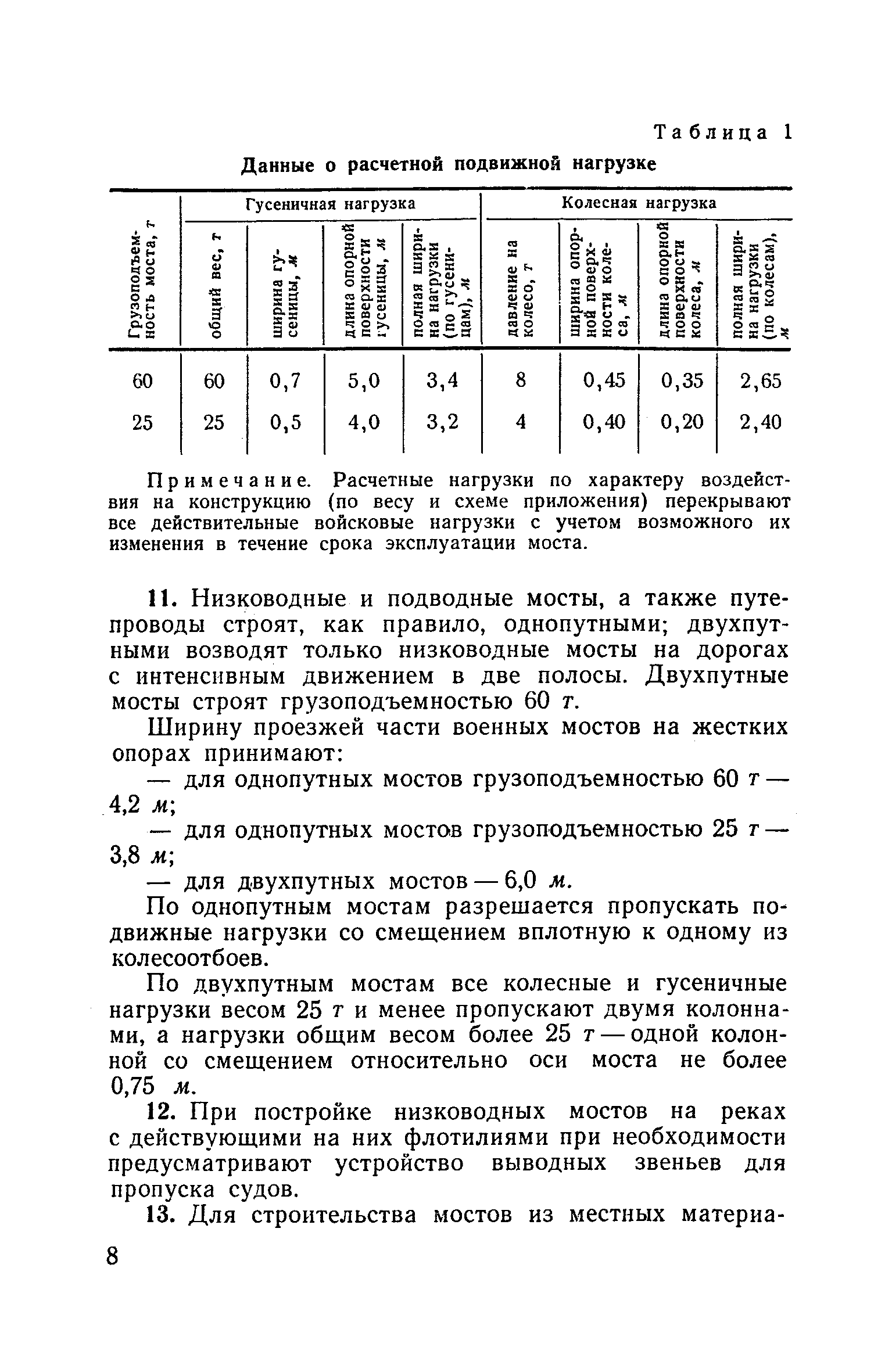 | Область применения: | Руководство по военным низководным мостам содержит указания по строительству низководных и подводных мостов и путепроводов на жестких опорах, возводимых из местных материалов |