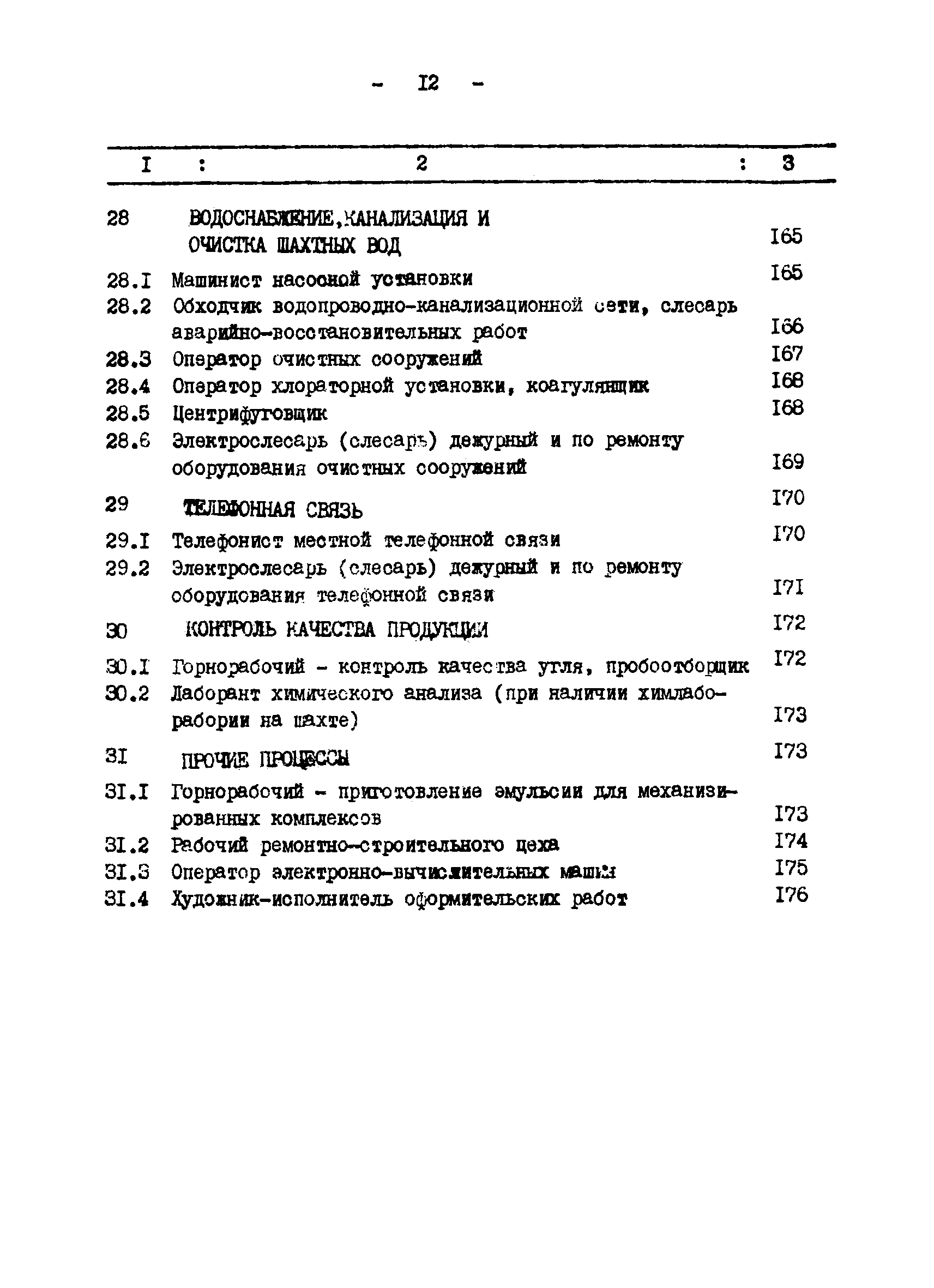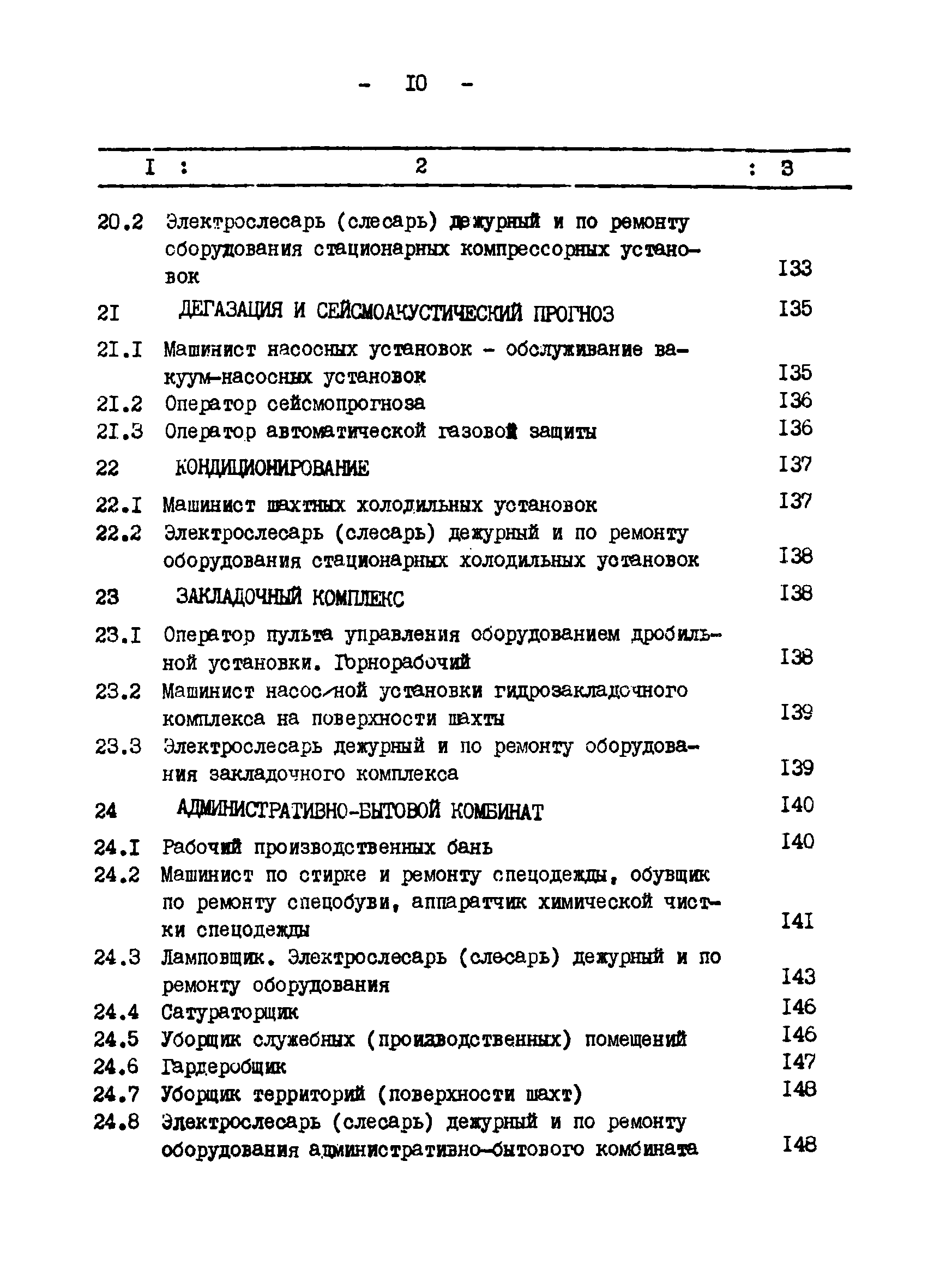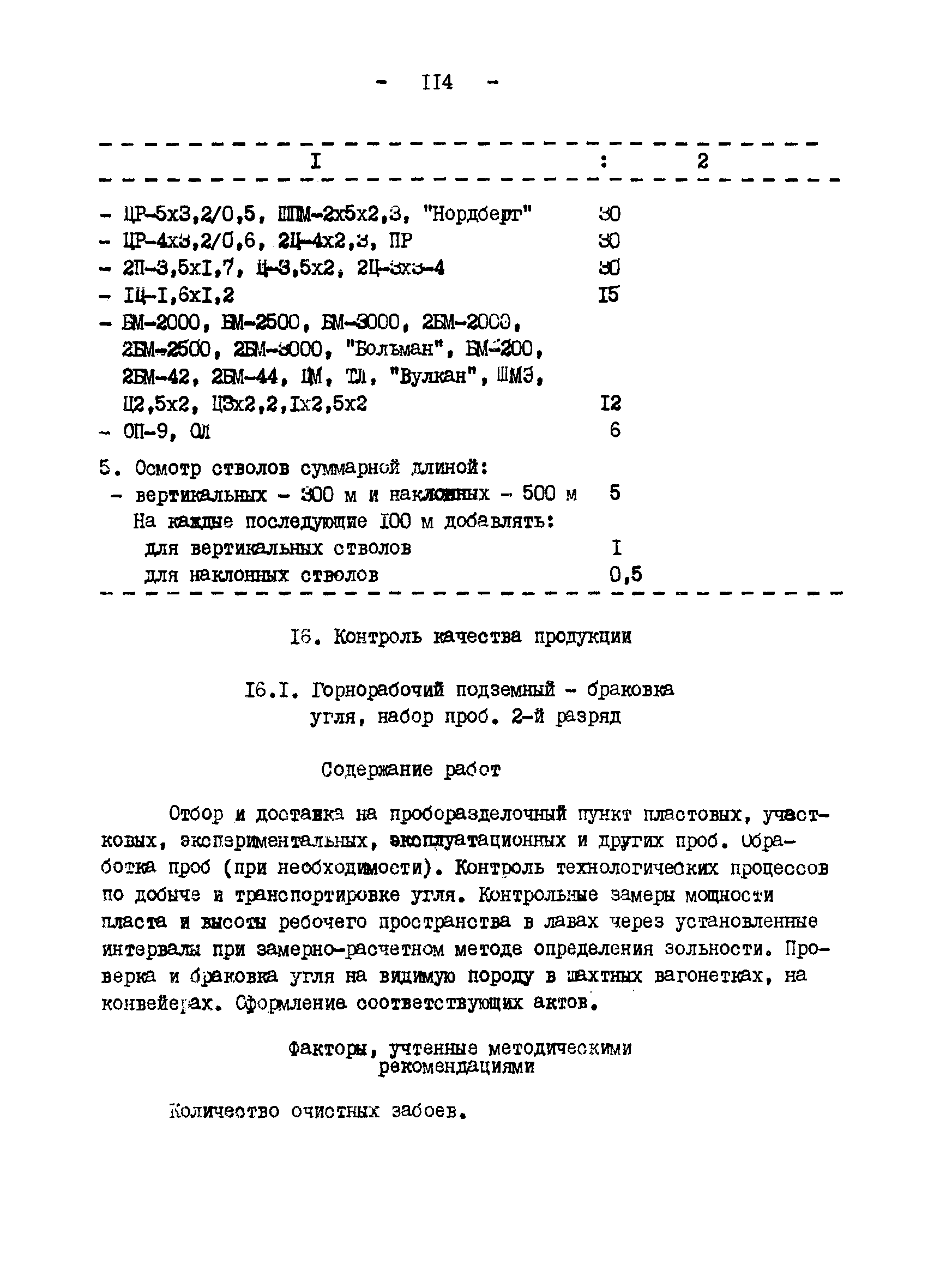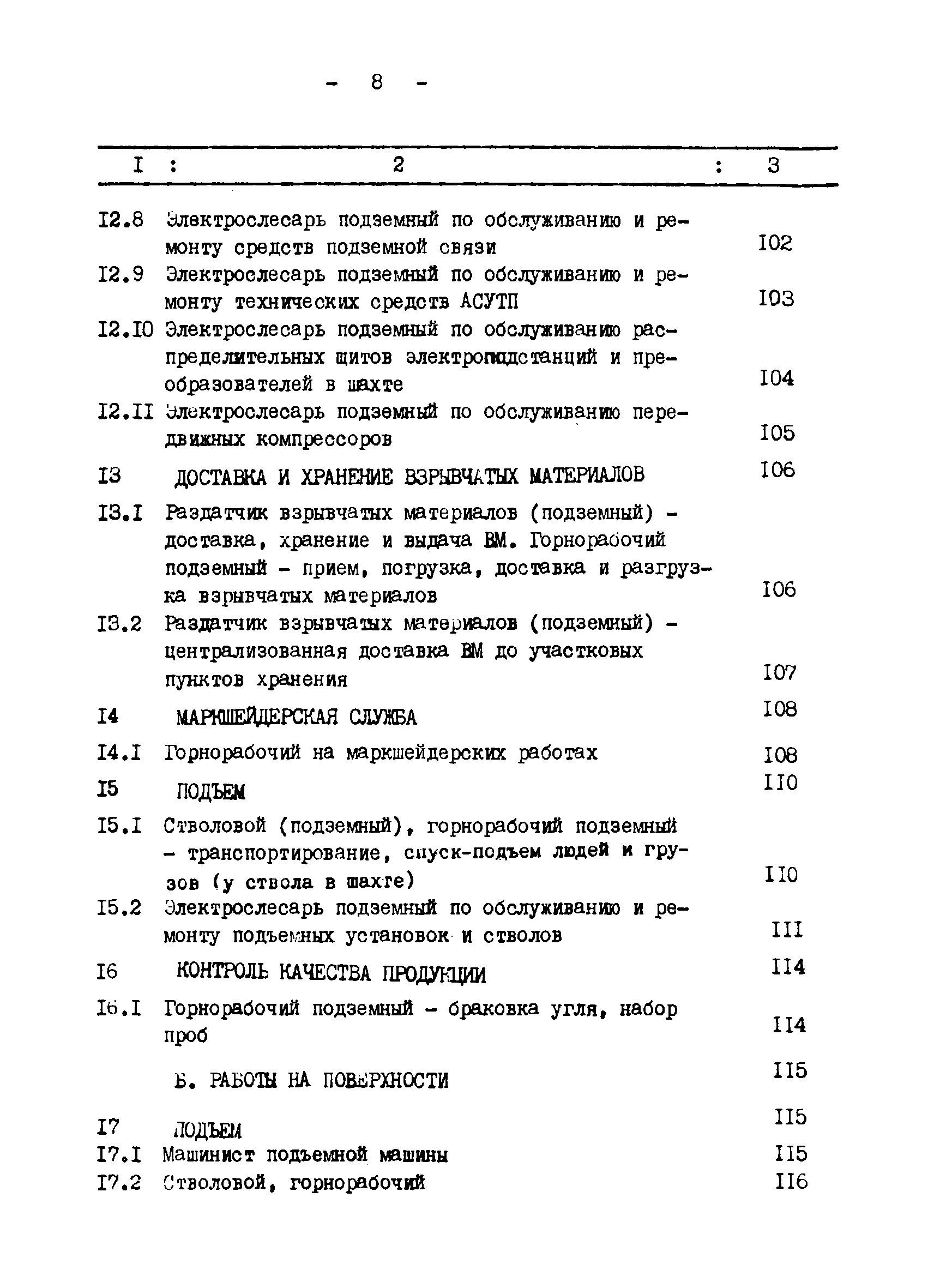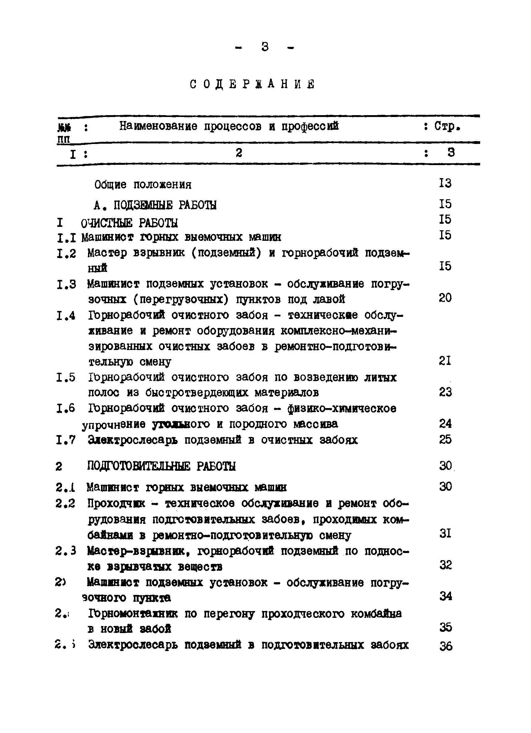 | Оглавление: | Общие положения А. Подземные работы 1 Очистные работы 2 Подготовительные работы 3 Подземный транспорт 4 Содержание и ремонт горных выработок и откаточных путей 5 Вентиляция и борьба с угольной пылью 6 Водоотлив 7 Дегазация, сейсмоакустический прогноз и прогноз степени удароопасности 8 Кондиционирование воздуха 9 Увлажнение угольного массива 10 Закладочное хозяйство 11 Монтаж и демонтаж оборудования 12 Обслуживание и ремонт общешахтных машин, механизмов и установок 13 Доставка и хранение взрывчатых материалов 14 Маркшейдерская служба 15 Подъем 16 Контроль качества продукции Б. Работы на поверхности 17 Подъем 18 Технологический комплекс 19 Вентиляция 20 Компрессорная 21 Дегазация и сейсмоакустический прогноз 22 Кондиционирование 23 Закладочный комплекс 24 Административно-бытовой комбинат 25 Обслуживание и ремонт общешахтного оборудования на поверхности 26 Склады материалов и оборудования 27 Котельная 28 Водоснабжение, канализация и очистка шахтных вод 29 Телефонная связь 30 Контроль качества продукции 31 Прочие процессы |
