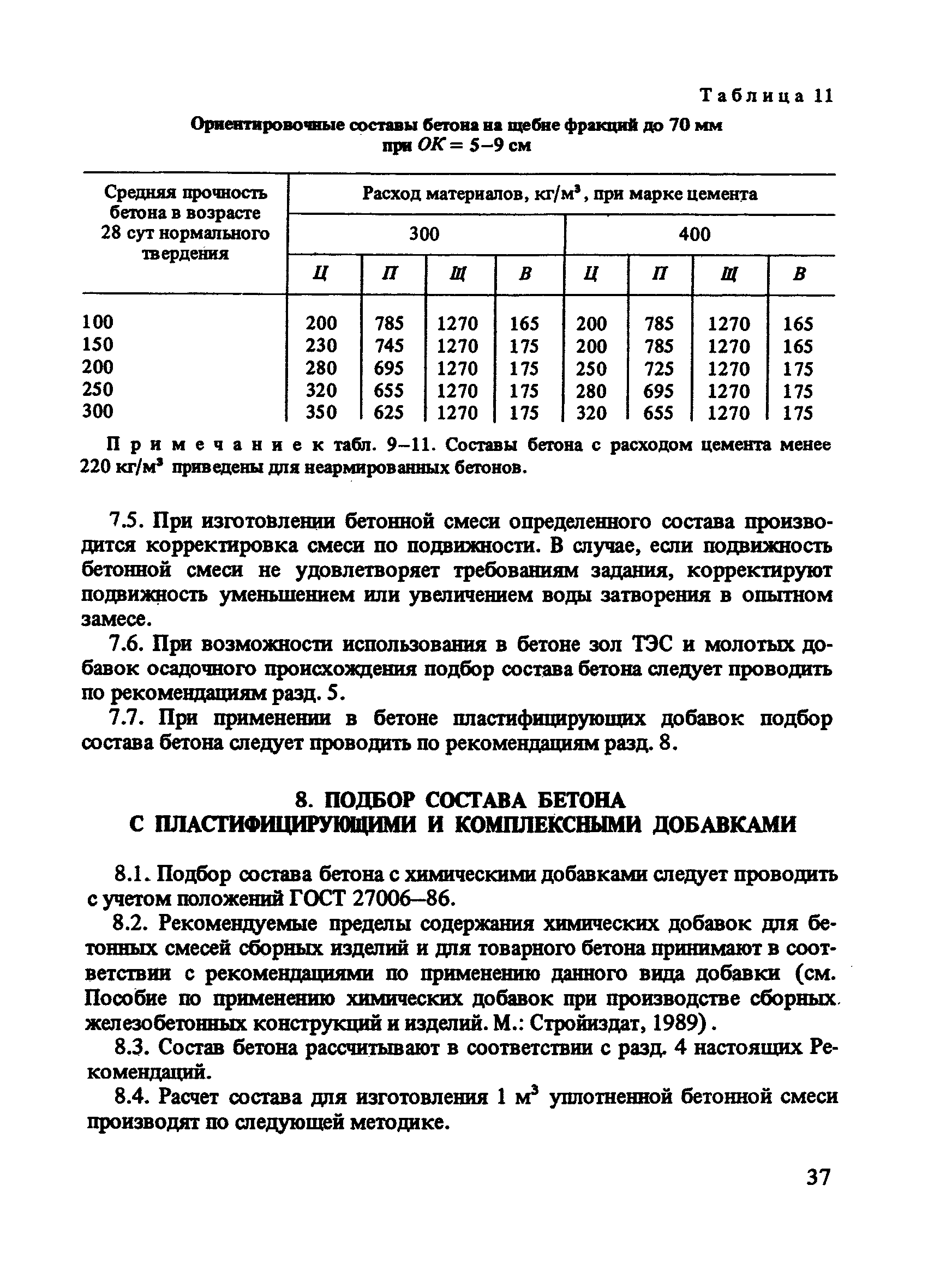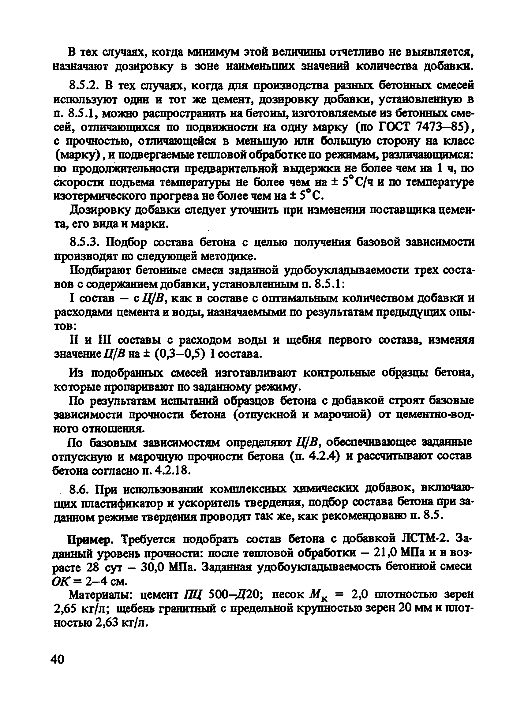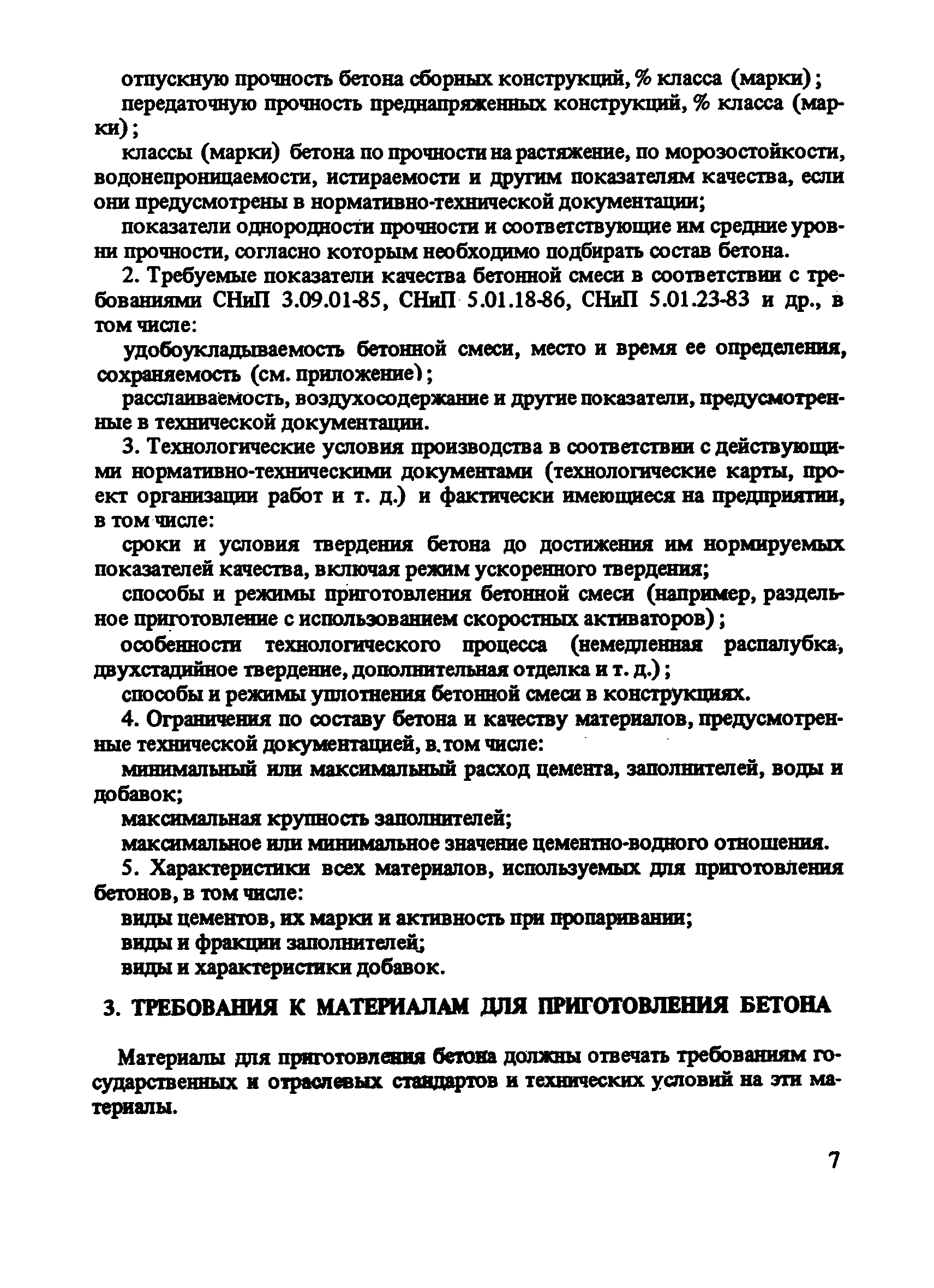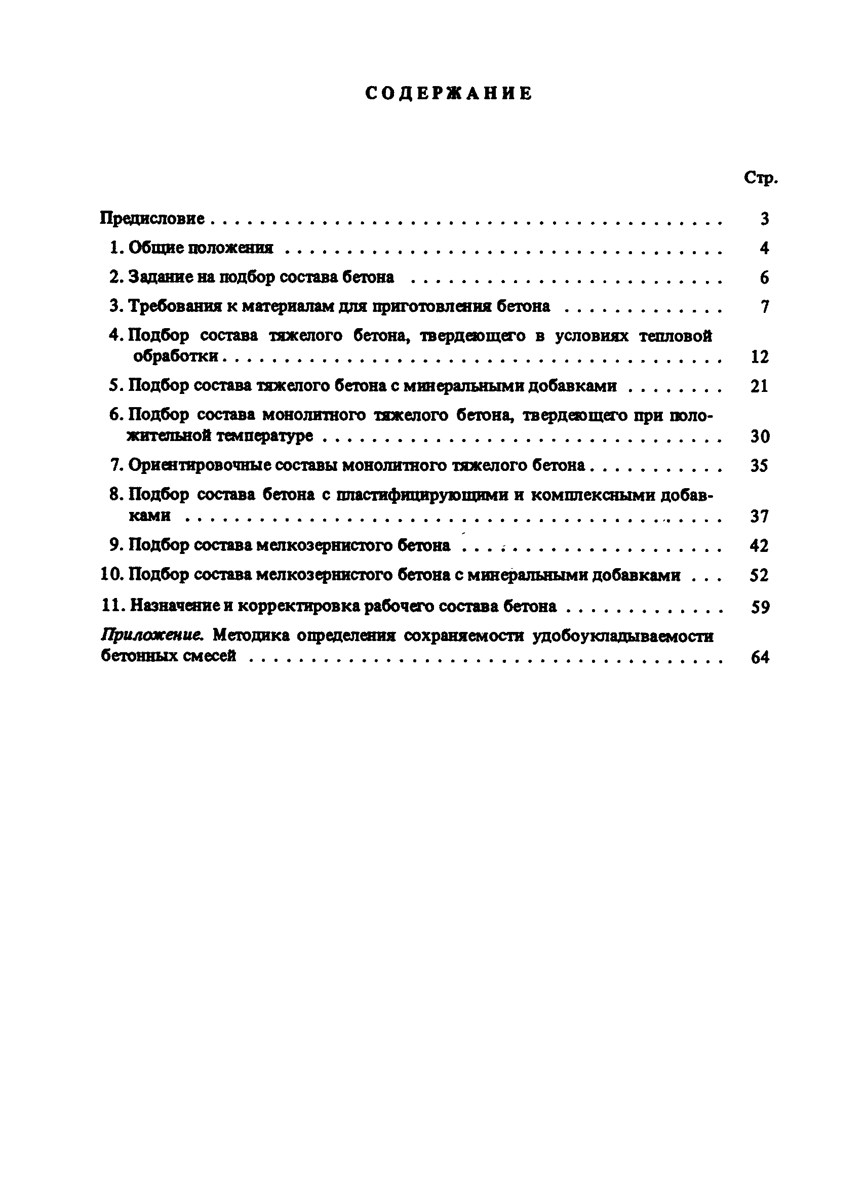 | Оглавление: | Предисловие 1 Общие положения 2 Задание на подбор состава бетона 3 Требования к материалам для приготовления бетона 4 Подбор состава тяжелого бетона, твердеющего в условиях тепловой обработки 5 Подбор состава тяжелого бетона с минеральными добавками 6 Подбор состава монолитного тяжелого бетона, твердеющего при положительной температуре 7 Ориентировочные составы монолитного тяжелого бетона 8 Подбор состава бетона с пластифицирующими и комплексными добавками 9 Подбор состава мелкозернистого бетона 10 Подбор состава мелкозернистого бетона с минеральными добавками 11 Назначение и корректировка рабочего состава бетона Приложение. Методика определения сохраняемости удобоукладываемости бетонных смесей |