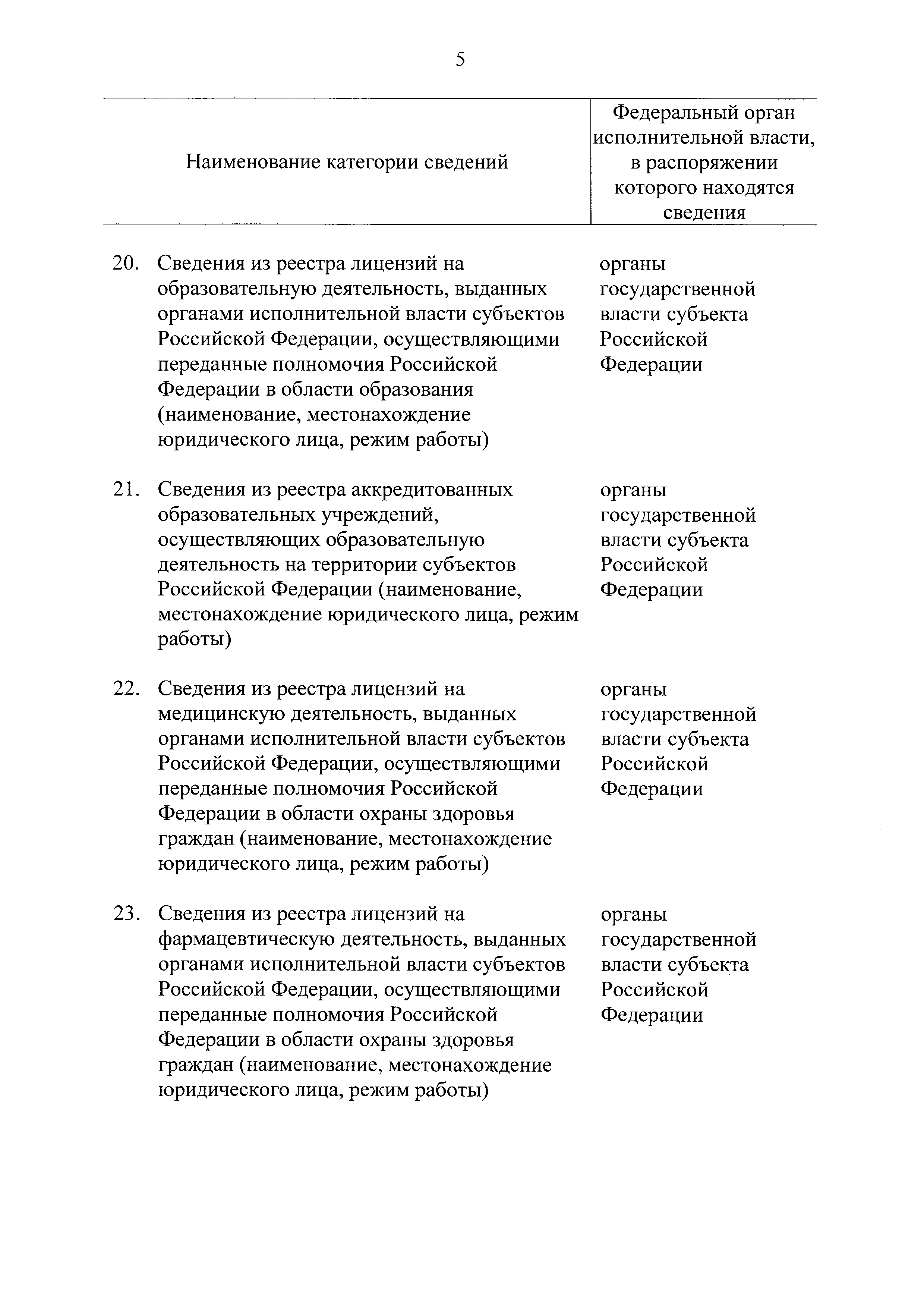 Перечень находящихся в распоряжении органов государственной власти и органов местного самоуправления сведений, подлежащих представлению с использованием координат| Статус: | действует | | Название рус.: | Перечень находящихся в распоряжении органов государственной власти и органов местного самоуправления сведений, подлежащих представлению с использованием координат | | Дата добавления в базу: | 05.05.2017 | | Дата актуализации: | 01.01.2021 | | Дата введения: | 09.02.2017 | | Оглавление: | Раздел I. Сведения, находящиеся в распоряжении федеральных органов исполнительной власти Раздел II. Сведения, находящиеся в распоряжении органов государственной власти субъектов Российской Федерации и органов местного самоуправления | | Утверждён: | 09.02.2017 Правительство Российской Федерации (232-р)