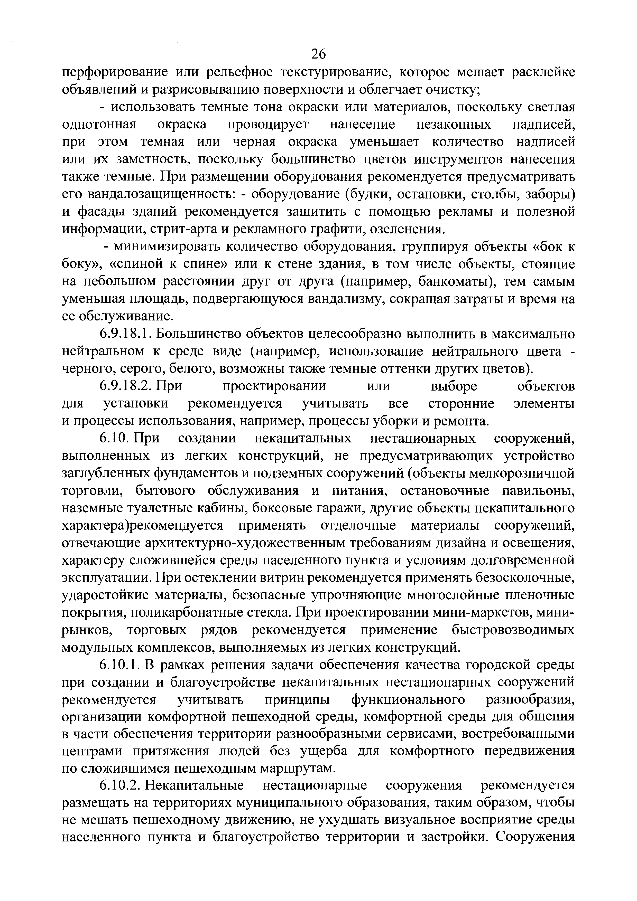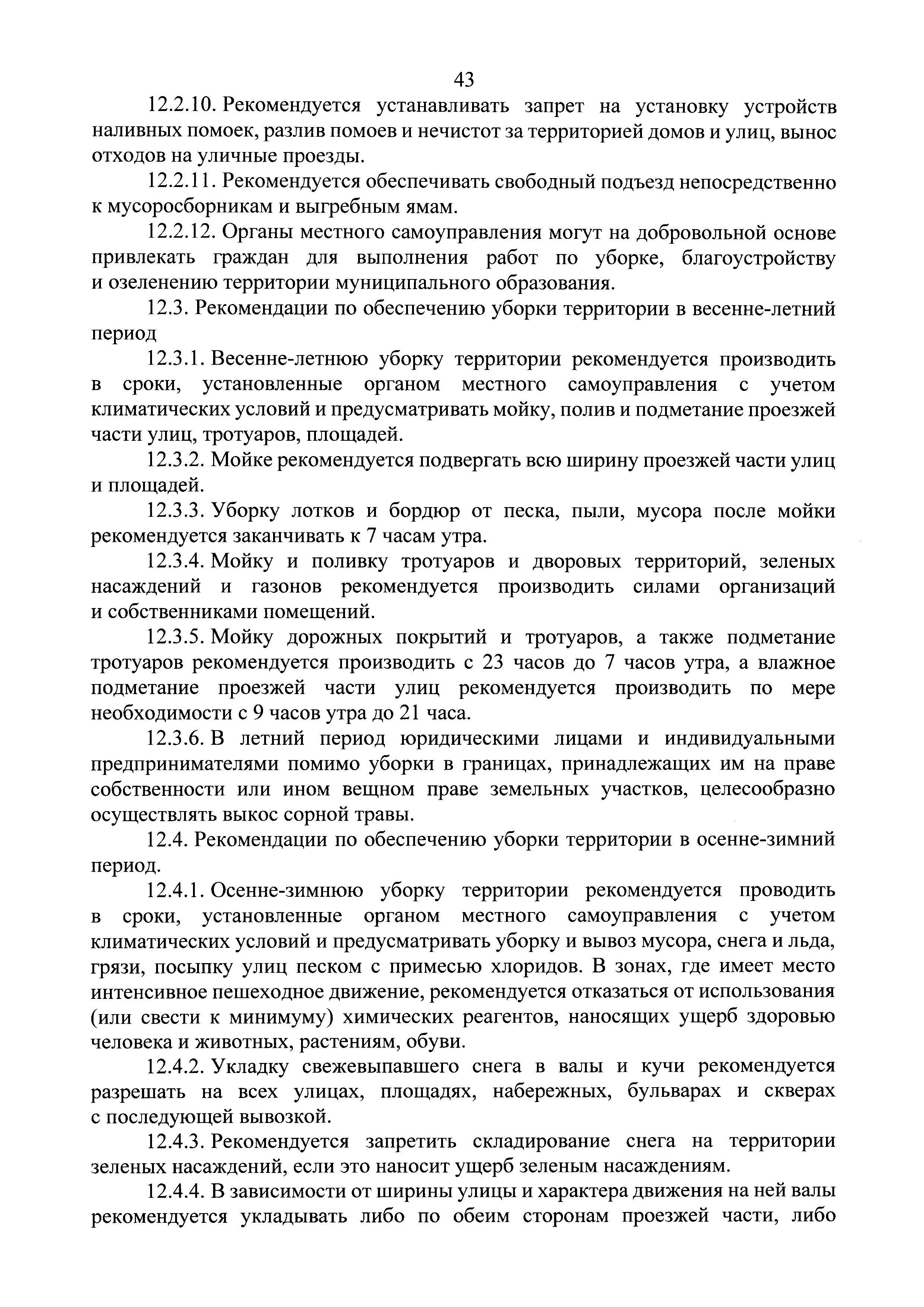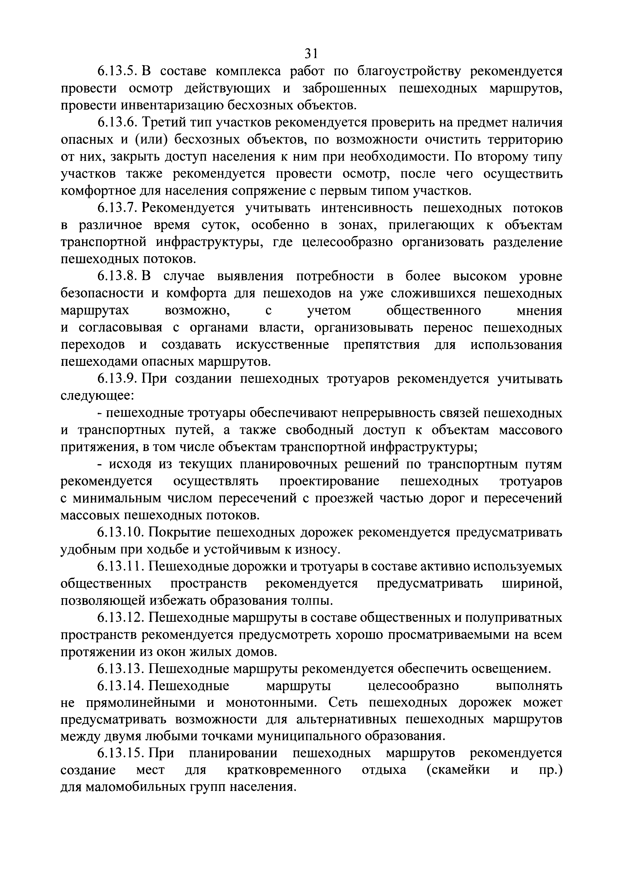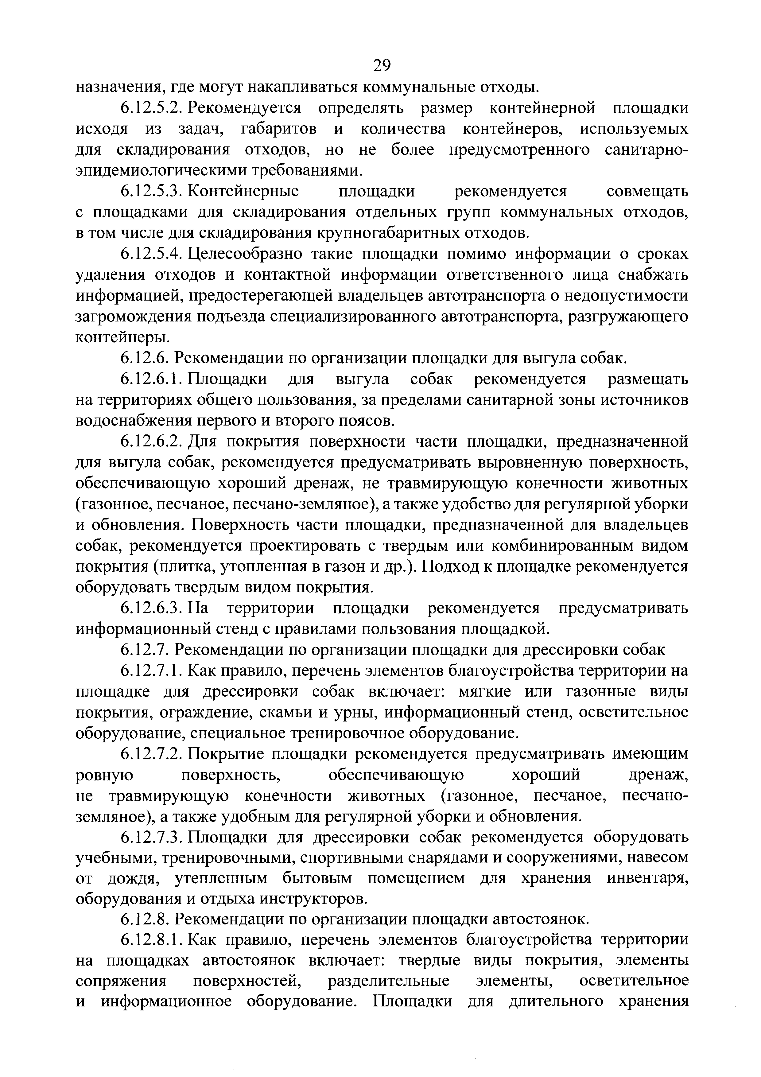 Методические рекомендации для подготовки правил благоустройства территорий поселений, городских округов, внутригородских районов| Статус: | действует | | Название рус.: | Методические рекомендации для подготовки правил благоустройства территорий поселений, городских округов, внутригородских районов | | Дата добавления в базу: | 05.05.2017 | | Дата актуализации: | 01.01.2021 | | Дата введения: | 13.04.2017 | | Оглавление: | 1. Общие положения 2. Общие принципы и подходы 3. Формы и механизмы общественного участия в принятии решений и реализации проектов комплексного благоустройства и развития городской среды 4. Перечень сводов правил и национальных стандартов, применяемых при осуществлении деятельности по благоустройству 5. Рекомендации для подготовки правил благоустройства 6. Рекомендации для подготовки проекта по благоустройству отдельных объектов и их элементов 7. Рекомендации для подготовки раздела правил благоустройства по благоустройству территорий общественного назначения 8. Рекомендации для подготовки раздела по благоустройству на территориях жилого назначения 9. Рекомендации для подготовки раздела по благоустройству территорий рекреационного назначения 10. Рекомендации для подготовки раздела по благоустройству на территориях транспортной и инженерной инфраструктуры 11. Рекомендации для подготовки раздела по оформлению муниципального образования и информации 12. Рекомендации для подготовки раздела по содержанию объектов благоустройства | | Утверждён: | 13.04.2017 Министерство строительства и жилищно-коммунального хозяйства Российской Федерации (711/пр)