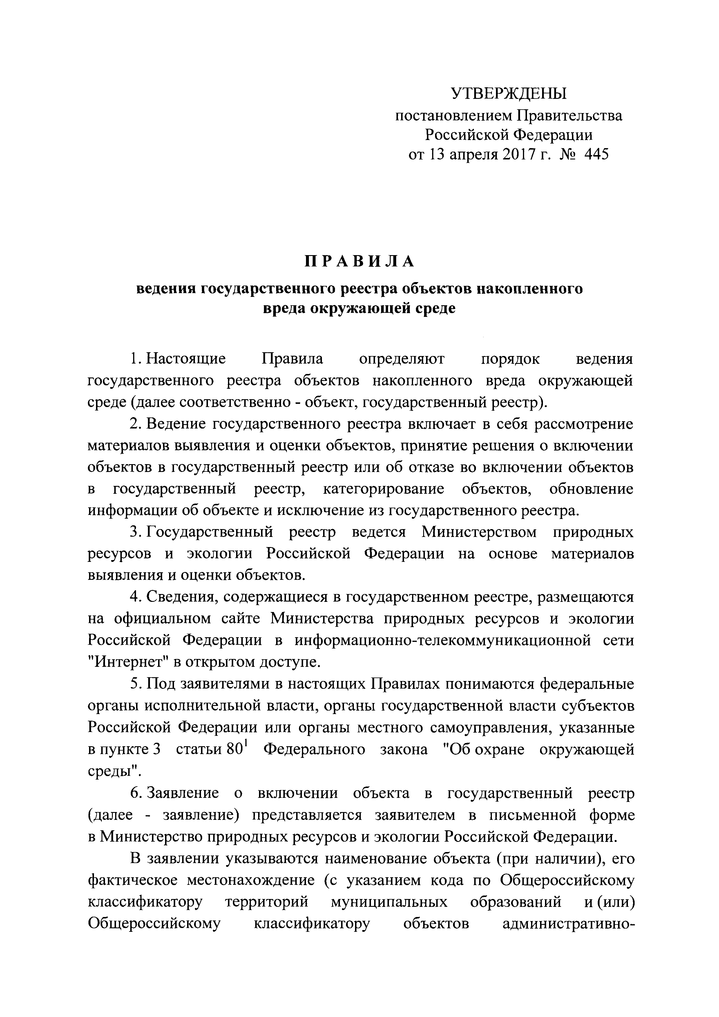 | Утверждён: | 13.04.2017 Правительство Российской Федерации (445)