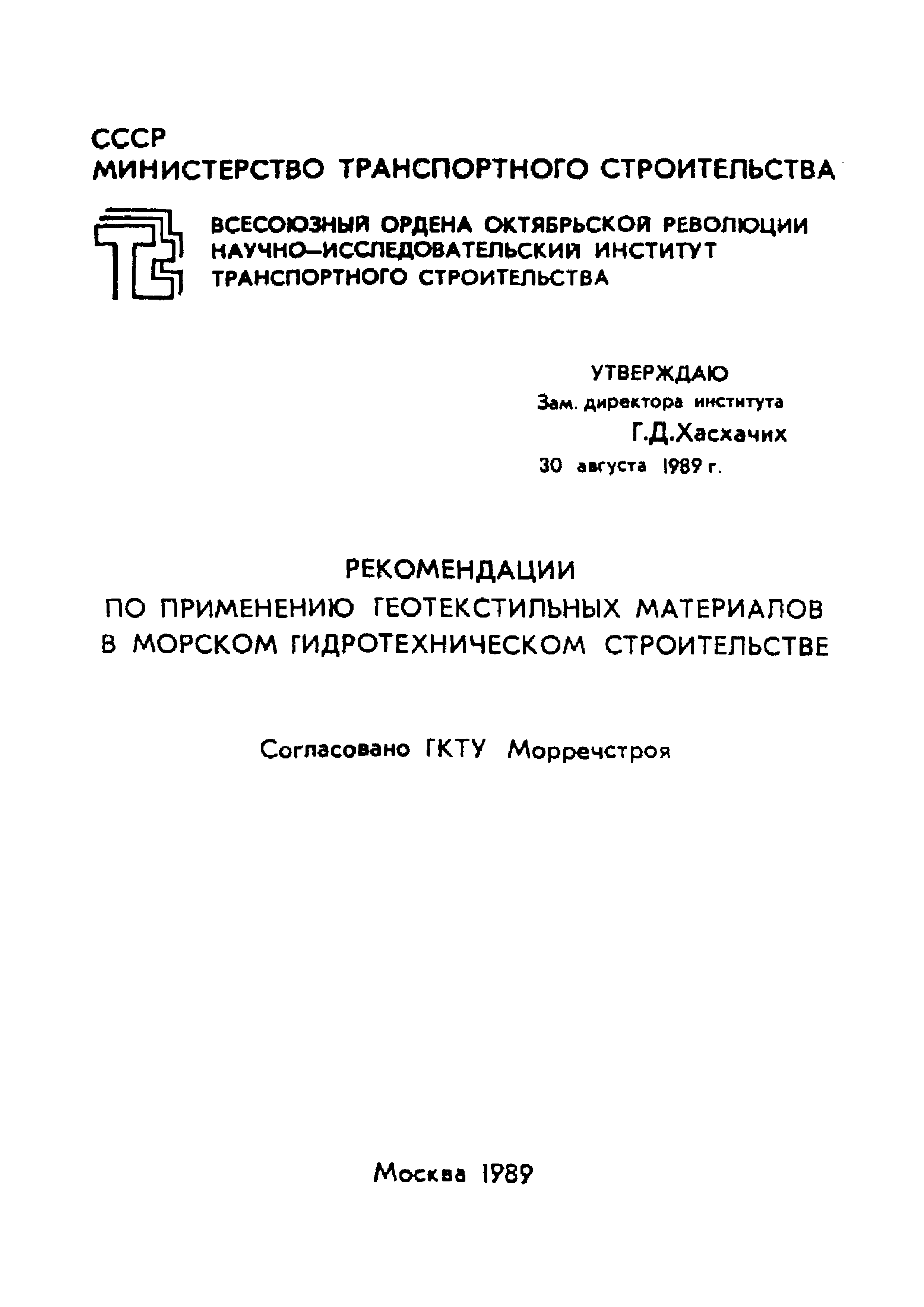 | Утверждён: | 30.08.1989 Всесоюзный ордена Октябрьской Революции научно-исследовательский институт транспортного строительства