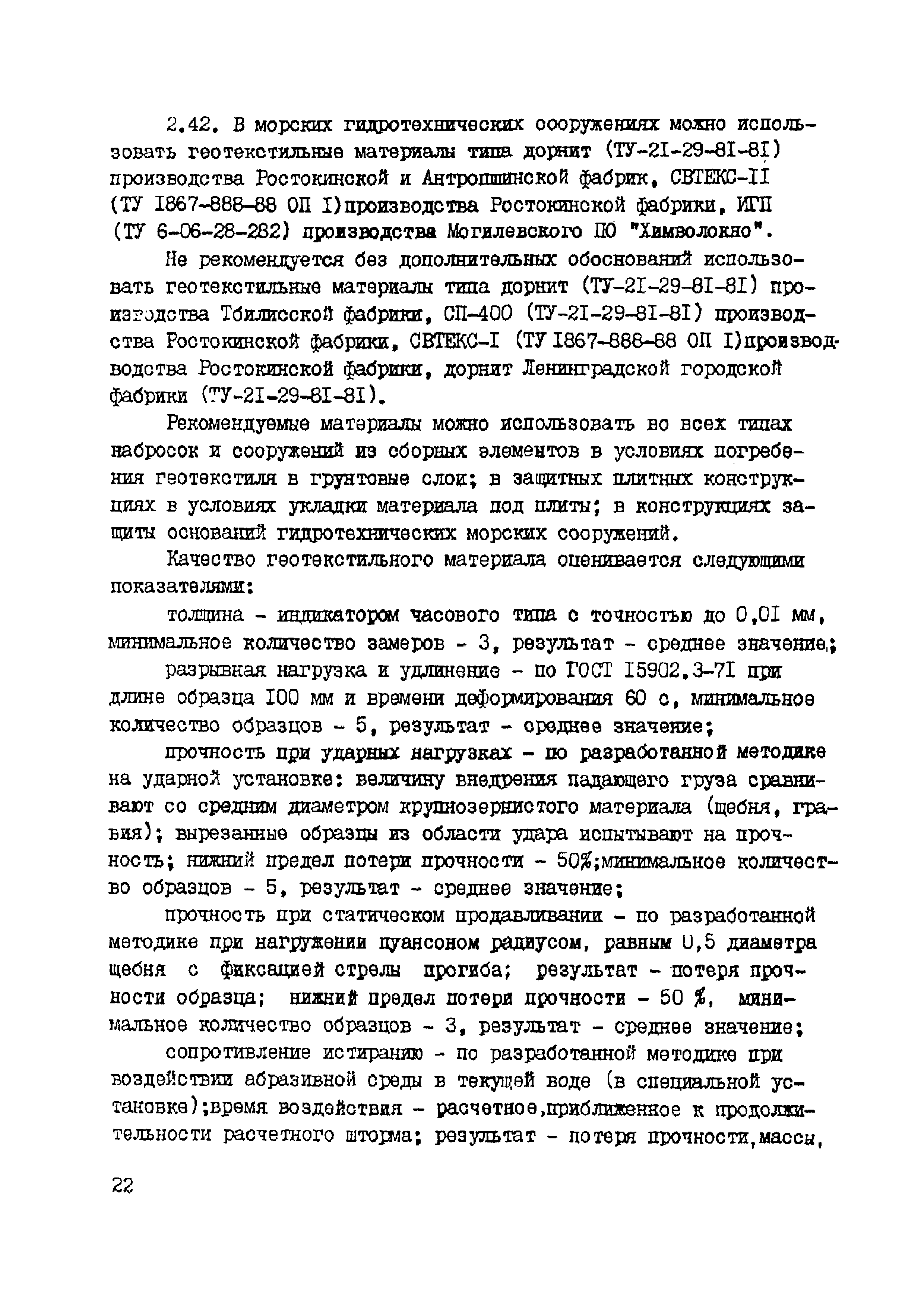 | Название рус.: | Рекомендации по применению геотекстильных материалов в морском гидротехническом строительстве |