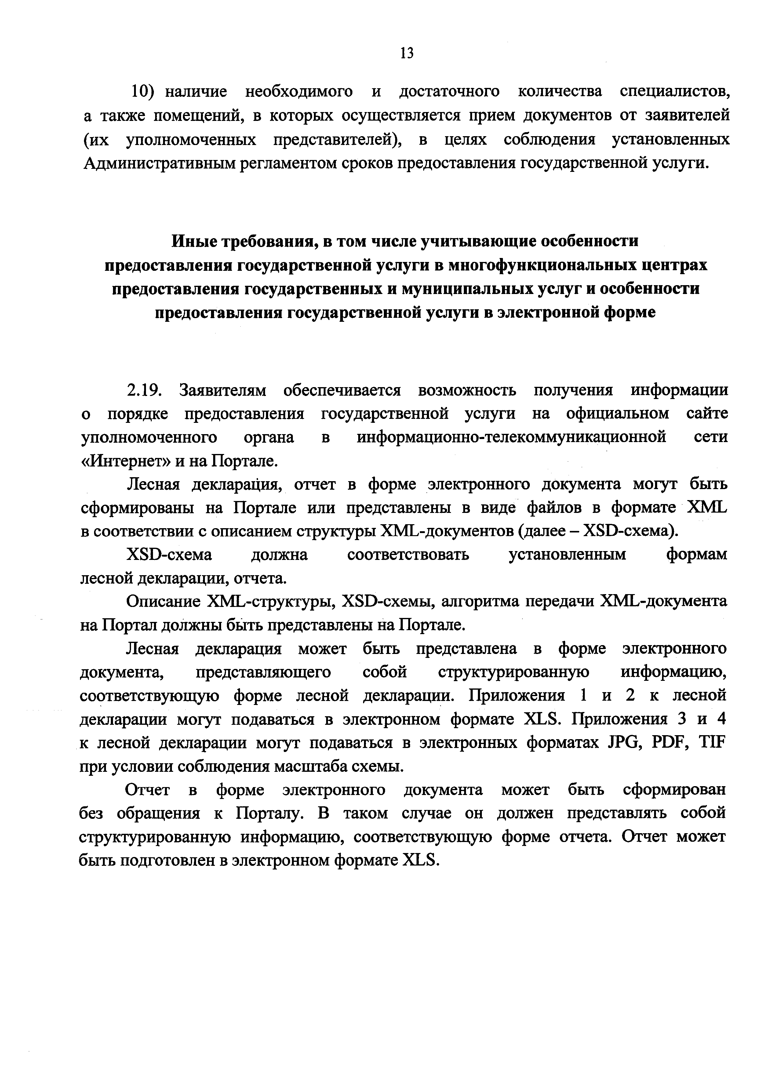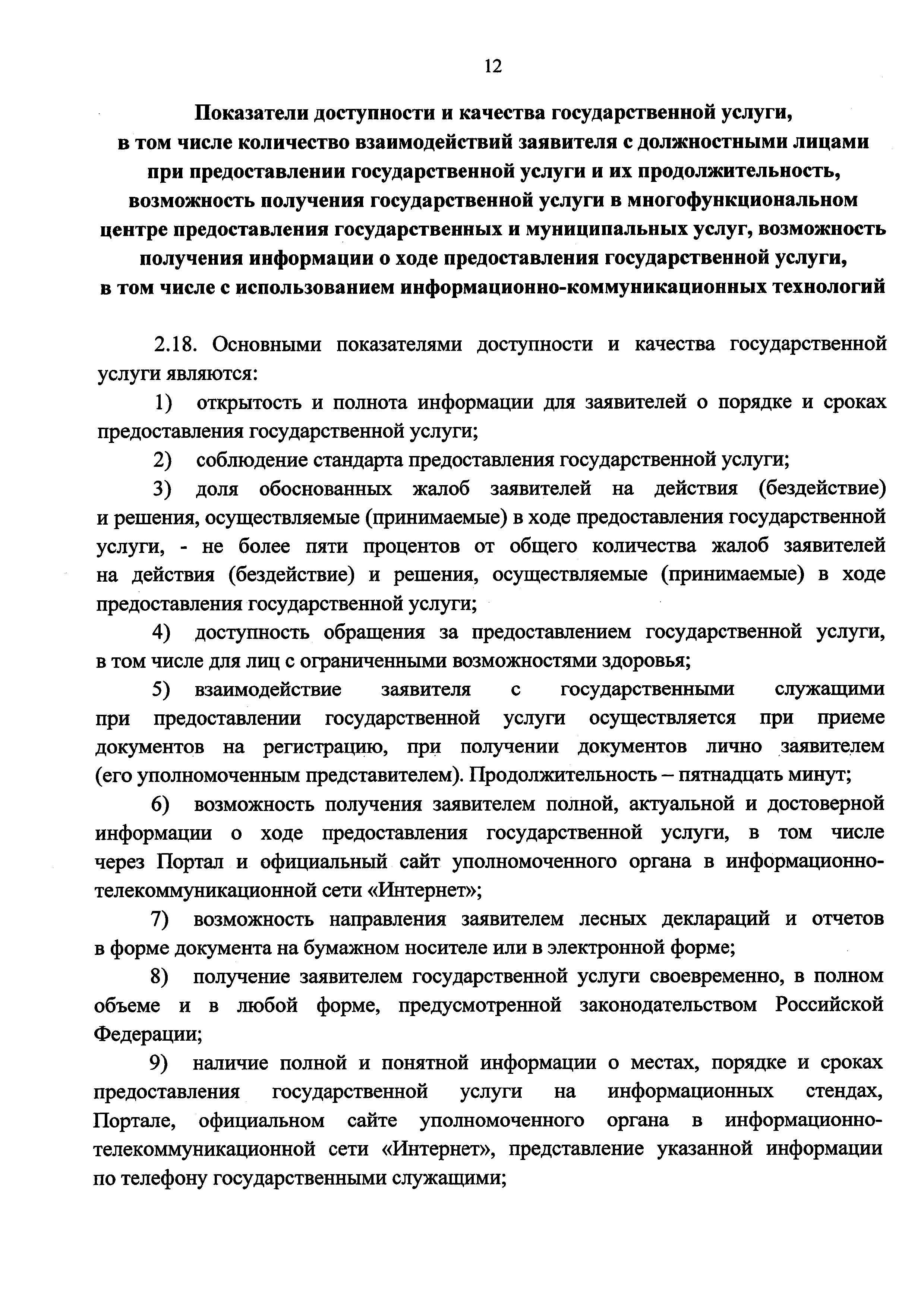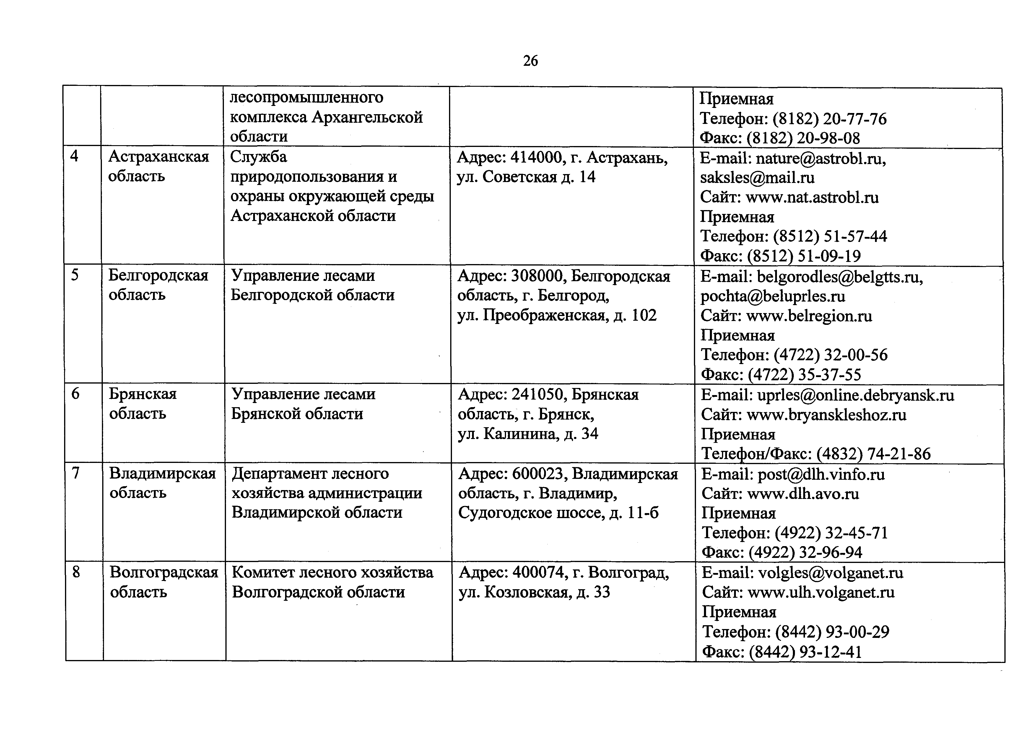 | Оглавление: | I. Общие положения II. Стандарт предоставления государственной услуги III. Состав, последовательность и сроки выполнения административных процедур (действий), требования к порядку их выполнения, в том числе особенности выполнения административных процедур (действий) в электронной форме IV. Формы контроля предоставления государственной услуги V. Досудебный (внесудебный) порядок обжалования решений и действий (бездействия) уполномоченного органа, а также его должностных лиц Приложение 1. Информация о местах нахождения, справочных телефонах, адресах официальных сайтов в информационно-телекоммуникационной сети "Интернет", электронной почты органов государственной власти субъектов Российской Федерации в области лесных отношений Приложение 2. Блок-схема последовательности административных процедур при предоставлении органом государственной власти субъекта Российской Федерации в области лесных отношений государственной услуги по приему лесных деклараций и отчетов об использовании лесов от граждан, юридических лиц, осуществляющих использование лесов |