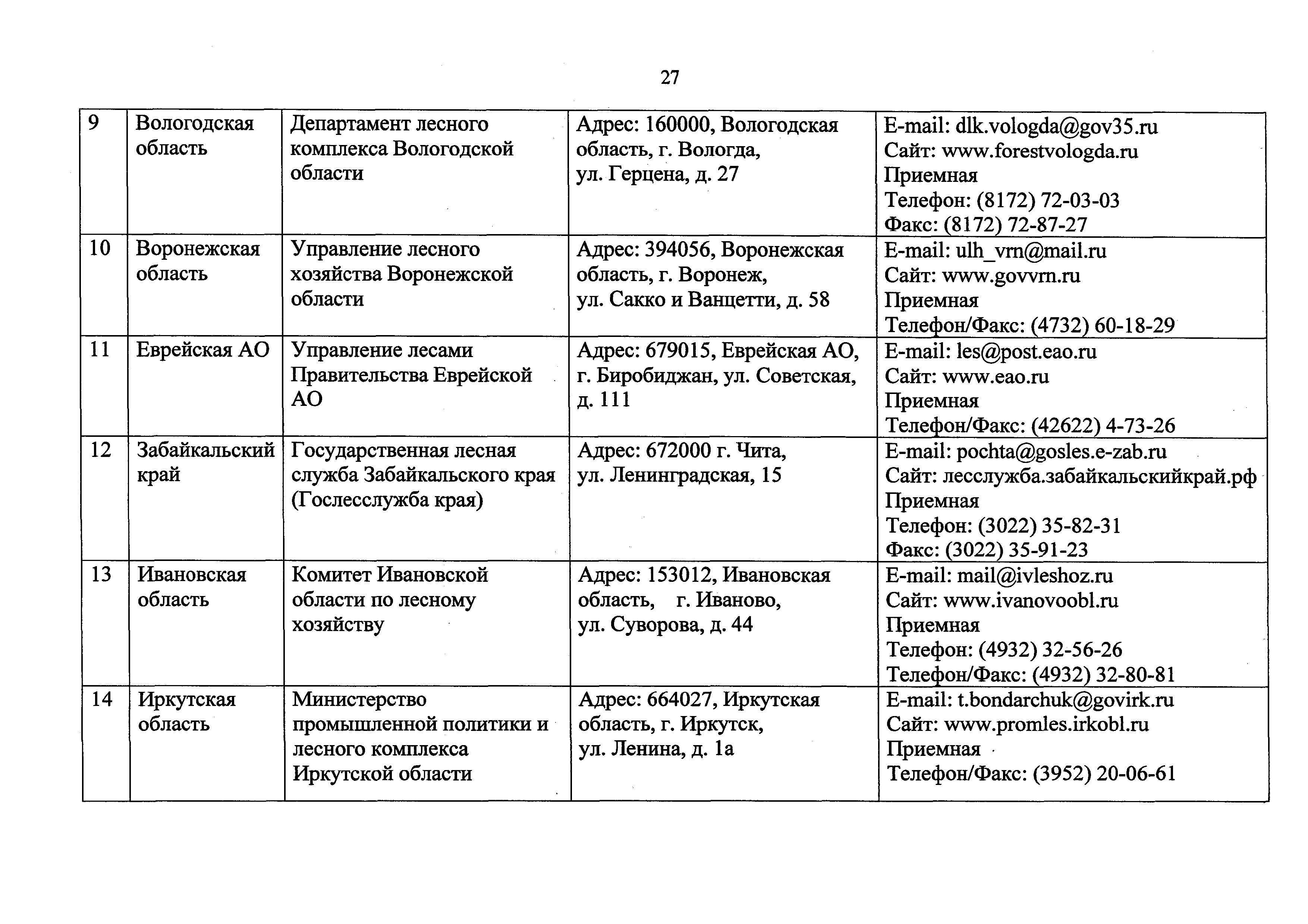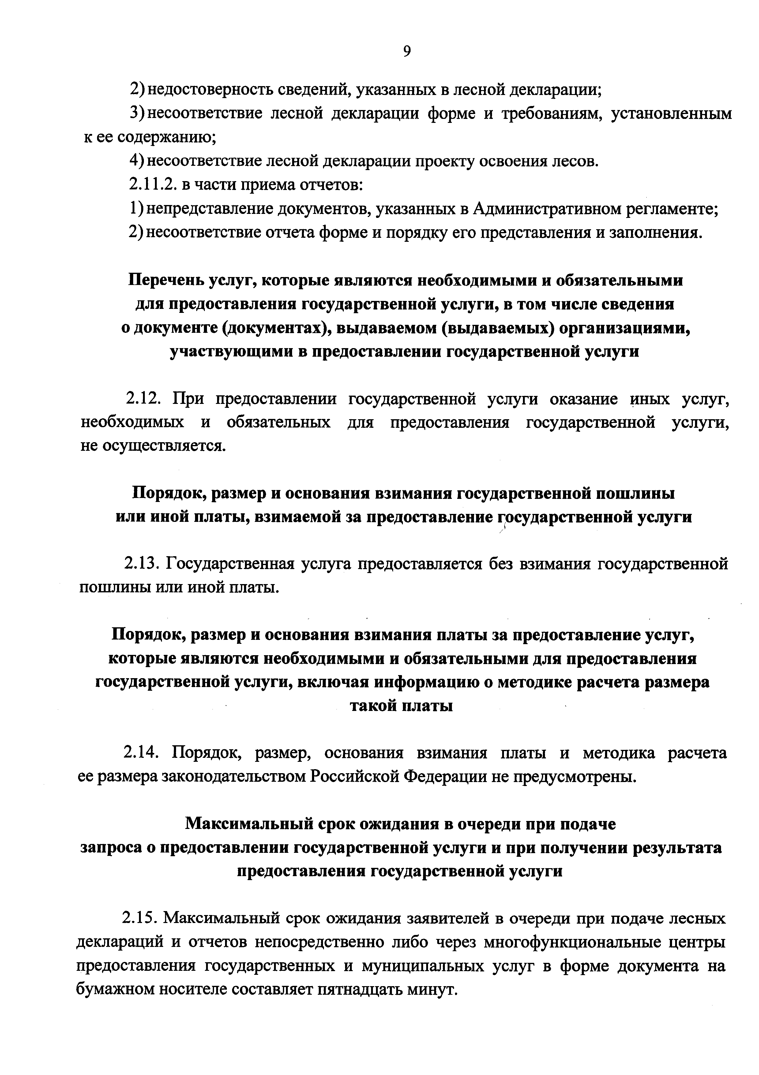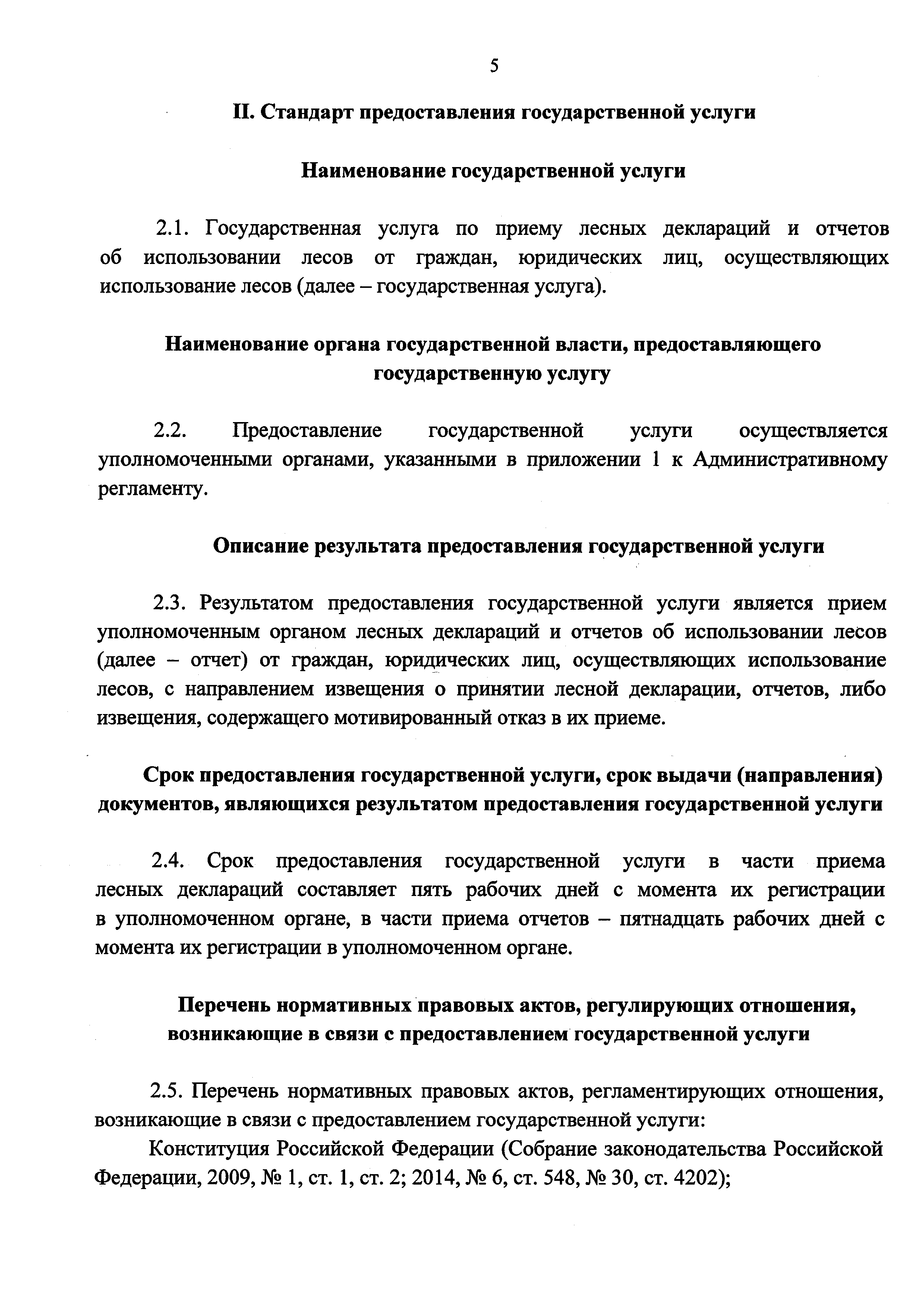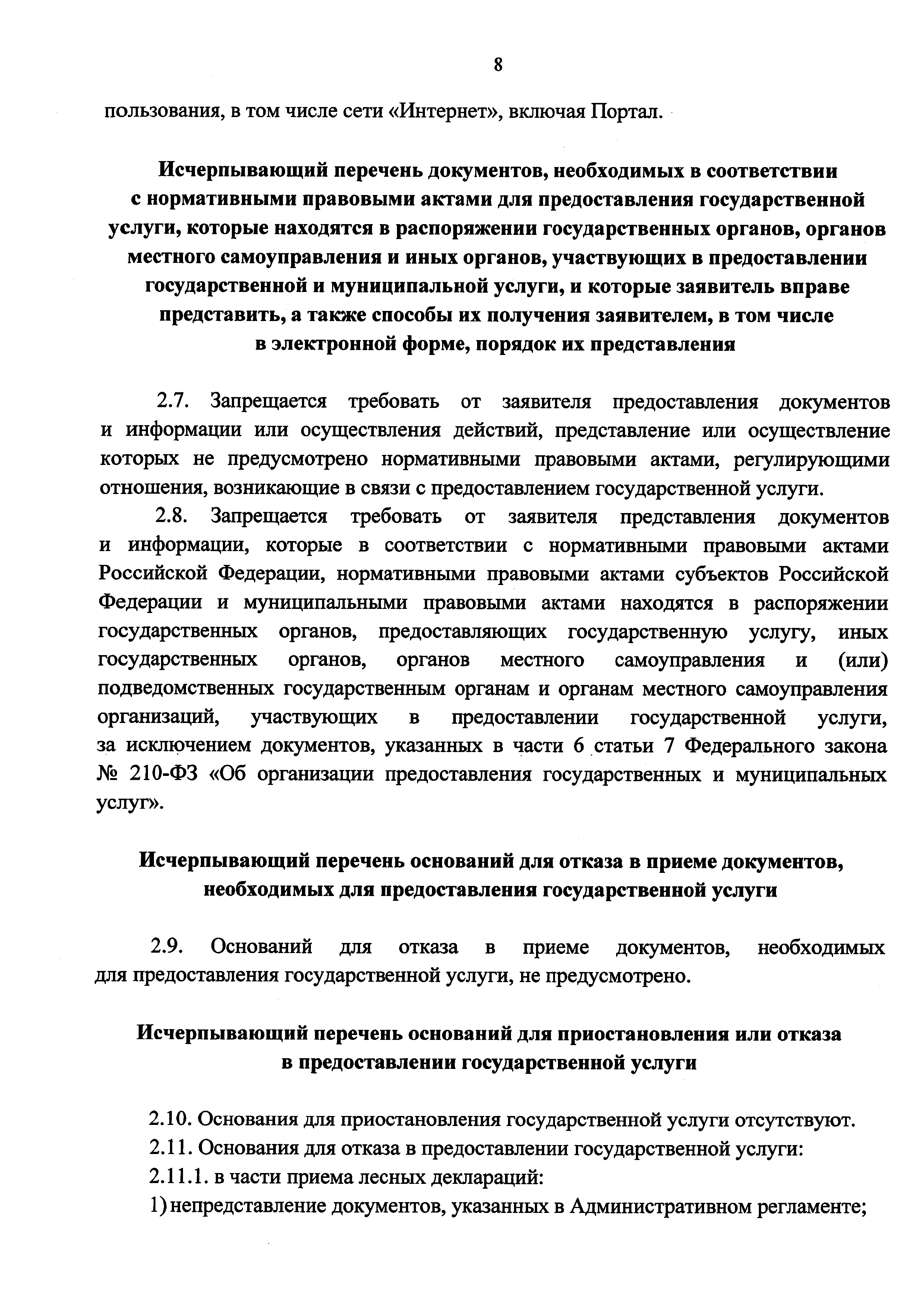 | Оглавление: | I. Общие положения II. Стандарт предоставления государственной услуги III. Состав, последовательность и сроки выполнения административных процедур (действий), требования к порядку их выполнения, в том числе особенности выполнения административных процедур (действий) в электронной форме IV. Формы контроля предоставления государственной услуги V. Досудебный (внесудебный) порядок обжалования решений и действий (бездействия) уполномоченного органа, а также его должностных лиц Приложение 1. Информация о местах нахождения, справочных телефонах, адресах официальных сайтов в информационно-телекоммуникационной сети "Интернет", электронной почты органов государственной власти субъектов Российской Федерации в области лесных отношений Приложение 2. Блок-схема последовательности административных процедур при предоставлении органом государственной власти субъекта Российской Федерации в области лесных отношений государственной услуги по приему лесных деклараций и отчетов об использовании лесов от граждан, юридических лиц, осуществляющих использование лесов |