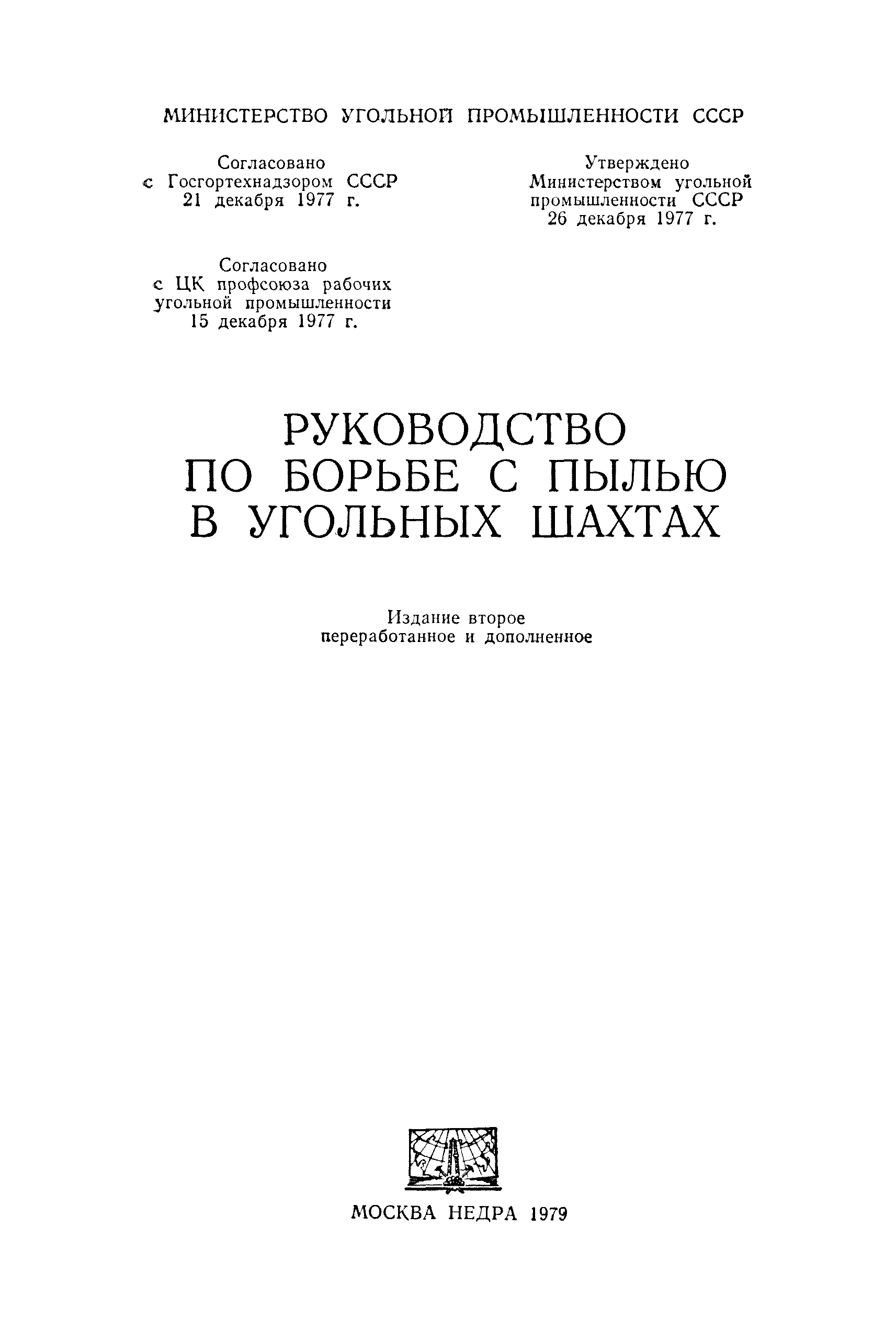 | Принят: | 21.12.1977 Госгортехнадзор СССР (USSR Gosgortekhnadzor ) 15.12.1977 ЦК профсоюза рабочих угольной промышленности |