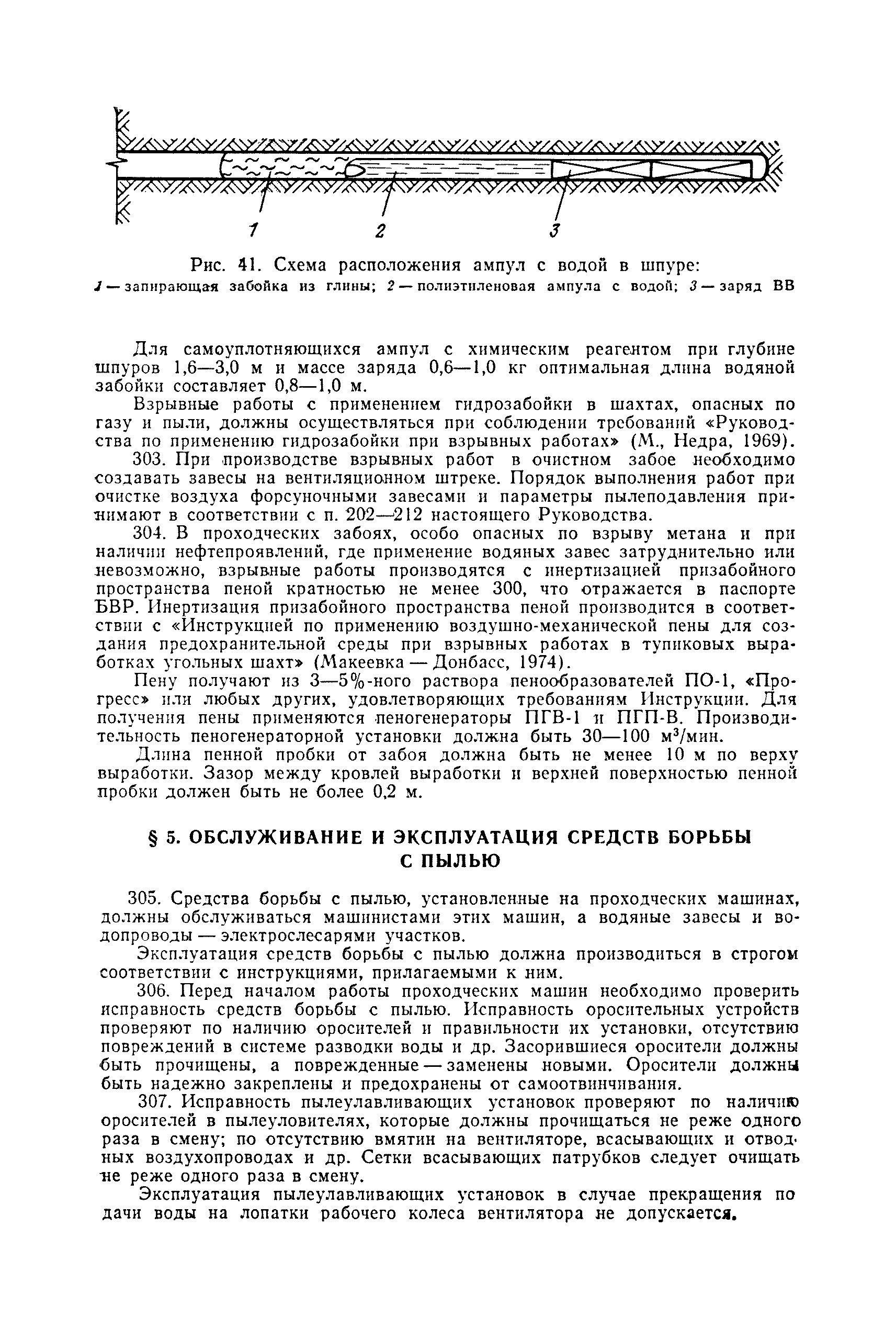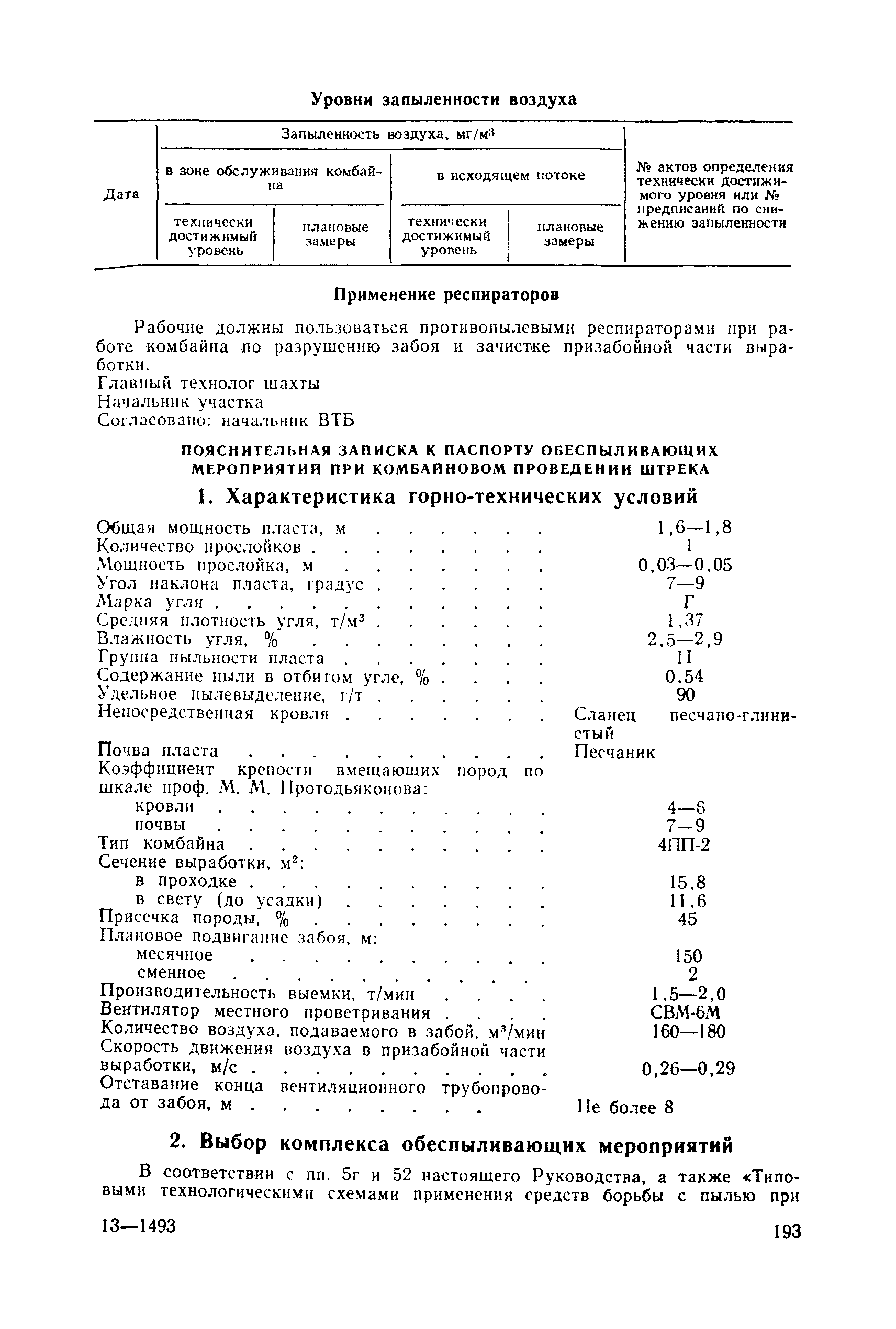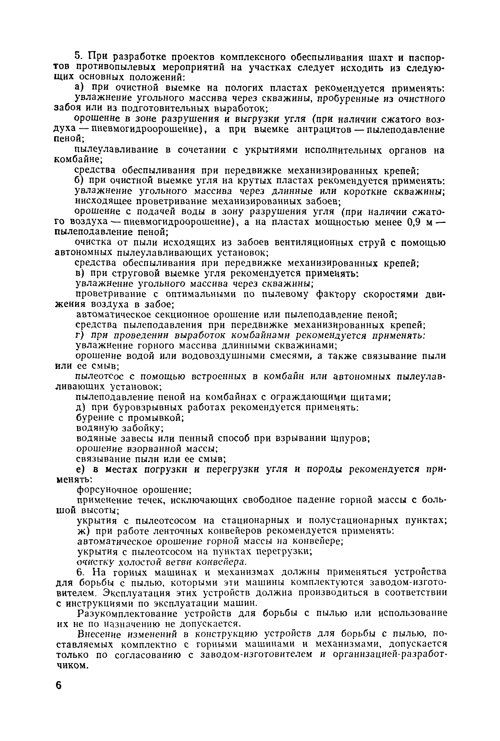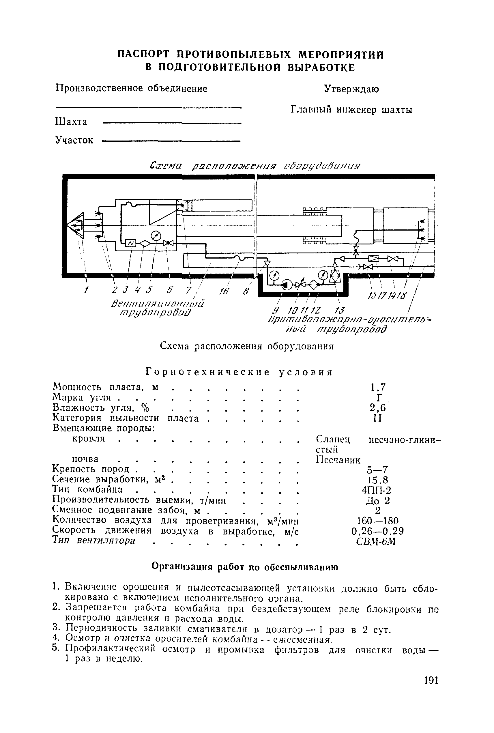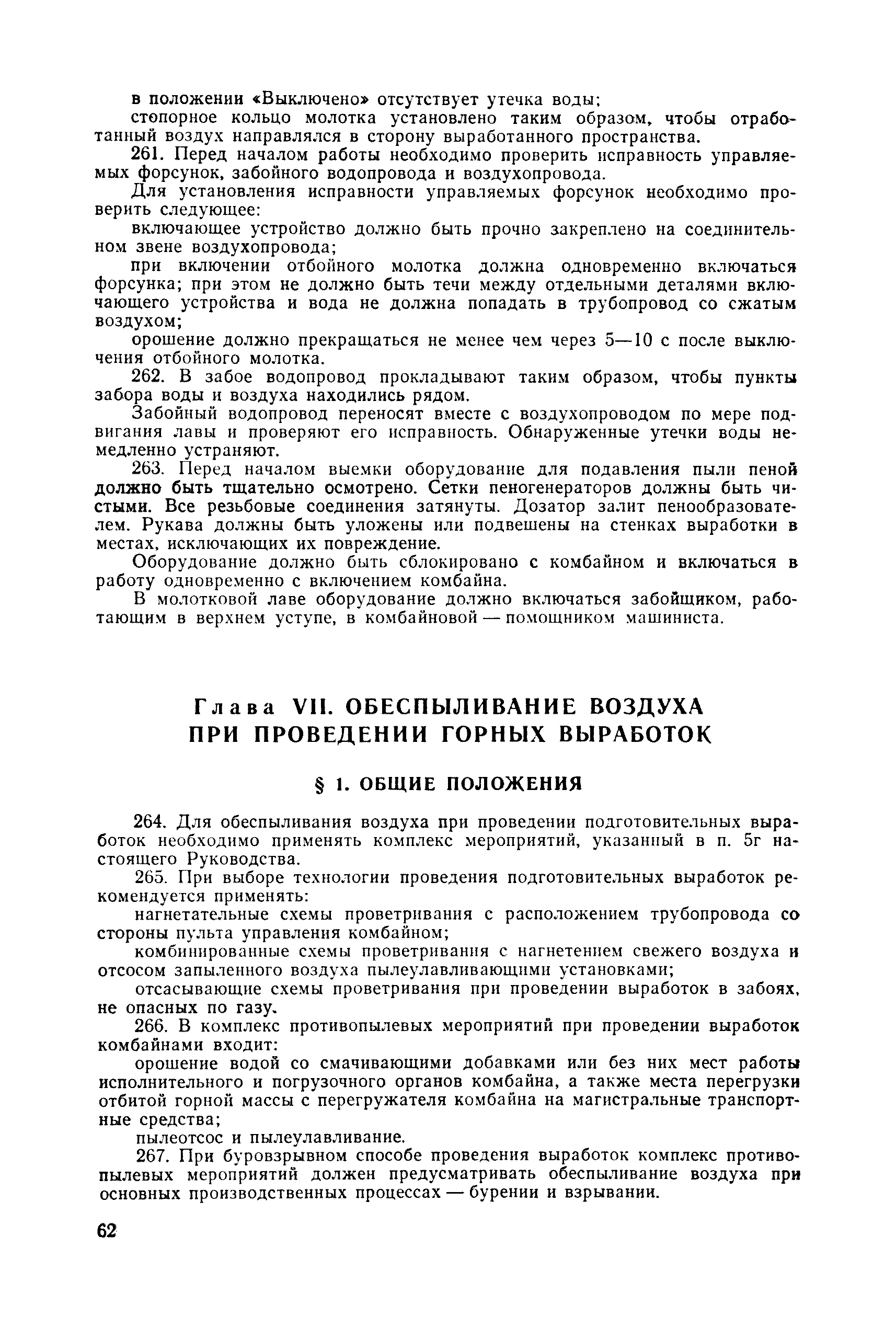 | Оглавление: | Введение Глава I. Общие положения по комплексному обеспыливанию угольных шахт Глава II. Пылеобразующая способность угольных пластов. Оценка горных машин и условий труда рабочих по пылевому фактору § 1. Общие положения § 2. Определение пылеобразующей способности шахтопластов § 3. Оценка выемочных комбайнов по пылевому фактору § 4. Оценка проходческих комбайнов по пылевому фактору § 5. Гигиеническая оценка условий труда рабочих по пылевому фактору Глава III. Предварительное увлажнение угольных пластов § 1. Общие положения § 2. Способы и схемы нагнетания жидкости в угольные пласты § 3. Параметры нагнетания жидкости в угольные пласты при очистных работах § 4. Параметры нагнетания жидкости в подготовительных выработках § 5. Оборудование для бурения скважин и нагнетания жидкости в пласт § 6. Организация работ и техника безопасности при нагнетании жидкости Глава IV. Способы и средства борьбы с пылью в шахтах § 1. Общие положения § 2. Орошение § 3. Высоконапорное орошение § 4. Пылеподавление водовоздушными смесями § 5. Подавление пыли пеной § 6. Пылеулавливание § 7. Обеспыливающее проветривание § 8. Способы и средства обеспыливания вентиляционной струи Глава V. Обеспыливание воздуха при выемке пологих пластов угля § 1. Борьба с пылью при выемке угля § 2. Подавление пыли при выемке угля в нишах § 3. Борьба с пылью при закладочных работах § 4. Борьба с пылью при передвижке крепи § 5. Обслуживание и эксплуатация средств борьбы с пылью Глава VI. Обеспыливание воздуха при выемке крутых пластов угля § 1. Борьба с пылью при выемке угля § 2. Очистка исходящих вентиляционных струй § 3. Обслуживание и эксплуатация средств борьбы с пылью Глава VII. Обеспыливание воздуха при проведении горных выработок § 1. Общие положения § 2. Обеспыливание воздуха при проведении горных выработок проходческими комбайнами избирательного действия § 3. Обеспыливание воздуха при проведении горных выработок проходческими комбайнами с ограждающими щитами § 4. Обеспыливание воздуха при ведении буровзрывных работ § 5. Обслуживание и эксплуатация средств борьбы с пылью Глава VIII. Борьба с пылью при проходке стволов шахт Глава IX. Обеспыливание воздуха при погрузочно-транспортных работах § 1. Общие положения § 2. Орошение при работе погрузочных машин § 3. Обеспыливание воздуха при погрузке угля из лав § 4. Обеспыливание воздуха при транспортировании угля § 5. Обеспыливание воздуха при работе опрокидывателей Глава Х. Обеспыливание воздуха в угольных шахтах Крайнего Севера § 1. Общие положения § 2. Обеспыливание воздуха при бурении шпуров и скважин § 3. Обеспыливание воздуха при взрывных работах § 4. Обеспыливание воздуха при погрузочно-разгрузочных операциях § 5. Обеспыливание воздуха при доставке и транспортировании угля § 6. Обеспыливание воздуха при работе комбайнов Глава XI. Обеспыливание воздуха, поступающего в шахты с поверхности Глава XII. Водоснабжение горных выработок, очистка шахтных вод Глава XIII. Контроль качества применяемых мероприятий по борьбе с пылью § 1. Организация шахтной противопылевой службы § 2. Контроль качества применяемых мероприятий § 3. Пылевой контроль Глава XIV. Индивидуальные средства защиты от пыли Приложение 1. Типовые технологические схемы применения средств борьбы с пылью при работе выемочных и проходческих комбайнов Приложение 2. Образцы паспортов 