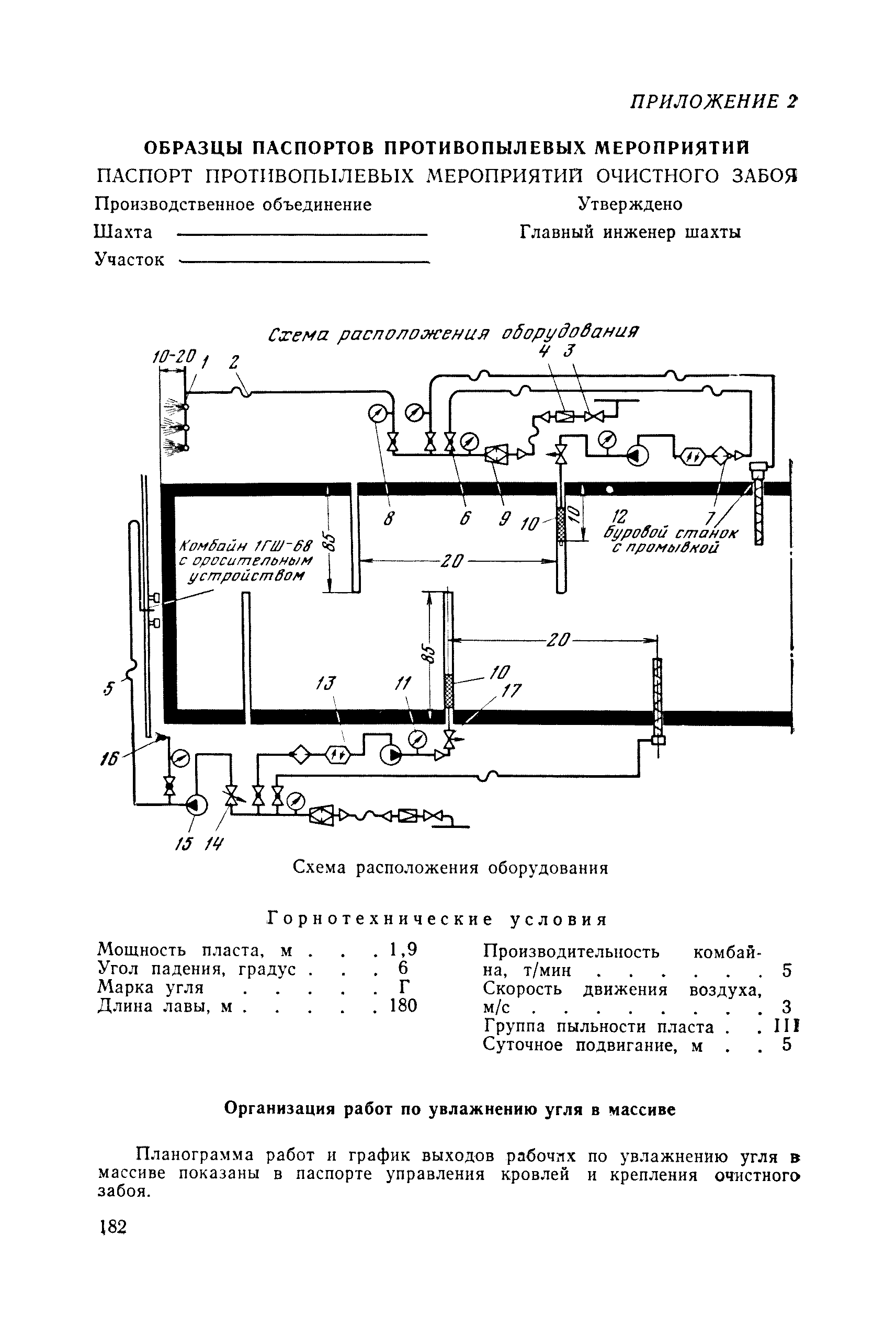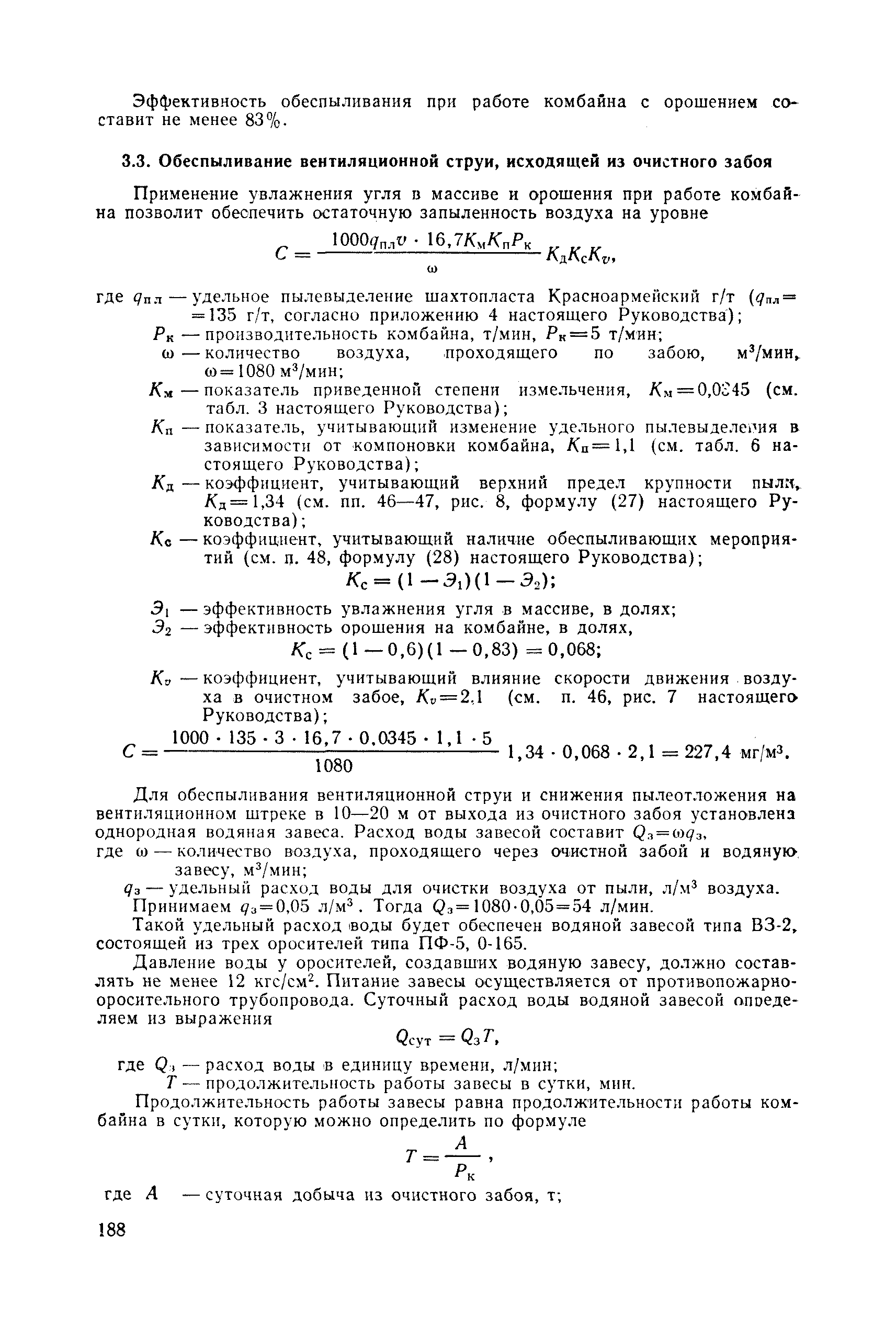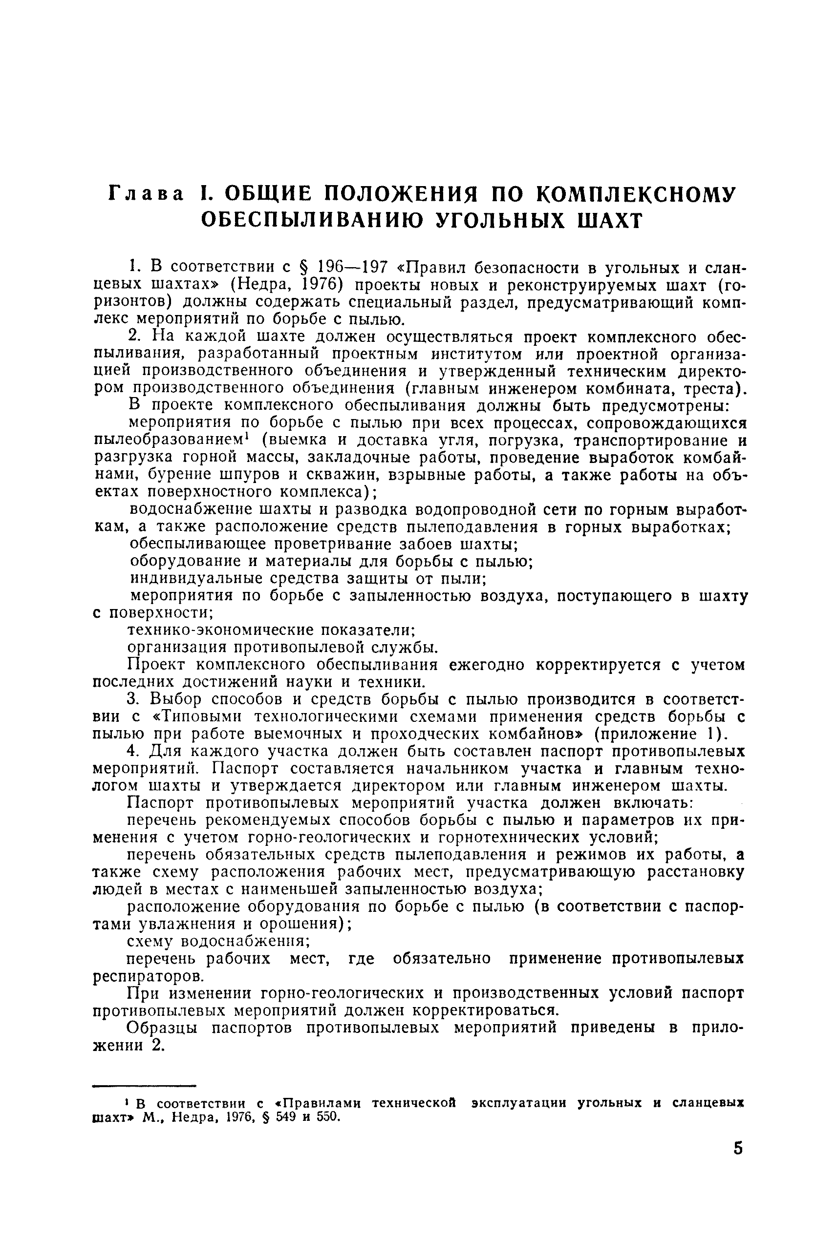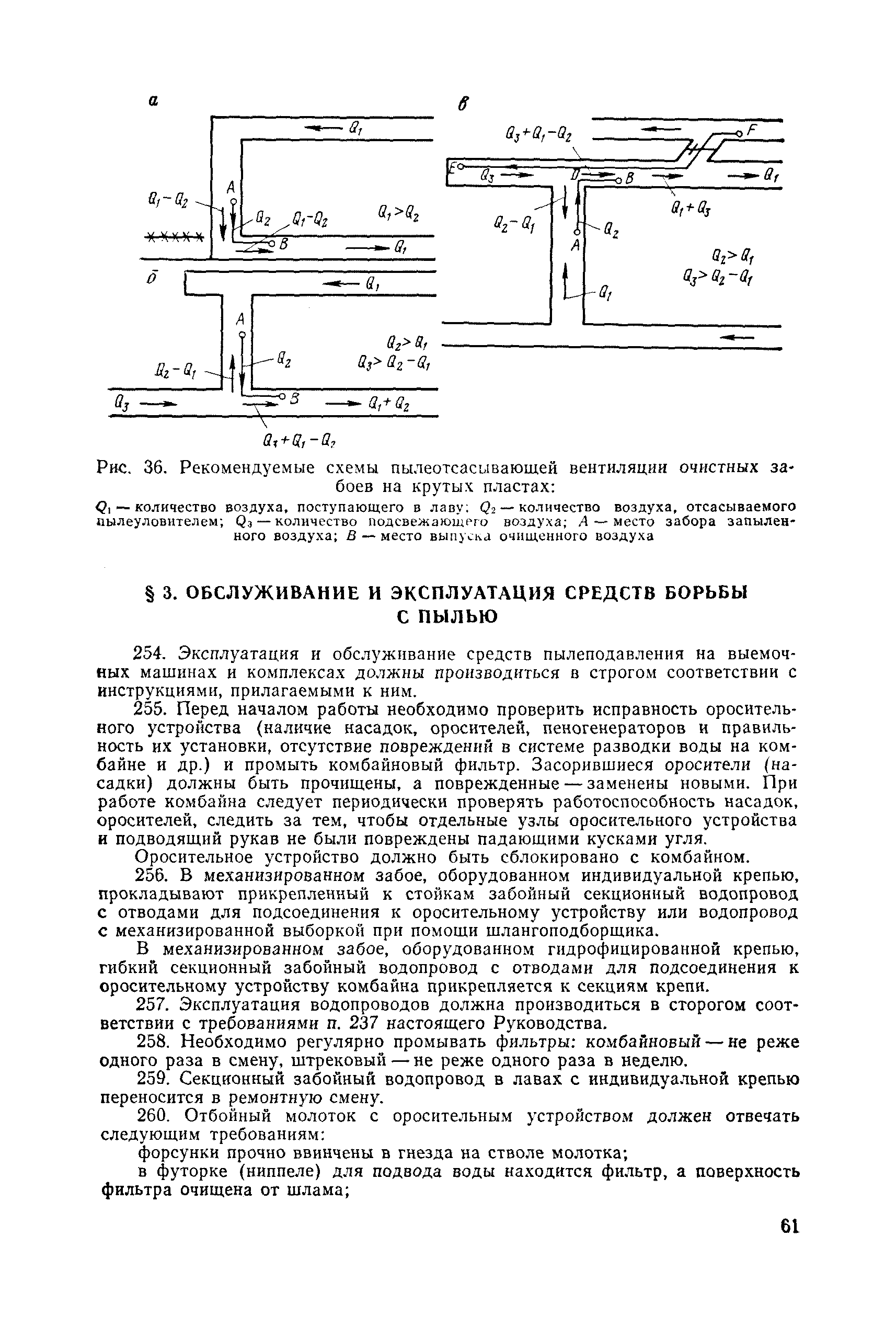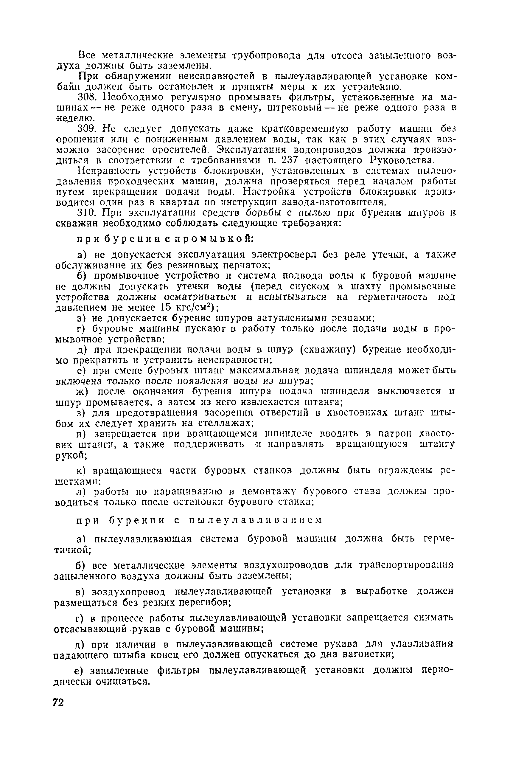 | Оглавление: | Введение Глава I. Общие положения по комплексному обеспыливанию угольных шахт Глава II. Пылеобразующая способность угольных пластов. Оценка горных машин и условий труда рабочих по пылевому фактору § 1. Общие положения § 2. Определение пылеобразующей способности шахтопластов § 3. Оценка выемочных комбайнов по пылевому фактору § 4. Оценка проходческих комбайнов по пылевому фактору § 5. Гигиеническая оценка условий труда рабочих по пылевому фактору Глава III. Предварительное увлажнение угольных пластов § 1. Общие положения § 2. Способы и схемы нагнетания жидкости в угольные пласты § 3. Параметры нагнетания жидкости в угольные пласты при очистных работах § 4. Параметры нагнетания жидкости в подготовительных выработках § 5. Оборудование для бурения скважин и нагнетания жидкости в пласт § 6. Организация работ и техника безопасности при нагнетании жидкости Глава IV. Способы и средства борьбы с пылью в шахтах § 1. Общие положения § 2. Орошение § 3. Высоконапорное орошение § 4. Пылеподавление водовоздушными смесями § 5. Подавление пыли пеной § 6. Пылеулавливание § 7. Обеспыливающее проветривание § 8. Способы и средства обеспыливания вентиляционной струи Глава V. Обеспыливание воздуха при выемке пологих пластов угля § 1. Борьба с пылью при выемке угля § 2. Подавление пыли при выемке угля в нишах § 3. Борьба с пылью при закладочных работах § 4. Борьба с пылью при передвижке крепи § 5. Обслуживание и эксплуатация средств борьбы с пылью Глава VI. Обеспыливание воздуха при выемке крутых пластов угля § 1. Борьба с пылью при выемке угля § 2. Очистка исходящих вентиляционных струй § 3. Обслуживание и эксплуатация средств борьбы с пылью Глава VII. Обеспыливание воздуха при проведении горных выработок § 1. Общие положения § 2. Обеспыливание воздуха при проведении горных выработок проходческими комбайнами избирательного действия § 3. Обеспыливание воздуха при проведении горных выработок проходческими комбайнами с ограждающими щитами § 4. Обеспыливание воздуха при ведении буровзрывных работ § 5. Обслуживание и эксплуатация средств борьбы с пылью Глава VIII. Борьба с пылью при проходке стволов шахт Глава IX. Обеспыливание воздуха при погрузочно-транспортных работах § 1. Общие положения § 2. Орошение при работе погрузочных машин § 3. Обеспыливание воздуха при погрузке угля из лав § 4. Обеспыливание воздуха при транспортировании угля § 5. Обеспыливание воздуха при работе опрокидывателей Глава Х. Обеспыливание воздуха в угольных шахтах Крайнего Севера § 1. Общие положения § 2. Обеспыливание воздуха при бурении шпуров и скважин § 3. Обеспыливание воздуха при взрывных работах § 4. Обеспыливание воздуха при погрузочно-разгрузочных операциях § 5. Обеспыливание воздуха при доставке и транспортировании угля § 6. Обеспыливание воздуха при работе комбайнов Глава XI. Обеспыливание воздуха, поступающего в шахты с поверхности Глава XII. Водоснабжение горных выработок, очистка шахтных вод Глава XIII. Контроль качества применяемых мероприятий по борьбе с пылью § 1. Организация шахтной противопылевой службы § 2. Контроль качества применяемых мероприятий § 3. Пылевой контроль Глава XIV. Индивидуальные средства защиты от пыли Приложение 1. Типовые технологические схемы применения средств борьбы с пылью при работе выемочных и проходческих комбайнов Приложение 2. Образцы паспортов 