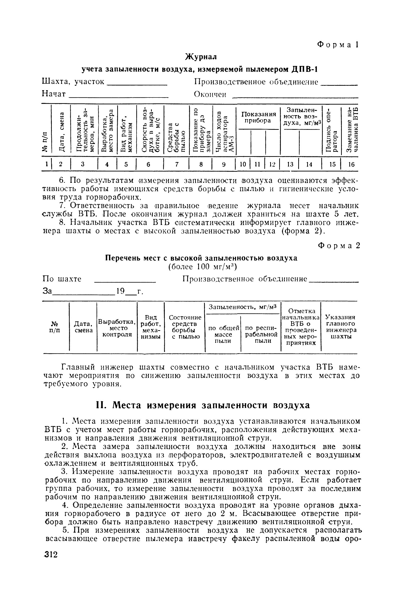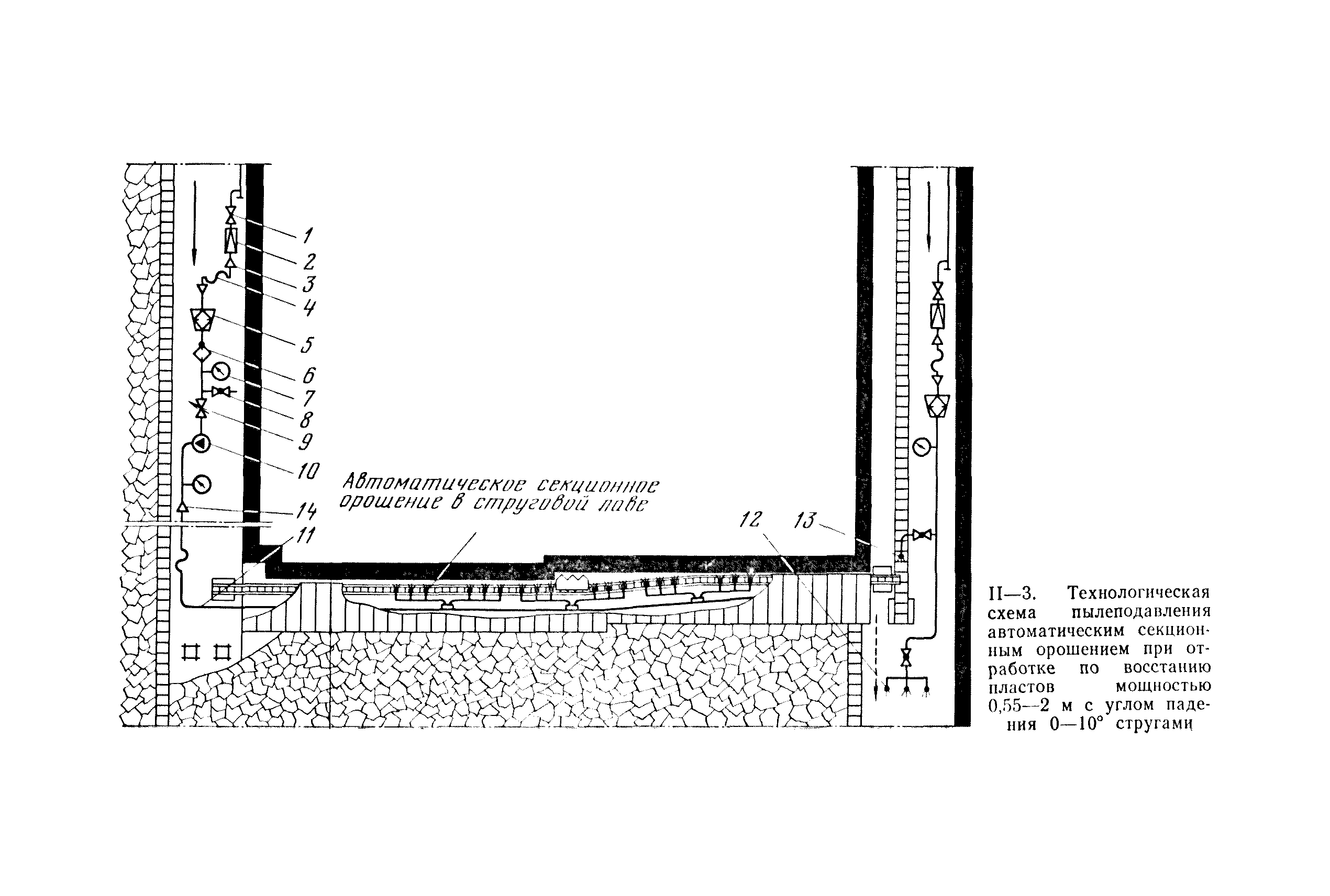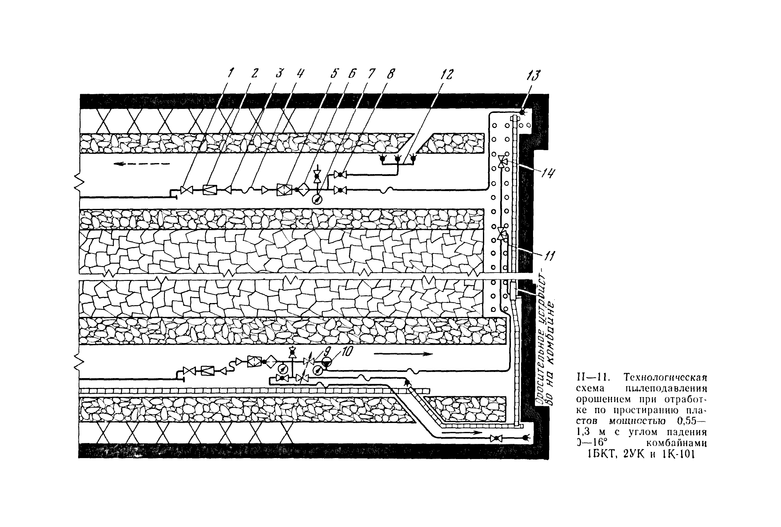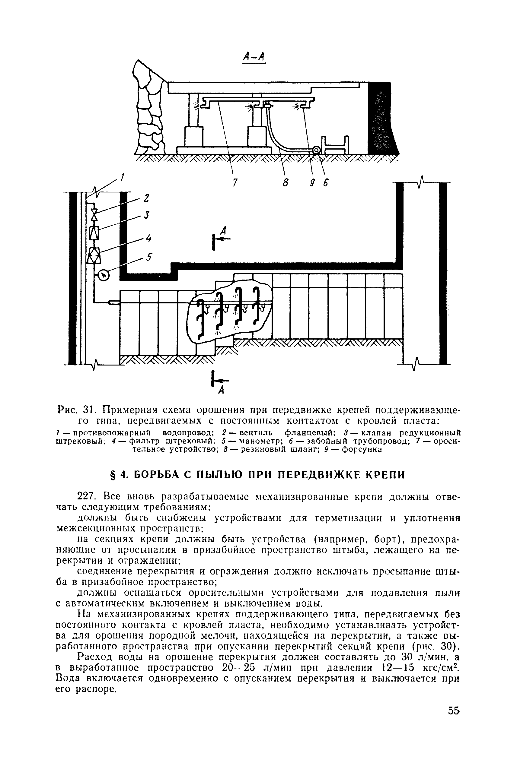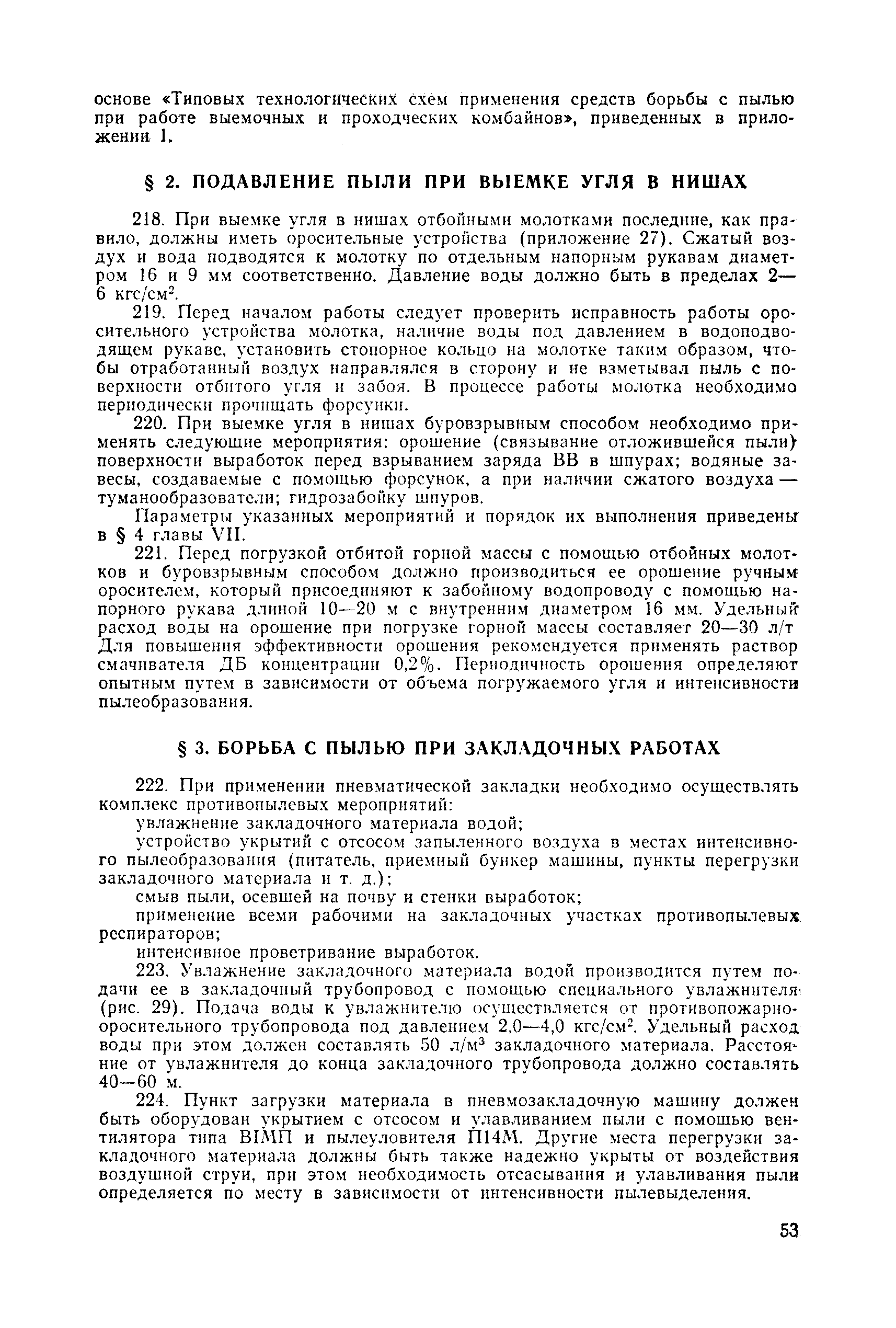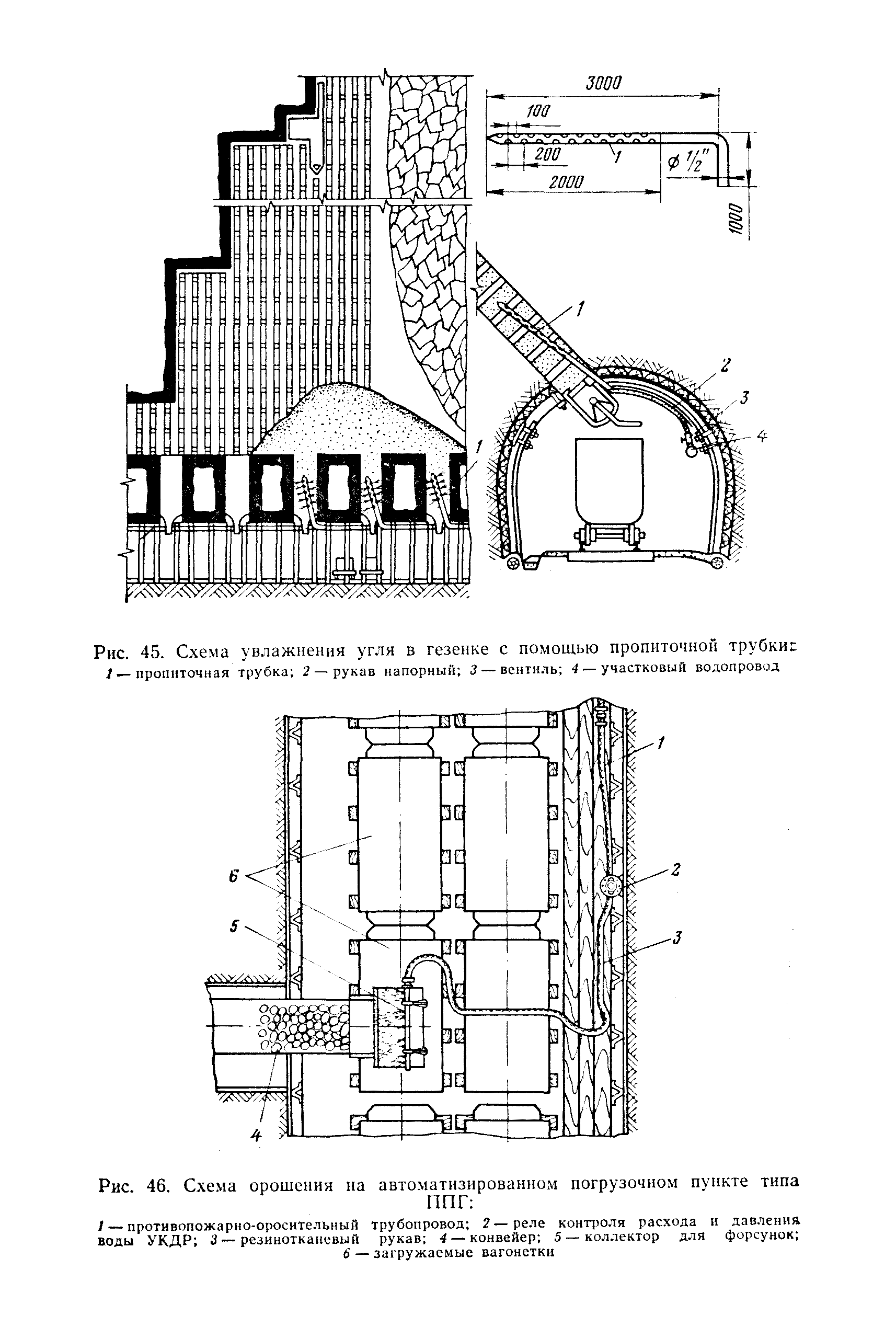 | Оглавление: | Введение Глава I. Общие положения по комплексному обеспыливанию угольных шахт Глава II. Пылеобразующая способность угольных пластов. Оценка горных машин и условий труда рабочих по пылевому фактору § 1. Общие положения § 2. Определение пылеобразующей способности шахтопластов § 3. Оценка выемочных комбайнов по пылевому фактору § 4. Оценка проходческих комбайнов по пылевому фактору § 5. Гигиеническая оценка условий труда рабочих по пылевому фактору Глава III. Предварительное увлажнение угольных пластов § 1. Общие положения § 2. Способы и схемы нагнетания жидкости в угольные пласты § 3. Параметры нагнетания жидкости в угольные пласты при очистных работах § 4. Параметры нагнетания жидкости в подготовительных выработках § 5. Оборудование для бурения скважин и нагнетания жидкости в пласт § 6. Организация работ и техника безопасности при нагнетании жидкости Глава IV. Способы и средства борьбы с пылью в шахтах § 1. Общие положения § 2. Орошение § 3. Высоконапорное орошение § 4. Пылеподавление водовоздушными смесями § 5. Подавление пыли пеной § 6. Пылеулавливание § 7. Обеспыливающее проветривание § 8. Способы и средства обеспыливания вентиляционной струи Глава V. Обеспыливание воздуха при выемке пологих пластов угля § 1. Борьба с пылью при выемке угля § 2. Подавление пыли при выемке угля в нишах § 3. Борьба с пылью при закладочных работах § 4. Борьба с пылью при передвижке крепи § 5. Обслуживание и эксплуатация средств борьбы с пылью Глава VI. Обеспыливание воздуха при выемке крутых пластов угля § 1. Борьба с пылью при выемке угля § 2. Очистка исходящих вентиляционных струй § 3. Обслуживание и эксплуатация средств борьбы с пылью Глава VII. Обеспыливание воздуха при проведении горных выработок § 1. Общие положения § 2. Обеспыливание воздуха при проведении горных выработок проходческими комбайнами избирательного действия § 3. Обеспыливание воздуха при проведении горных выработок проходческими комбайнами с ограждающими щитами § 4. Обеспыливание воздуха при ведении буровзрывных работ § 5. Обслуживание и эксплуатация средств борьбы с пылью Глава VIII. Борьба с пылью при проходке стволов шахт Глава IX. Обеспыливание воздуха при погрузочно-транспортных работах § 1. Общие положения § 2. Орошение при работе погрузочных машин § 3. Обеспыливание воздуха при погрузке угля из лав § 4. Обеспыливание воздуха при транспортировании угля § 5. Обеспыливание воздуха при работе опрокидывателей Глава Х. Обеспыливание воздуха в угольных шахтах Крайнего Севера § 1. Общие положения § 2. Обеспыливание воздуха при бурении шпуров и скважин § 3. Обеспыливание воздуха при взрывных работах § 4. Обеспыливание воздуха при погрузочно-разгрузочных операциях § 5. Обеспыливание воздуха при доставке и транспортировании угля § 6. Обеспыливание воздуха при работе комбайнов Глава XI. Обеспыливание воздуха, поступающего в шахты с поверхности Глава XII. Водоснабжение горных выработок, очистка шахтных вод Глава XIII. Контроль качества применяемых мероприятий по борьбе с пылью § 1. Организация шахтной противопылевой службы § 2. Контроль качества применяемых мероприятий § 3. Пылевой контроль Глава XIV. Индивидуальные средства защиты от пыли Приложение 1. Типовые технологические схемы применения средств борьбы с пылью при работе выемочных и проходческих комбайнов Приложение 2. Образцы паспортов 