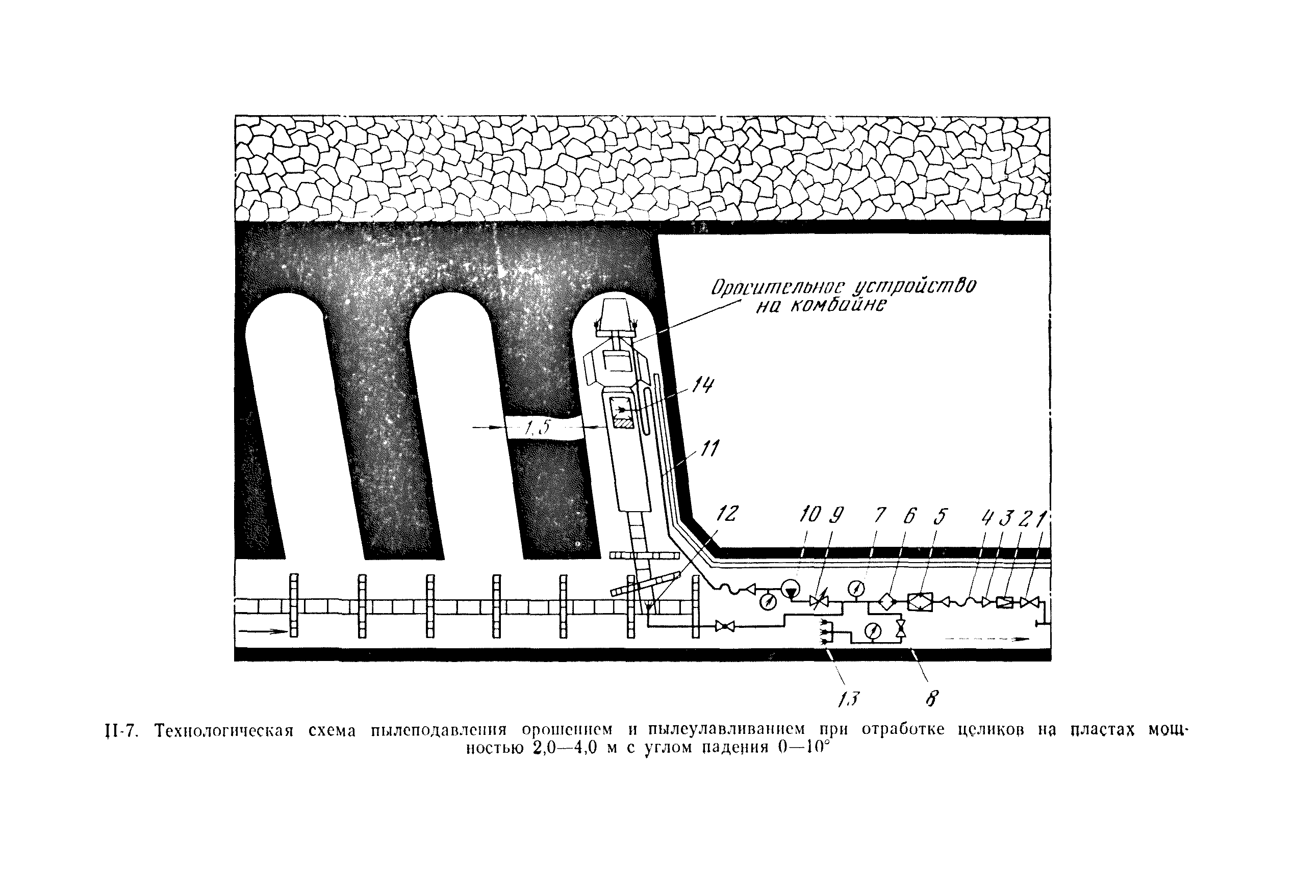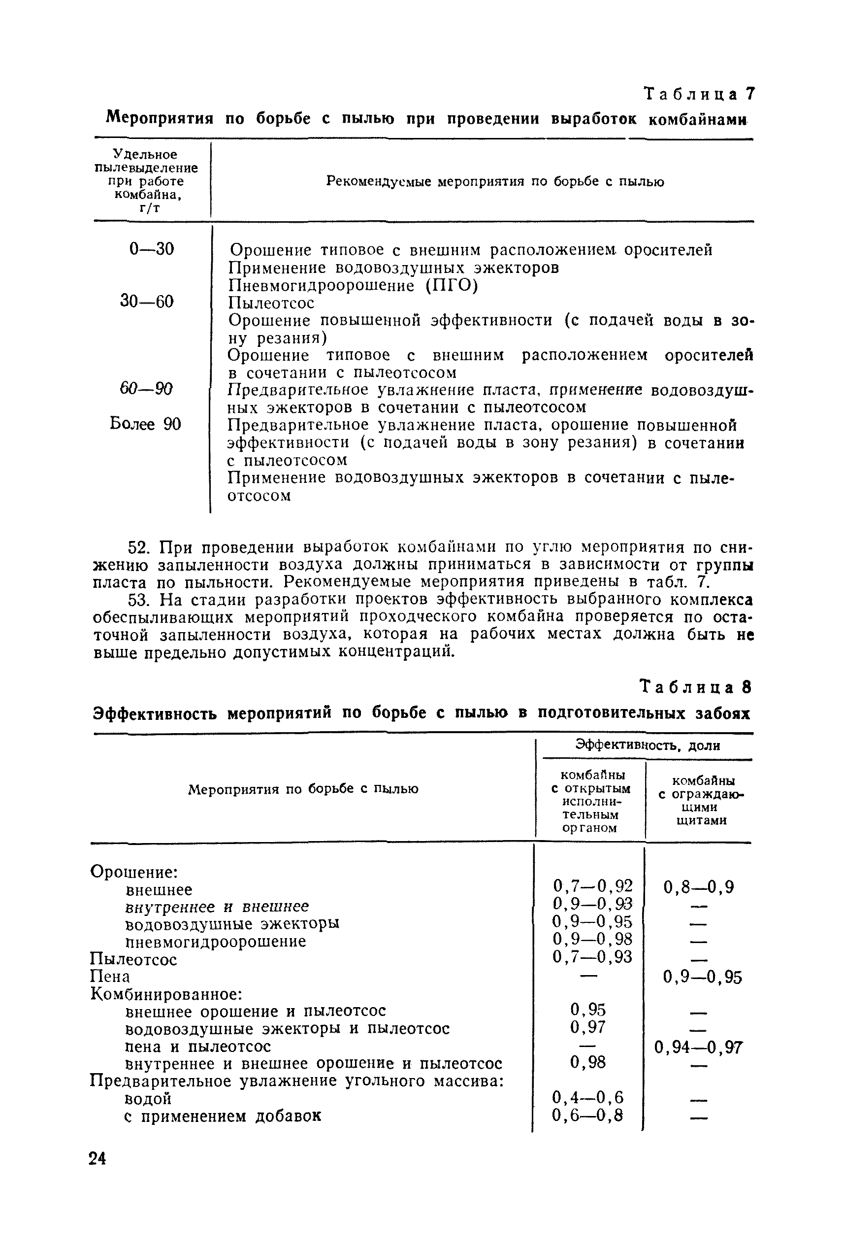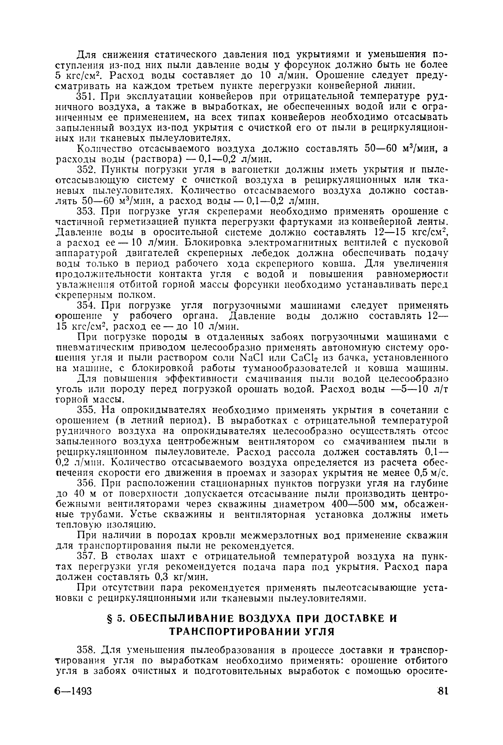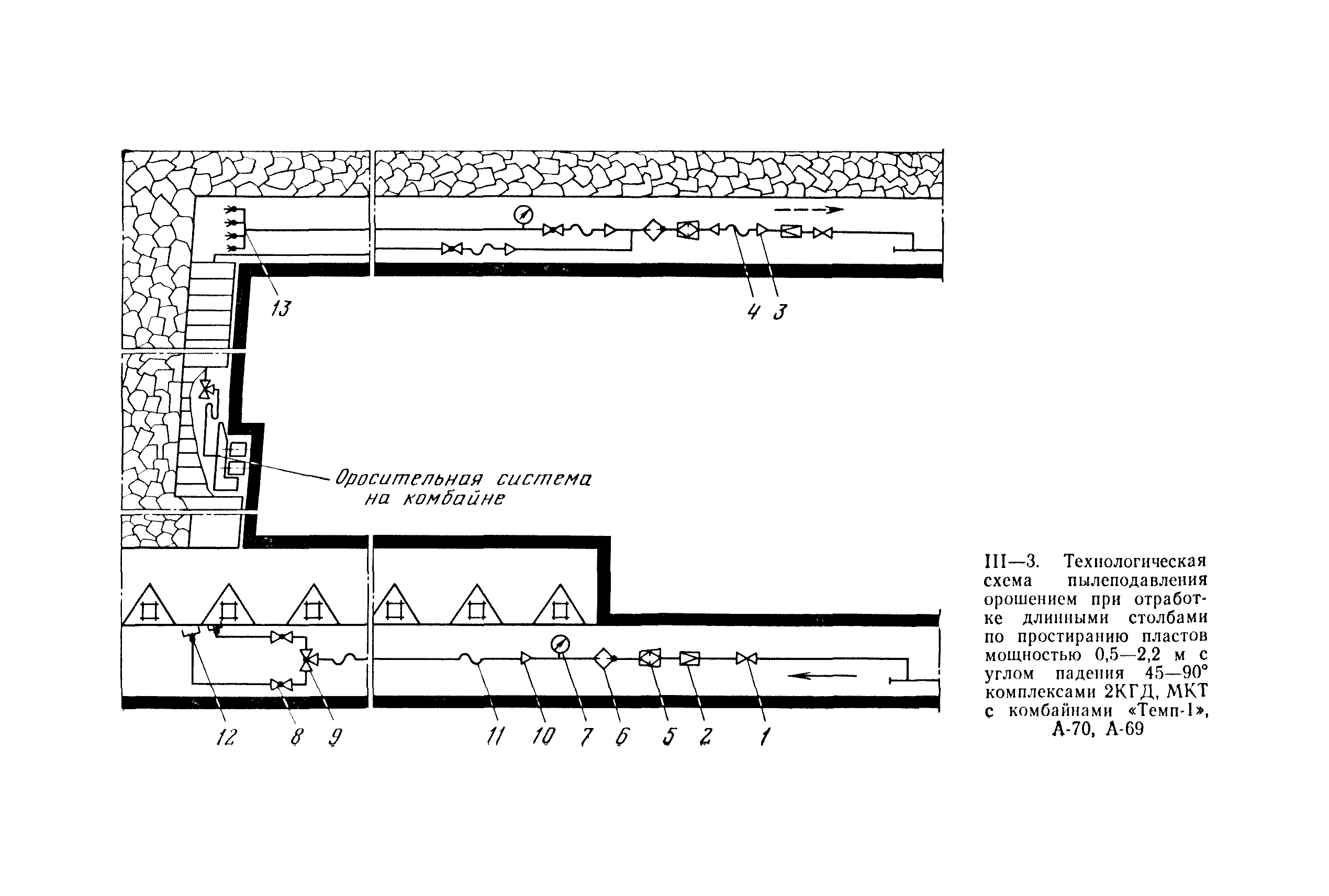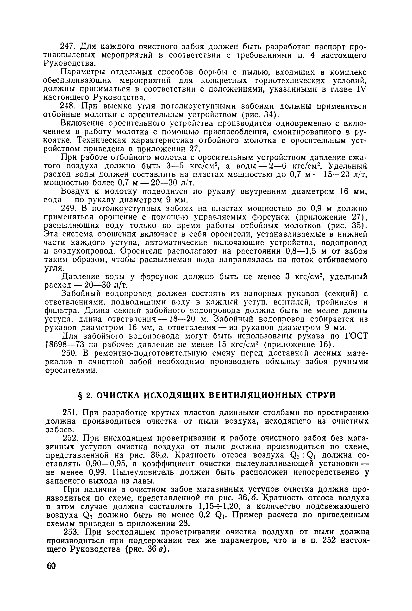 | Оглавление: | Введение Глава I. Общие положения по комплексному обеспыливанию угольных шахт Глава II. Пылеобразующая способность угольных пластов. Оценка горных машин и условий труда рабочих по пылевому фактору § 1. Общие положения § 2. Определение пылеобразующей способности шахтопластов § 3. Оценка выемочных комбайнов по пылевому фактору § 4. Оценка проходческих комбайнов по пылевому фактору § 5. Гигиеническая оценка условий труда рабочих по пылевому фактору Глава III. Предварительное увлажнение угольных пластов § 1. Общие положения § 2. Способы и схемы нагнетания жидкости в угольные пласты § 3. Параметры нагнетания жидкости в угольные пласты при очистных работах § 4. Параметры нагнетания жидкости в подготовительных выработках § 5. Оборудование для бурения скважин и нагнетания жидкости в пласт § 6. Организация работ и техника безопасности при нагнетании жидкости Глава IV. Способы и средства борьбы с пылью в шахтах § 1. Общие положения § 2. Орошение § 3. Высоконапорное орошение § 4. Пылеподавление водовоздушными смесями § 5. Подавление пыли пеной § 6. Пылеулавливание § 7. Обеспыливающее проветривание § 8. Способы и средства обеспыливания вентиляционной струи Глава V. Обеспыливание воздуха при выемке пологих пластов угля § 1. Борьба с пылью при выемке угля § 2. Подавление пыли при выемке угля в нишах § 3. Борьба с пылью при закладочных работах § 4. Борьба с пылью при передвижке крепи § 5. Обслуживание и эксплуатация средств борьбы с пылью Глава VI. Обеспыливание воздуха при выемке крутых пластов угля § 1. Борьба с пылью при выемке угля § 2. Очистка исходящих вентиляционных струй § 3. Обслуживание и эксплуатация средств борьбы с пылью Глава VII. Обеспыливание воздуха при проведении горных выработок § 1. Общие положения § 2. Обеспыливание воздуха при проведении горных выработок проходческими комбайнами избирательного действия § 3. Обеспыливание воздуха при проведении горных выработок проходческими комбайнами с ограждающими щитами § 4. Обеспыливание воздуха при ведении буровзрывных работ § 5. Обслуживание и эксплуатация средств борьбы с пылью Глава VIII. Борьба с пылью при проходке стволов шахт Глава IX. Обеспыливание воздуха при погрузочно-транспортных работах § 1. Общие положения § 2. Орошение при работе погрузочных машин § 3. Обеспыливание воздуха при погрузке угля из лав § 4. Обеспыливание воздуха при транспортировании угля § 5. Обеспыливание воздуха при работе опрокидывателей Глава Х. Обеспыливание воздуха в угольных шахтах Крайнего Севера § 1. Общие положения § 2. Обеспыливание воздуха при бурении шпуров и скважин § 3. Обеспыливание воздуха при взрывных работах § 4. Обеспыливание воздуха при погрузочно-разгрузочных операциях § 5. Обеспыливание воздуха при доставке и транспортировании угля § 6. Обеспыливание воздуха при работе комбайнов Глава XI. Обеспыливание воздуха, поступающего в шахты с поверхности Глава XII. Водоснабжение горных выработок, очистка шахтных вод Глава XIII. Контроль качества применяемых мероприятий по борьбе с пылью § 1. Организация шахтной противопылевой службы § 2. Контроль качества применяемых мероприятий § 3. Пылевой контроль Глава XIV. Индивидуальные средства защиты от пыли Приложение 1. Типовые технологические схемы применения средств борьбы с пылью при работе выемочных и проходческих комбайнов Приложение 2. Образцы паспортов 