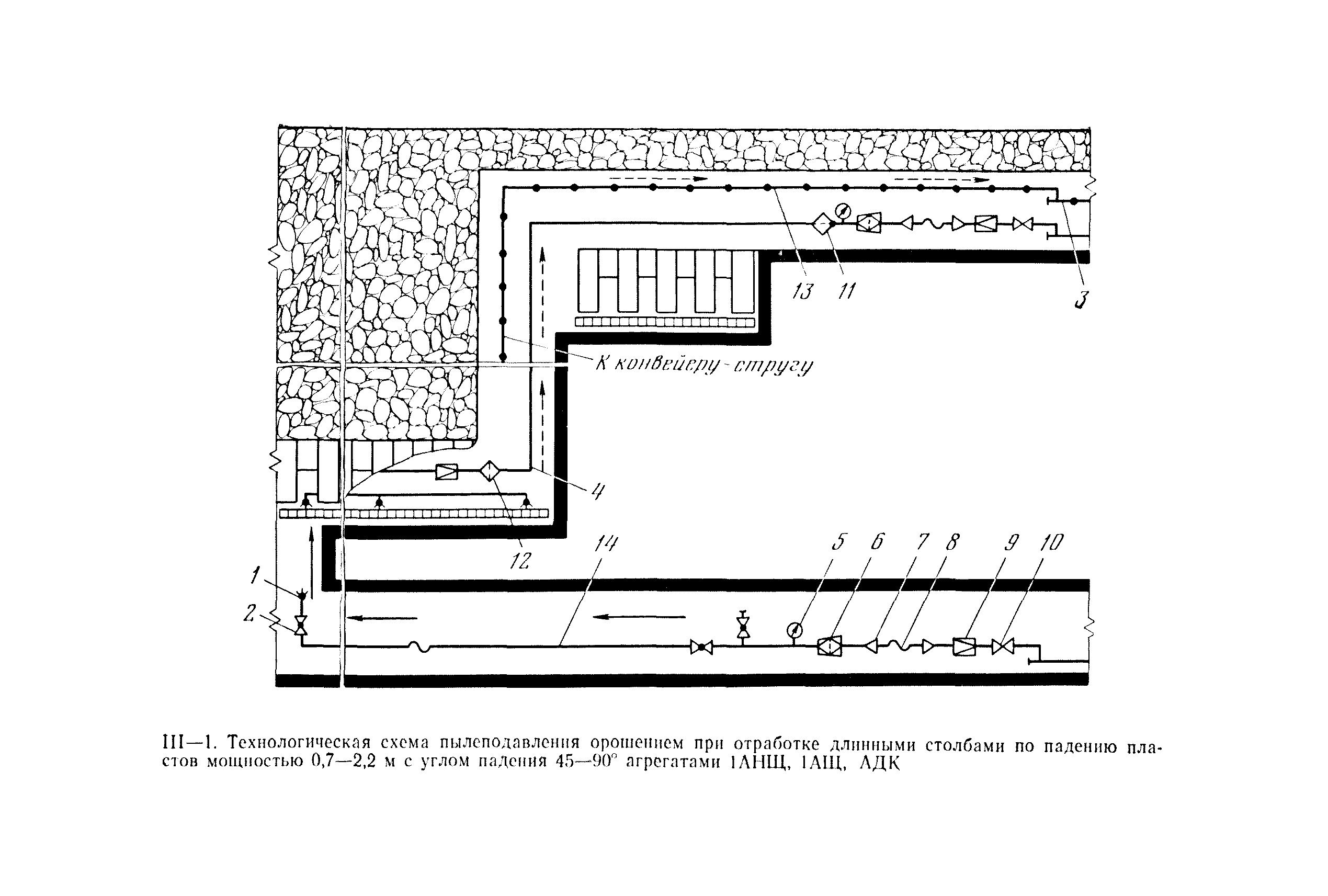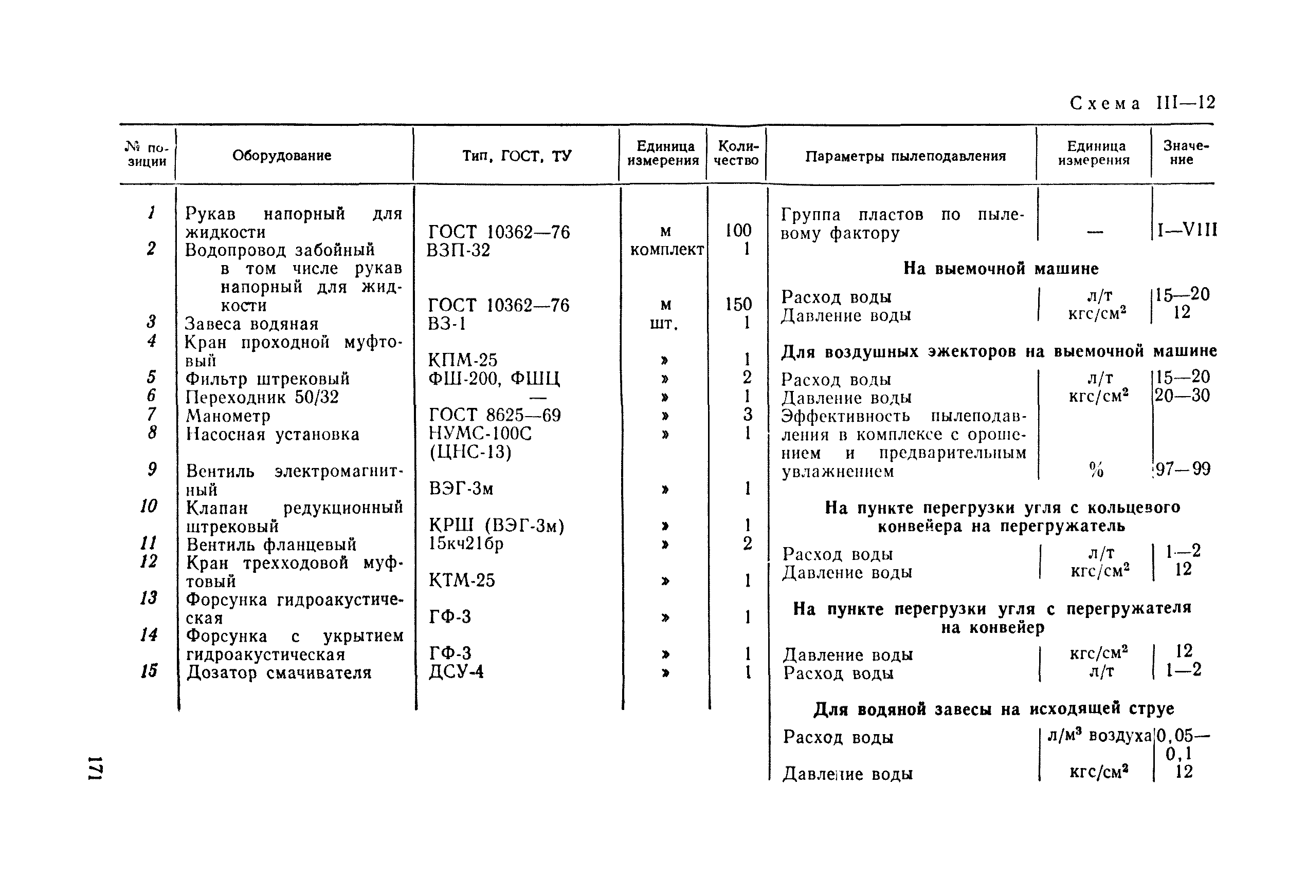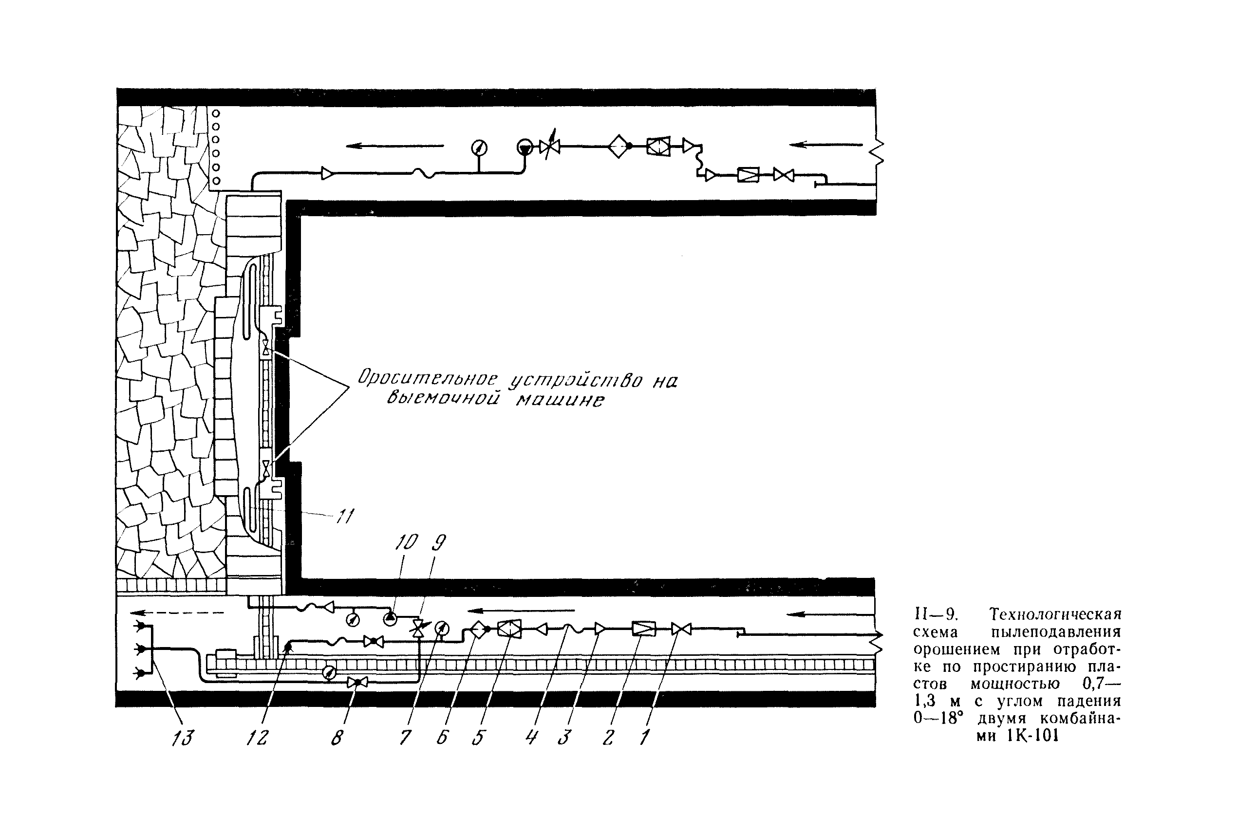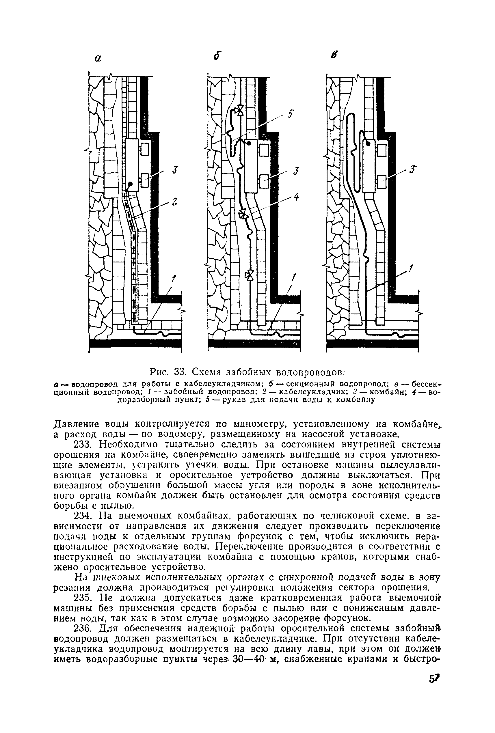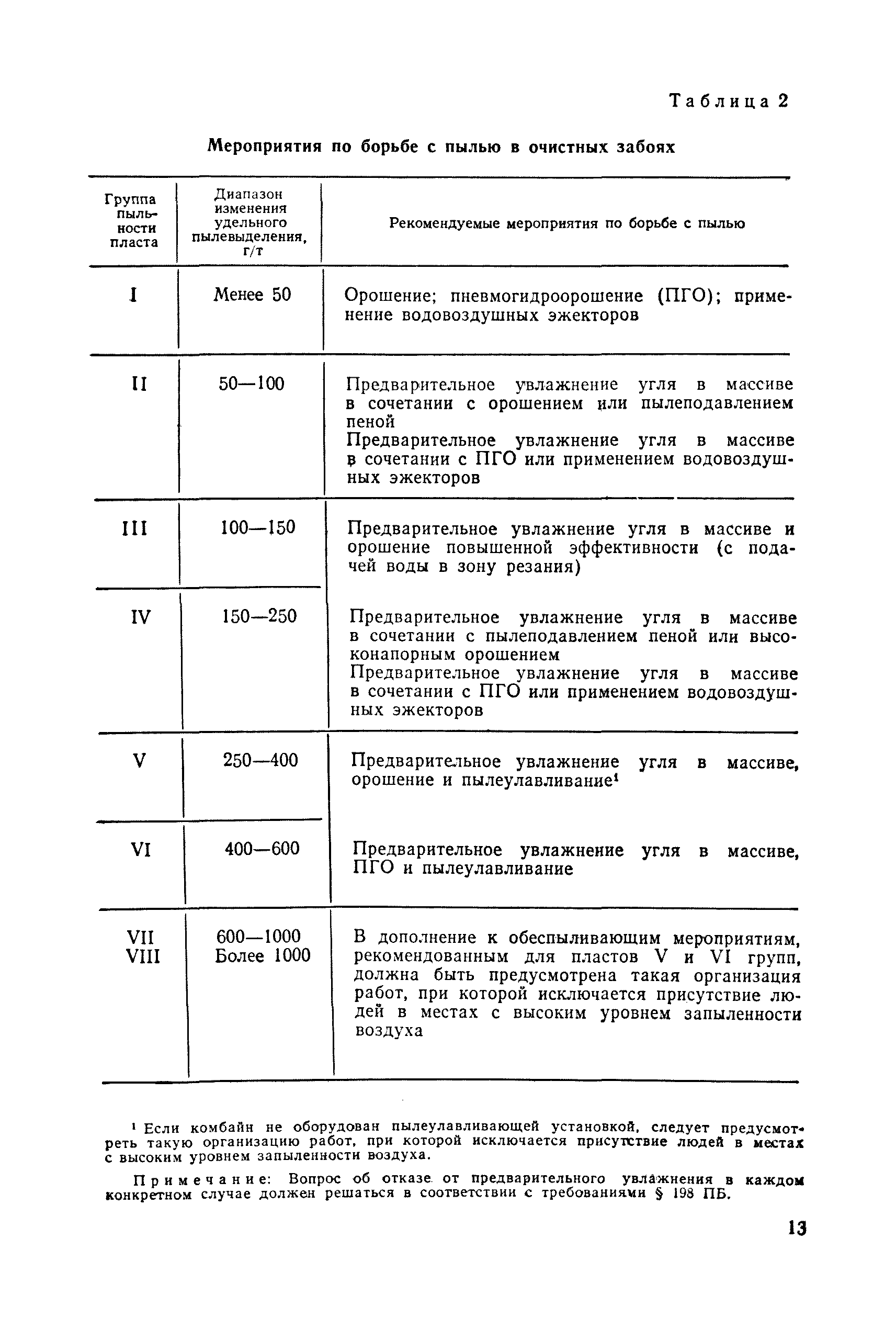 | Оглавление: | Введение Глава I. Общие положения по комплексному обеспыливанию угольных шахт Глава II. Пылеобразующая способность угольных пластов. Оценка горных машин и условий труда рабочих по пылевому фактору § 1. Общие положения § 2. Определение пылеобразующей способности шахтопластов § 3. Оценка выемочных комбайнов по пылевому фактору § 4. Оценка проходческих комбайнов по пылевому фактору § 5. Гигиеническая оценка условий труда рабочих по пылевому фактору Глава III. Предварительное увлажнение угольных пластов § 1. Общие положения § 2. Способы и схемы нагнетания жидкости в угольные пласты § 3. Параметры нагнетания жидкости в угольные пласты при очистных работах § 4. Параметры нагнетания жидкости в подготовительных выработках § 5. Оборудование для бурения скважин и нагнетания жидкости в пласт § 6. Организация работ и техника безопасности при нагнетании жидкости Глава IV. Способы и средства борьбы с пылью в шахтах § 1. Общие положения § 2. Орошение § 3. Высоконапорное орошение § 4. Пылеподавление водовоздушными смесями § 5. Подавление пыли пеной § 6. Пылеулавливание § 7. Обеспыливающее проветривание § 8. Способы и средства обеспыливания вентиляционной струи Глава V. Обеспыливание воздуха при выемке пологих пластов угля § 1. Борьба с пылью при выемке угля § 2. Подавление пыли при выемке угля в нишах § 3. Борьба с пылью при закладочных работах § 4. Борьба с пылью при передвижке крепи § 5. Обслуживание и эксплуатация средств борьбы с пылью Глава VI. Обеспыливание воздуха при выемке крутых пластов угля § 1. Борьба с пылью при выемке угля § 2. Очистка исходящих вентиляционных струй § 3. Обслуживание и эксплуатация средств борьбы с пылью Глава VII. Обеспыливание воздуха при проведении горных выработок § 1. Общие положения § 2. Обеспыливание воздуха при проведении горных выработок проходческими комбайнами избирательного действия § 3. Обеспыливание воздуха при проведении горных выработок проходческими комбайнами с ограждающими щитами § 4. Обеспыливание воздуха при ведении буровзрывных работ § 5. Обслуживание и эксплуатация средств борьбы с пылью Глава VIII. Борьба с пылью при проходке стволов шахт Глава IX. Обеспыливание воздуха при погрузочно-транспортных работах § 1. Общие положения § 2. Орошение при работе погрузочных машин § 3. Обеспыливание воздуха при погрузке угля из лав § 4. Обеспыливание воздуха при транспортировании угля § 5. Обеспыливание воздуха при работе опрокидывателей Глава Х. Обеспыливание воздуха в угольных шахтах Крайнего Севера § 1. Общие положения § 2. Обеспыливание воздуха при бурении шпуров и скважин § 3. Обеспыливание воздуха при взрывных работах § 4. Обеспыливание воздуха при погрузочно-разгрузочных операциях § 5. Обеспыливание воздуха при доставке и транспортировании угля § 6. Обеспыливание воздуха при работе комбайнов Глава XI. Обеспыливание воздуха, поступающего в шахты с поверхности Глава XII. Водоснабжение горных выработок, очистка шахтных вод Глава XIII. Контроль качества применяемых мероприятий по борьбе с пылью § 1. Организация шахтной противопылевой службы § 2. Контроль качества применяемых мероприятий § 3. Пылевой контроль Глава XIV. Индивидуальные средства защиты от пыли Приложение 1. Типовые технологические схемы применения средств борьбы с пылью при работе выемочных и проходческих комбайнов Приложение 2. Образцы паспортов 