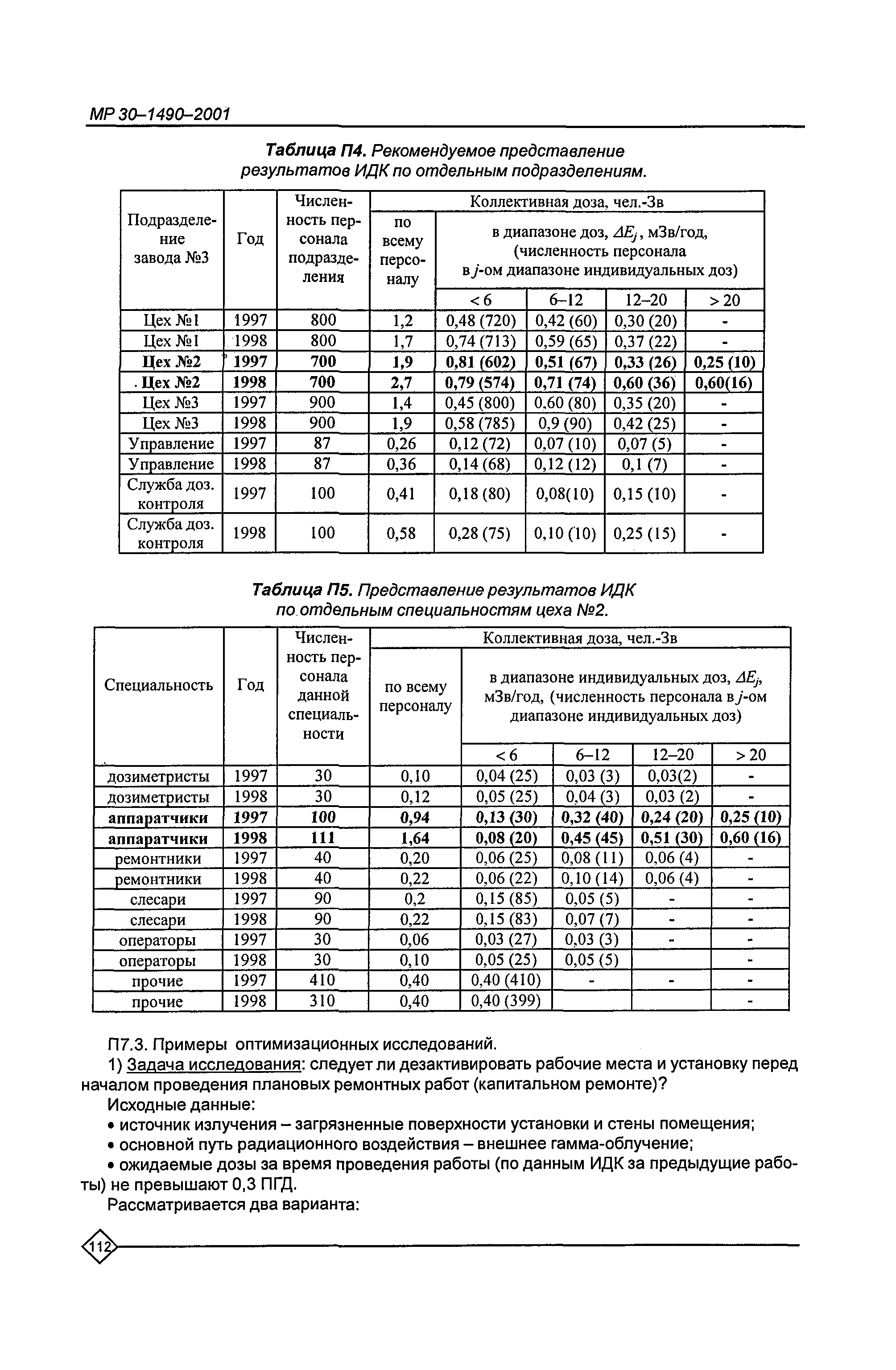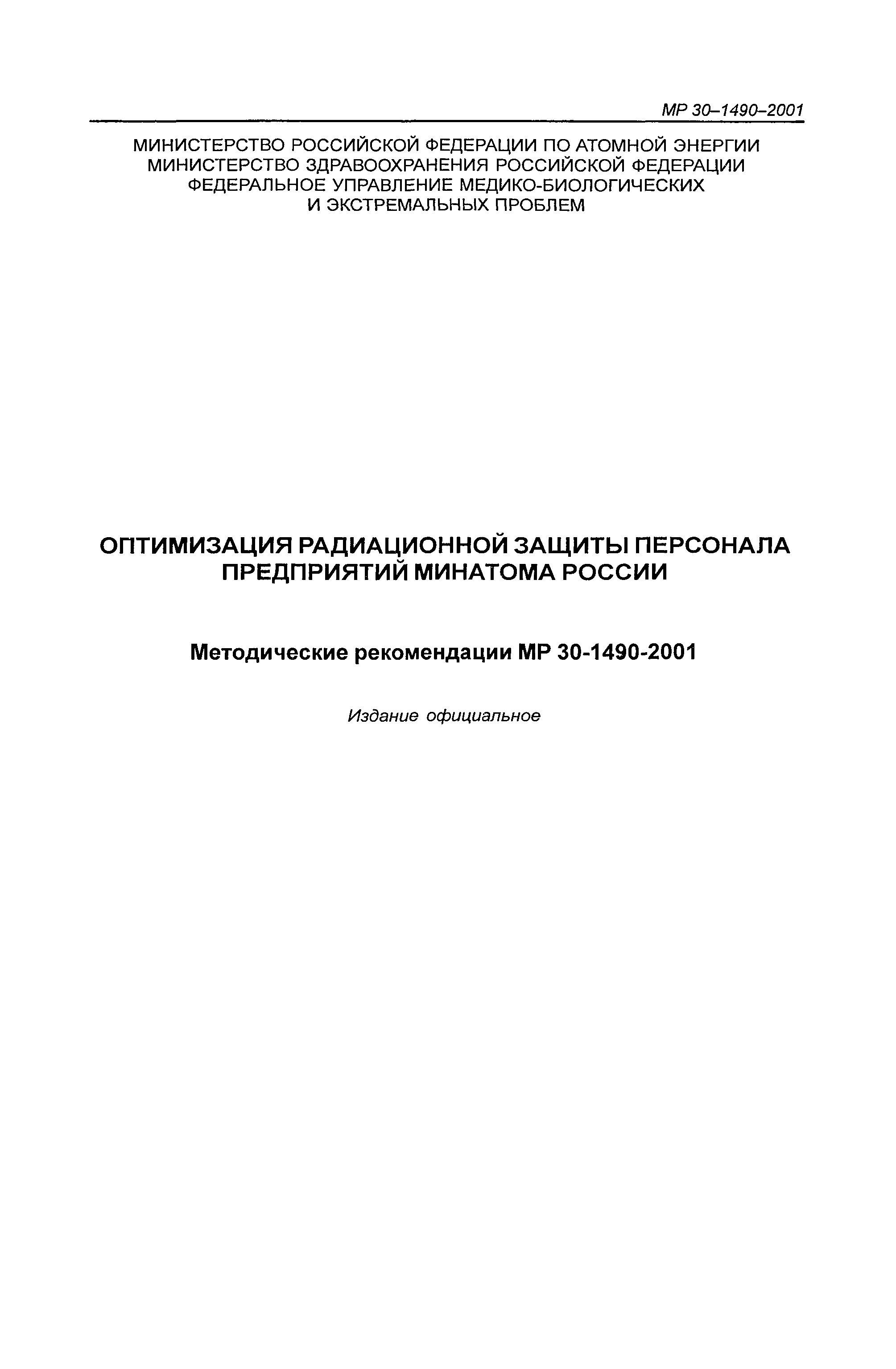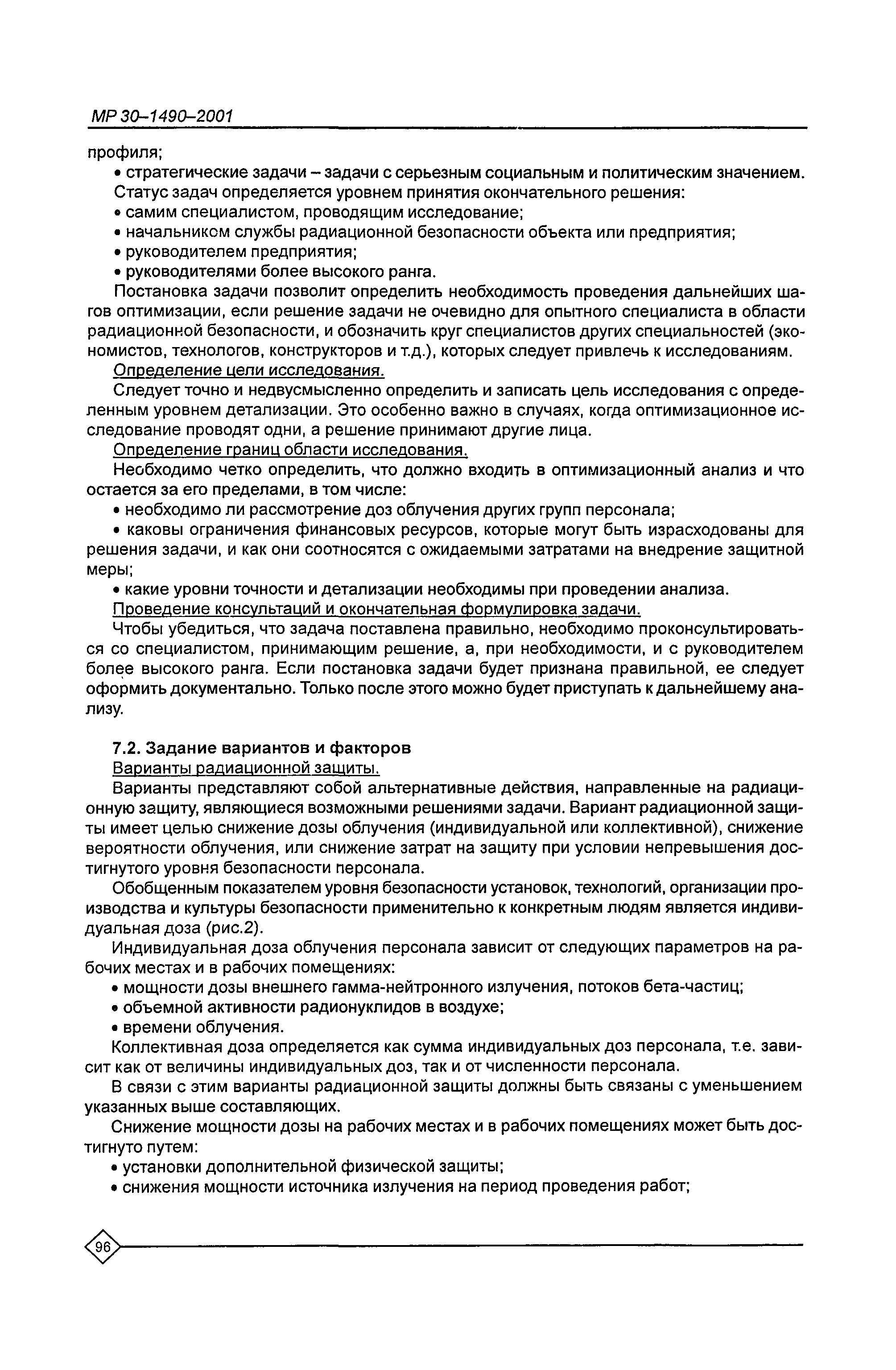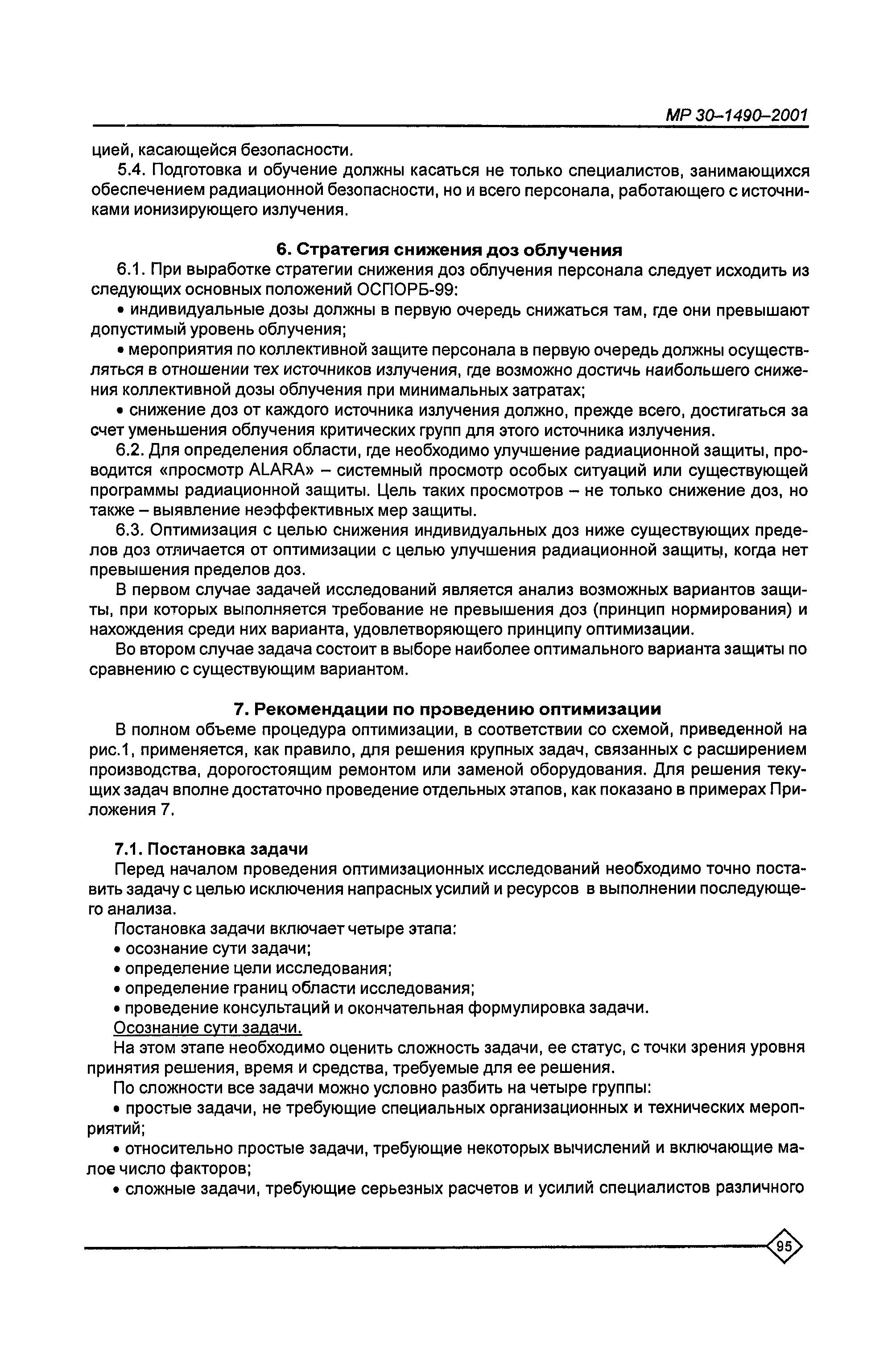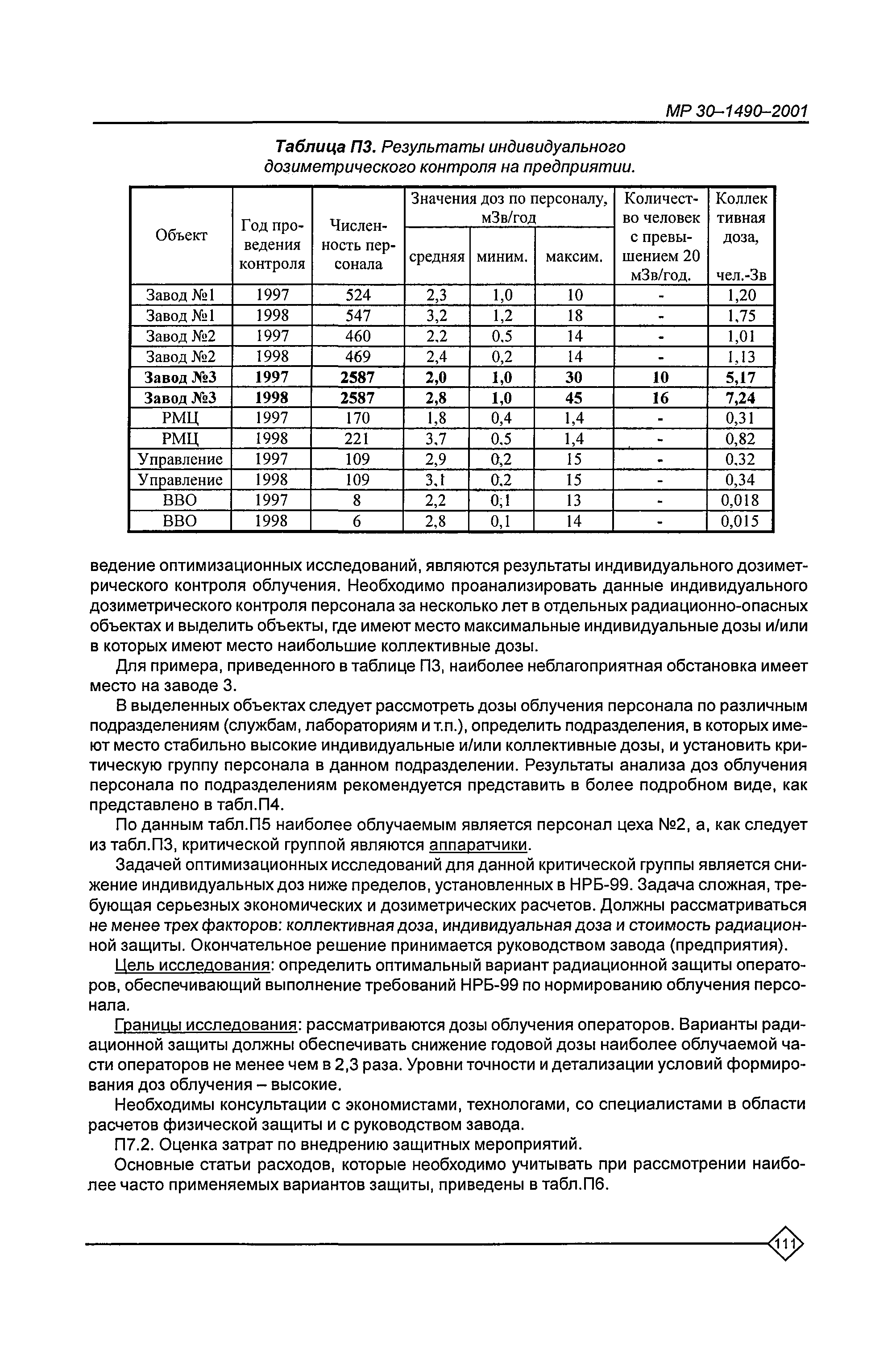 Оптимизация радиационной защиты персонала предприятий Минатома России. Методические рекомендации МР 30—1490—2001