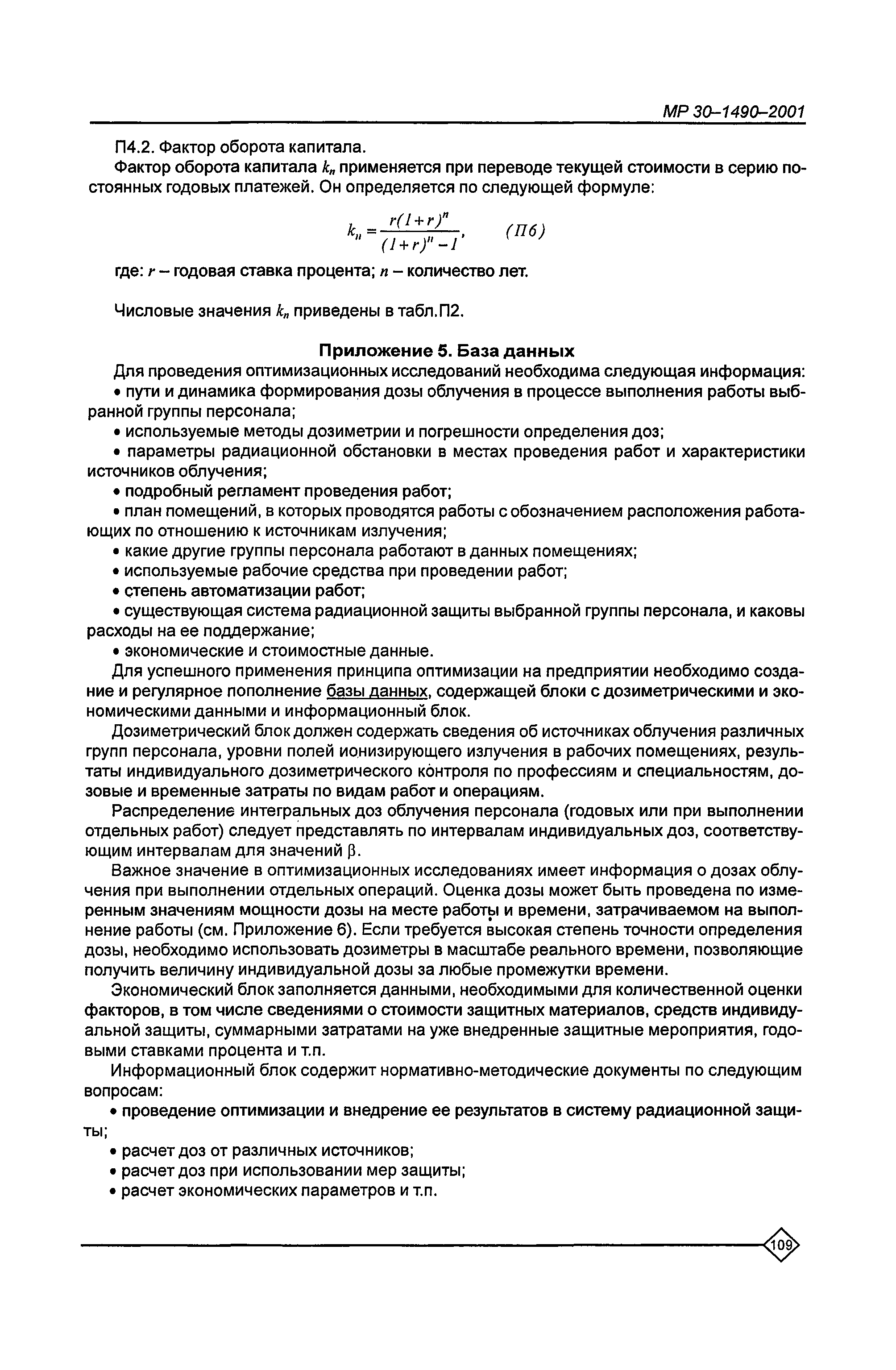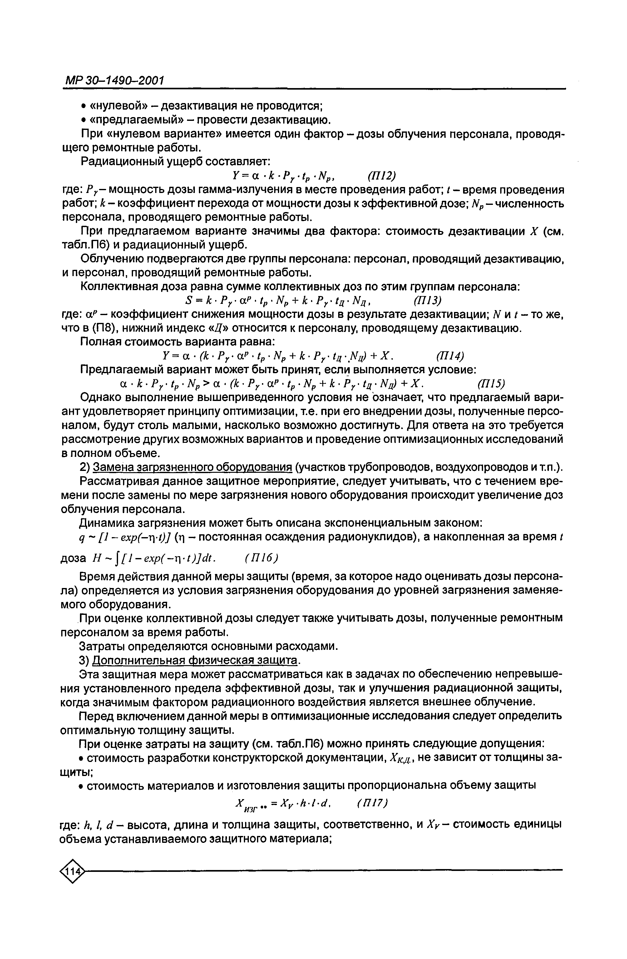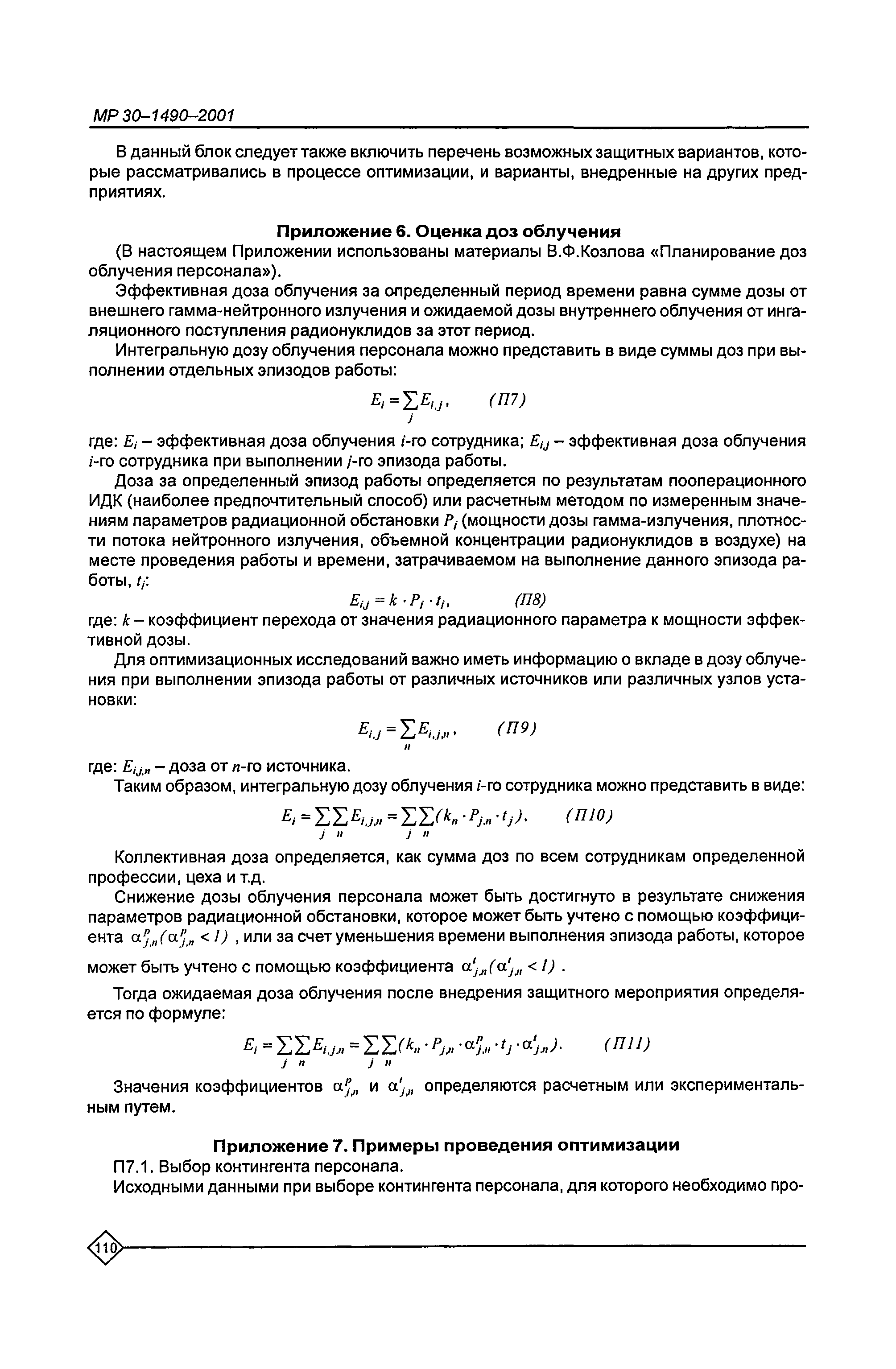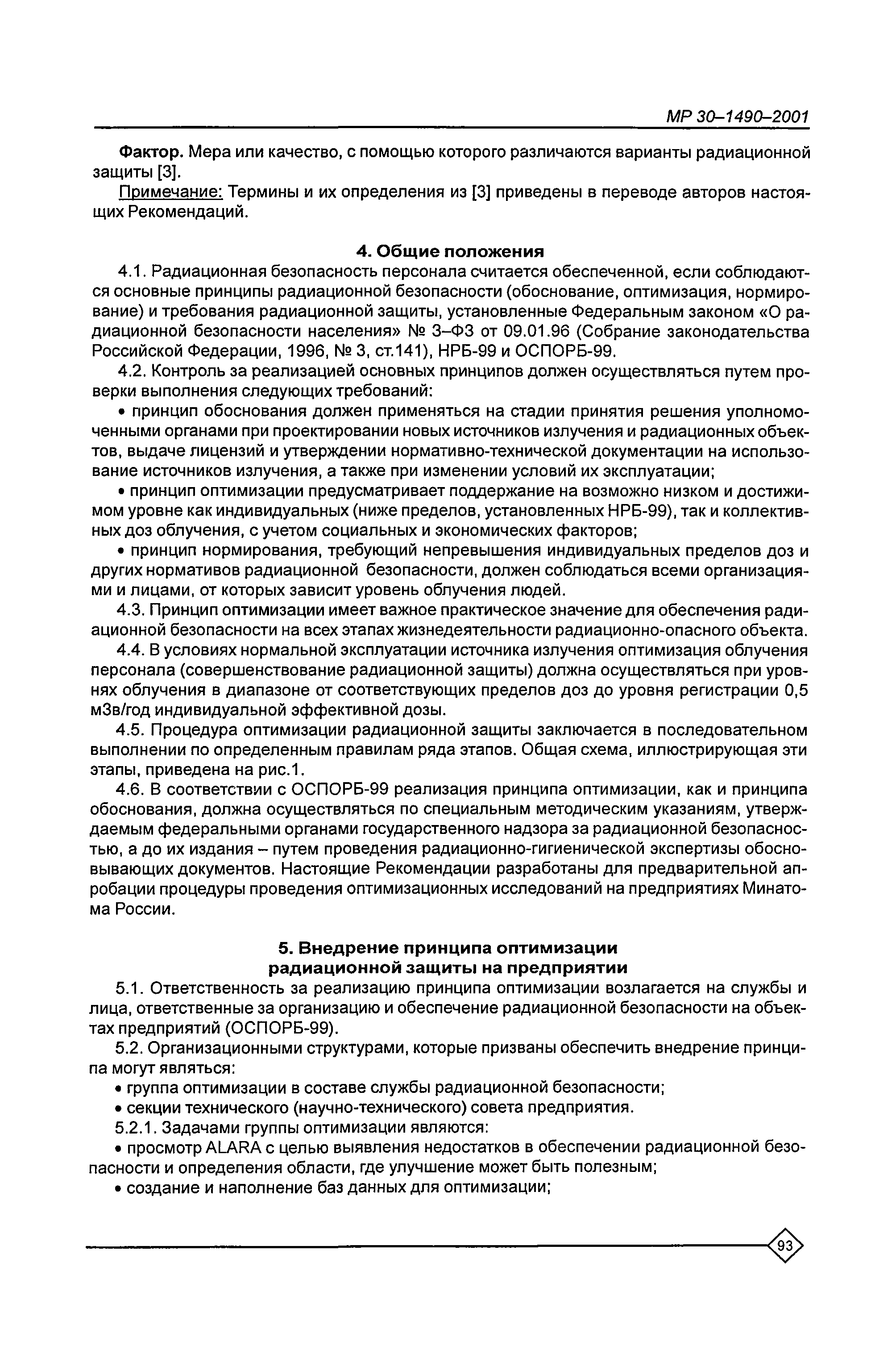 Оптимизация радиационной защиты персонала предприятий Минатома России. Методические рекомендации МР 30—1490—2001