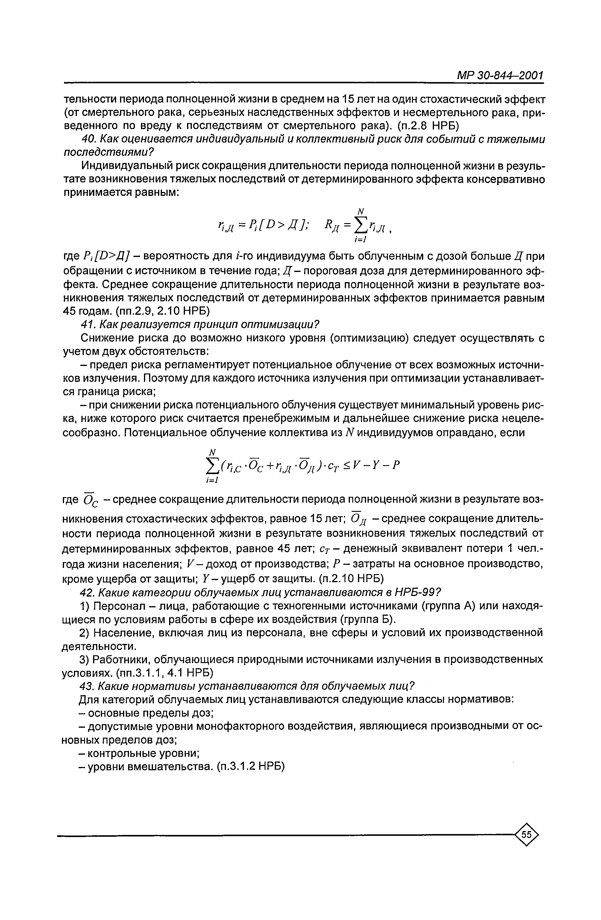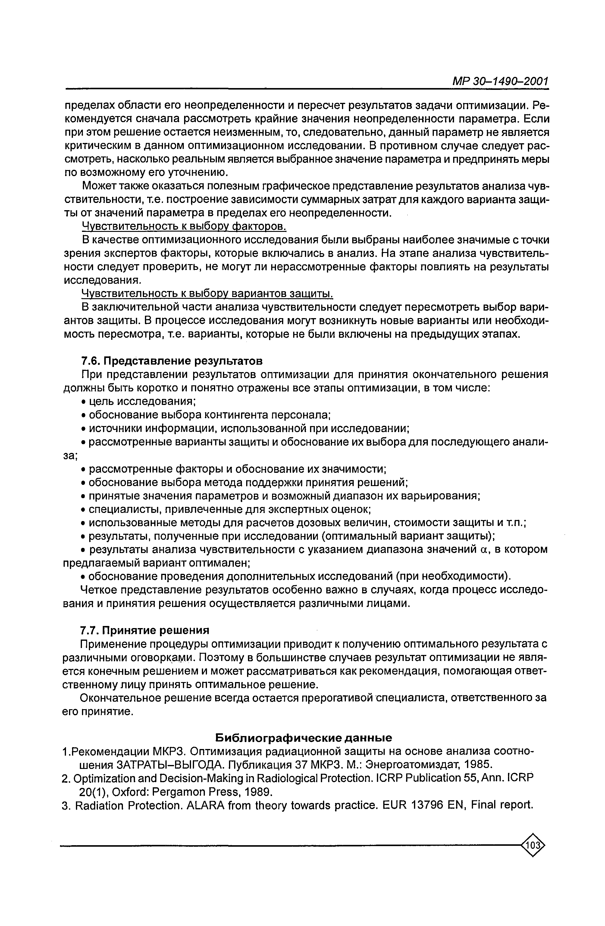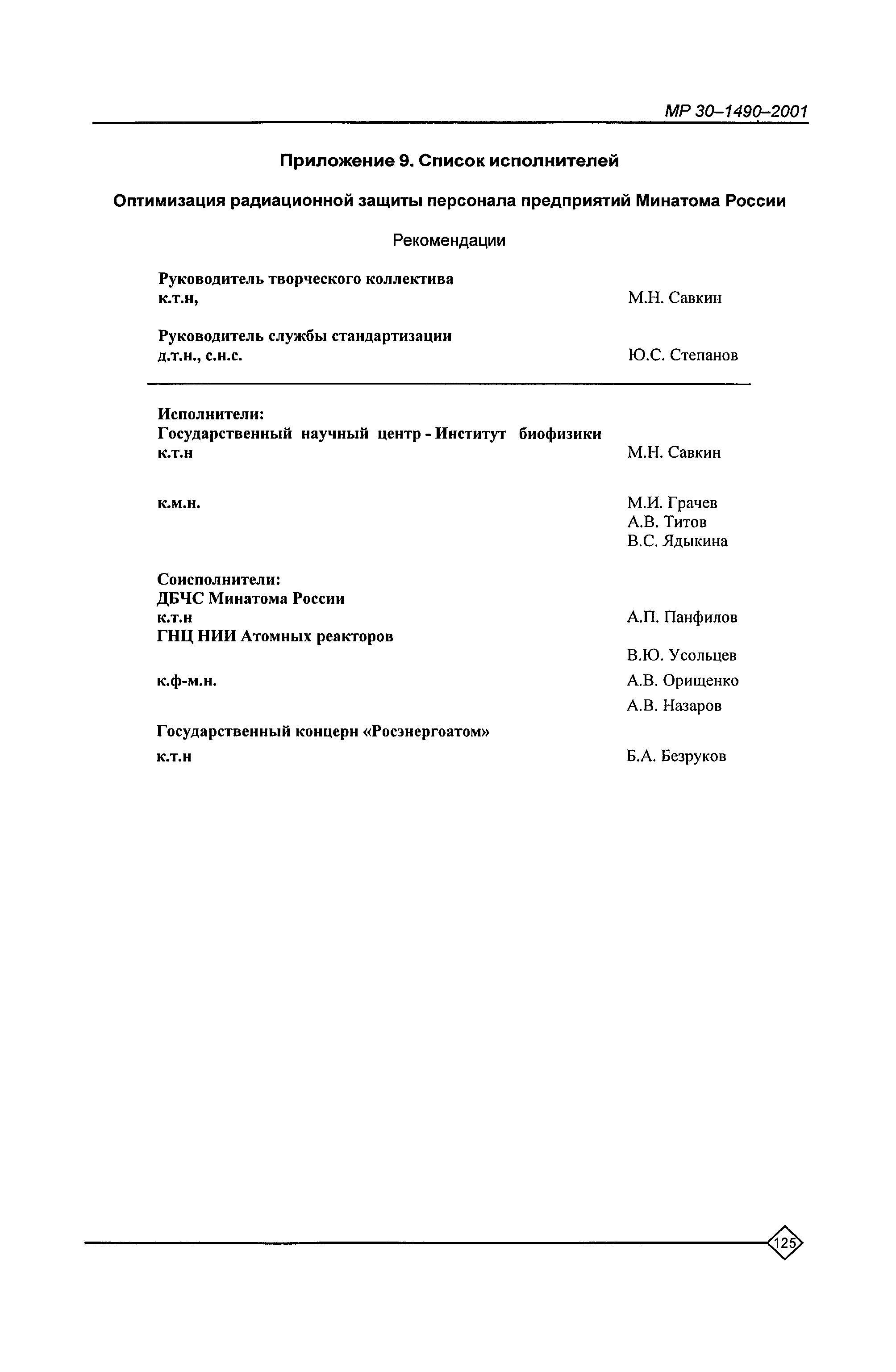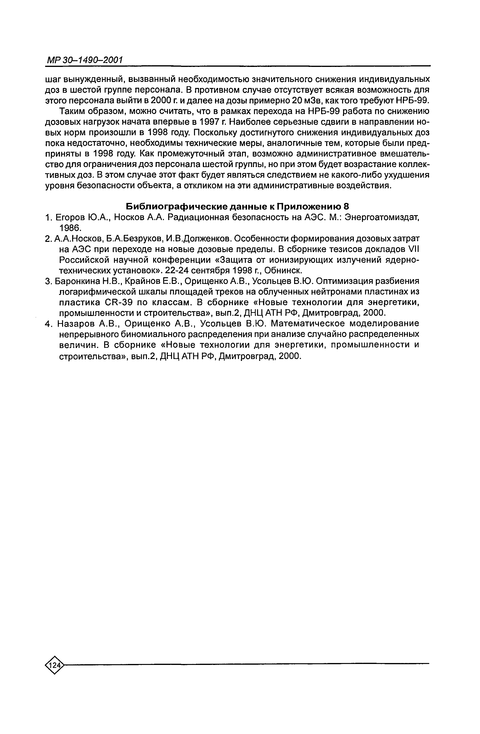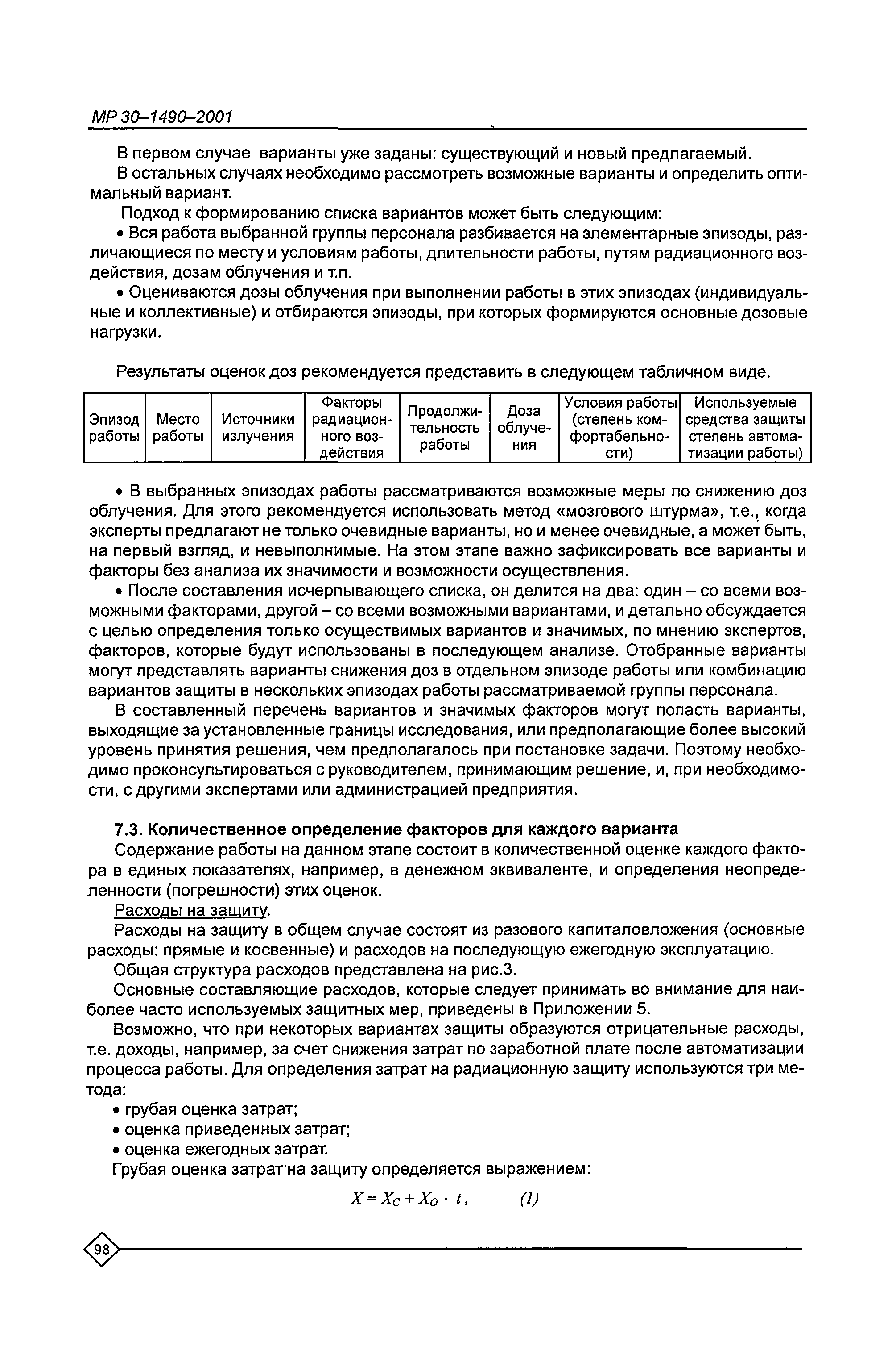 Оптимизация радиационной защиты персонала предприятий Минатома России. Методические рекомендации МР 30—1490—2001