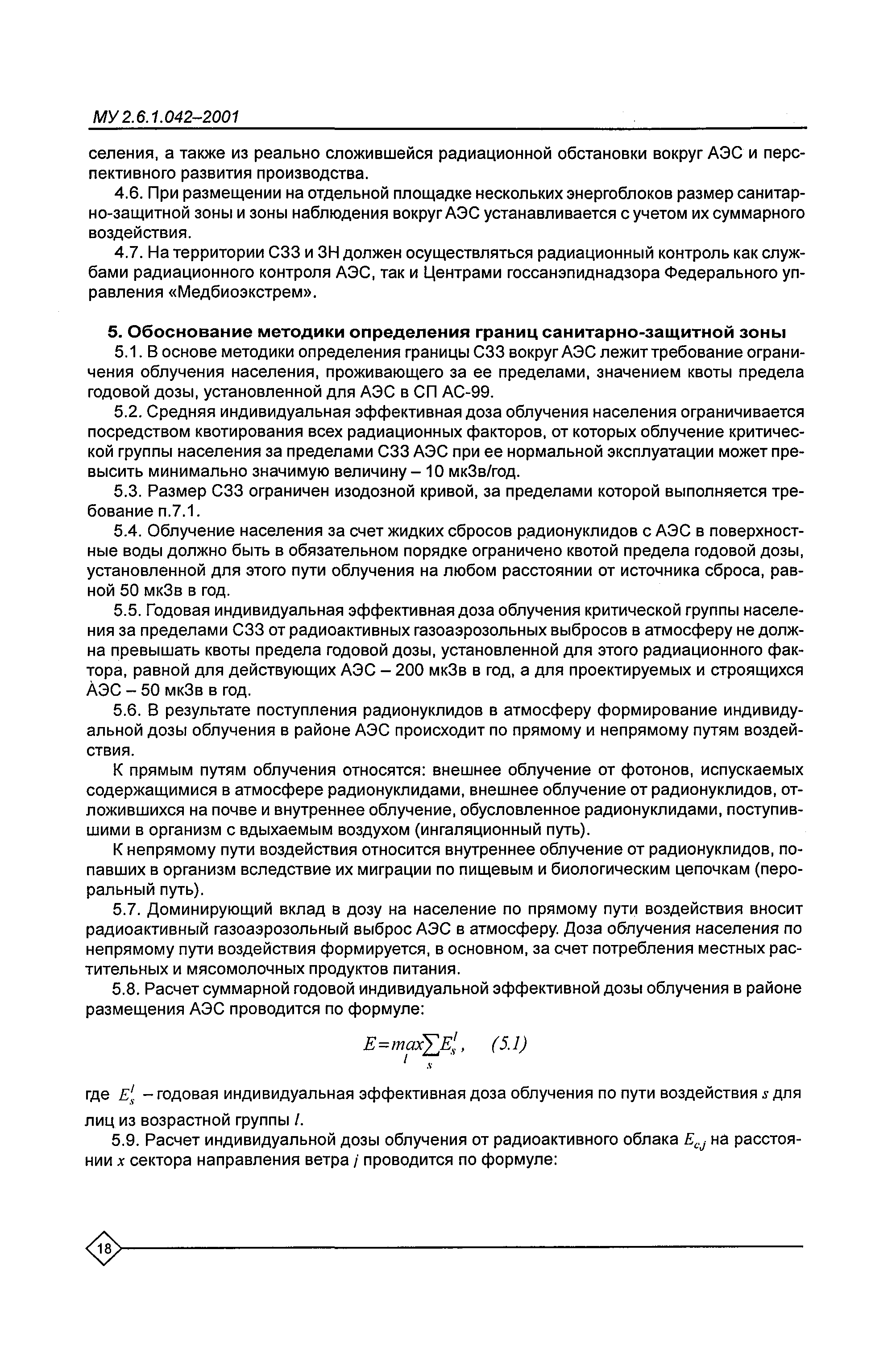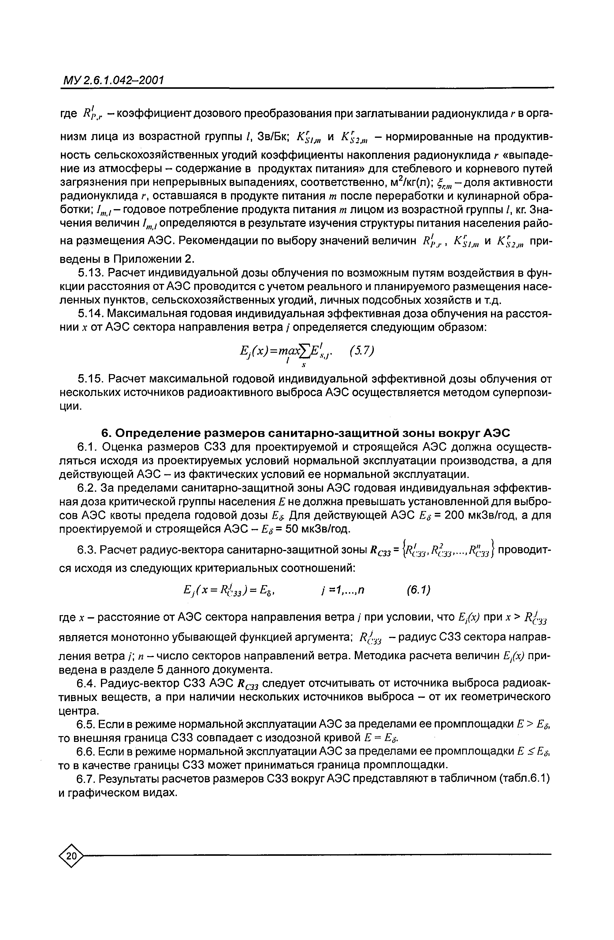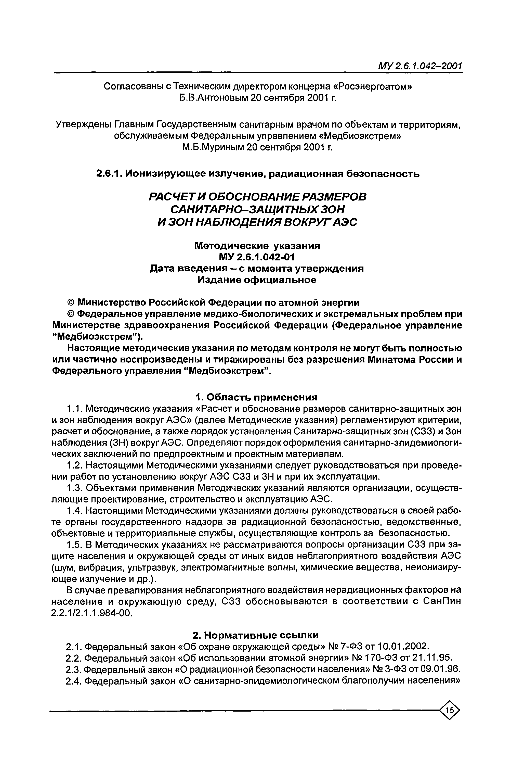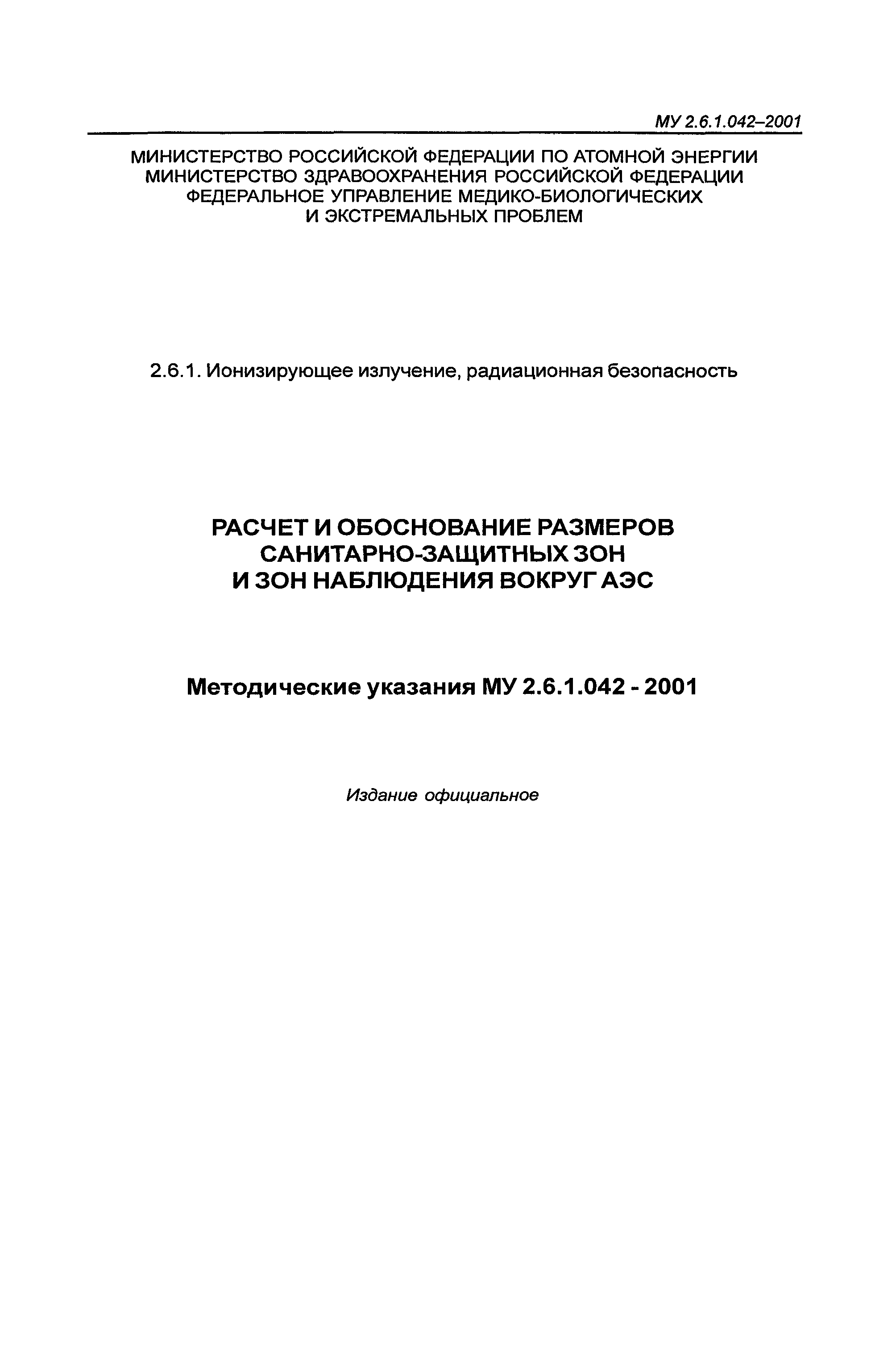 Расчет и обоснование размеров санитарно-защитных зон и зон наблюдения вокруг АЭС. Методические указания МУ 2.6.1.042—2001