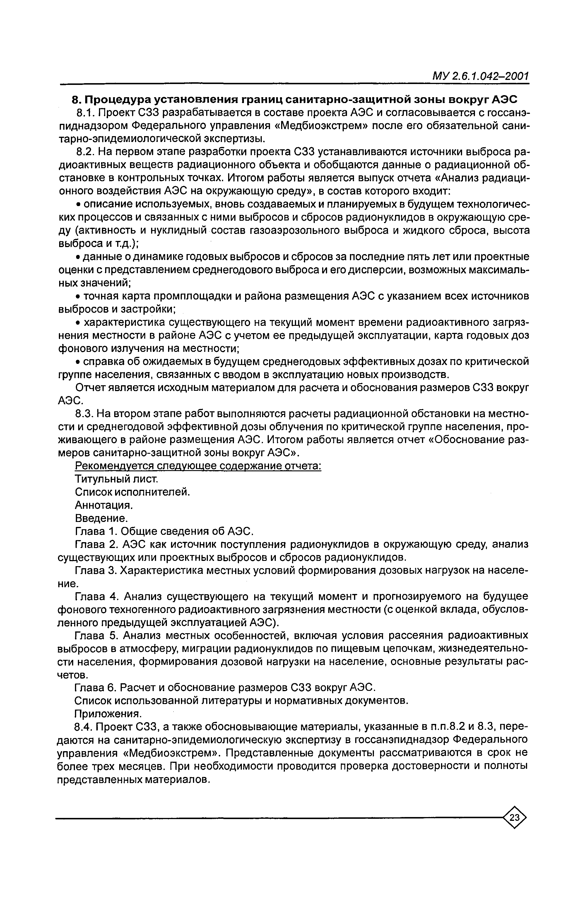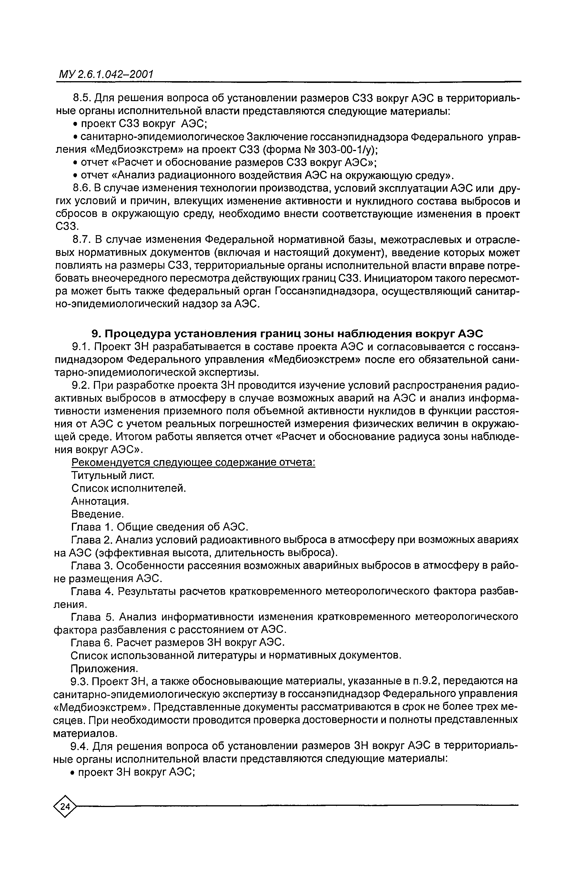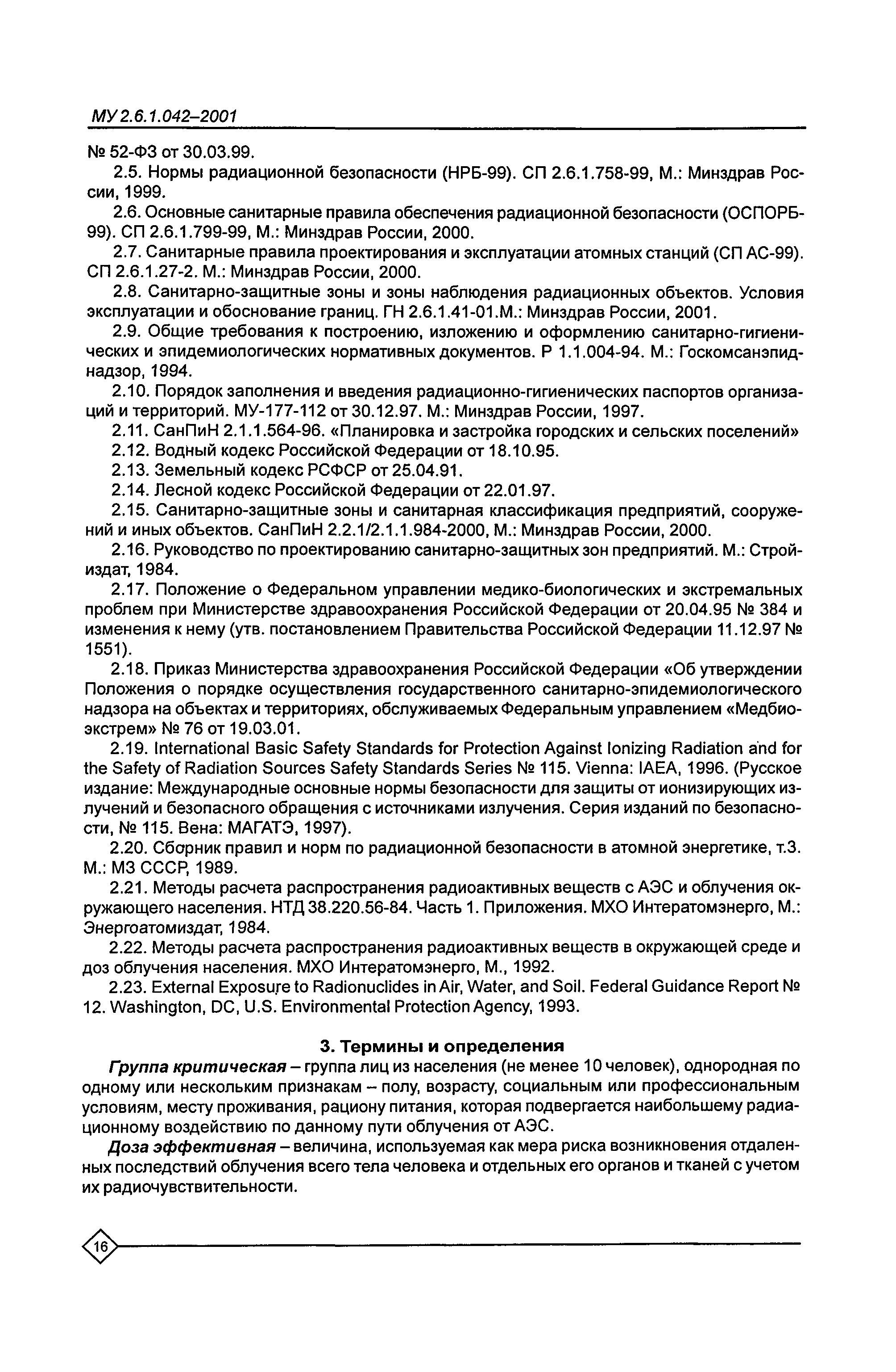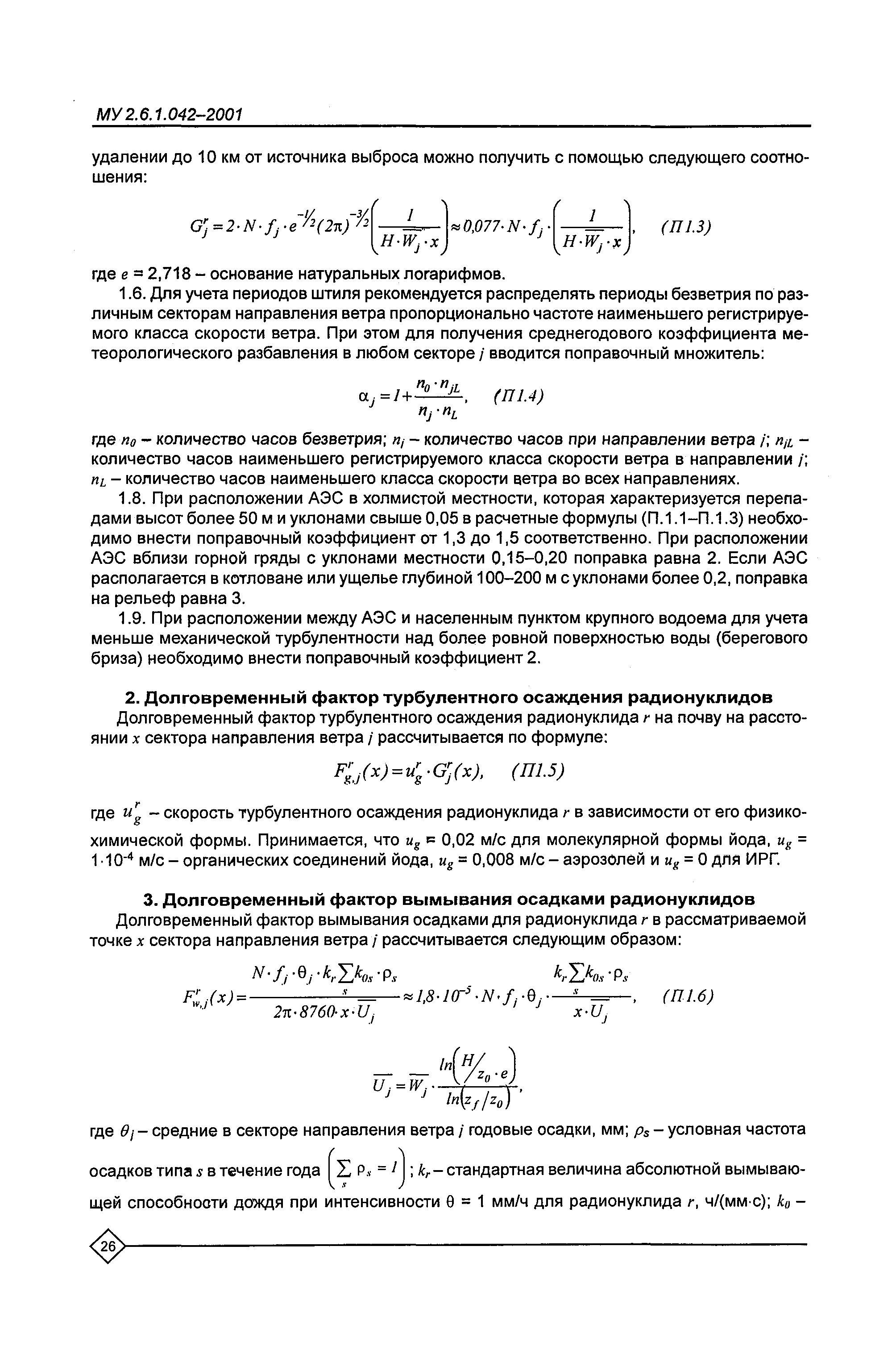 Расчет и обоснование размеров санитарно-защитных зон и зон наблюдения вокруг АЭС. Методические указания МУ 2.6.1.042—2001