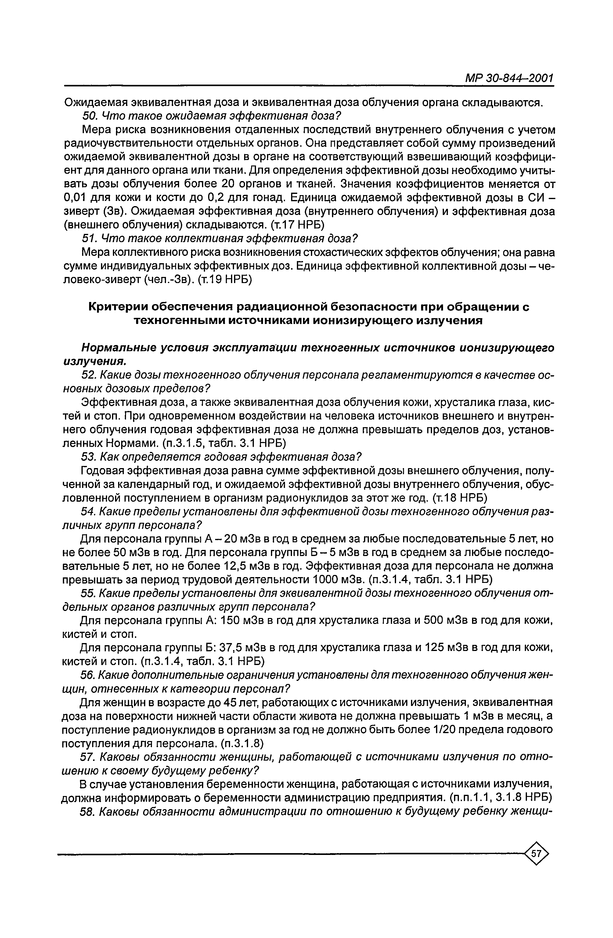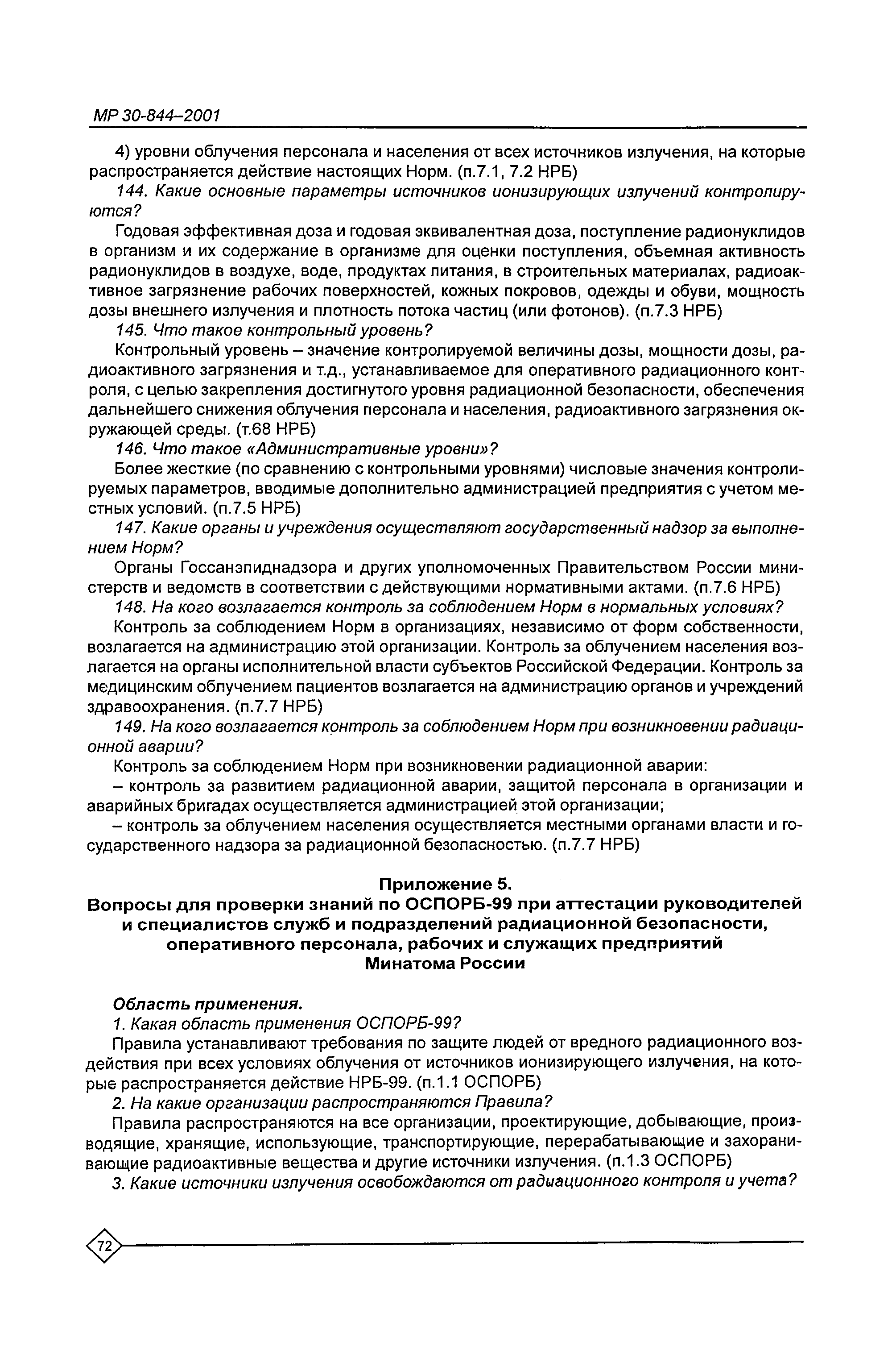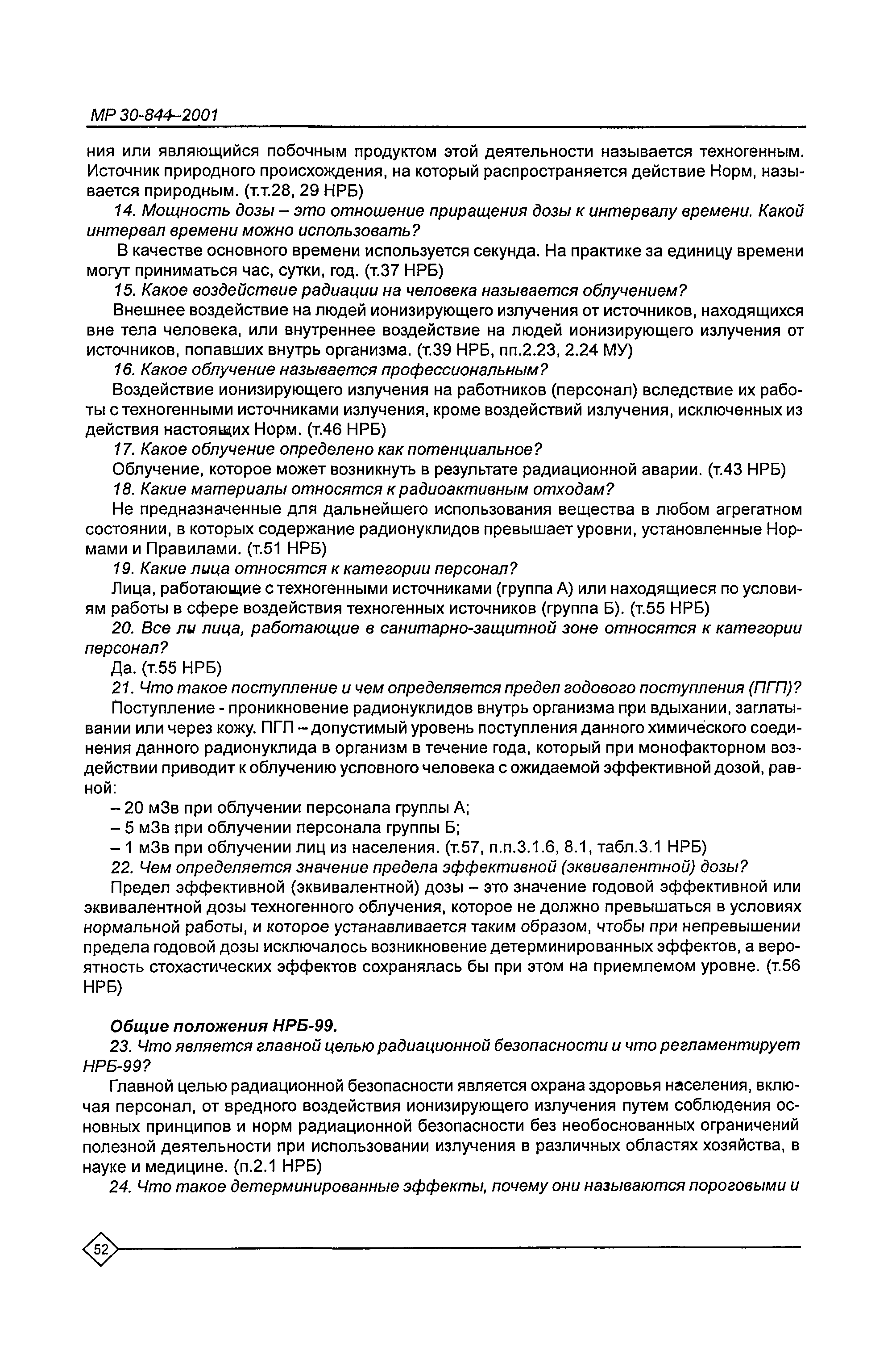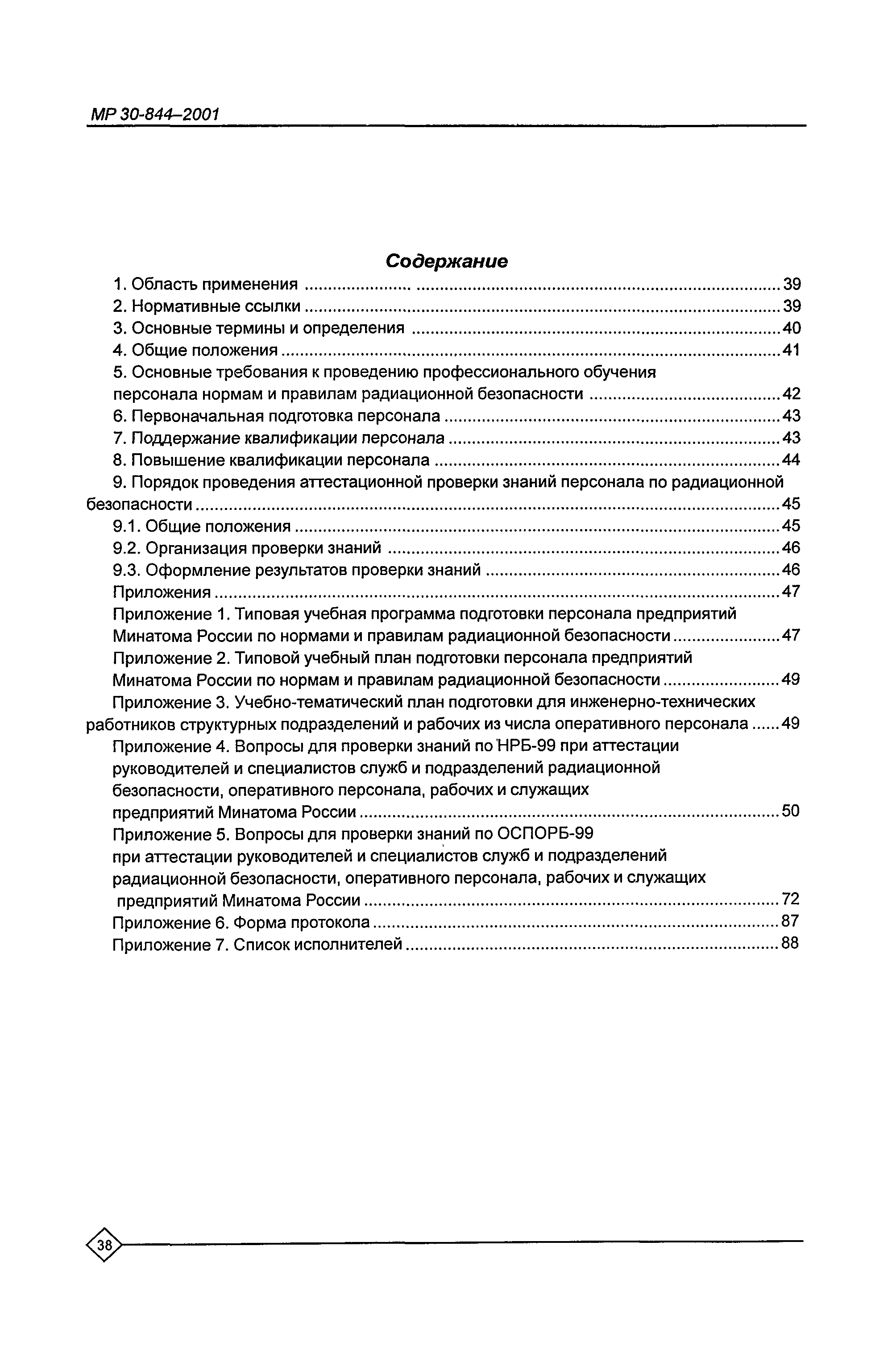 Организация обучения персонала и порядок проведения аттестационной проверки знаний по радиационной безопасности на предприятиях Минатома России. Методические рекомендации МР 30—844—2001