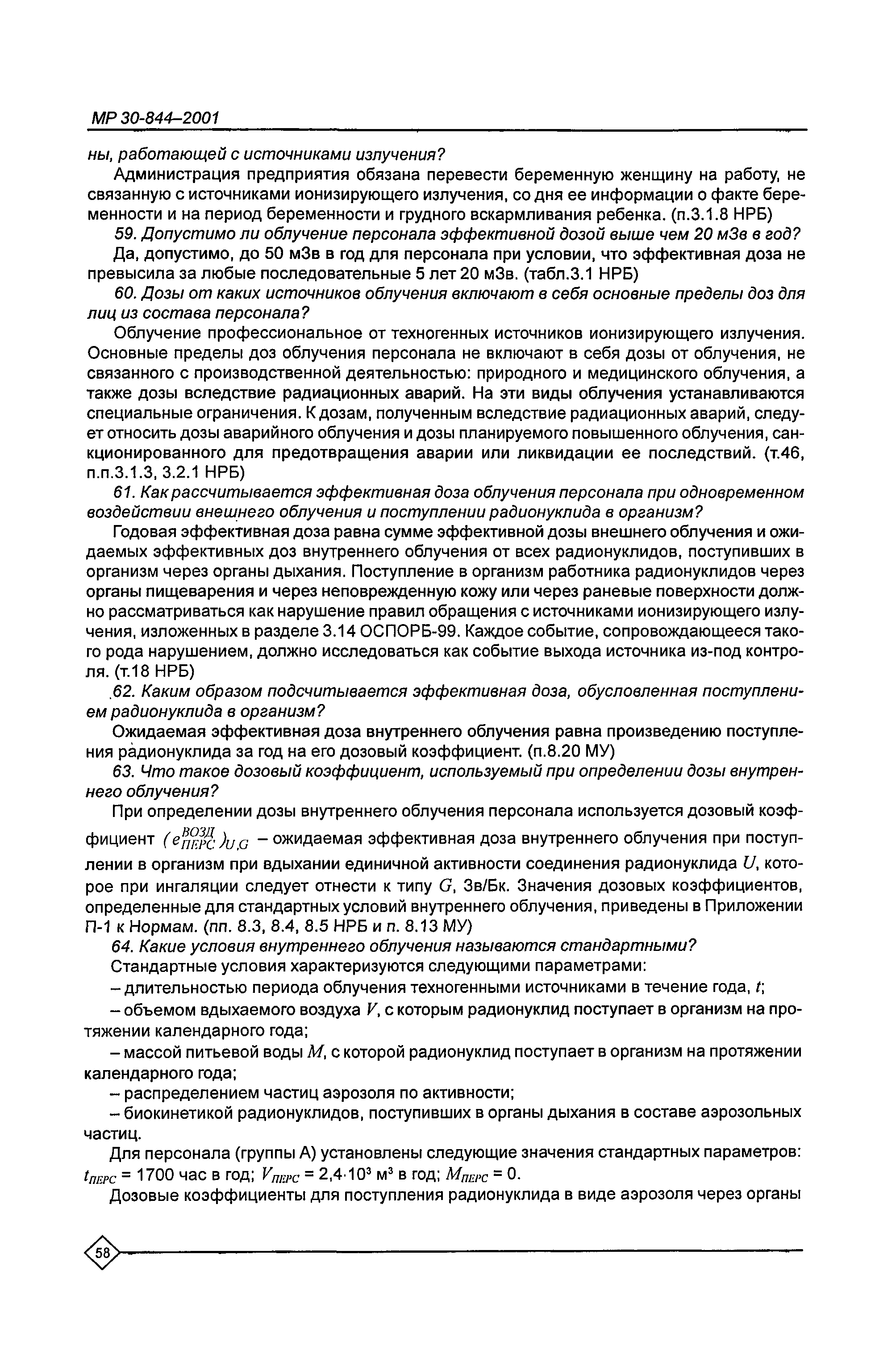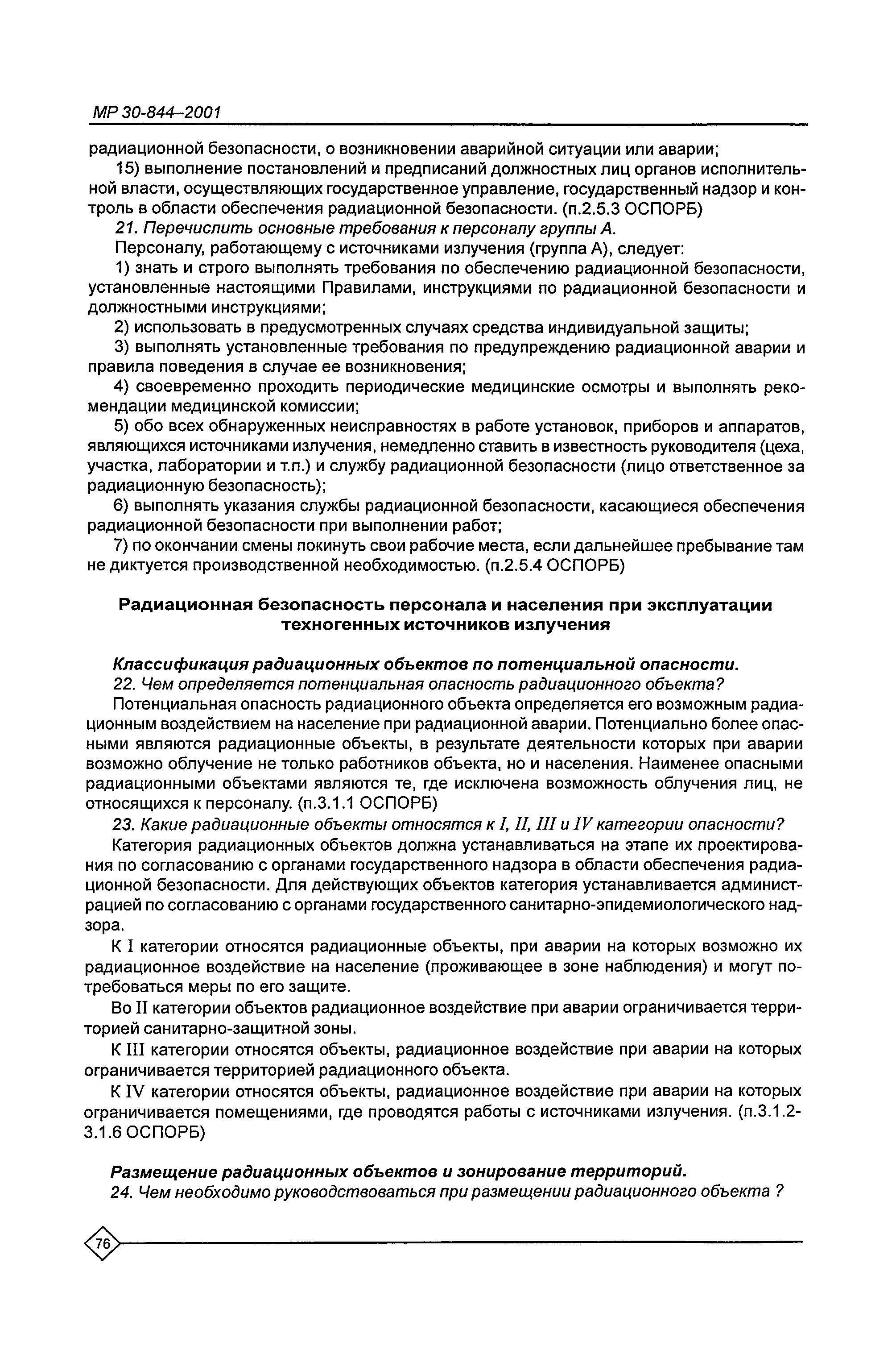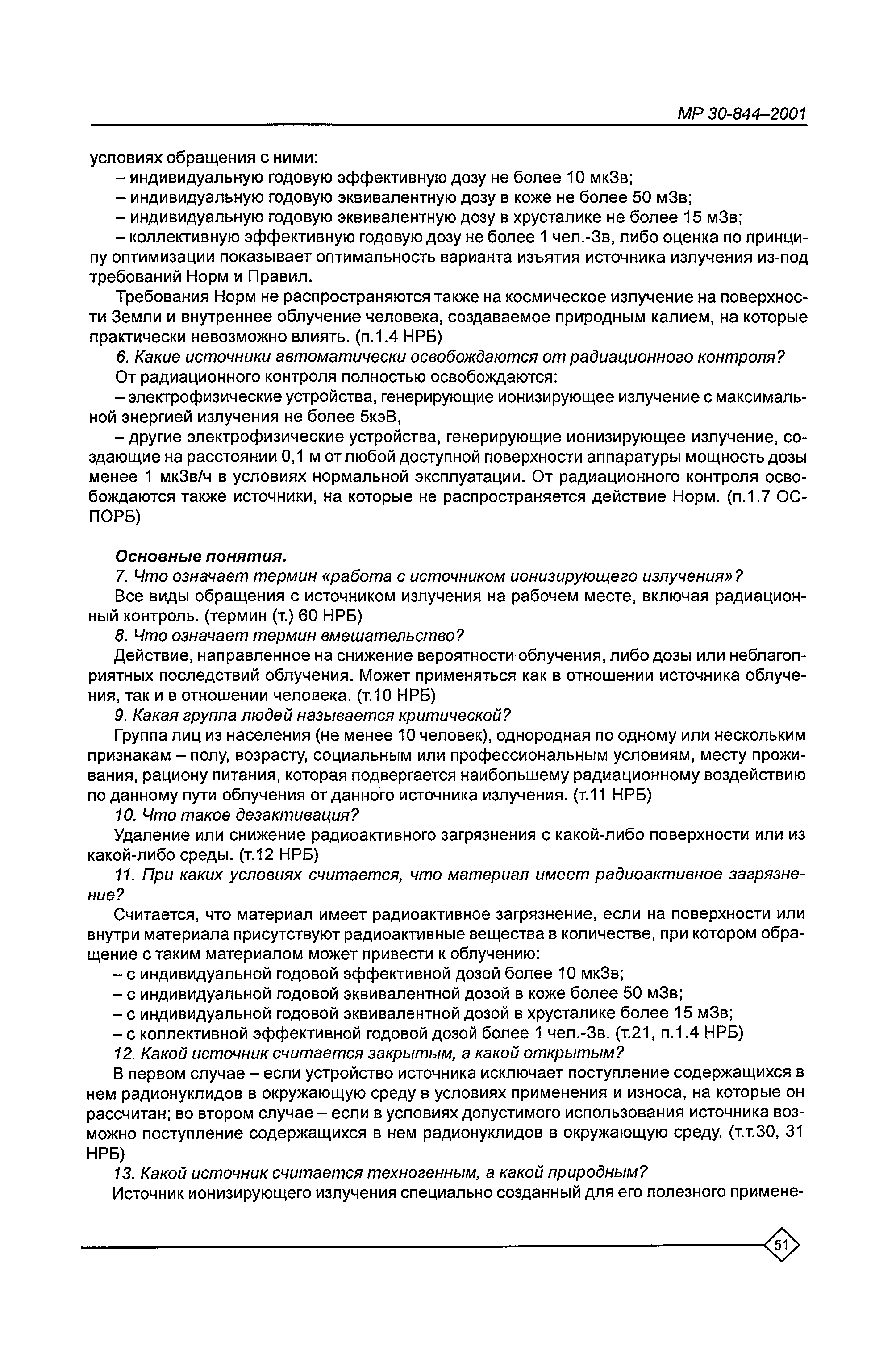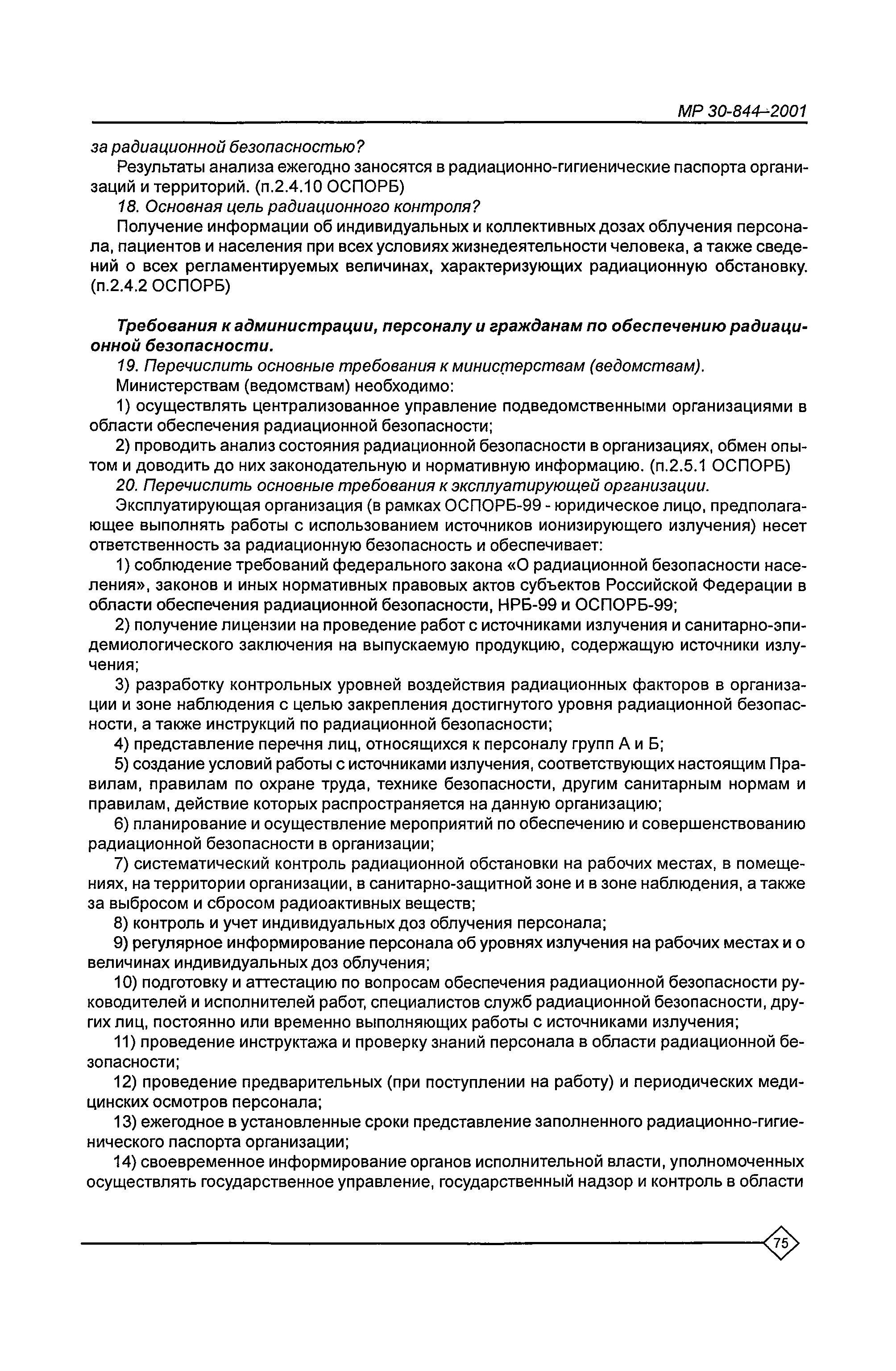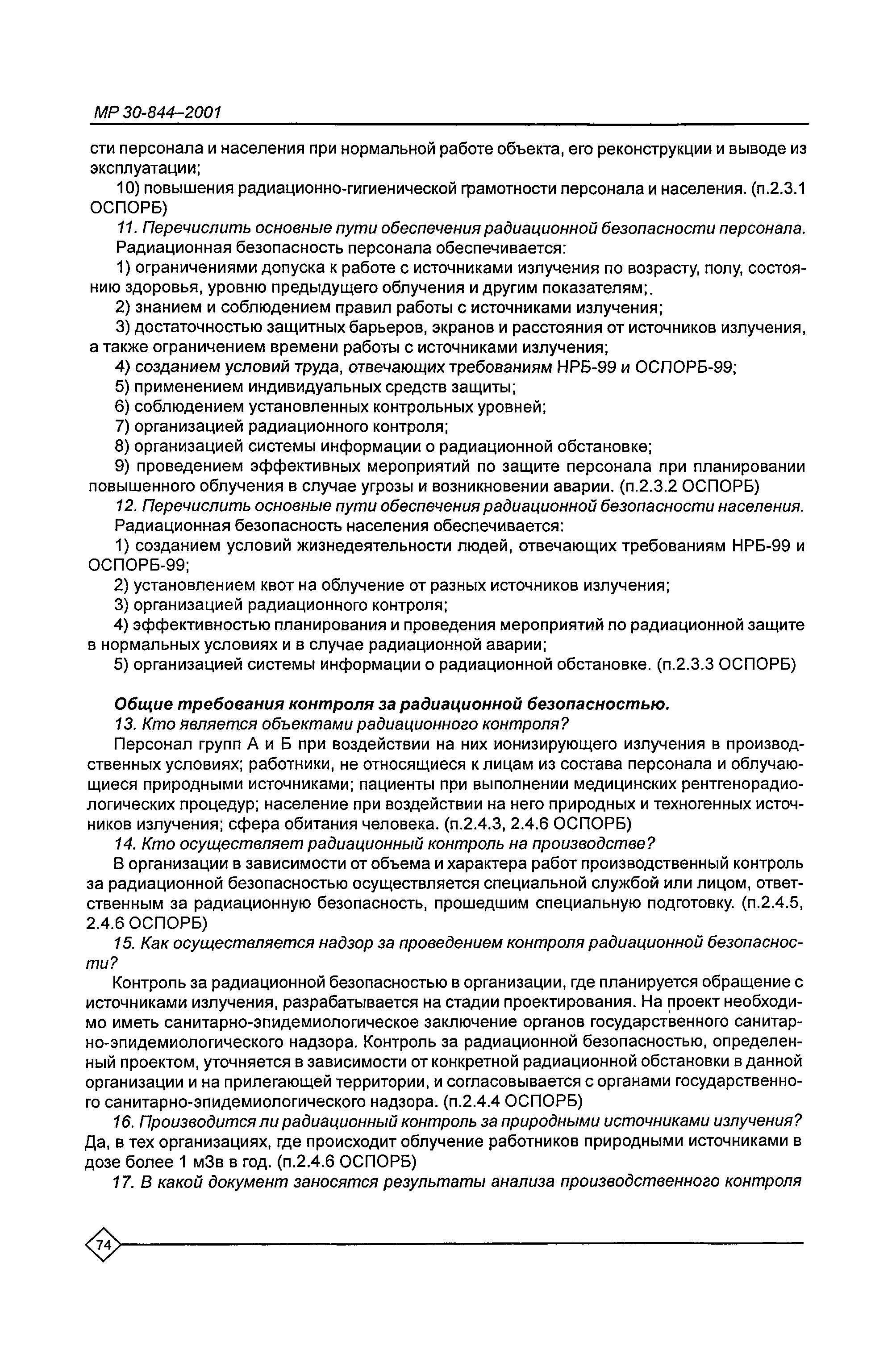 Организация обучения персонала и порядок проведения аттестационной проверки знаний по радиационной безопасности на предприятиях Минатома России. Методические рекомендации МР 30—844—2001