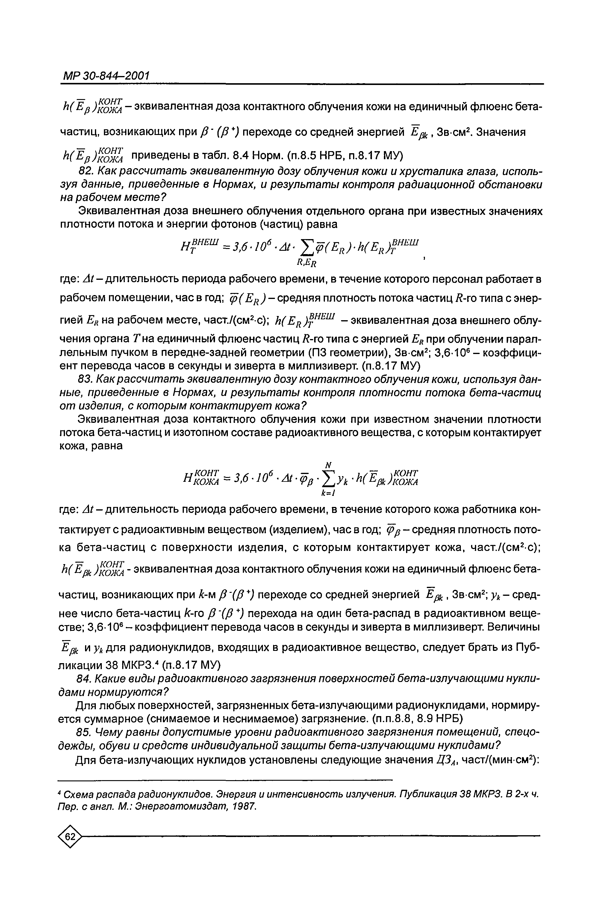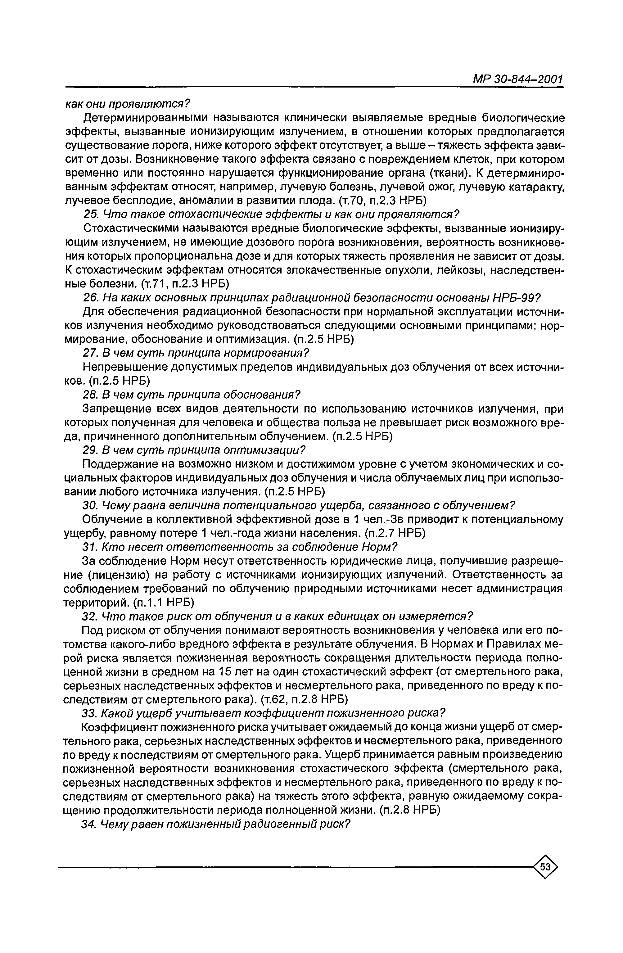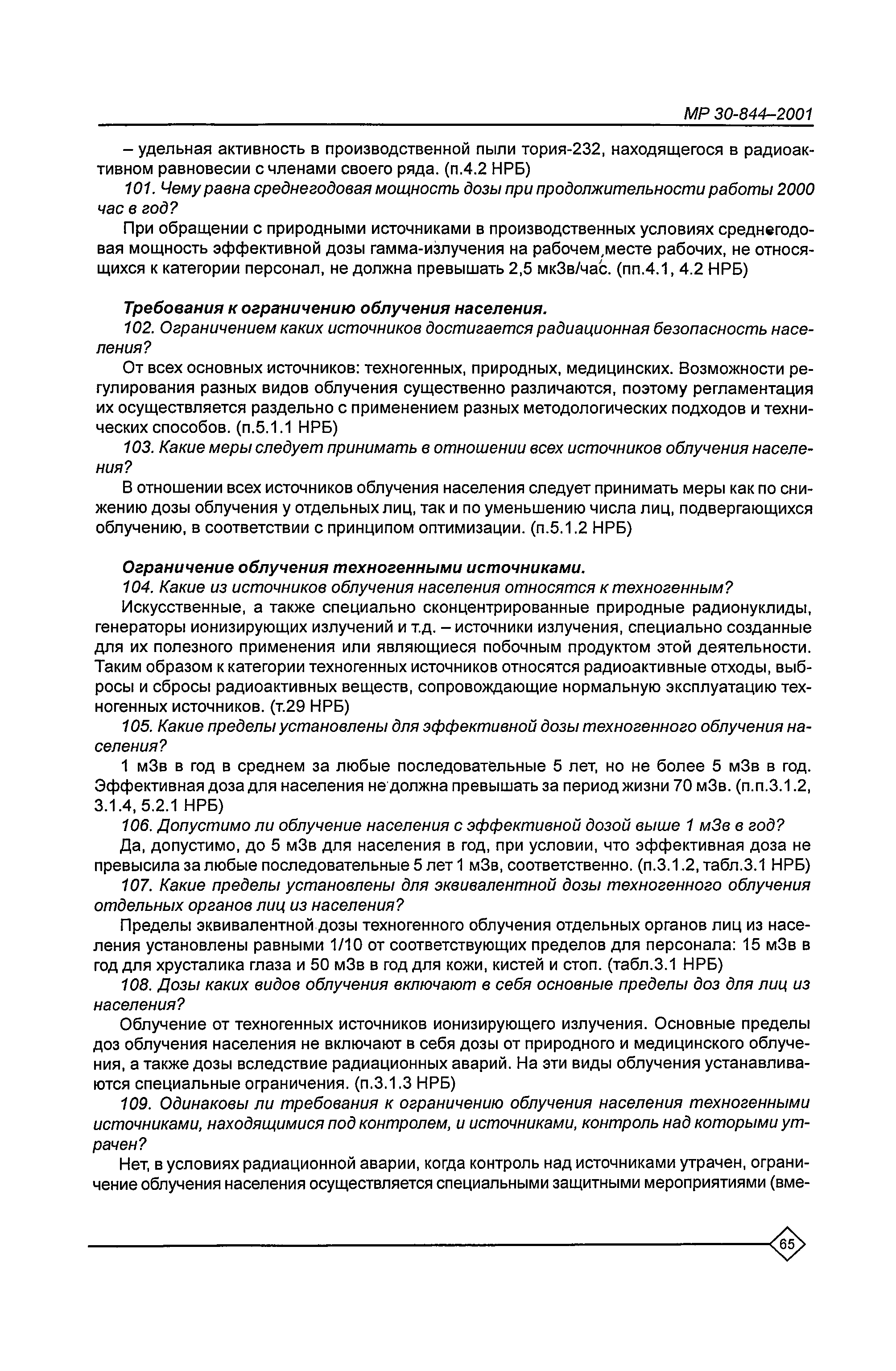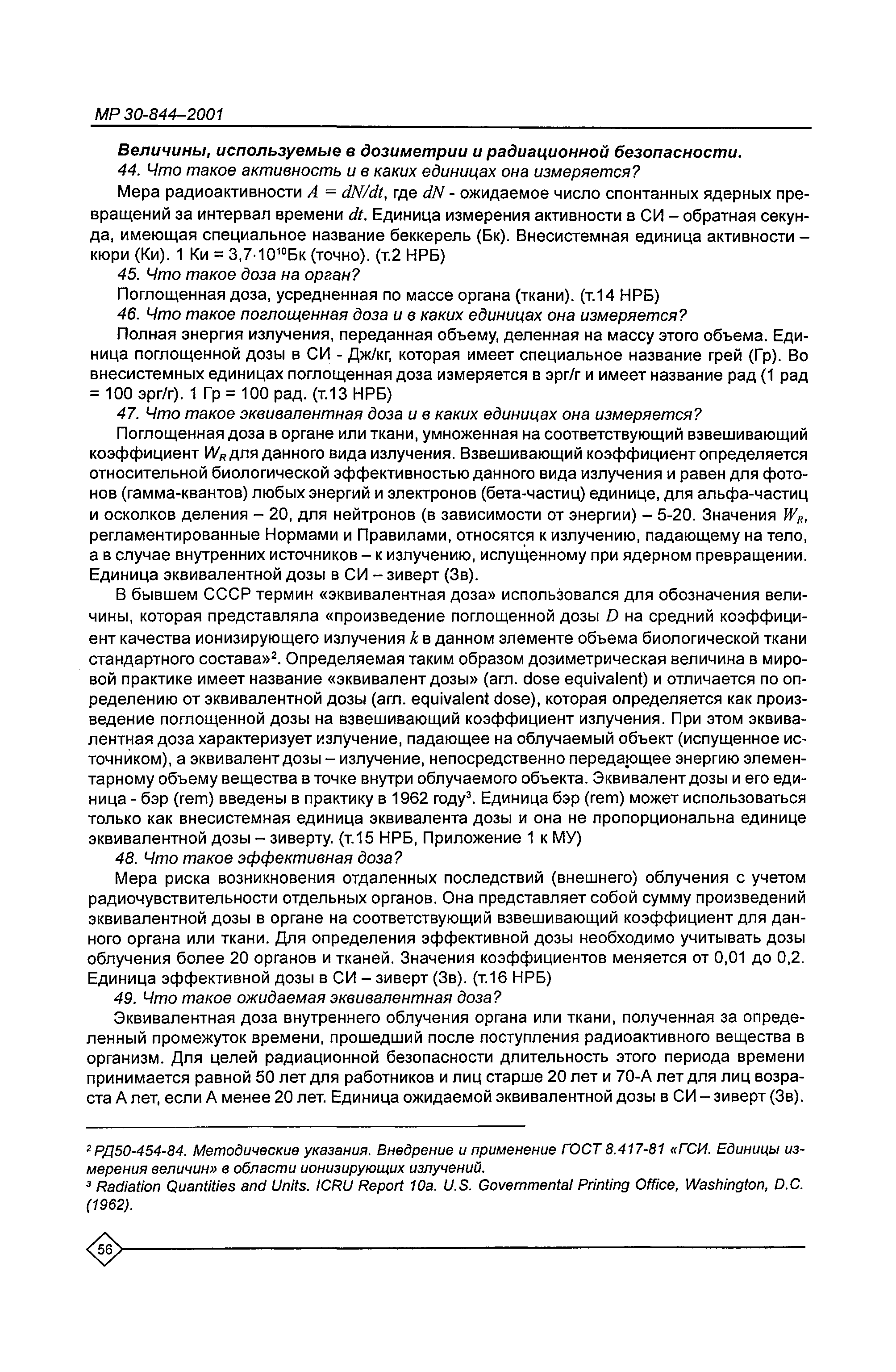 Организация обучения персонала и порядок проведения аттестационной проверки знаний по радиационной безопасности на предприятиях Минатома России. Методические рекомендации МР 30—844—2001
