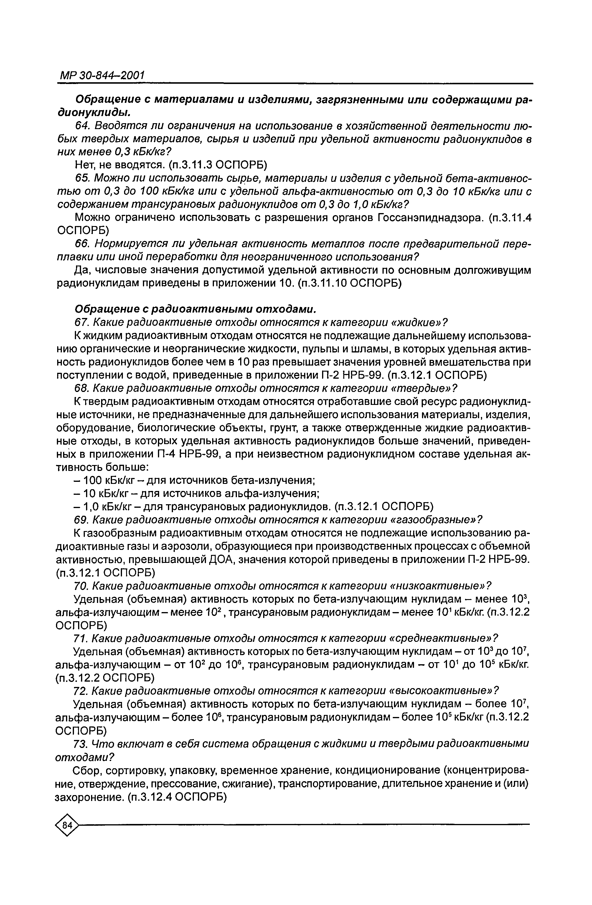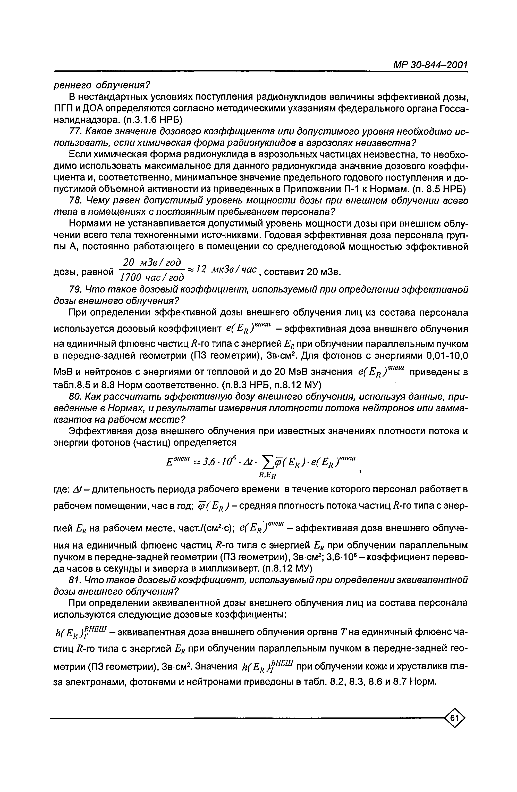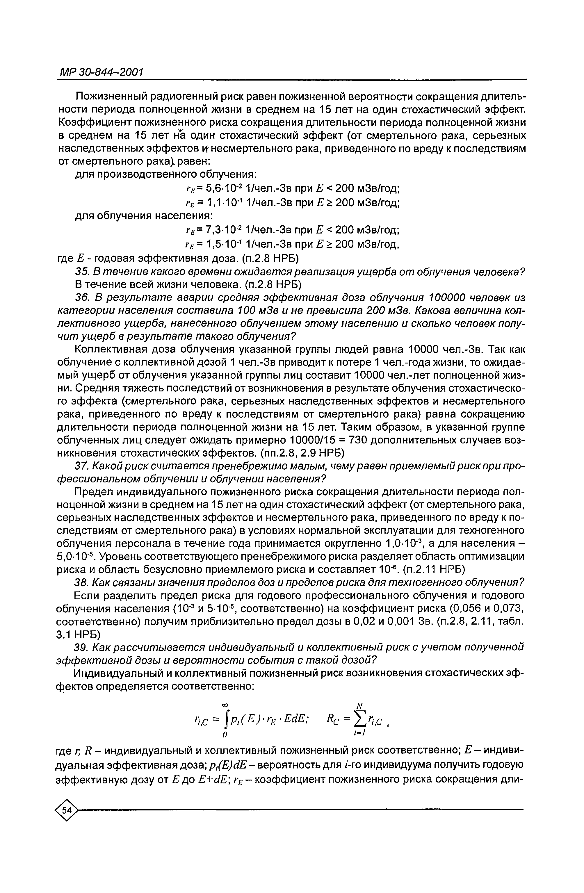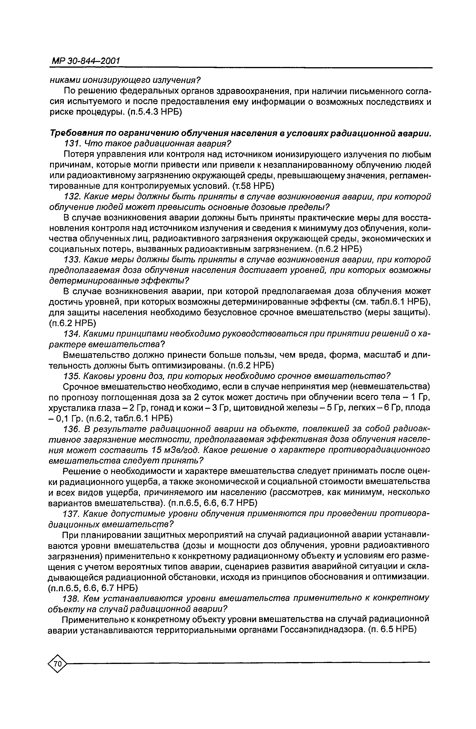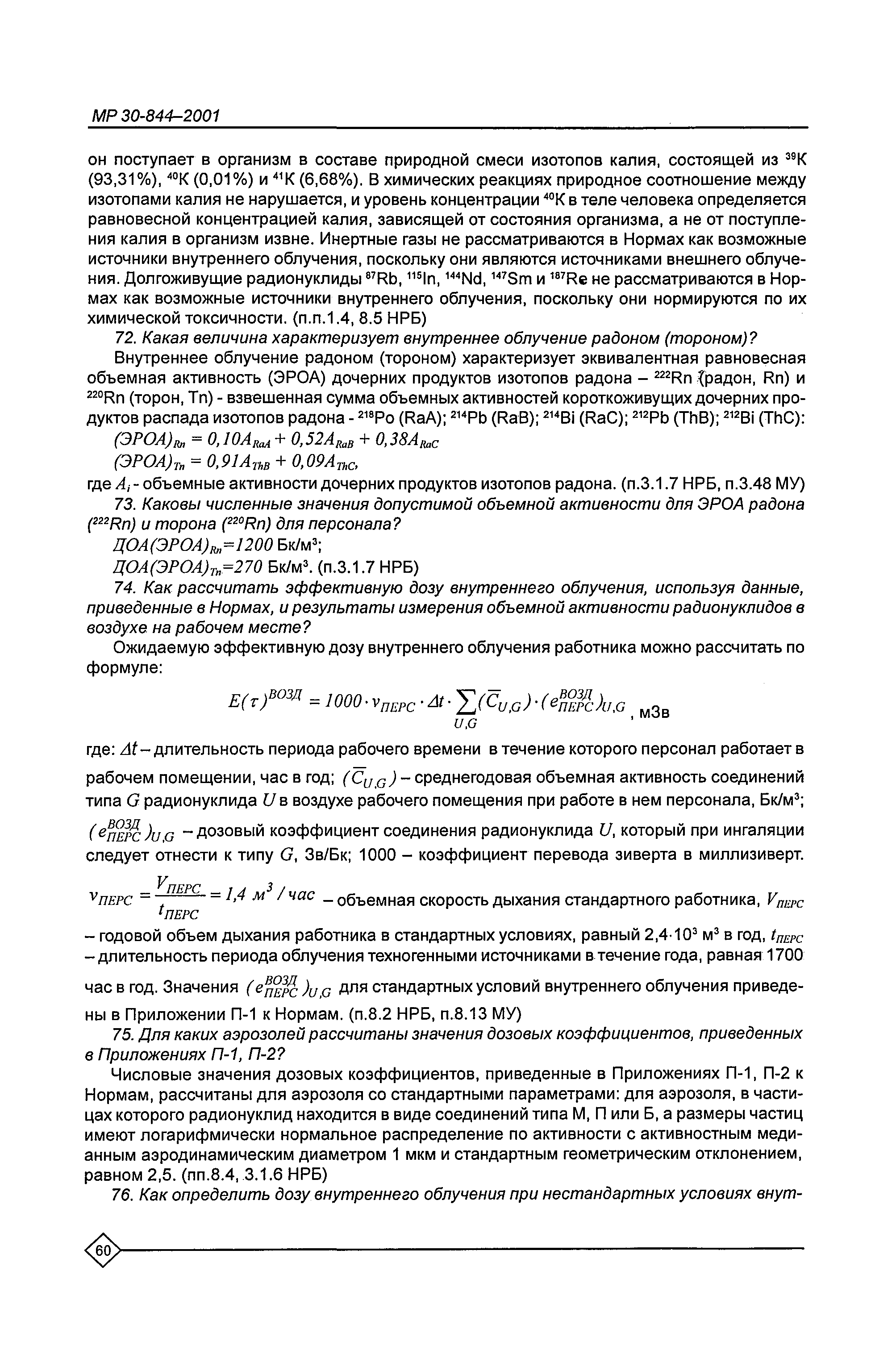 Организация обучения персонала и порядок проведения аттестационной проверки знаний по радиационной безопасности на предприятиях Минатома России. Методические рекомендации МР 30—844—2001